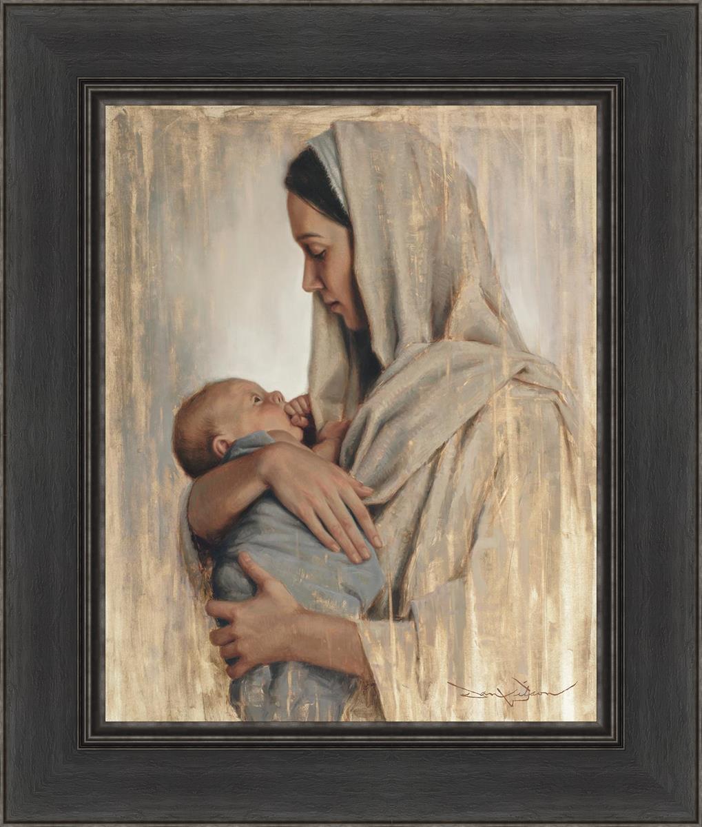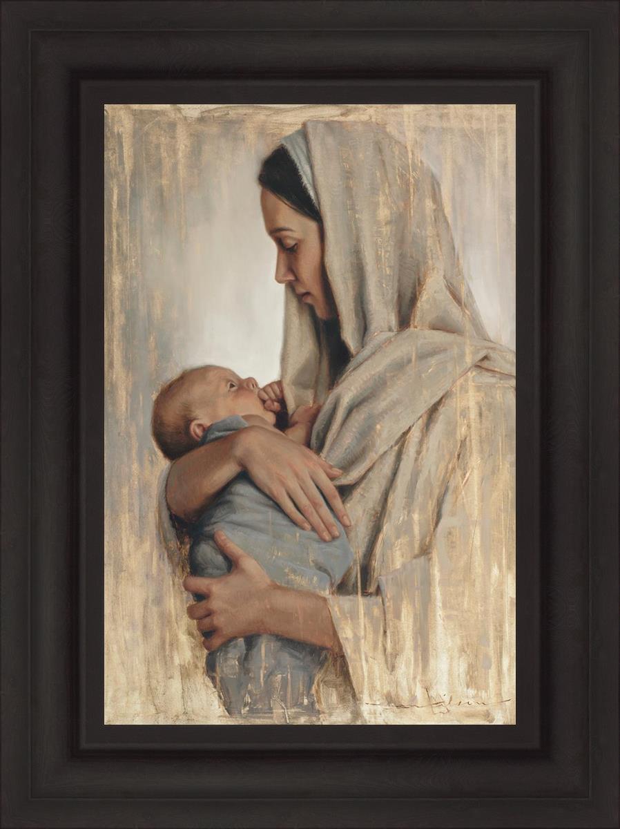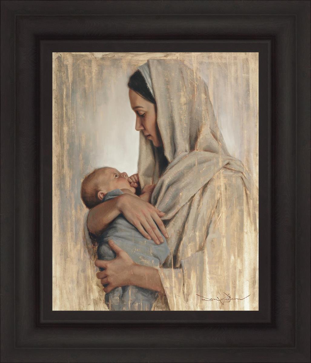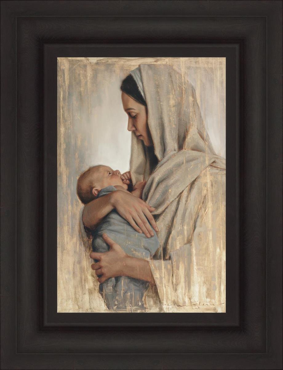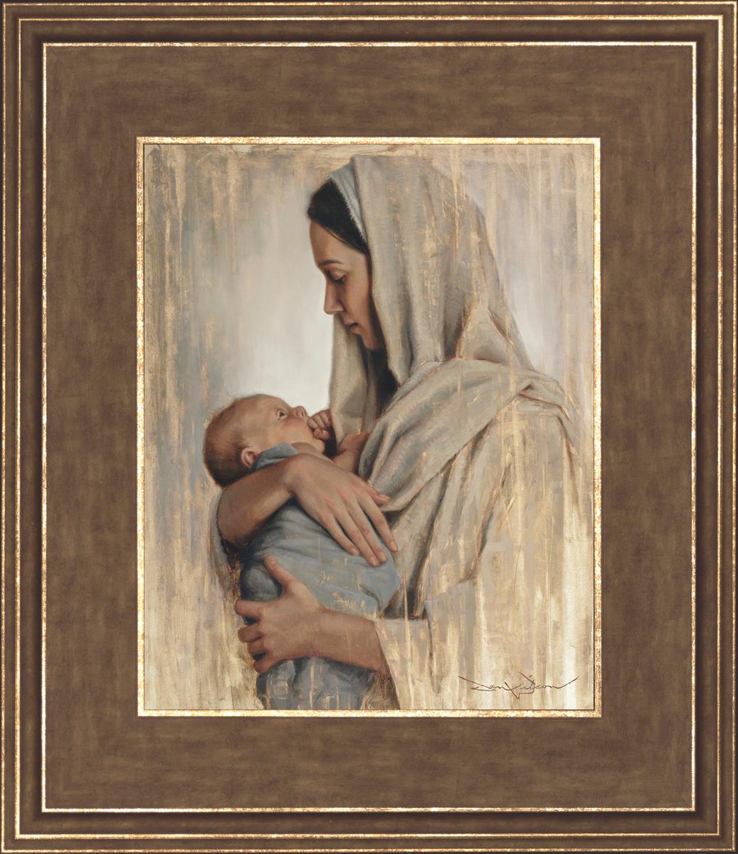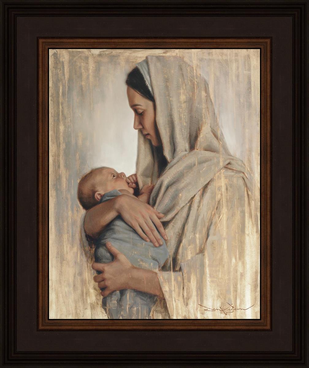 It's a beautiful picture! I love the way the picture was framed and the quality of it. It's a great depiction of the love and awe that Mary has for the love that you can see in her face as she holds Jesus in her arms.