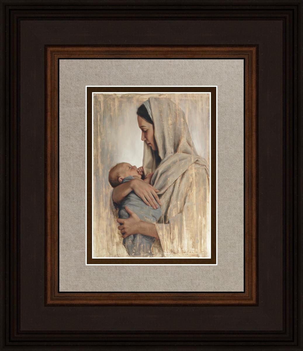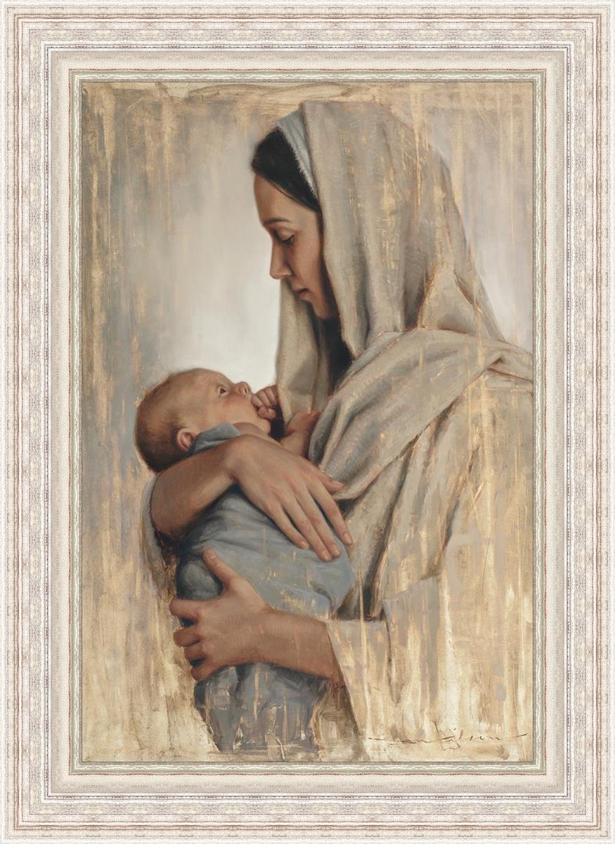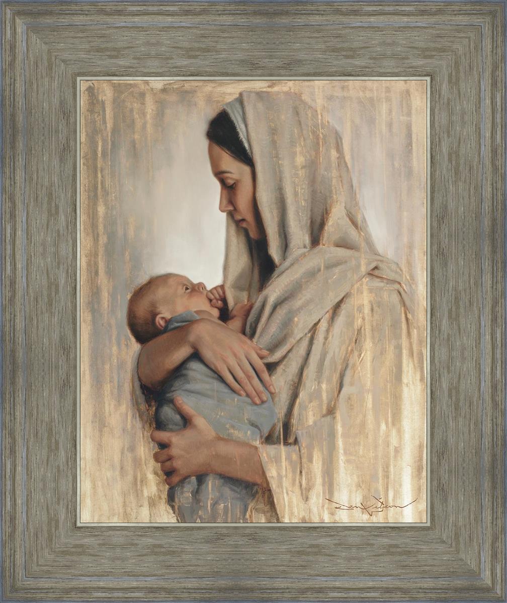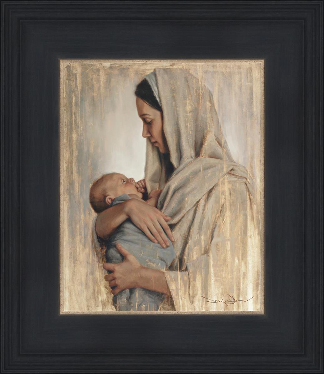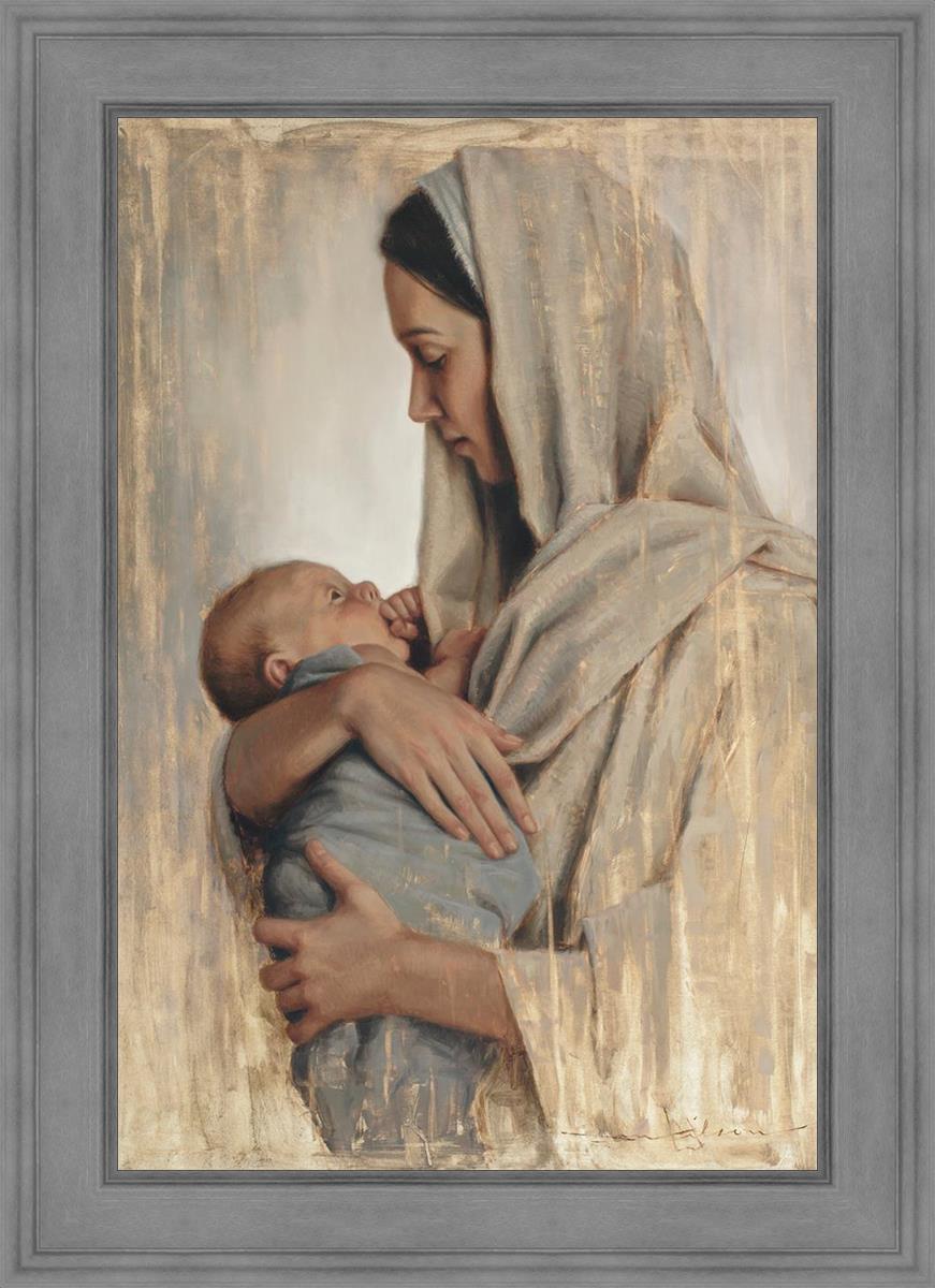 It's a beautiful picture! I love the way the picture was framed and the quality of it. It's a great depiction of the love and awe that Mary has for the love that you can see in her face as she holds Jesus in her arms.