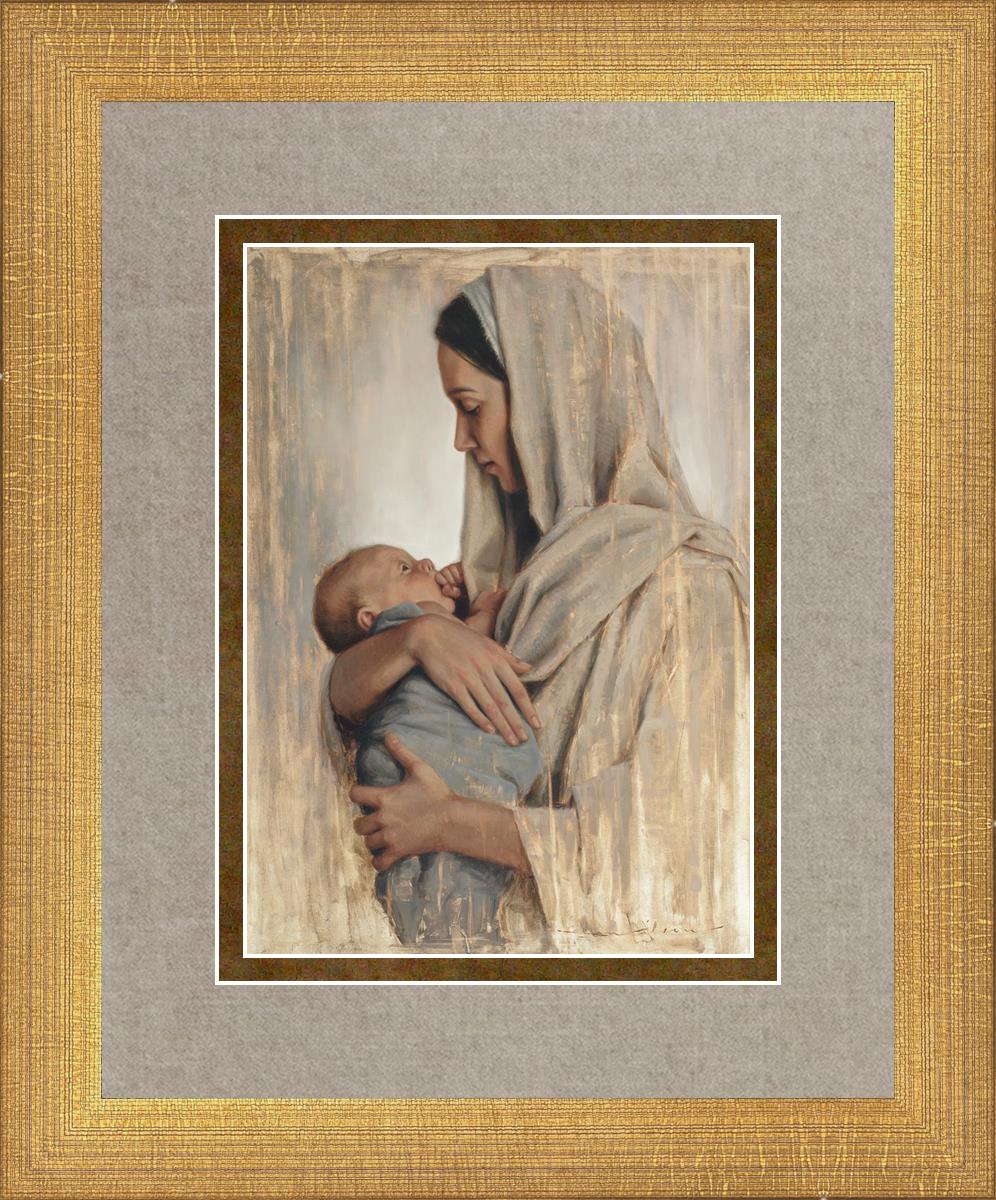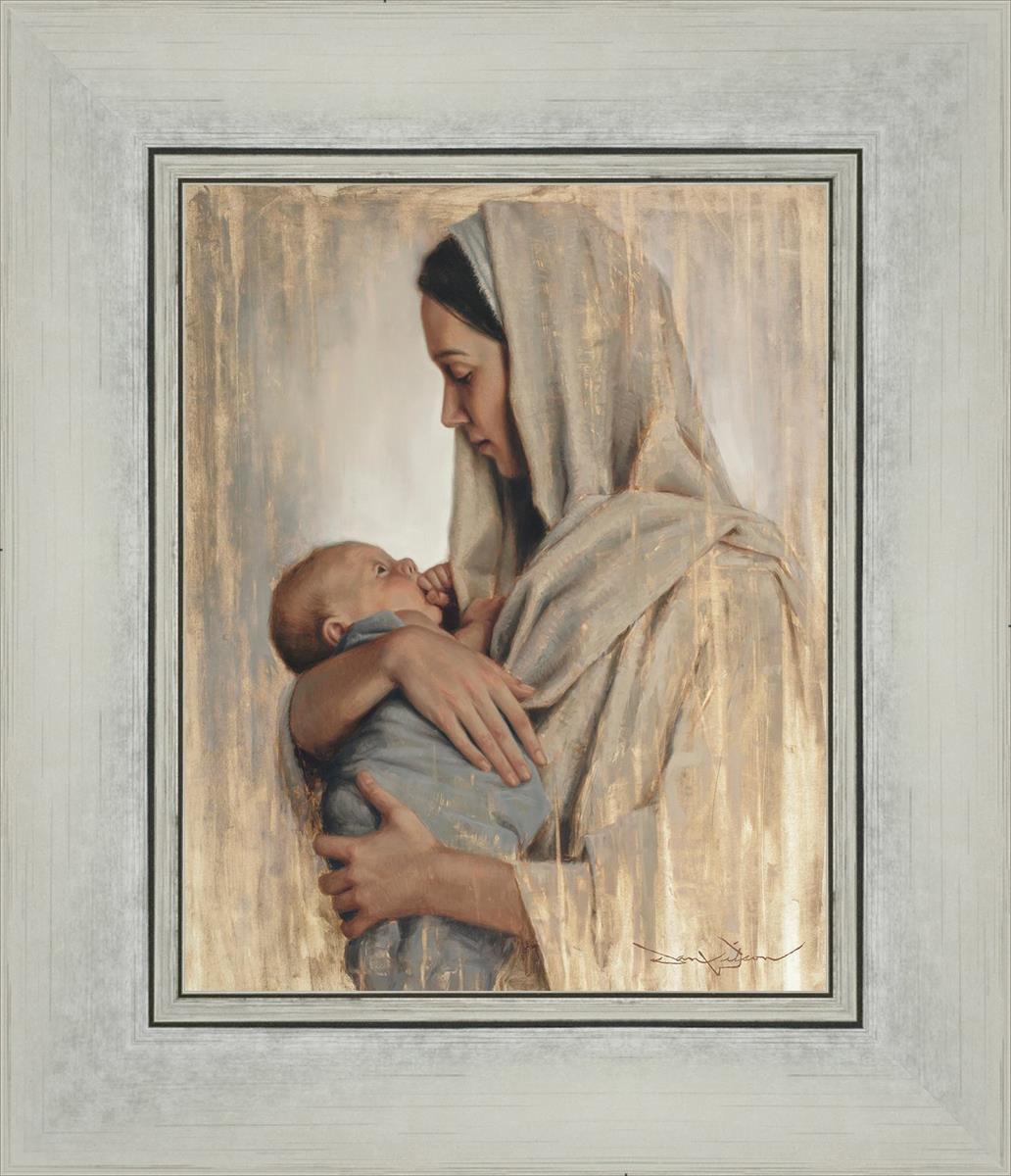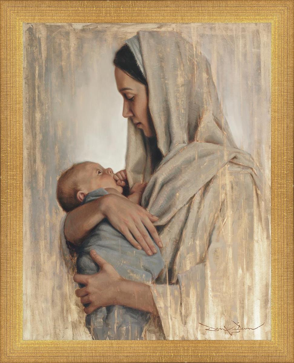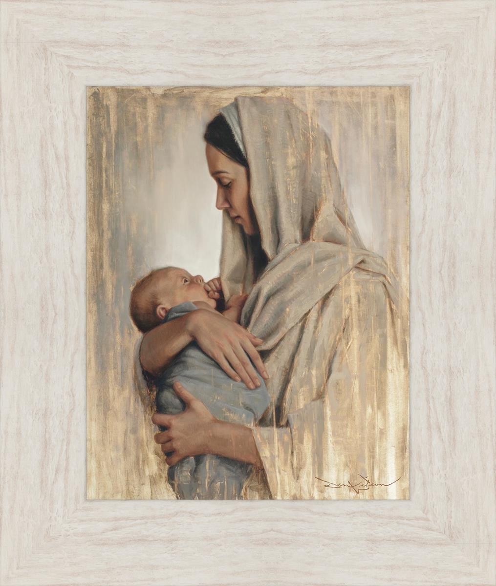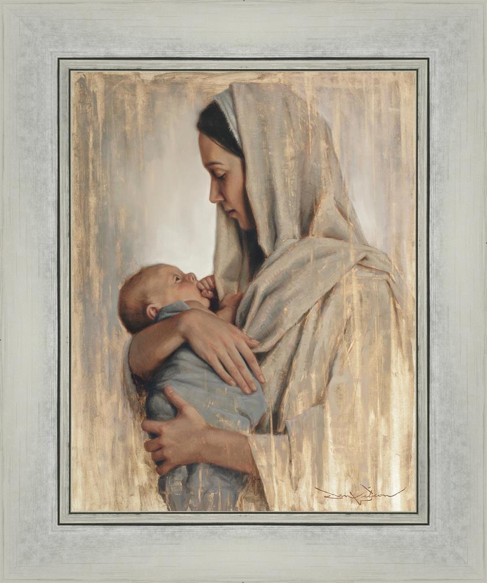 It's a beautiful picture! I love the way the picture was framed and the quality of it. It's a great depiction of the love and awe that Mary has for the love that you can see in her face as she holds Jesus in her arms.