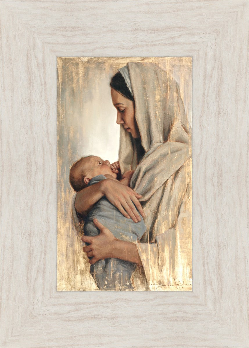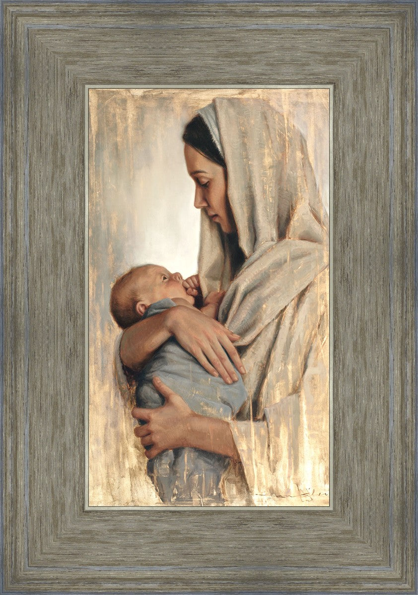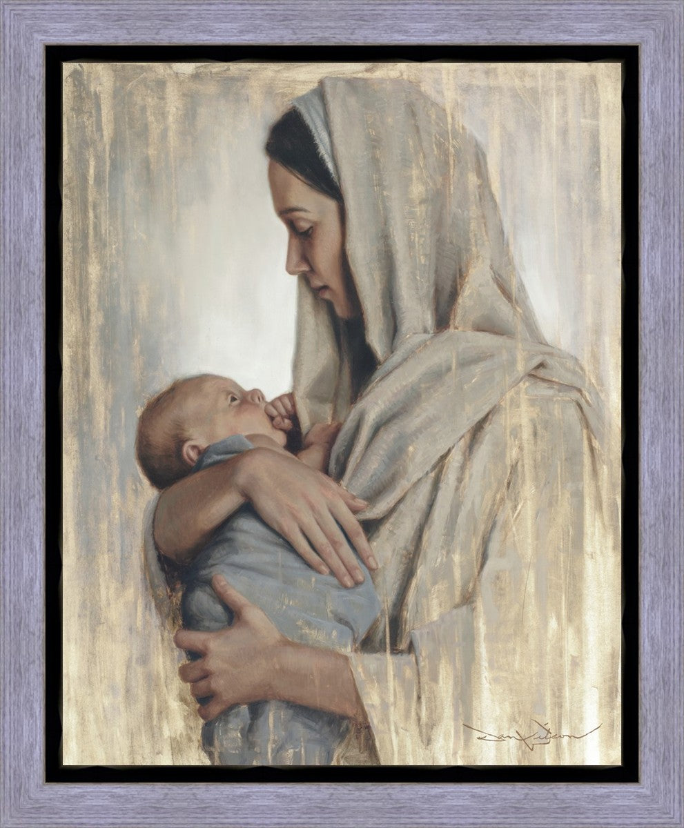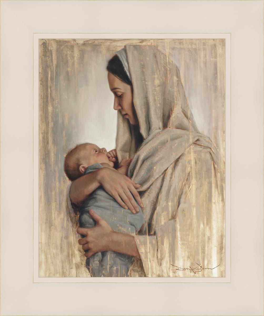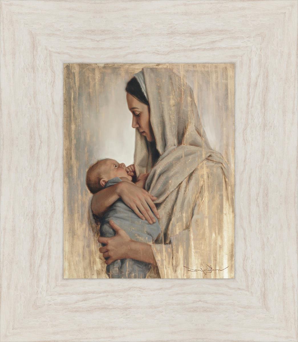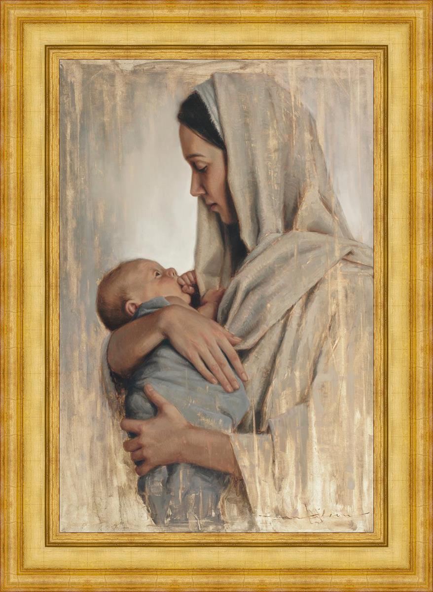 It's a beautiful picture! I love the way the picture was framed and the quality of it. It's a great depiction of the love and awe that Mary has for the love that you can see in her face as she holds Jesus in her arms.