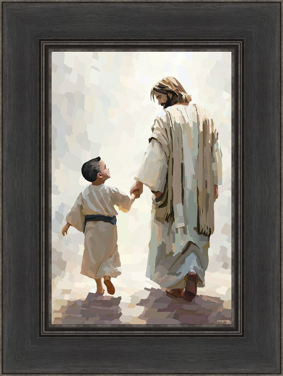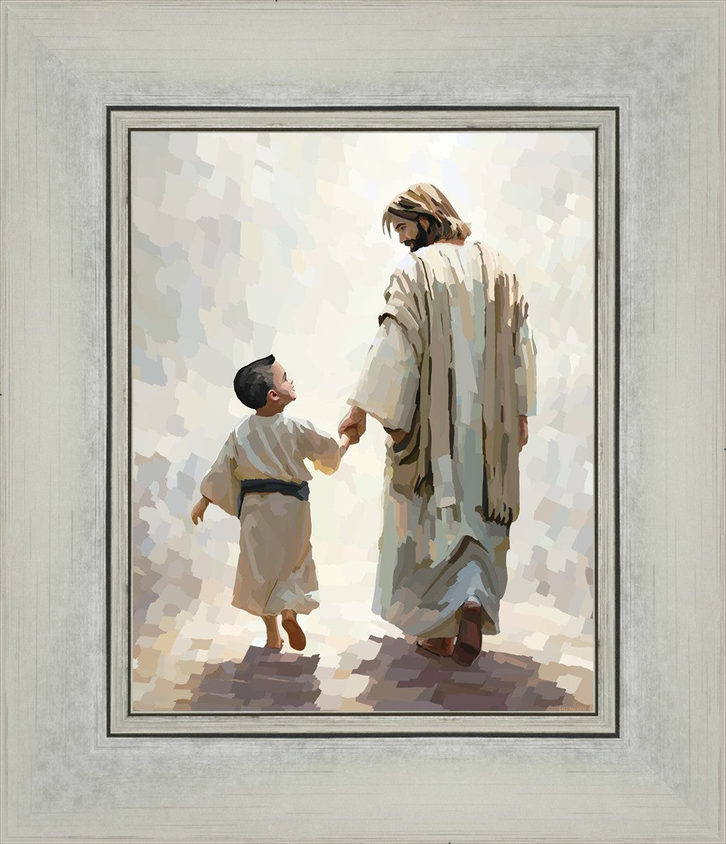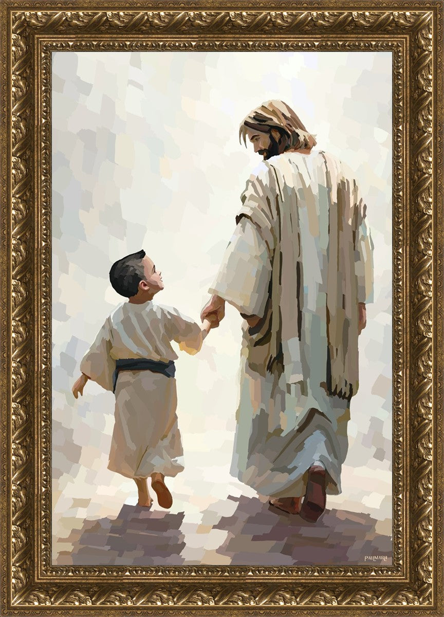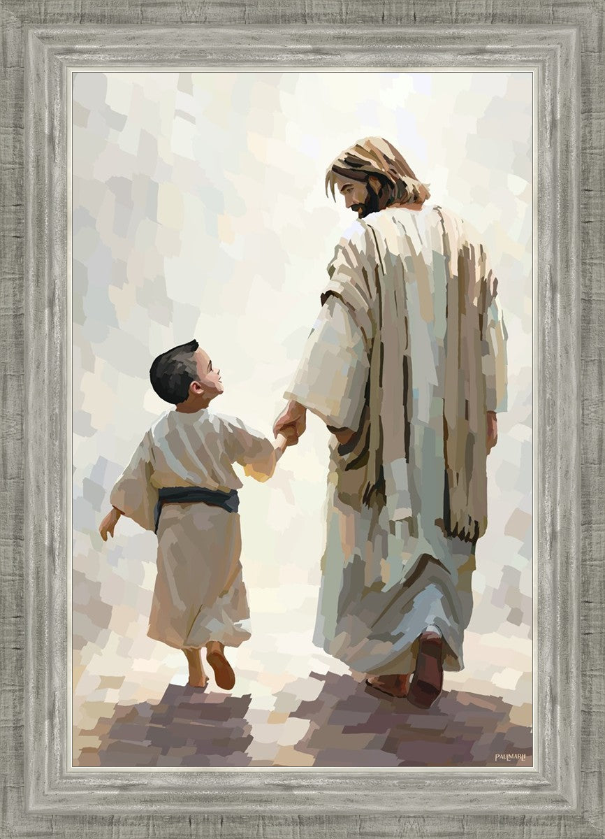 This painting was inspired by a family whose young boy recently had a tragic passing. I had an idea of an image of what a painting can look like with Christ and a young boy, but then I had a dear friend of mine mention an experience they had - a dream of an image to paint - which ended up leading to this view of the image with Christ and the boy.
