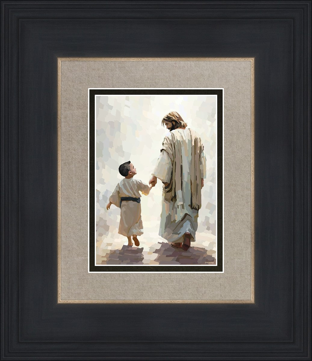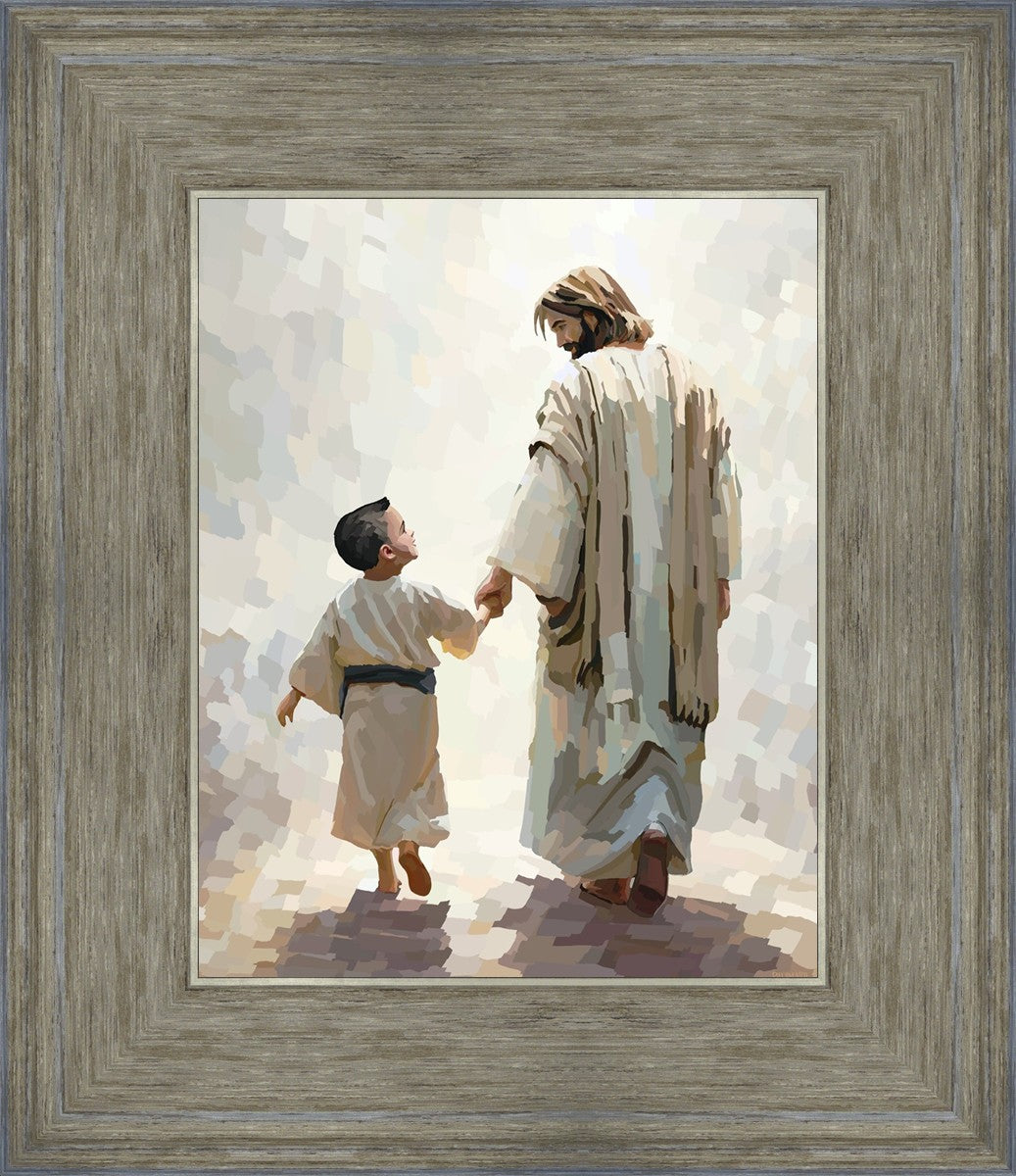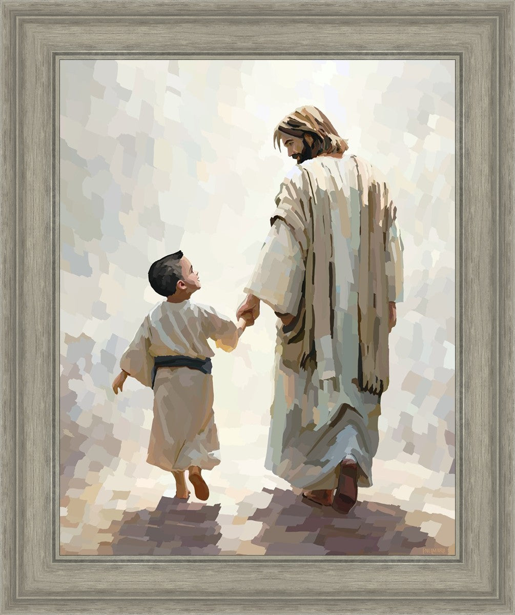This painting was inspired by a family whose young boy recently had a tragic passing. I had an idea of an image of what a painting can look like with Christ and a young boy, but then I had a dear friend of mine mention an experience they had - a dream of an image to paint - which ended up leading to this view of the image with Christ and the boy.