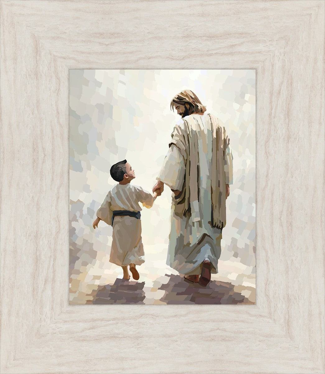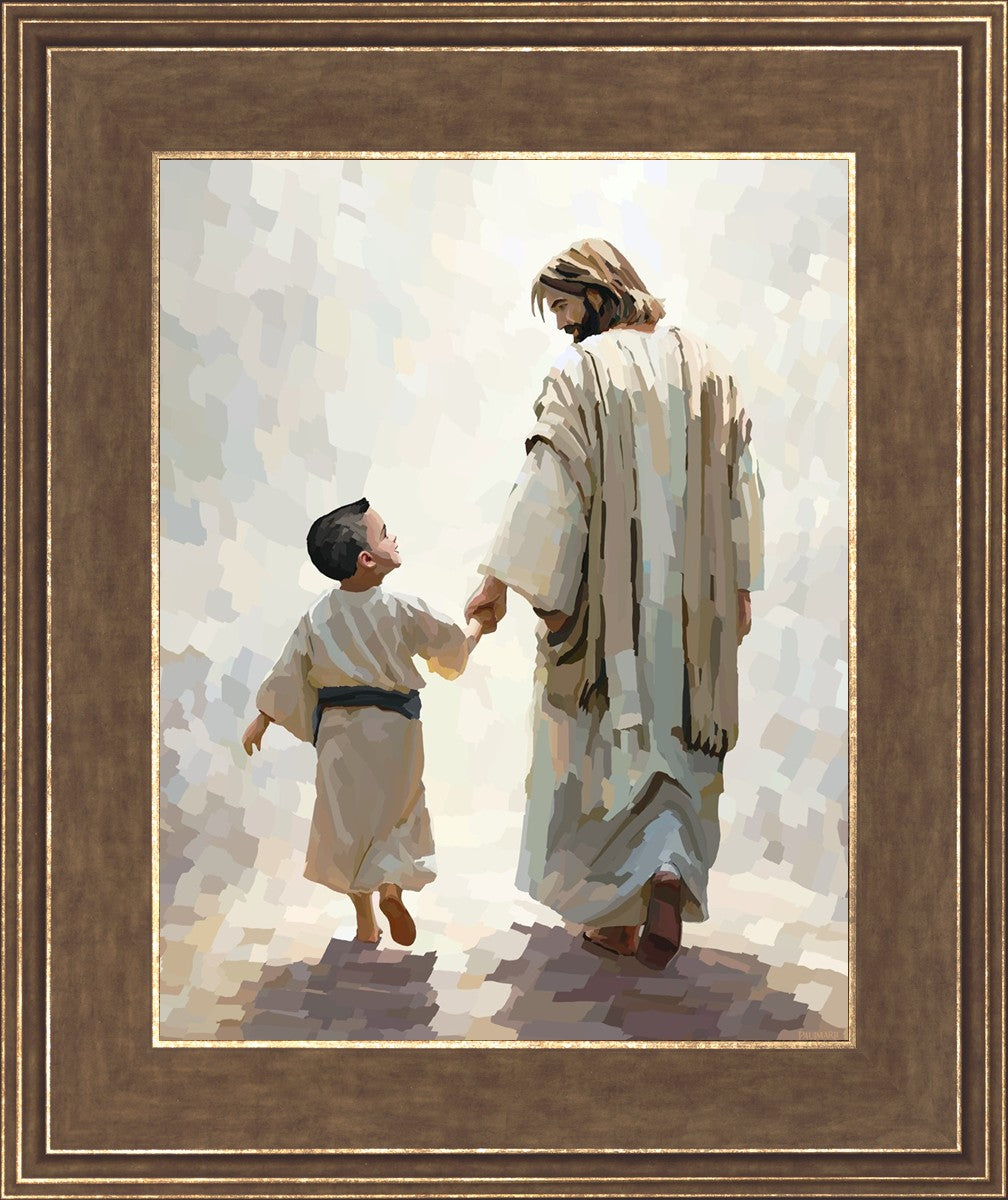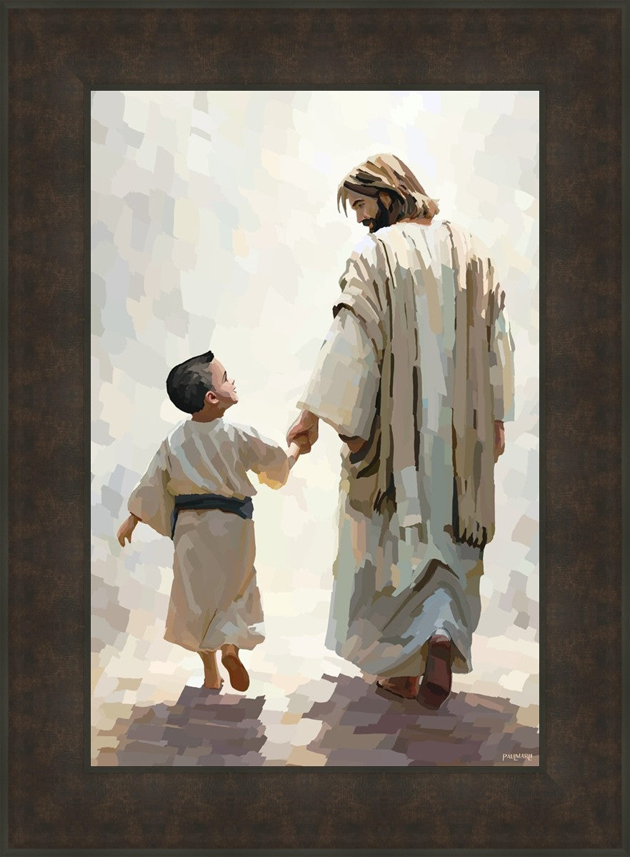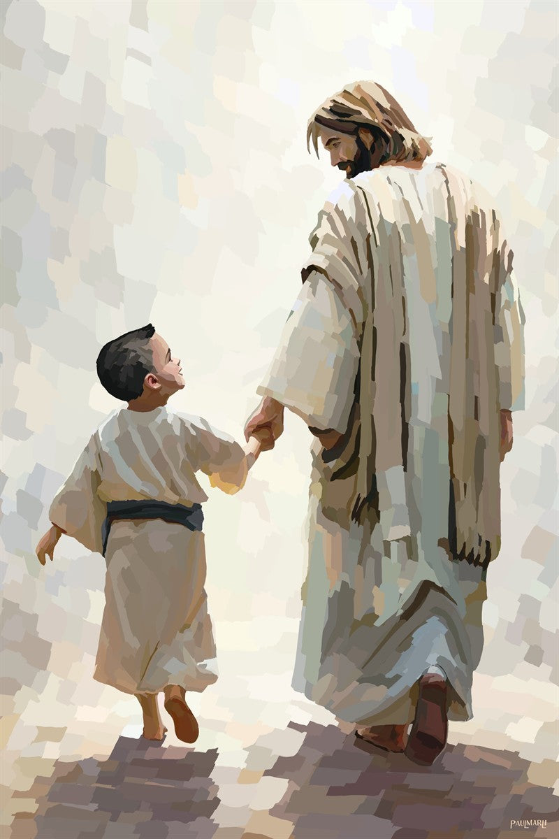 This is a picture of Christ walking with the boy escorting him personally home.