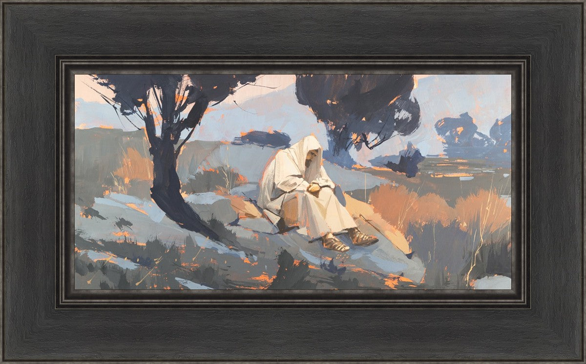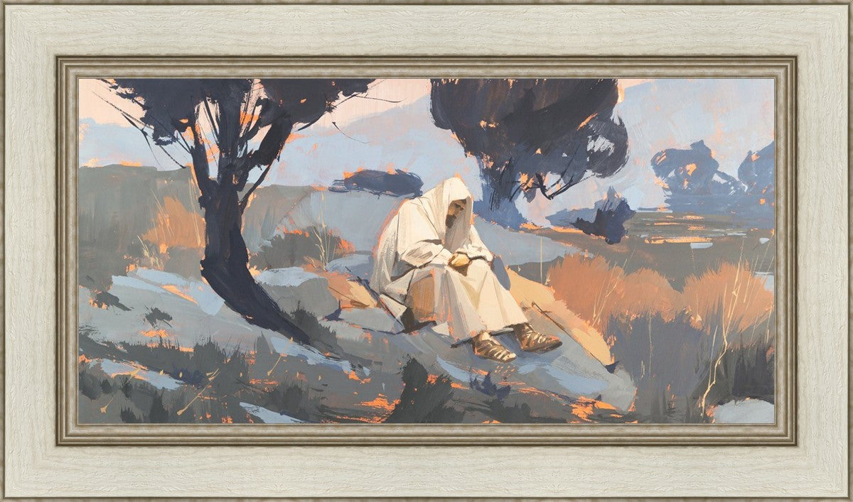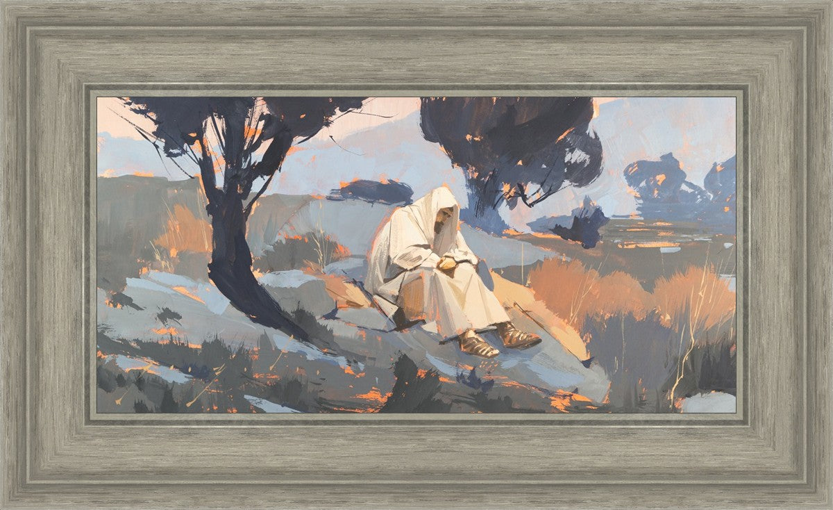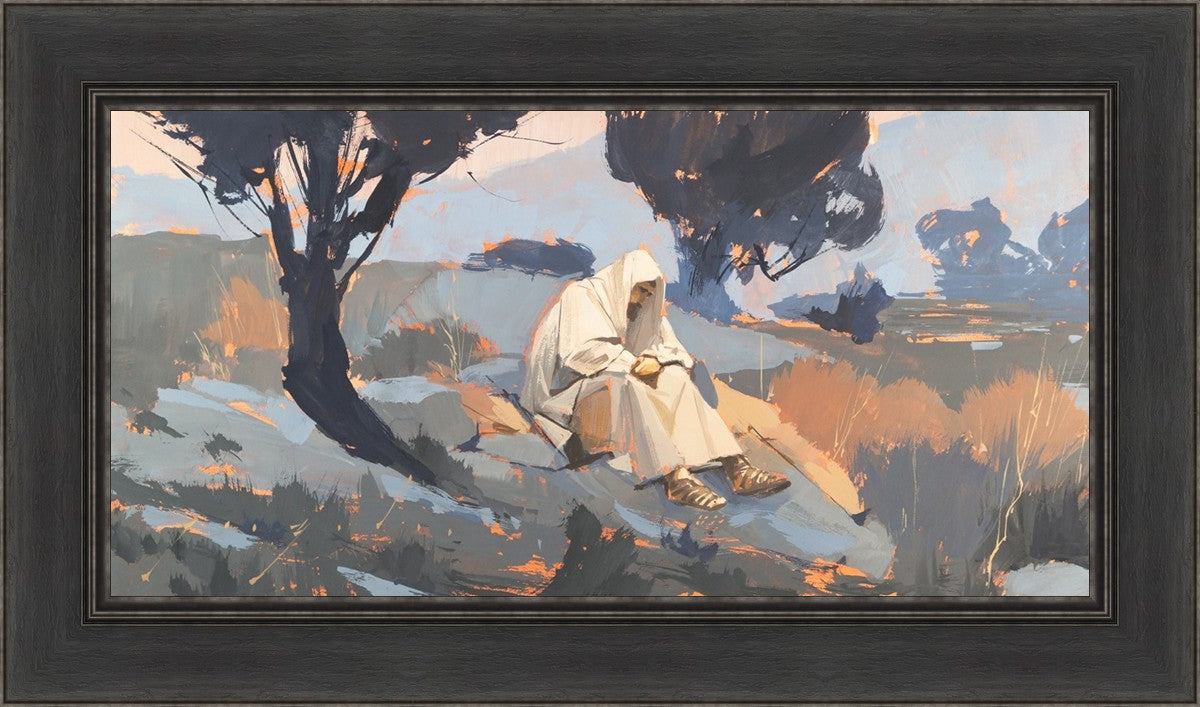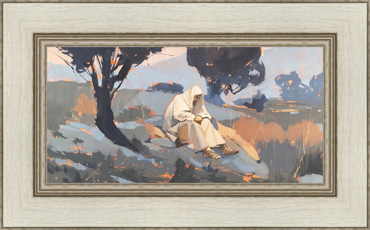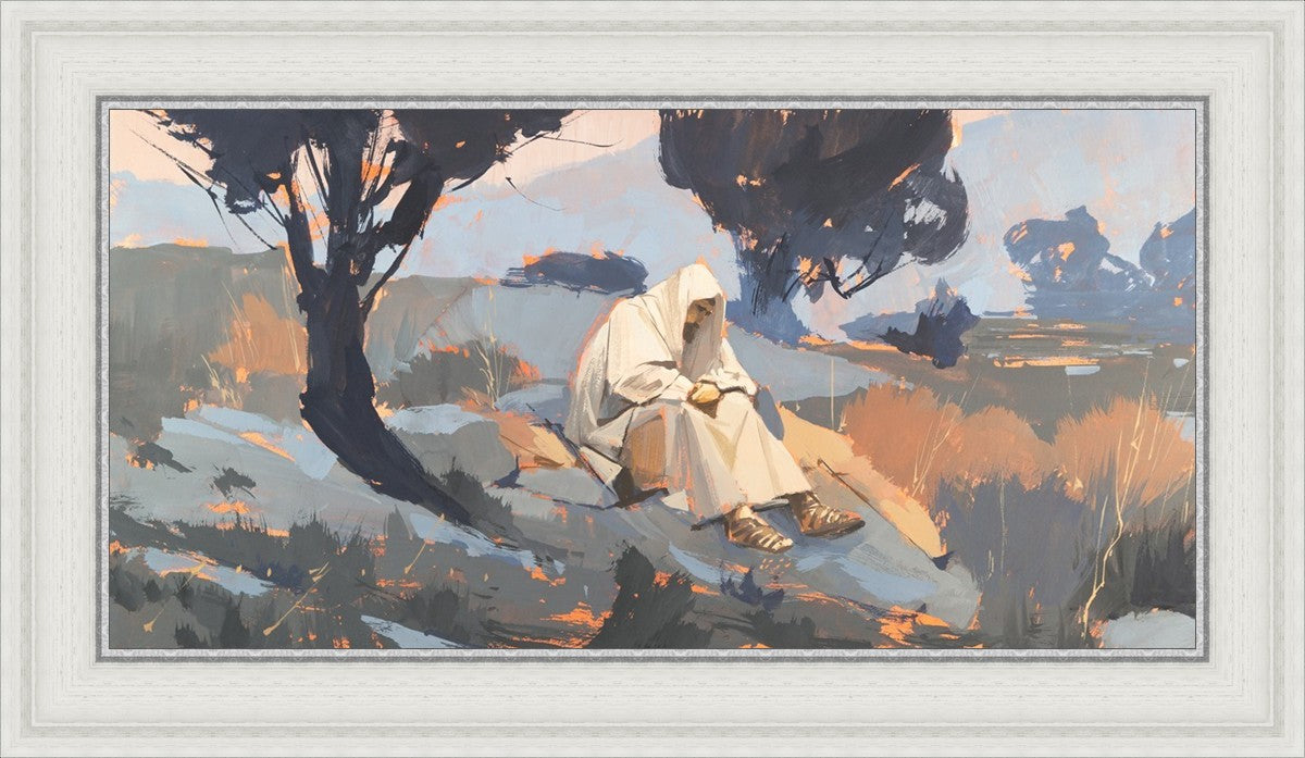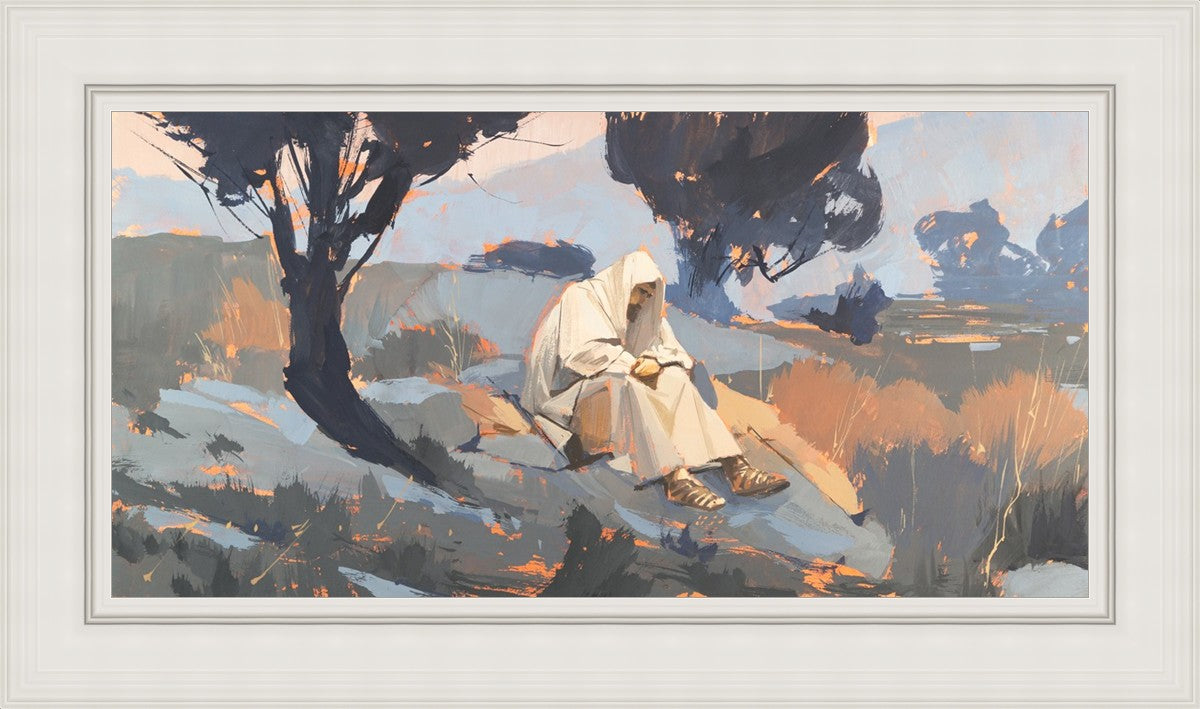Humble Prayer is a depiction of Christ praying in a solitary place. I like to think that Christ had times where he sought solitude and peace away from the hustle and bustle of life and people. I feel that nature has a way of healing us and creates an atmosphere where we can reflect on things and perhaps get clarity of mind.