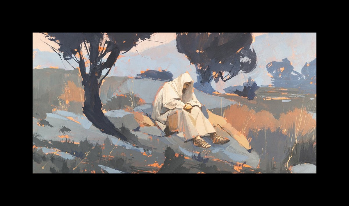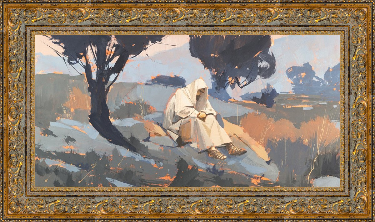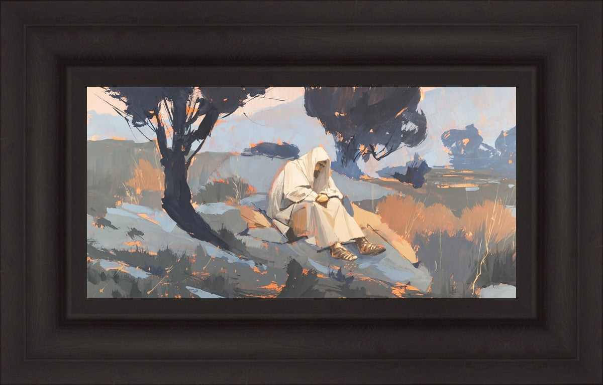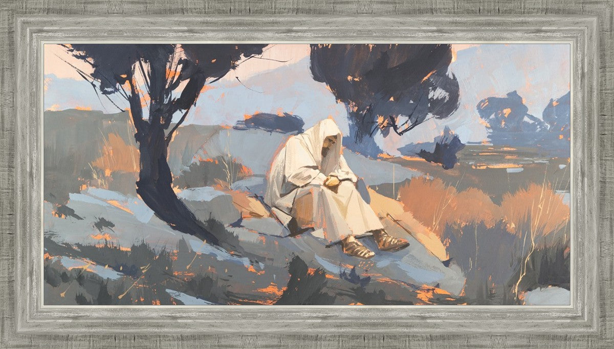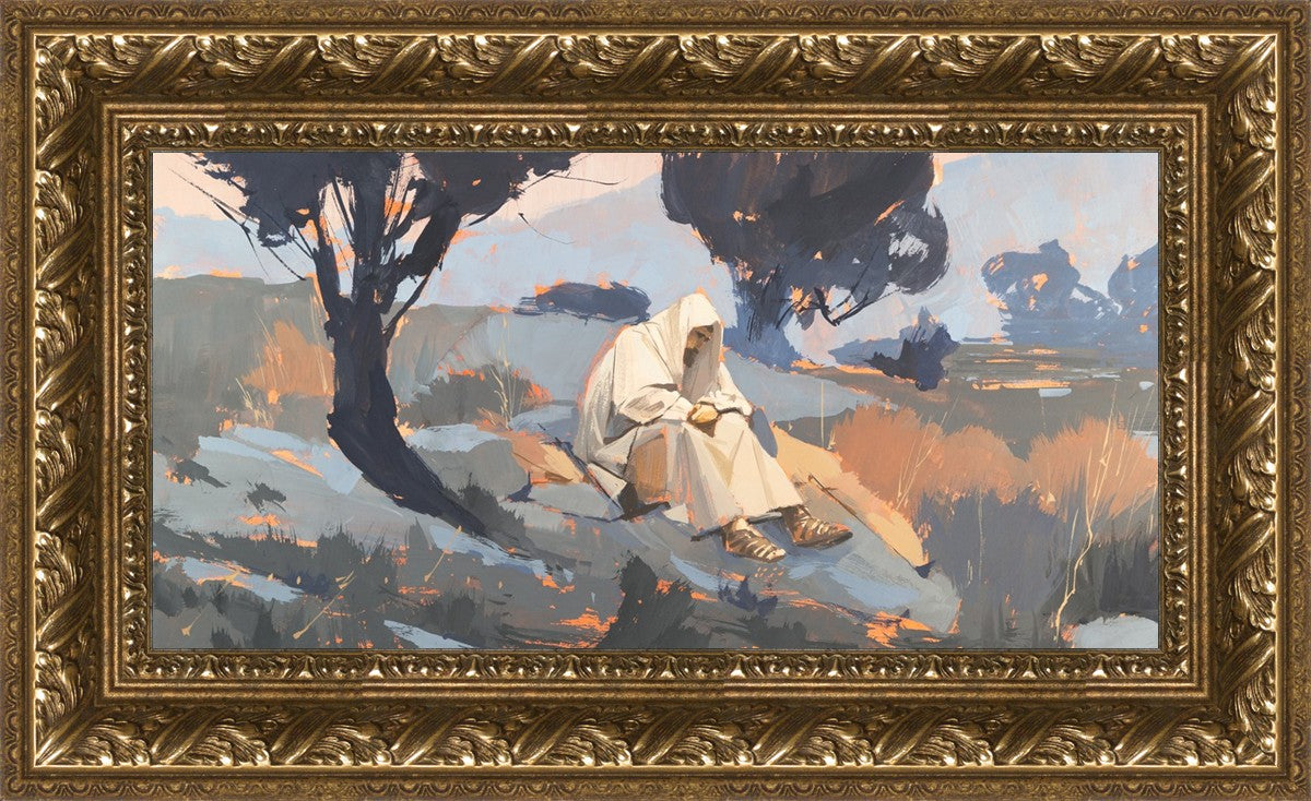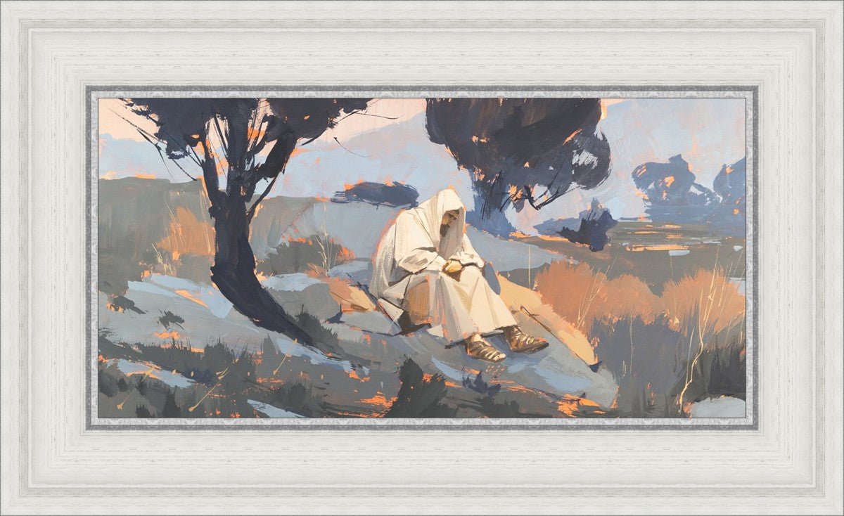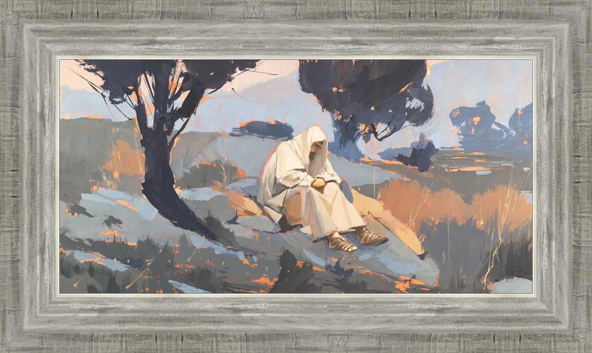 Humble Prayer is a depiction of Christ praying in a solitary place. I like to think that Christ had times where he sought solitude and peace away from the hustle and bustle of life and people. I feel that nature has a way of healing us and creates an atmosphere where we can reflect on things and perhaps get clarity of mind.