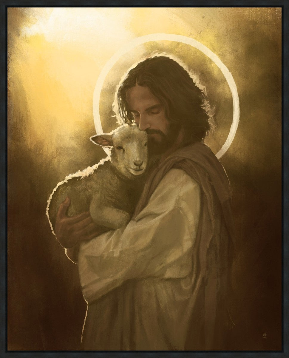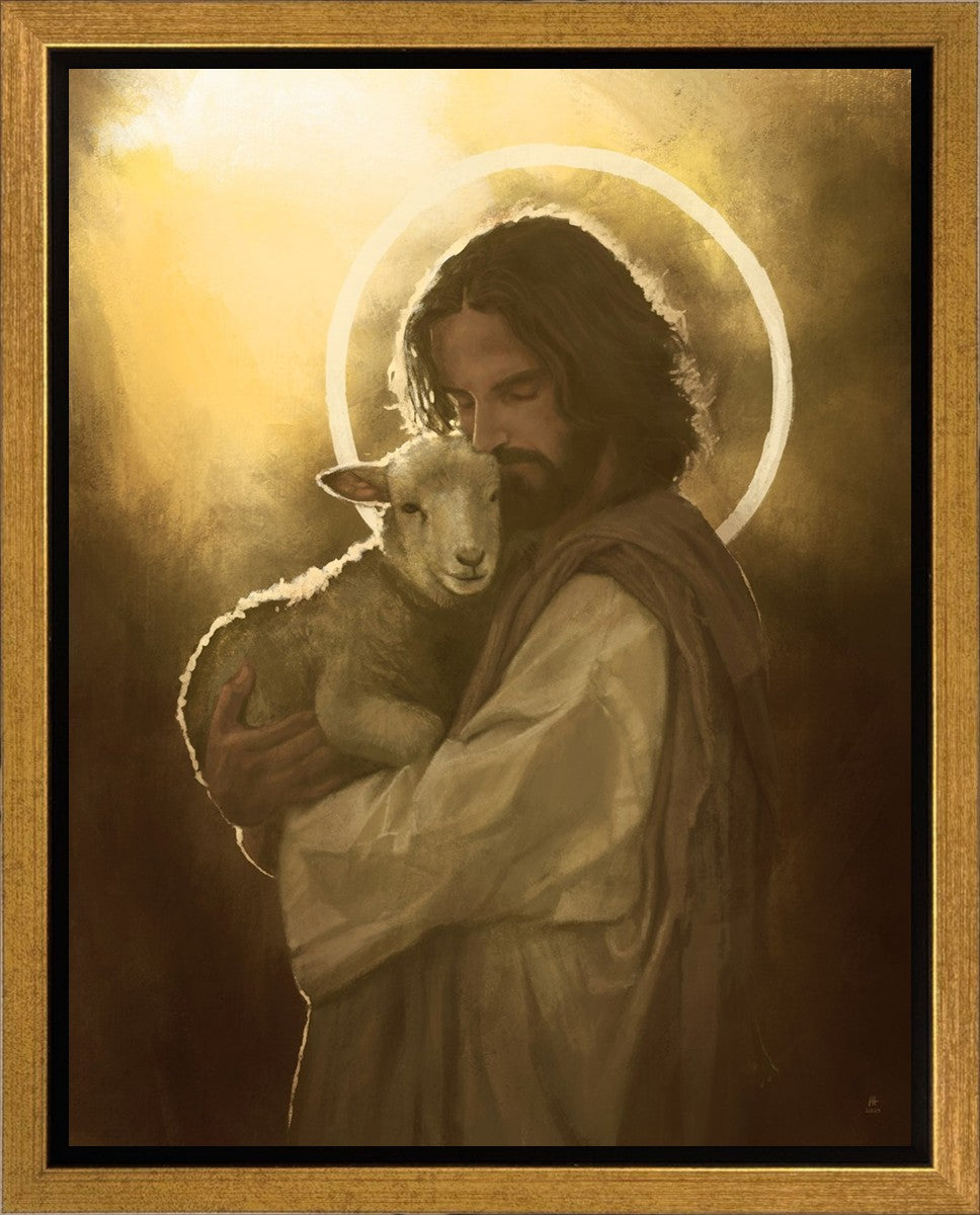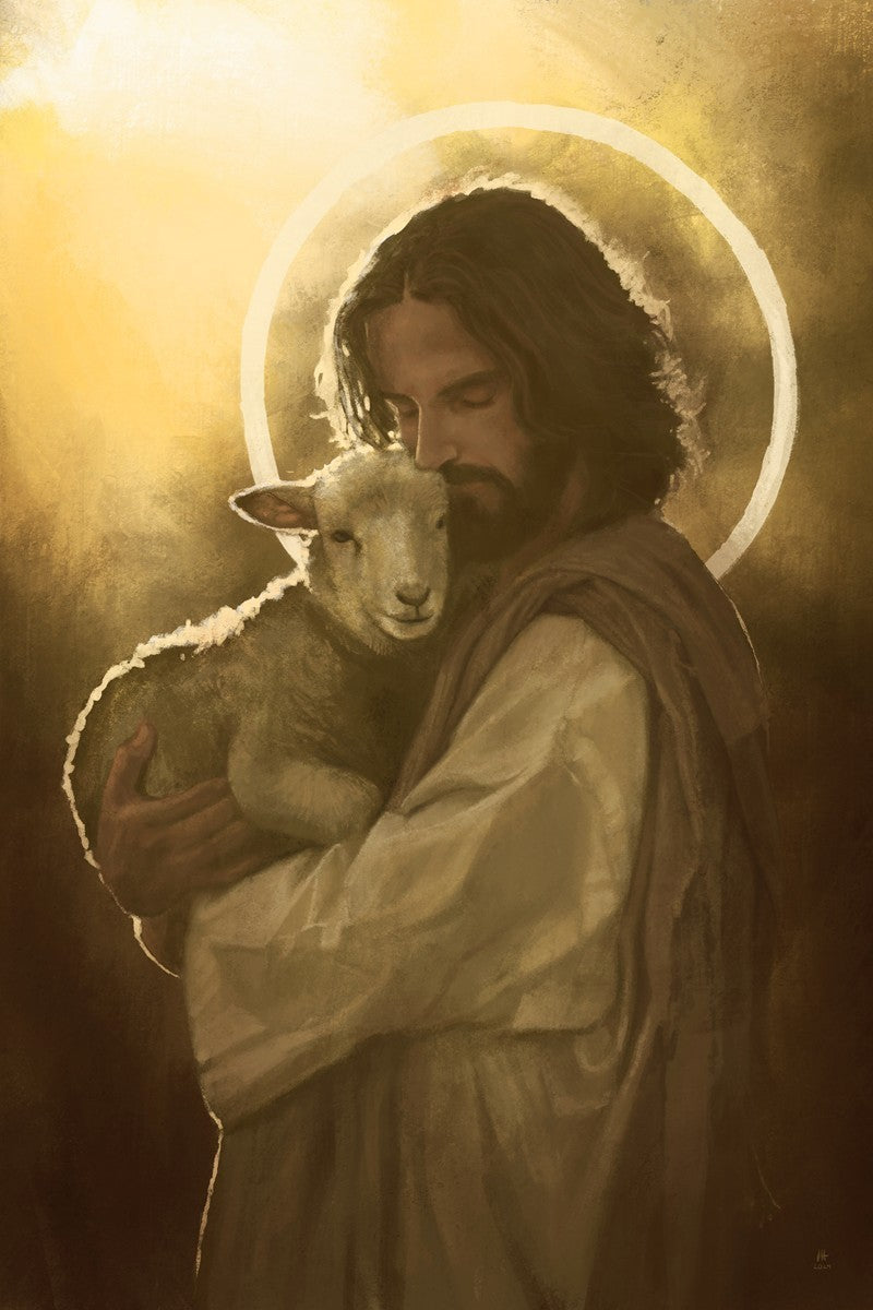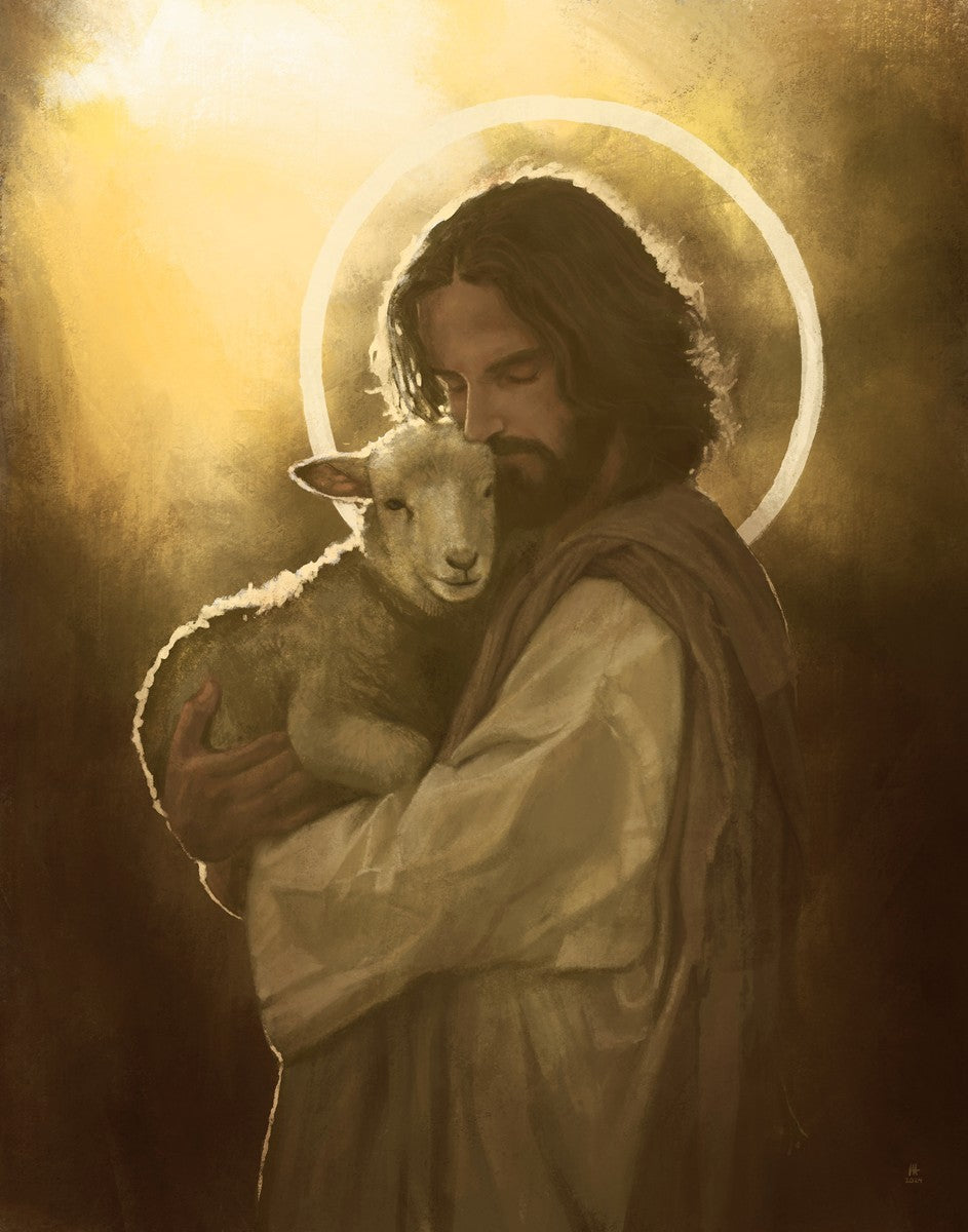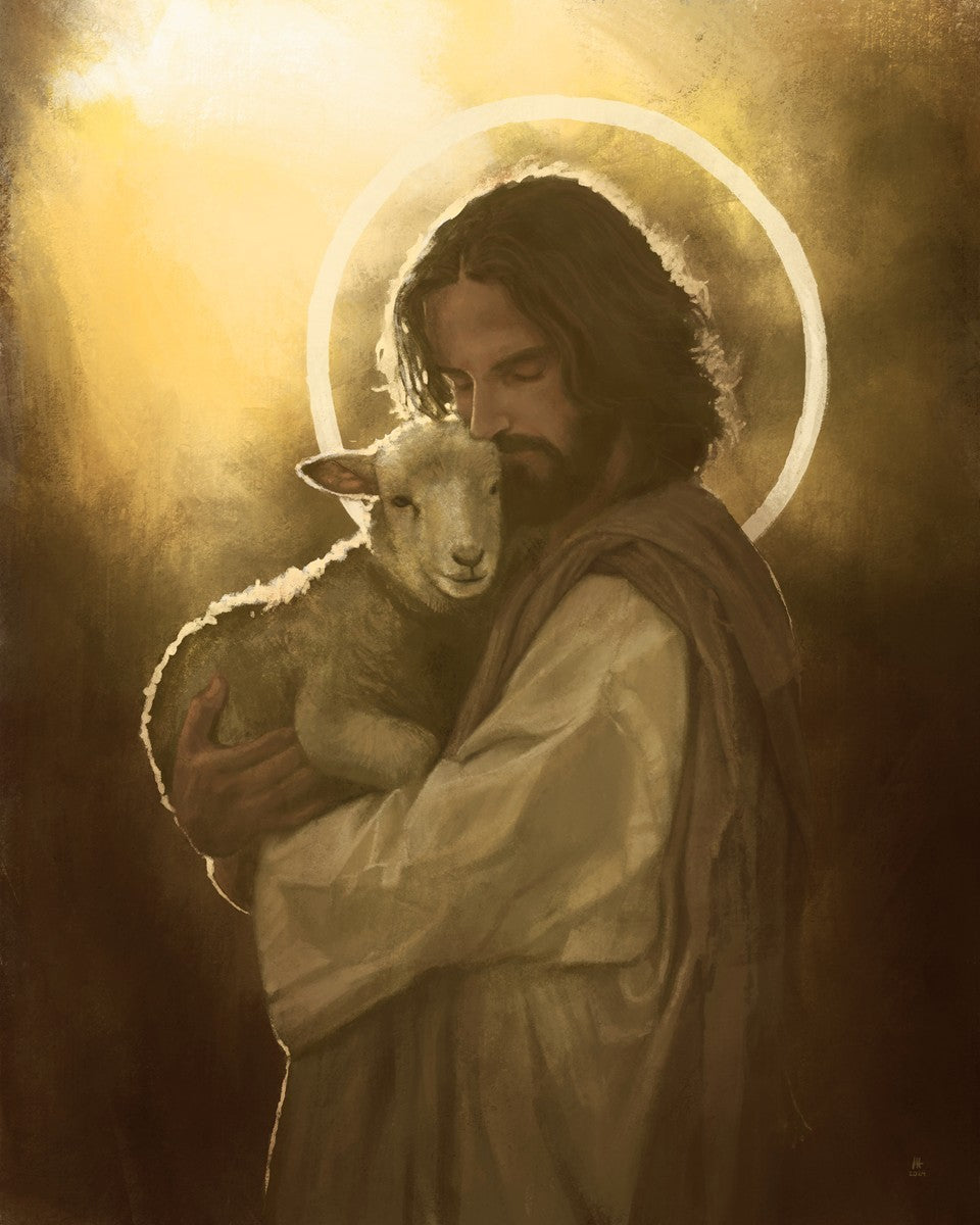 In the Parable of the lost sheep, (Luke 15:3-7) Jesus rejoices in the return of the lost lamb that had strayed from the fold. Jesus said when [the shepard] comes home, he calls together his friends, his family and his neighbors, saying to them, 'Rejoice with me, for I have found my sheep which was lost!' I wanted to portray the happiness and Joy that the Savior felt with the return of just one lost sheep. Because we are all individually like the lost sheep, but the one lost sheep matters and without Christ's Atonement we are all lost.