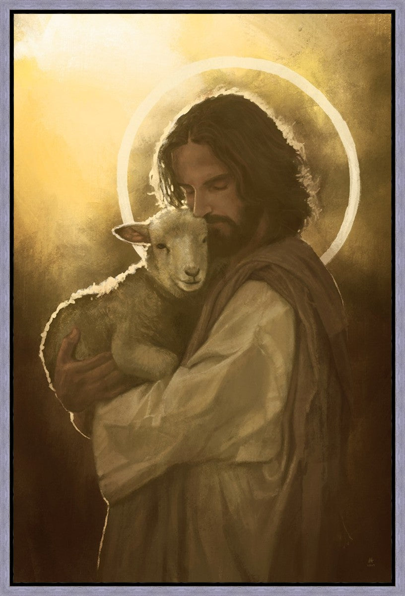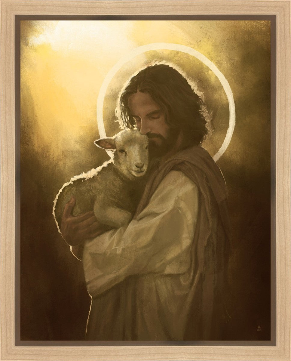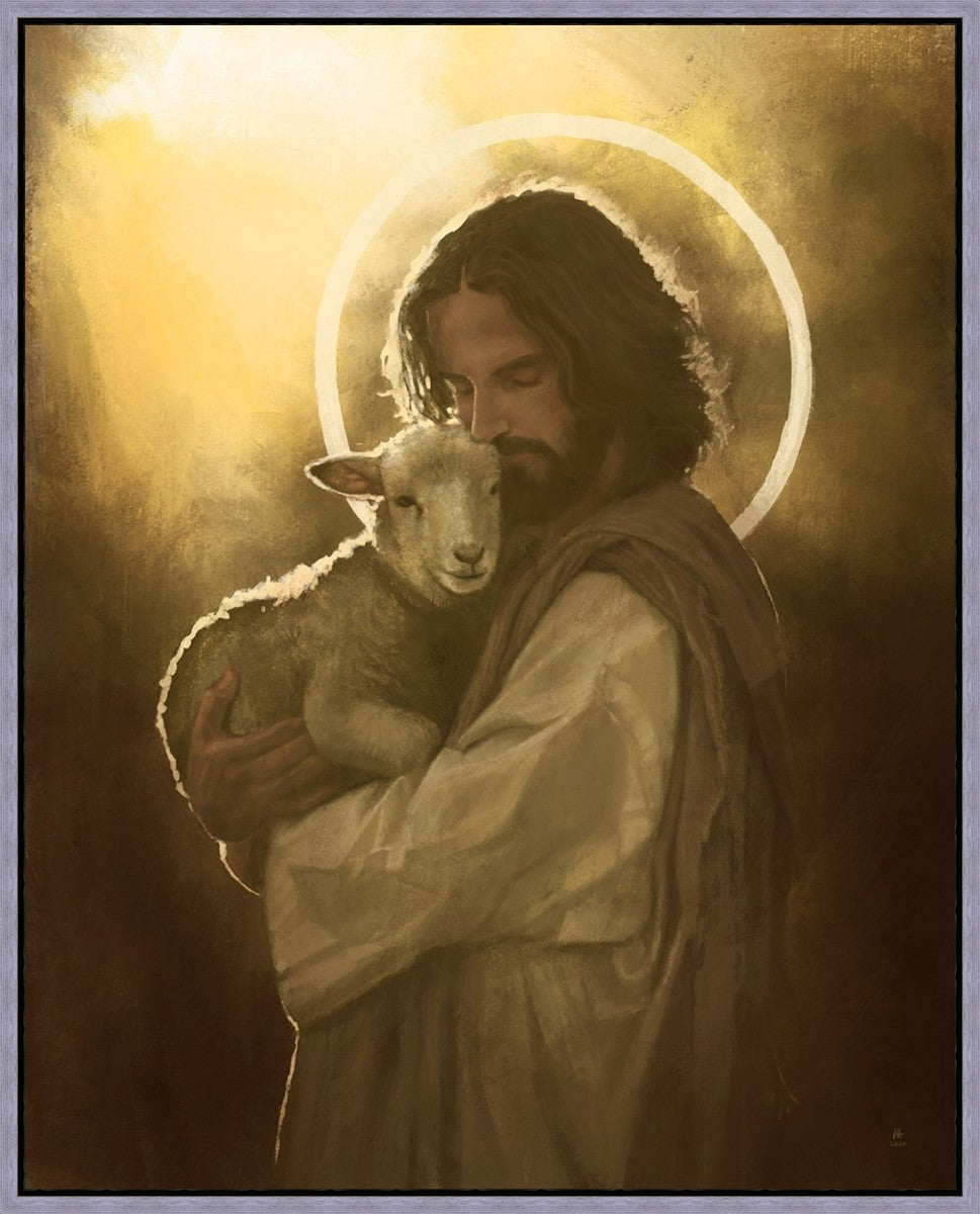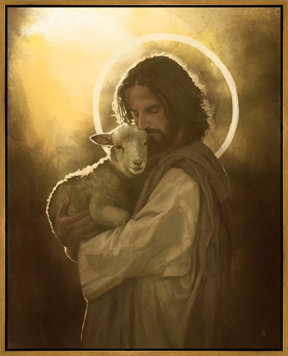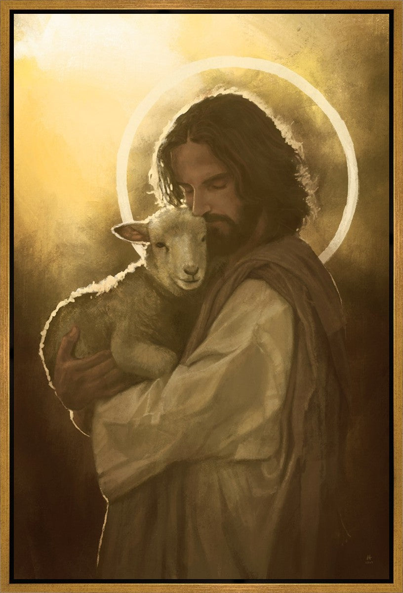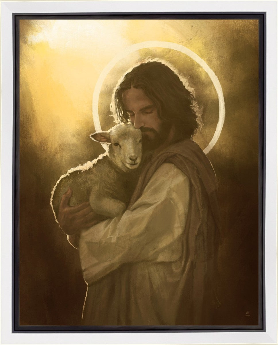 In the Parable of the lost sheep, (Luke 15:3-7) Jesus rejoices in the return of the lost lamb that had strayed from the fold. Jesus said when [the shepard] comes home, he calls together his friends, his family and his neighbors, saying to them, 'Rejoice with me, for I have found my sheep which was lost!' I wanted to portray the happiness and Joy that the Savior felt with the return of just one lost sheep. Because we are all individually like the lost sheep, but the one lost sheep matters and without Christ's Atonement we are all lost.