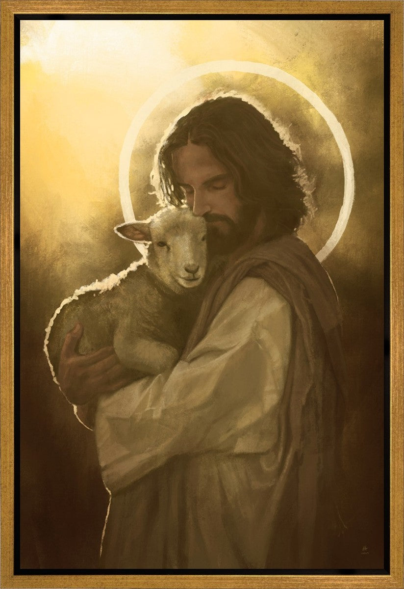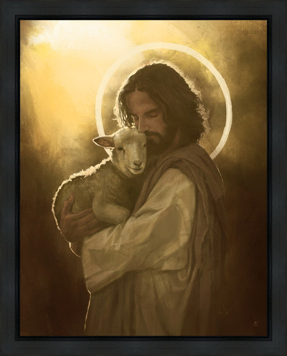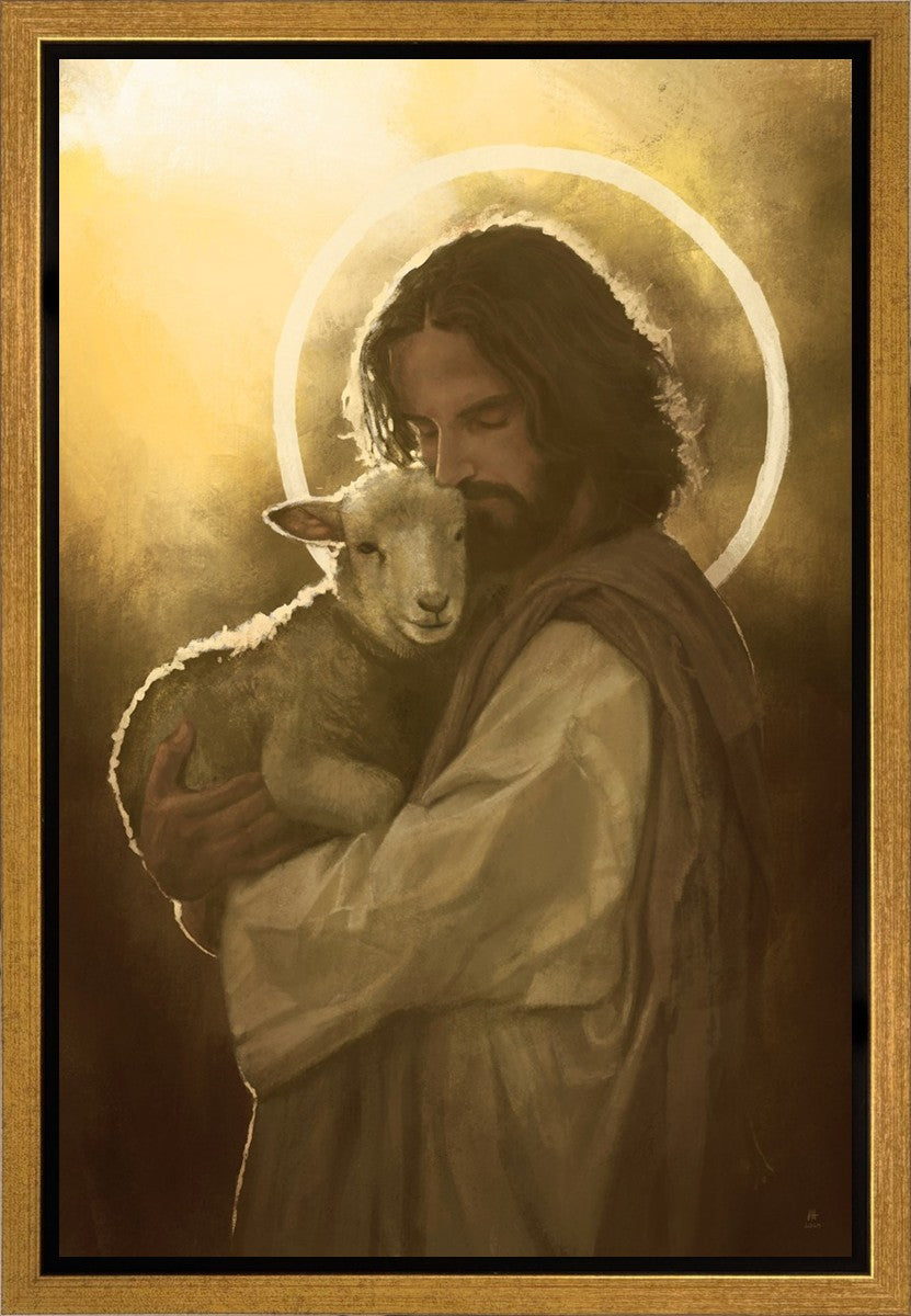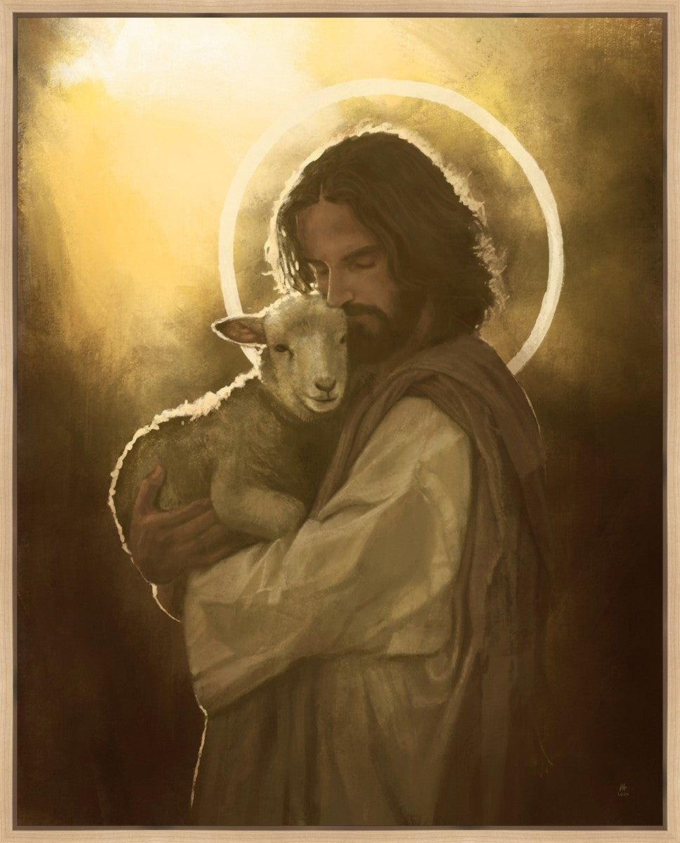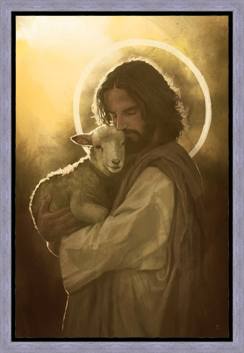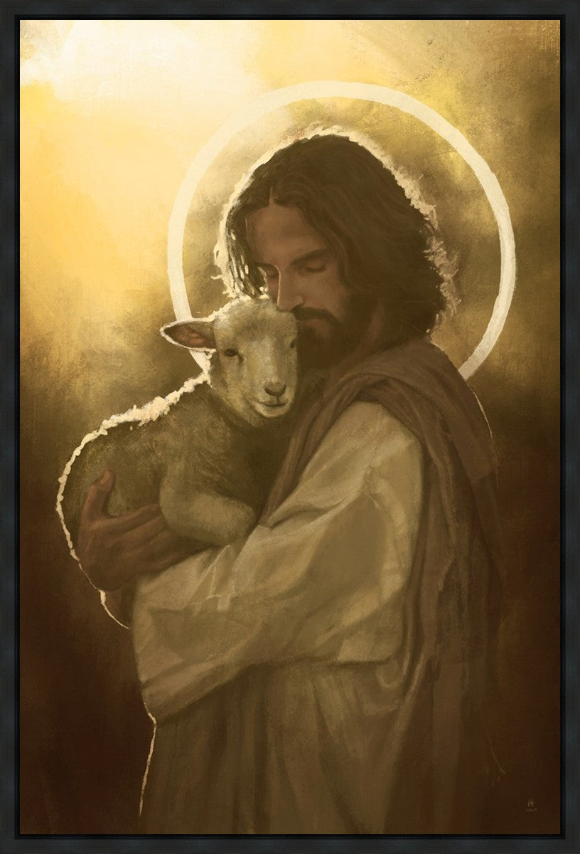 In the Parable of the lost sheep, (Luke 15:3-7) Jesus rejoices in the return of the lost lamb that had strayed from the fold. Jesus said when [the shepard] comes home, he calls together his friends, his family and his neighbors, saying to them, 'Rejoice with me, for I have found my sheep which was lost!' I wanted to portray the happiness and Joy that the Savior felt with the return of just one lost sheep. Because we are all individually like the lost sheep, but the one lost sheep matters and without Christ's Atonement we are all lost.