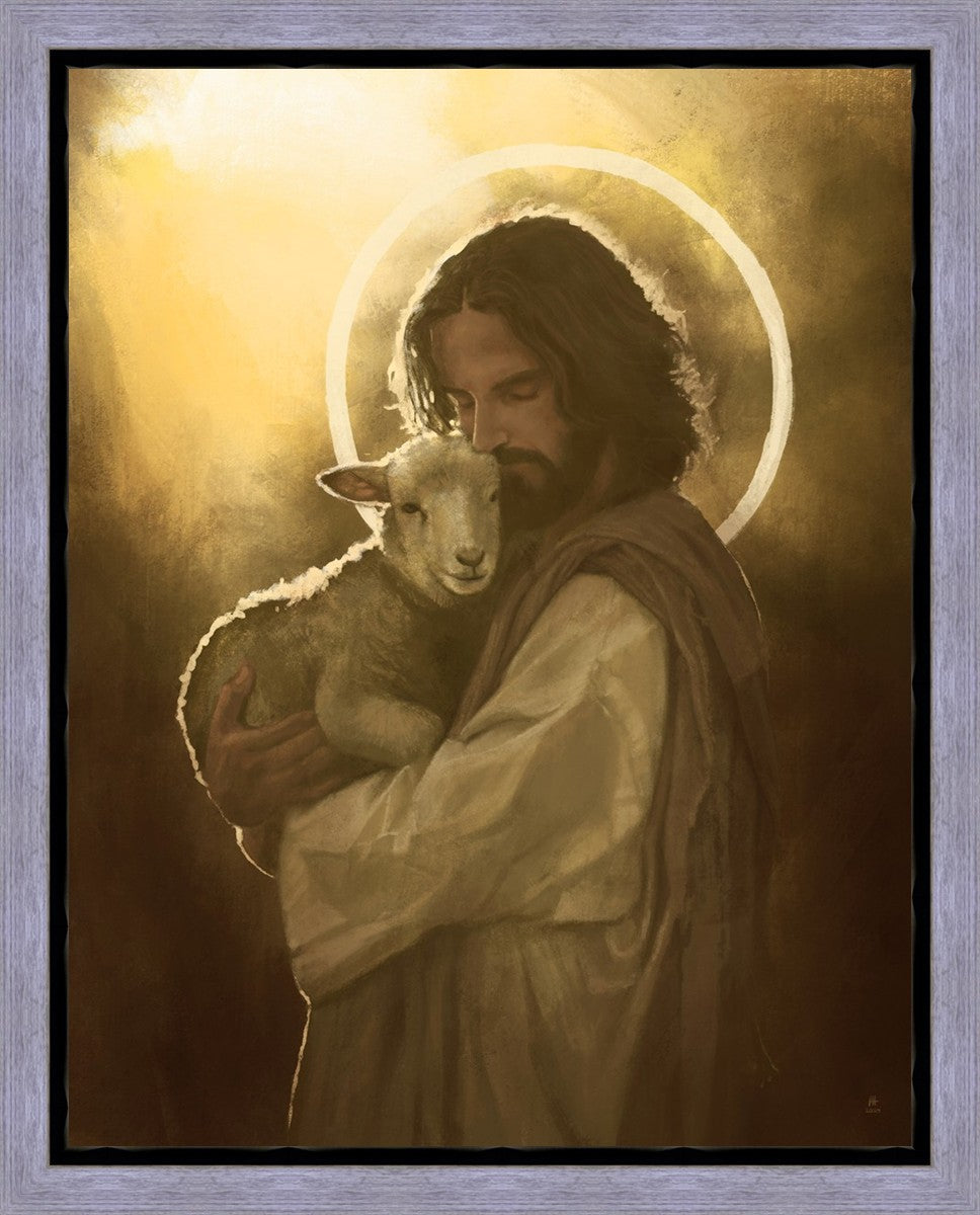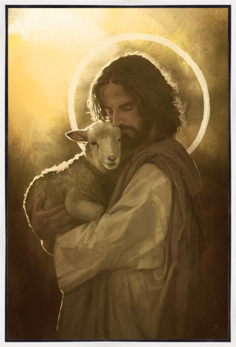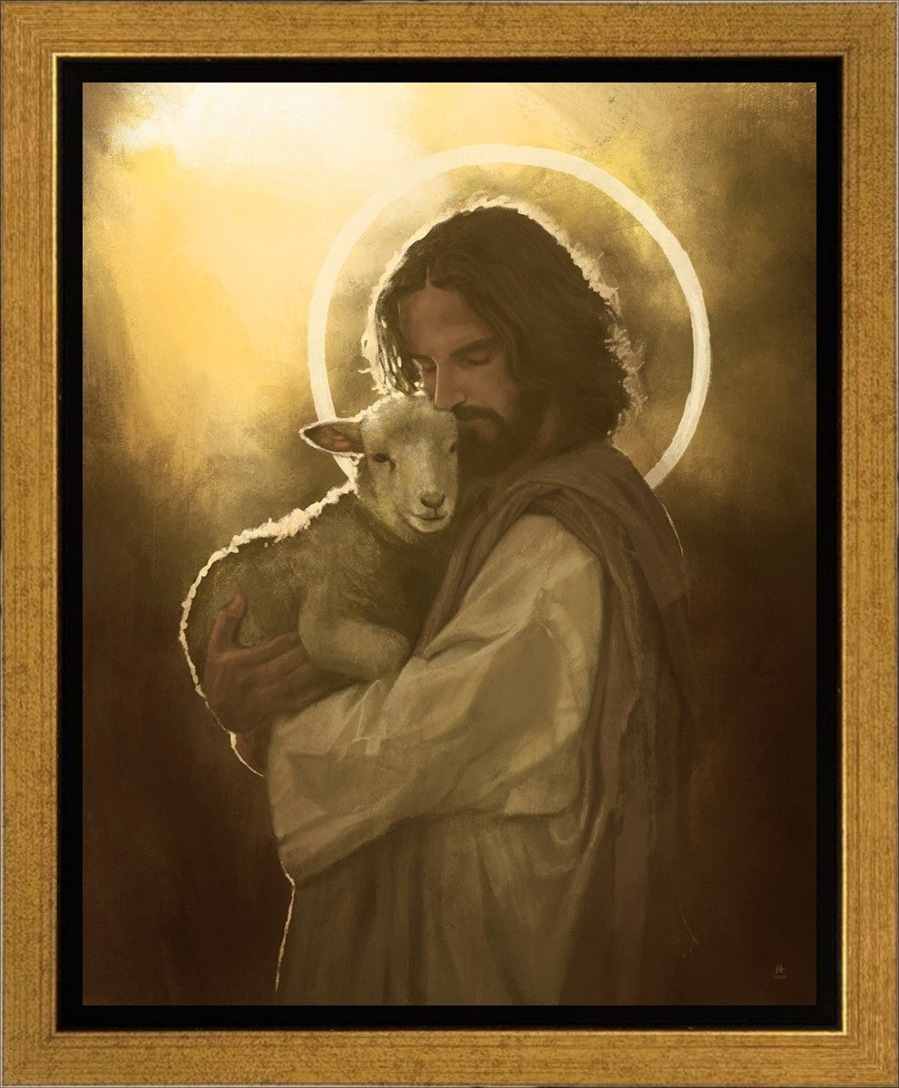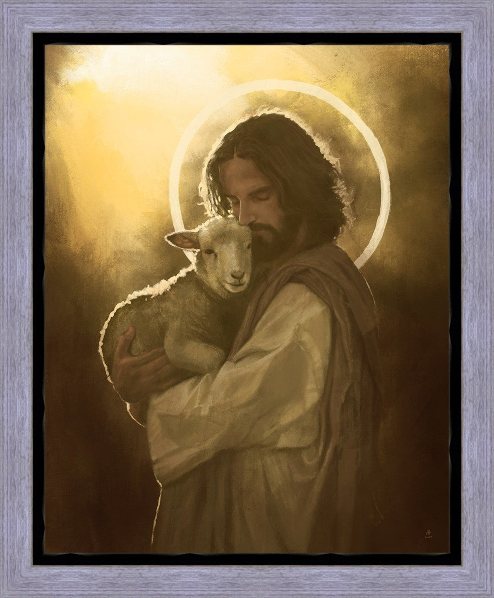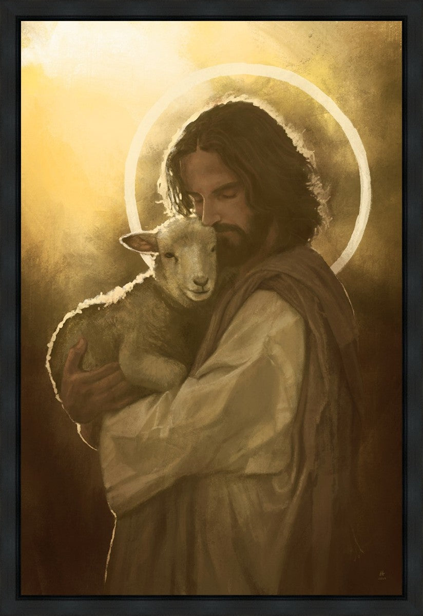 In the Parable of the lost sheep, (Luke 15:3-7) Jesus rejoices in the return of the lost lamb that had strayed from the fold. Jesus said when [the shepard] comes home, he calls together his friends, his family and his neighbors, saying to them, 'Rejoice with me, for I have found my sheep which was lost!' I wanted to portray the happiness and Joy that the Savior felt with the return of just one lost sheep. Because we are all individually like the lost sheep, but the one lost sheep matters and without Christ's Atonement we are all lost.