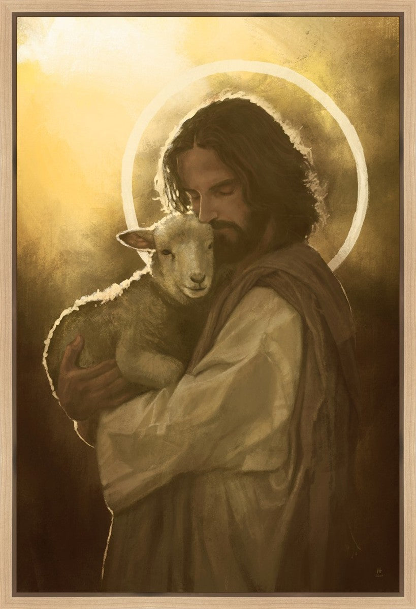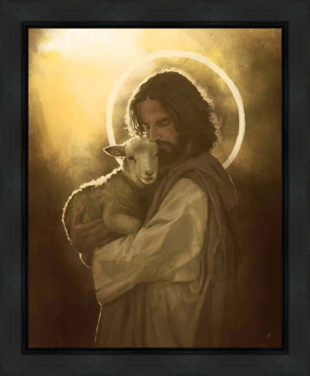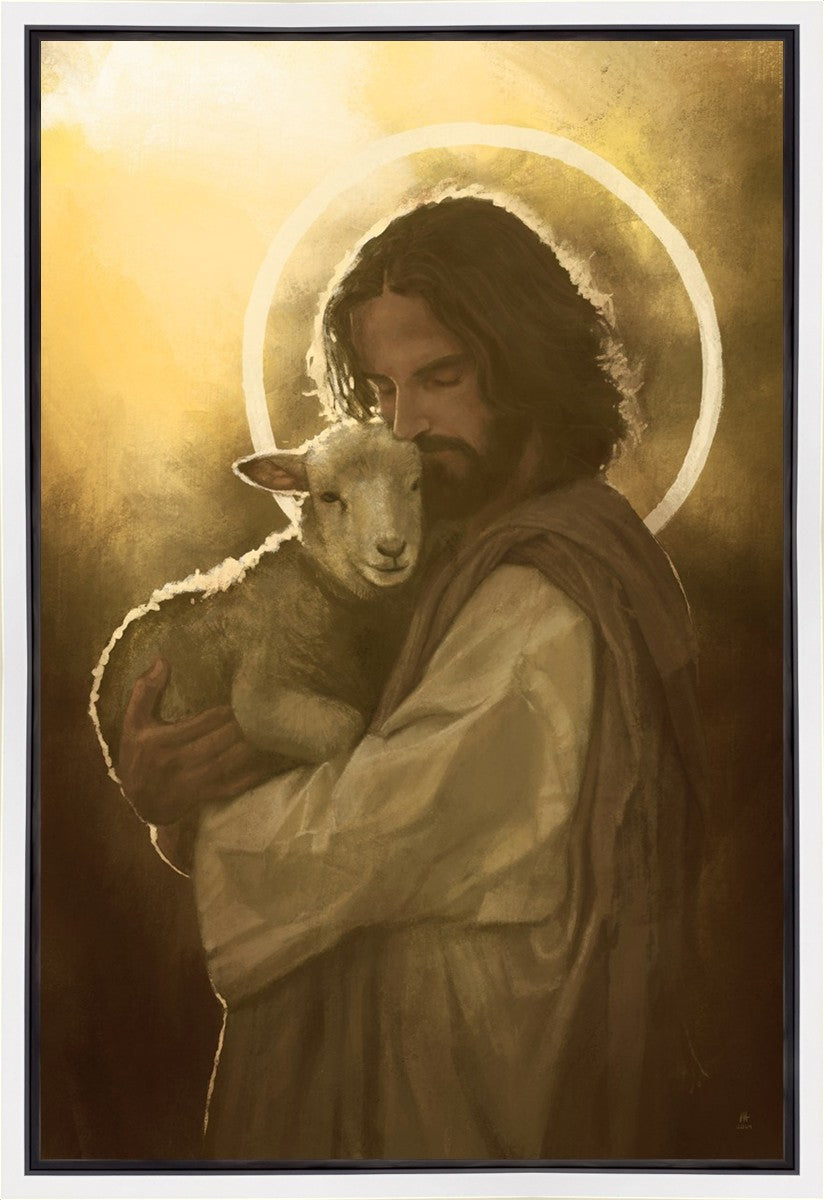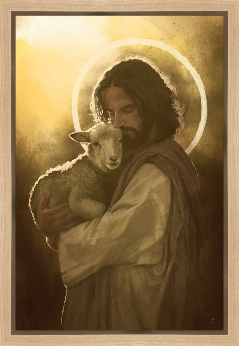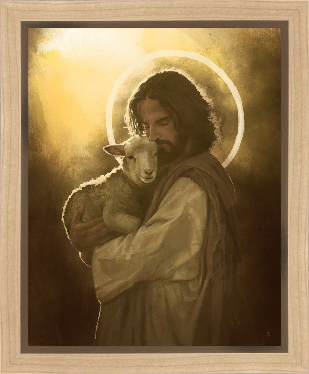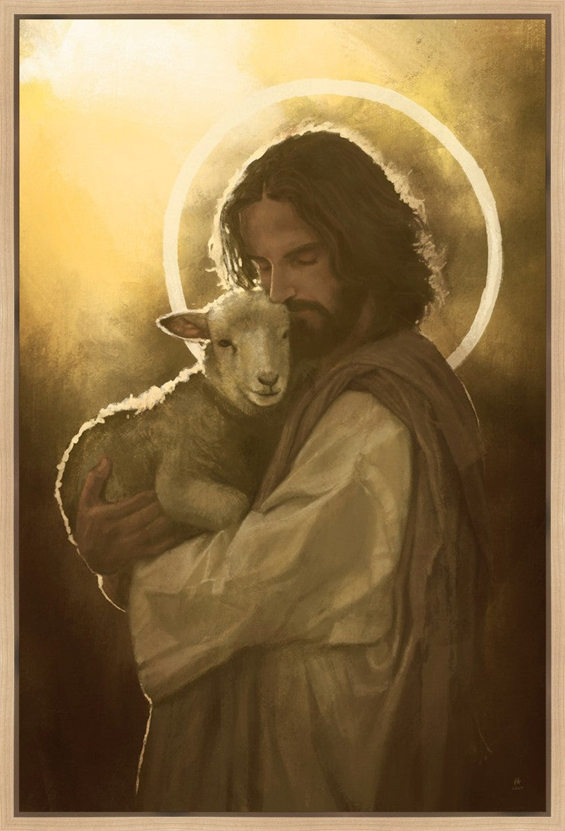 In the Parable of the lost sheep, (Luke 15:3-7) Jesus rejoices in the return of the lost lamb that had strayed from the fold. Jesus said when [the shepard] comes home, he calls together his friends, his family and his neighbors, saying to them, 'Rejoice with me, for I have found my sheep which was lost!' I wanted to portray the happiness and Joy that the Savior felt with the return of just one lost sheep. Because we are all individually like the lost sheep, but the one lost sheep matters and without Christ's Atonement we are all lost.