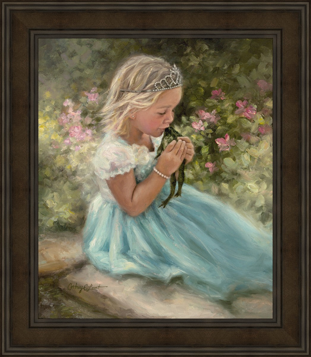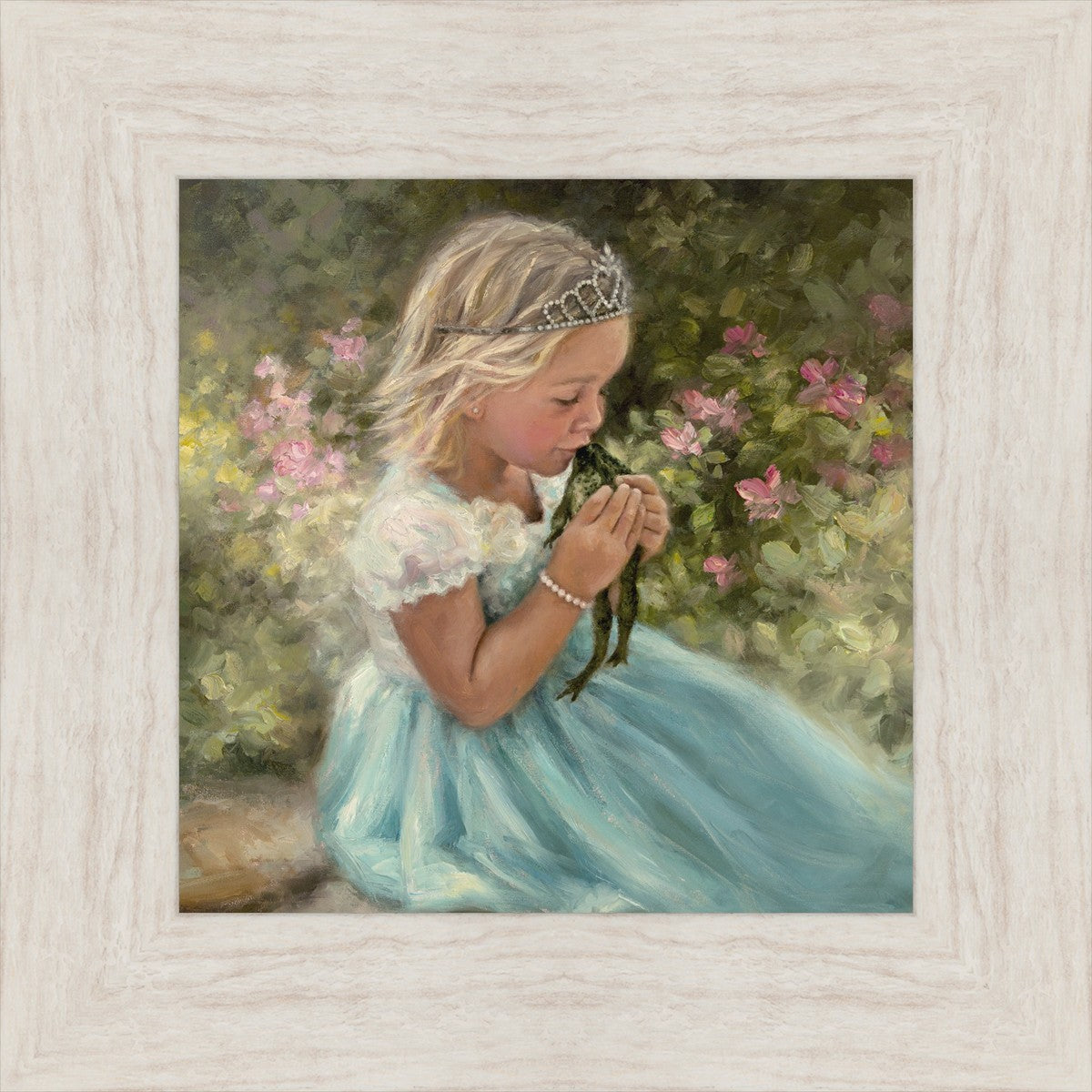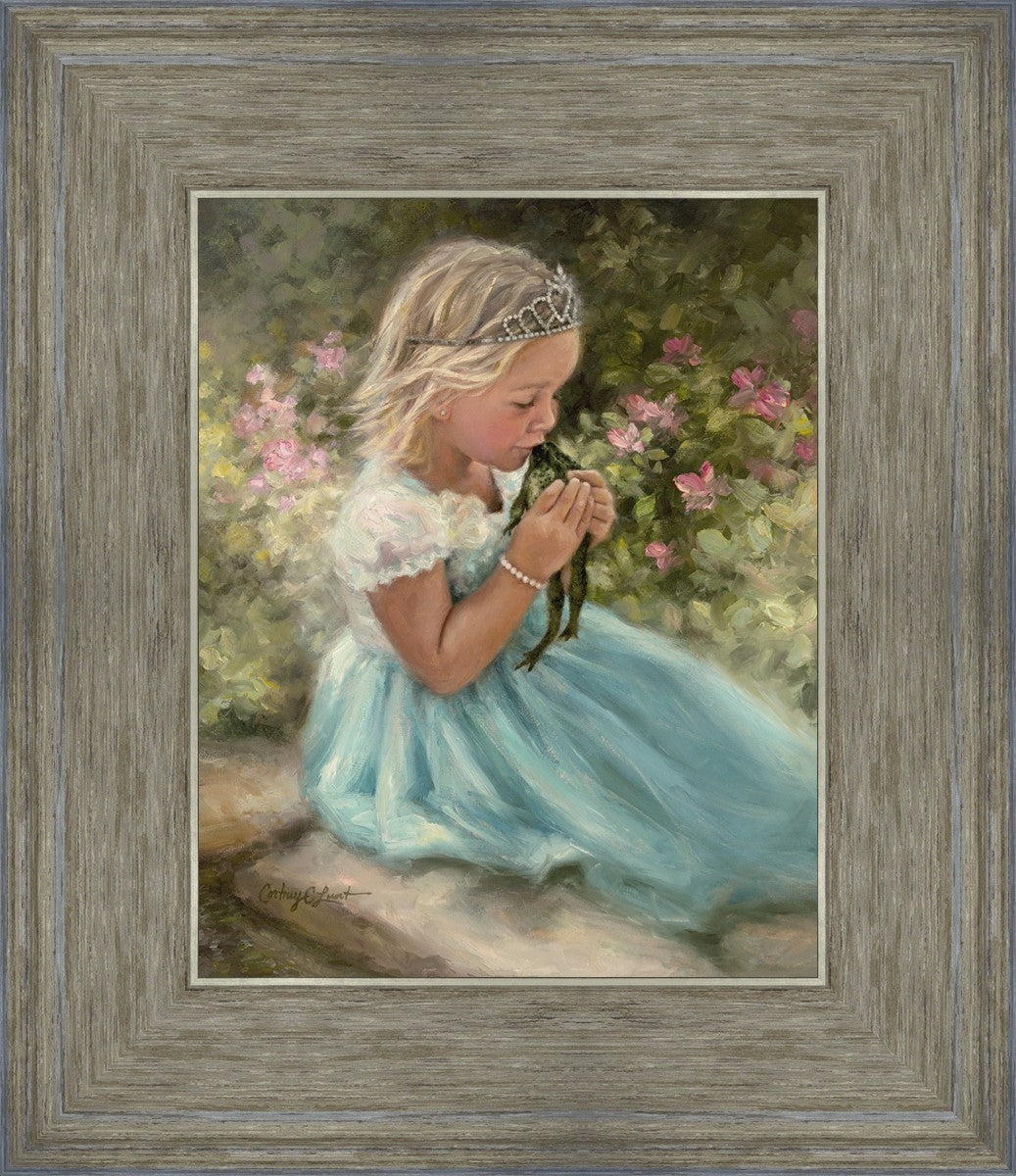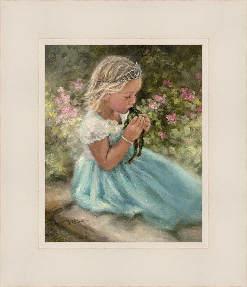 Little girls believe they are princesses. This girl, in particular, had no fear of kissing this toad! She was fully confident that her kiss could make something happen, and she knew she was special in her little gown. For some reason, when girls get a bit older, they forget to believe. They sometimes forget who they truly are. I hope that this painting can bring back some of that belief.