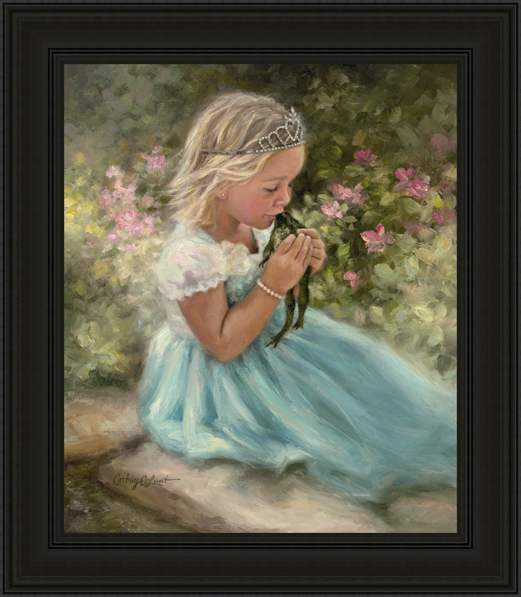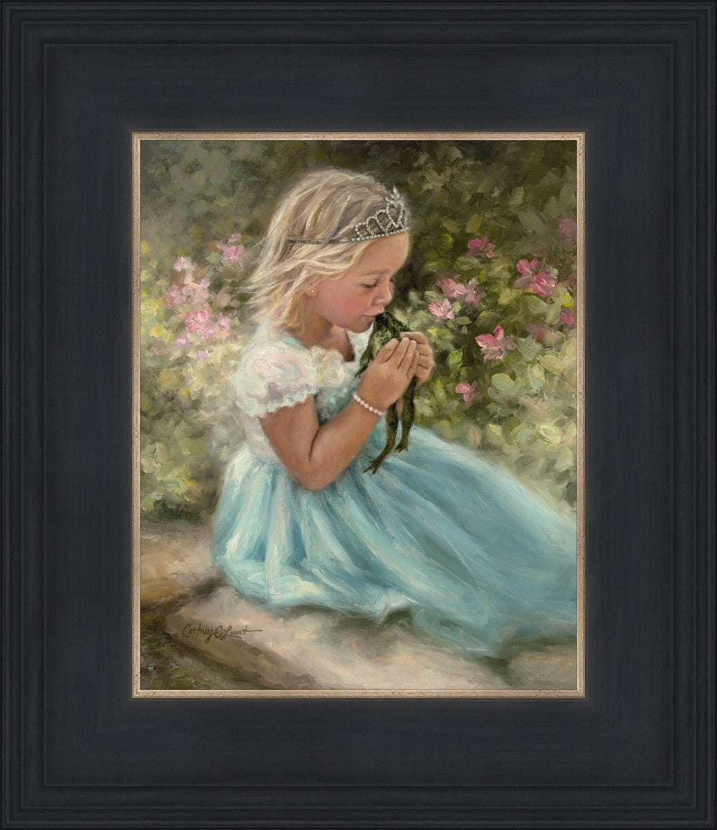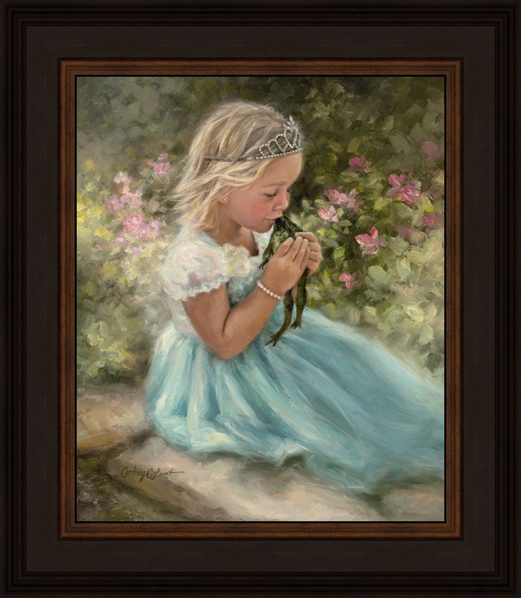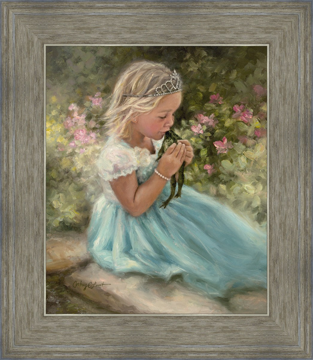 Little girls believe they are princesses. This girl, in particular, had no fear of kissing this toad! She was fully confident that her kiss could make something happen, and she knew she was special in her little gown. For some reason, when girls get a bit older, they forget to believe. They sometimes forget who they truly are. I hope that this painting can bring back some of that belief.