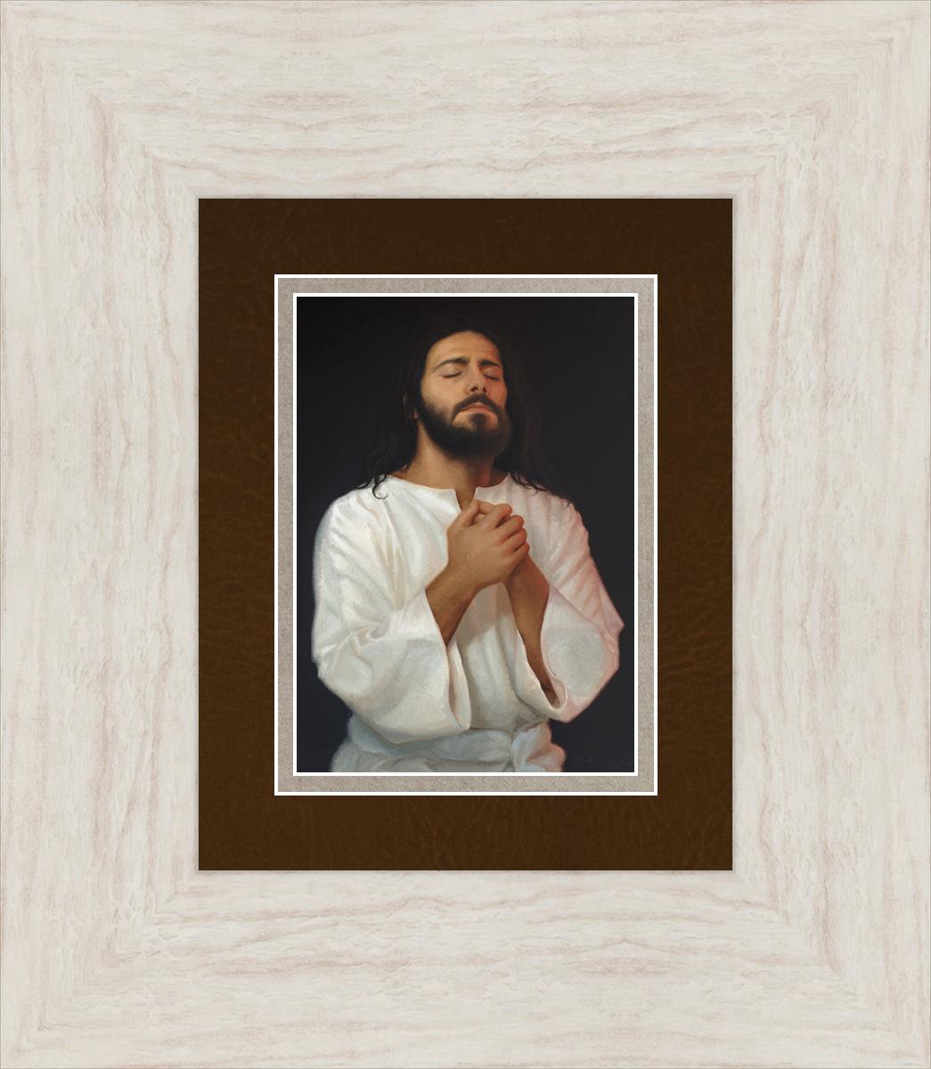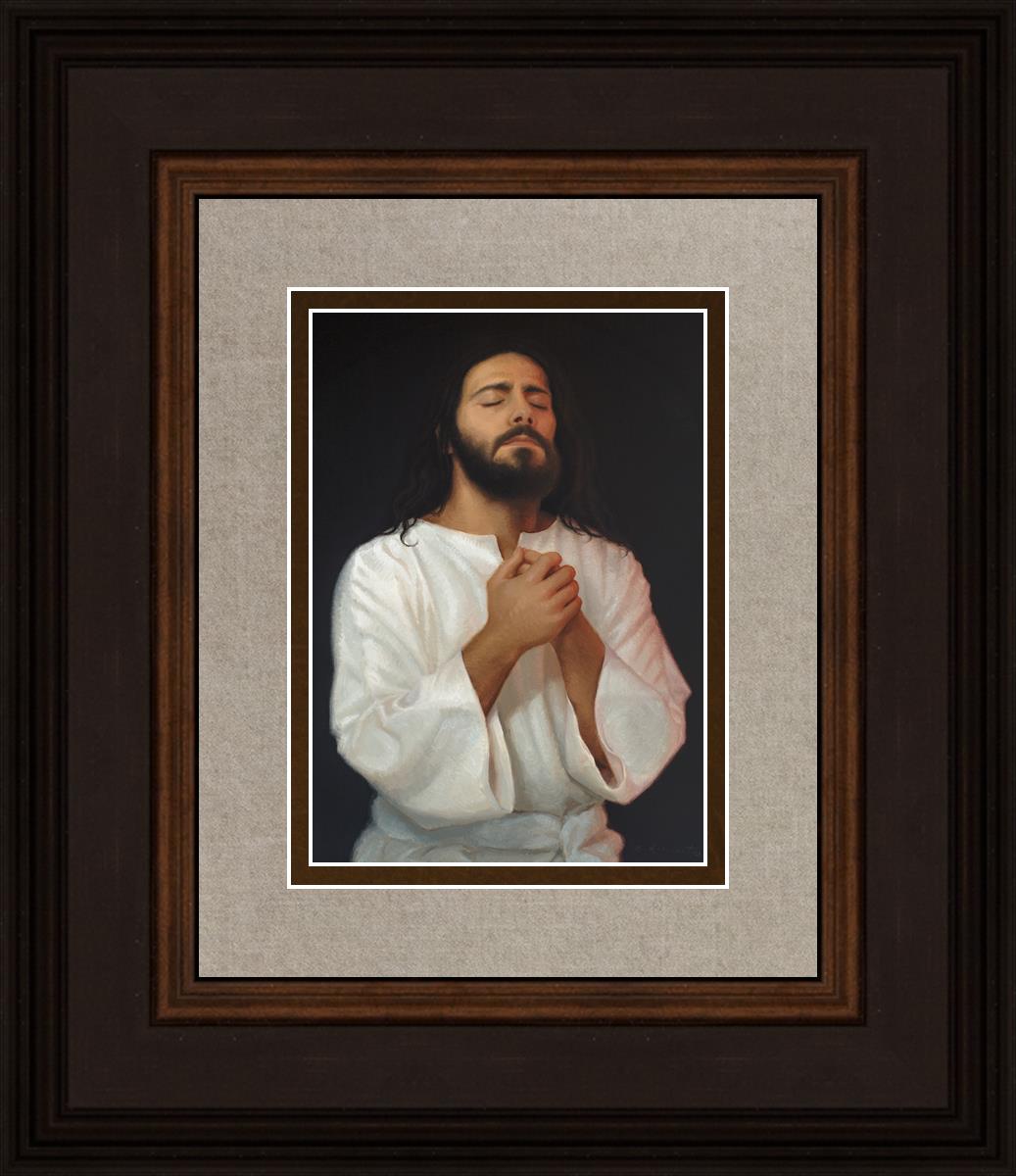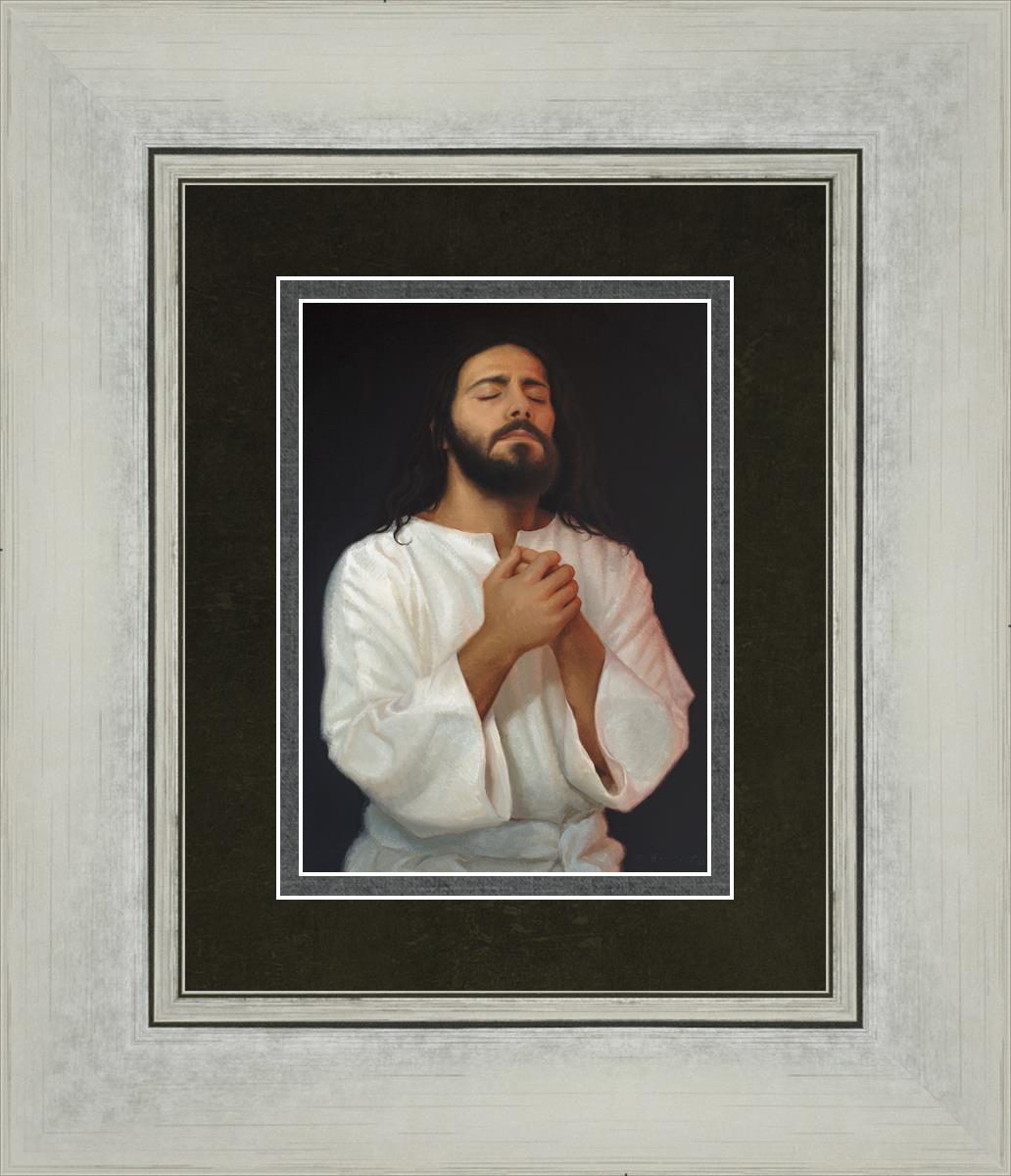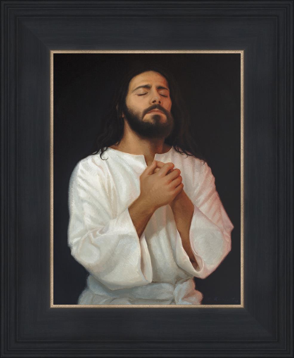 In verse 19, Jesus says that He sanctifies Himself that we might be sanctified. I think of His atonement which required His complete sanctification in order to overcome all things. And because of that, He offers me a way to become sanctified, too. In this painting there is a cool light shining on one side of Him, and a warm light hitting the other side of Him. These different colored lights represent how everything good is because of Jesus Christ while everything evil was overcome by Him. They all converge on Him, and He bore the weight and responsibility of it all. And He did it for you and me. I created this painting to help people remember that Jesus Christ prayed for them, and still prays for them.