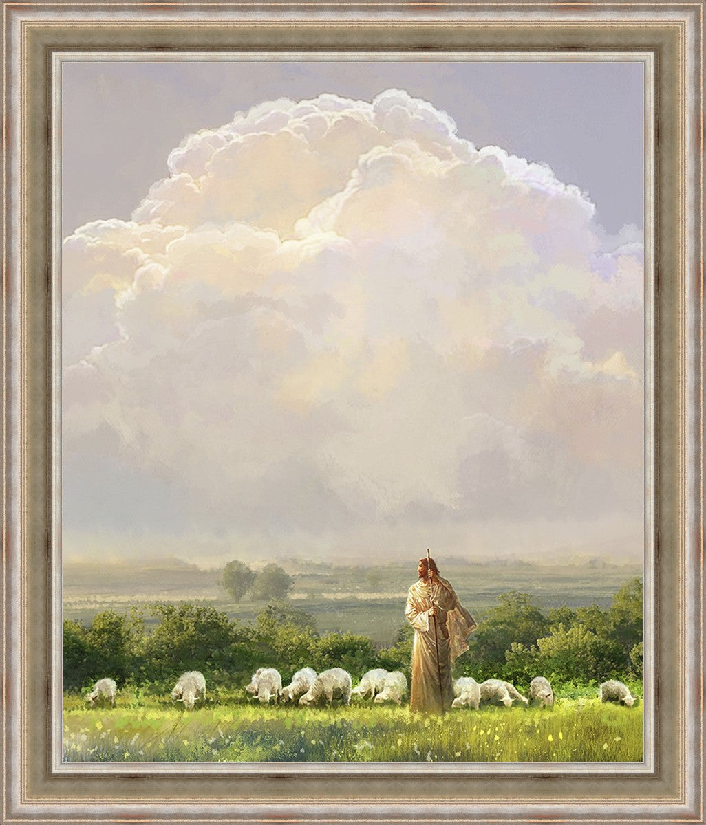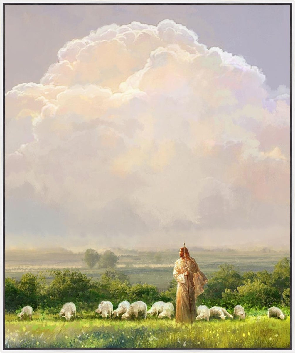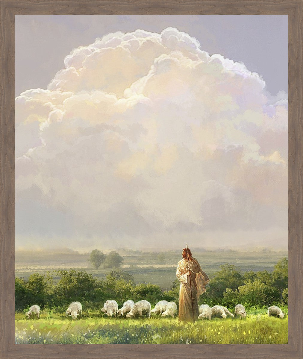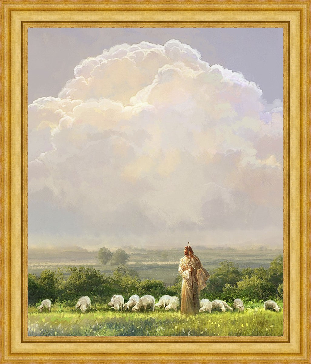 "I Shall Not Want" by Yongsung Kim features Jesus surrounded by His flock "