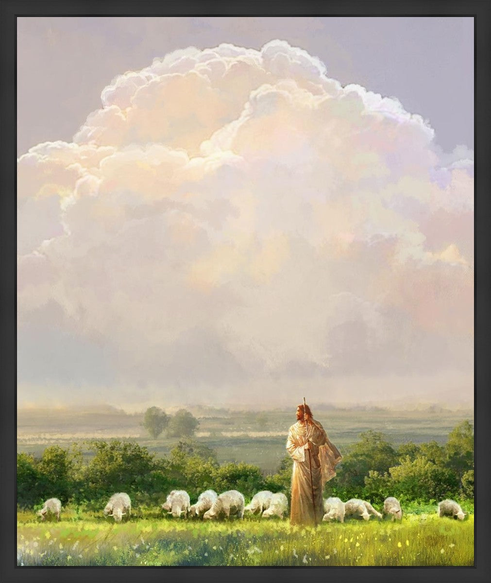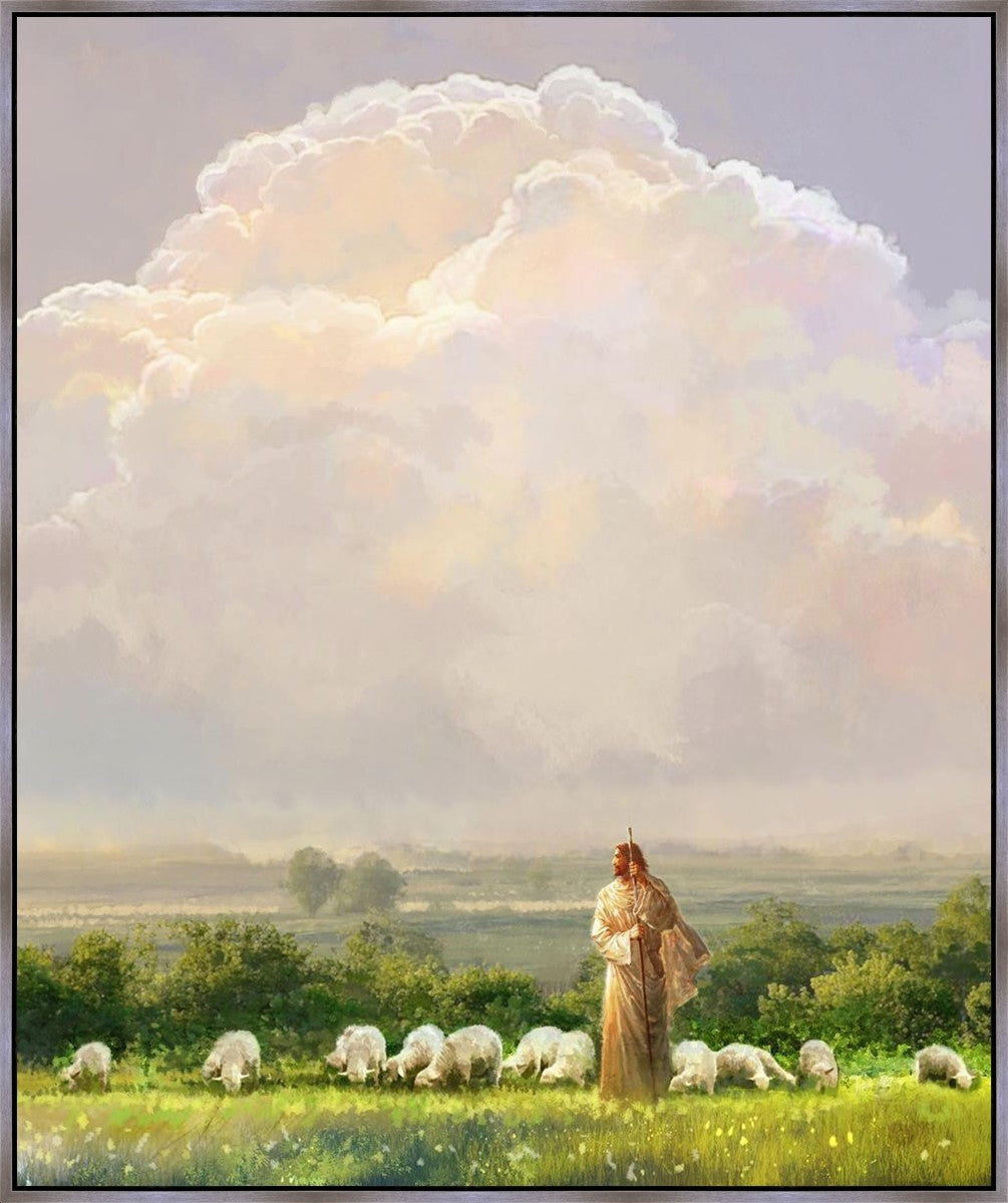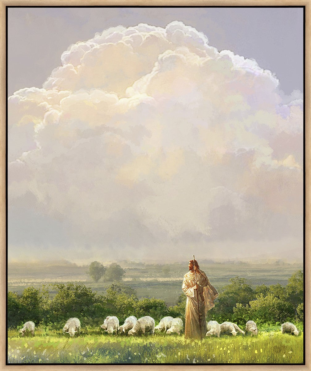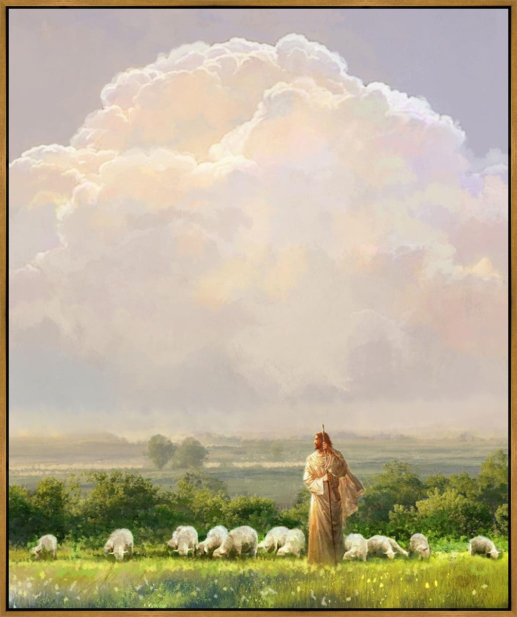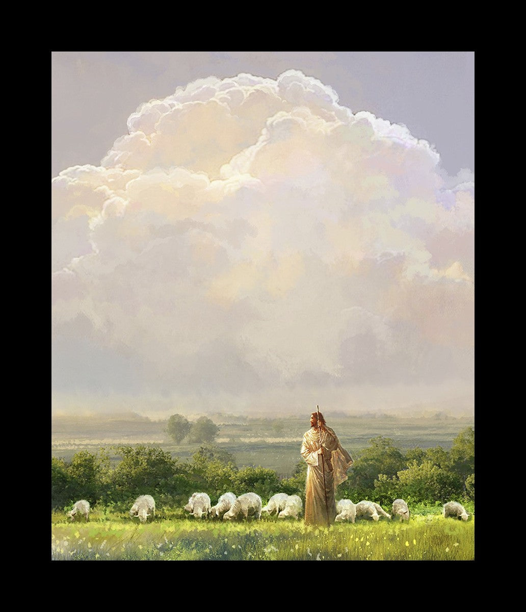 "I Shall Not Want" by Yongsung Kim features Jesus surrounded by His flock "