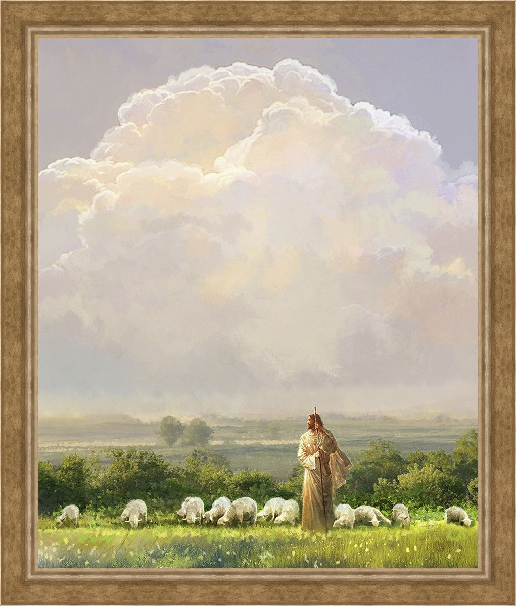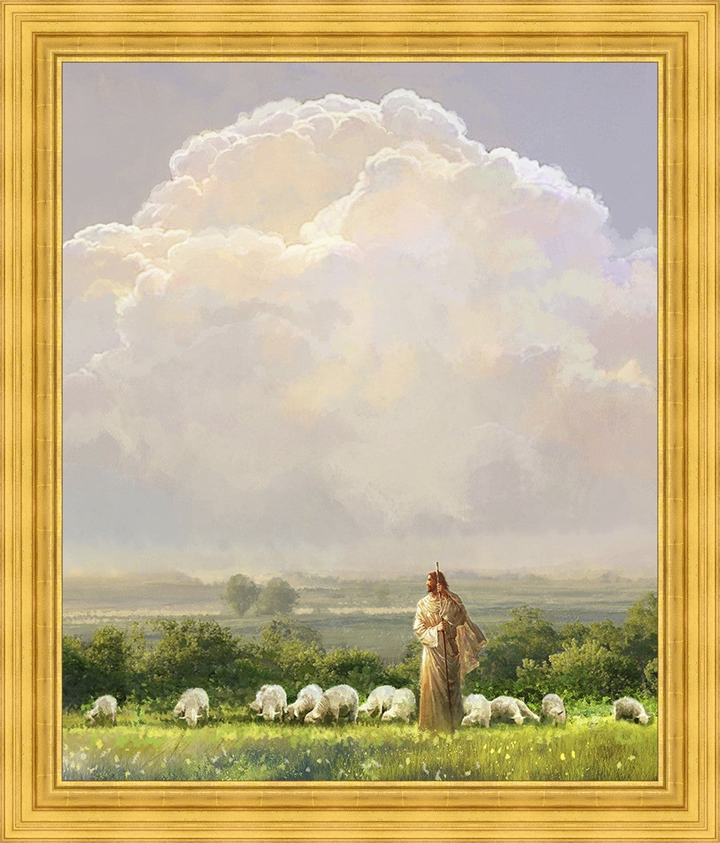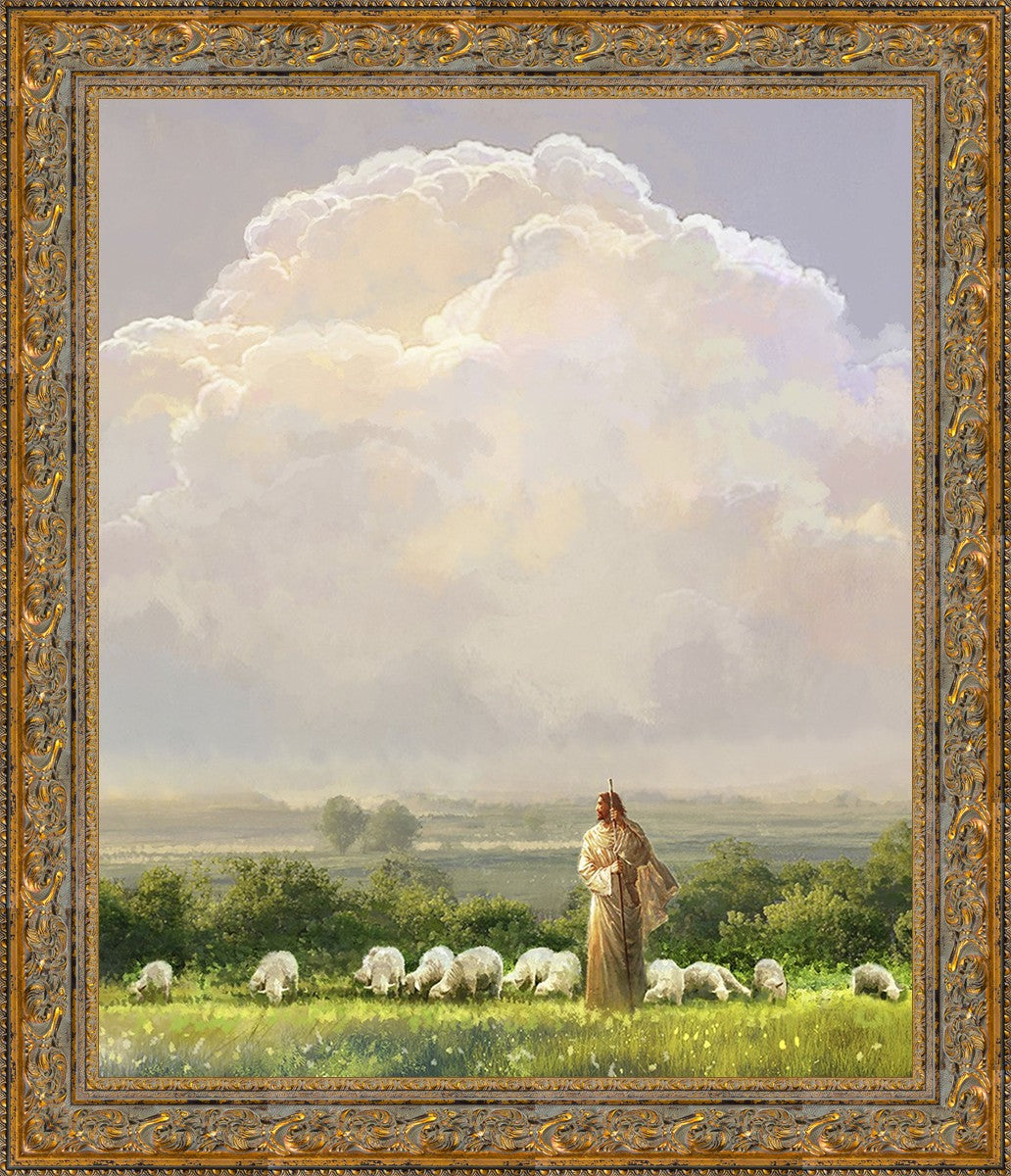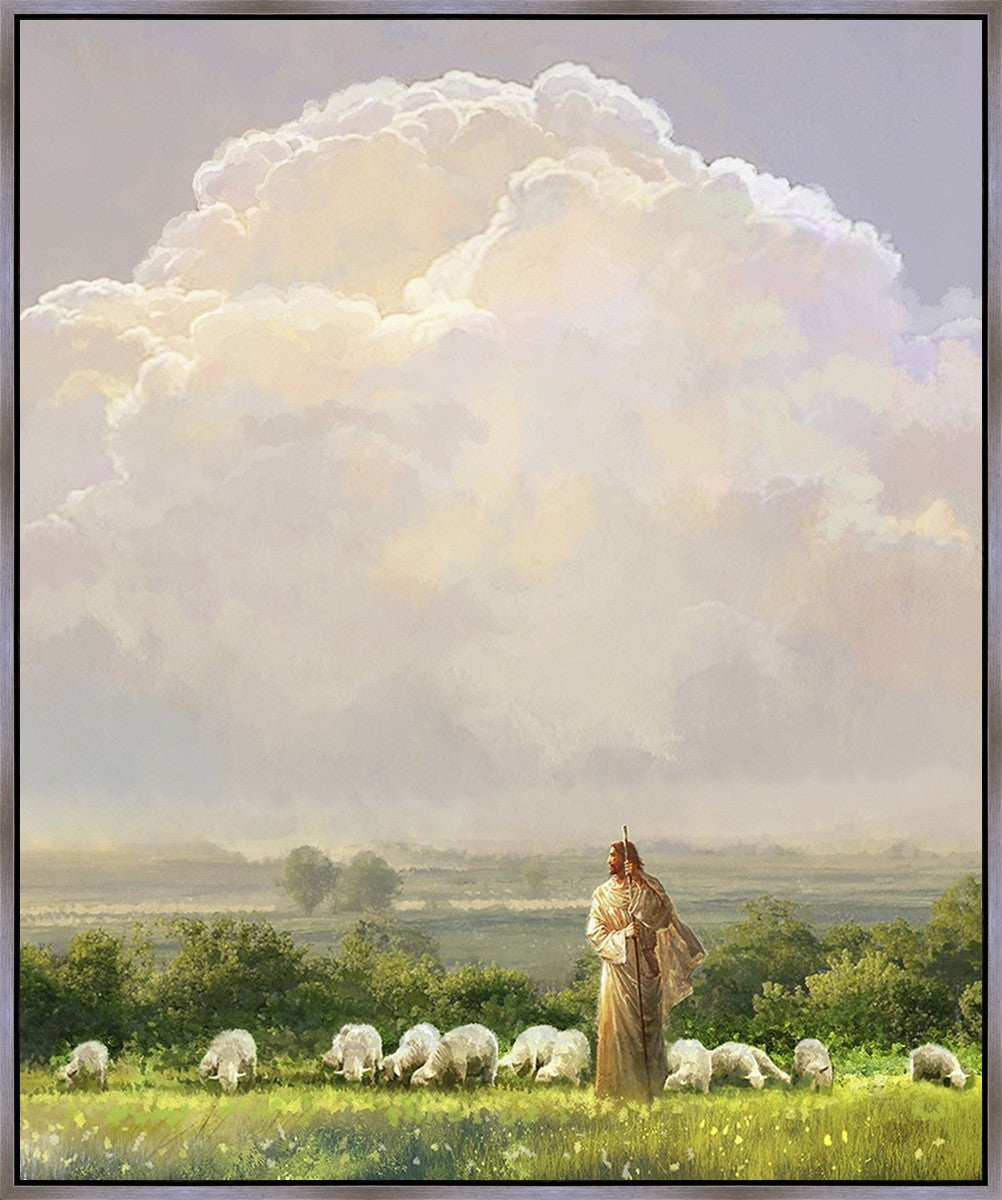 "I Shall Not Want" by Yongsung Kim features Jesus surrounded by His flock "