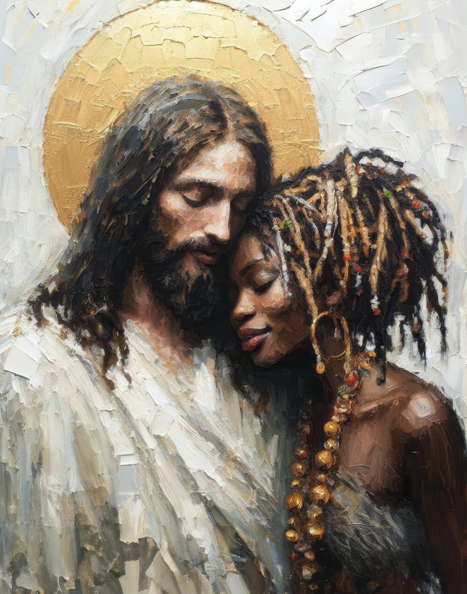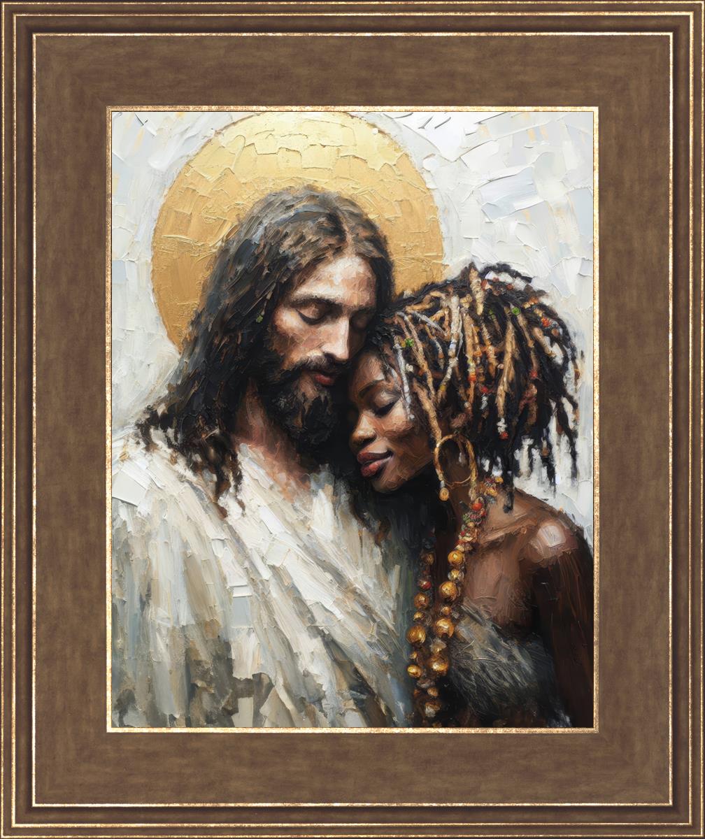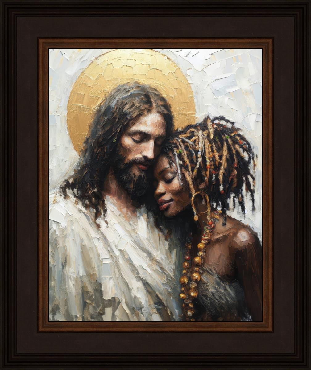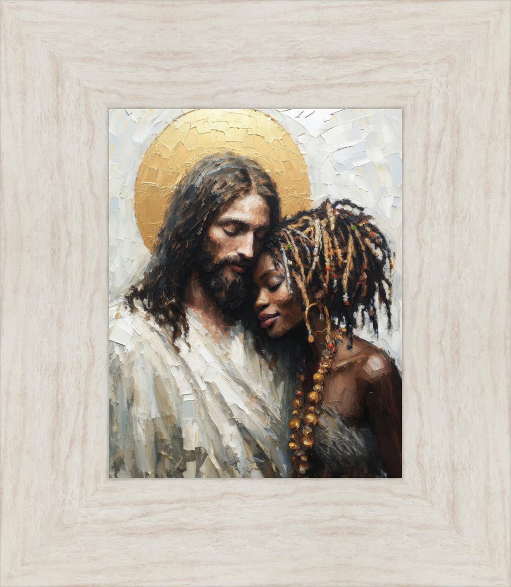 In this tender portrait, we capture a moment of connection between the woman and her Savior, illustrating the timeless promise of rest and renewal found in Christ, regardless of who you are. In a world filled with turmoil and uncertainty, this painting serves as a reminder that true peace can be found in the arms of Jesus, where burdens are lifted and rest is offered to weary souls.