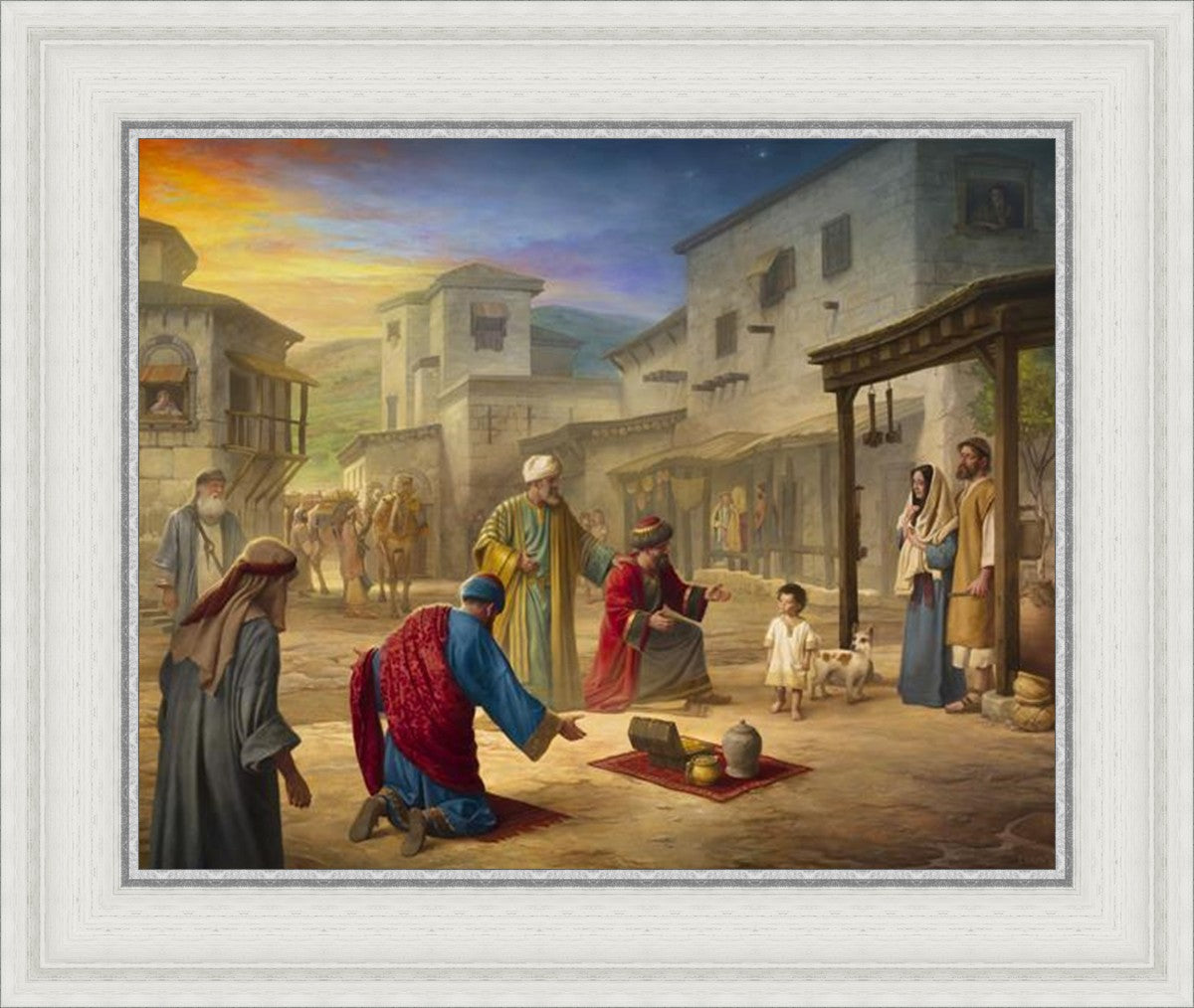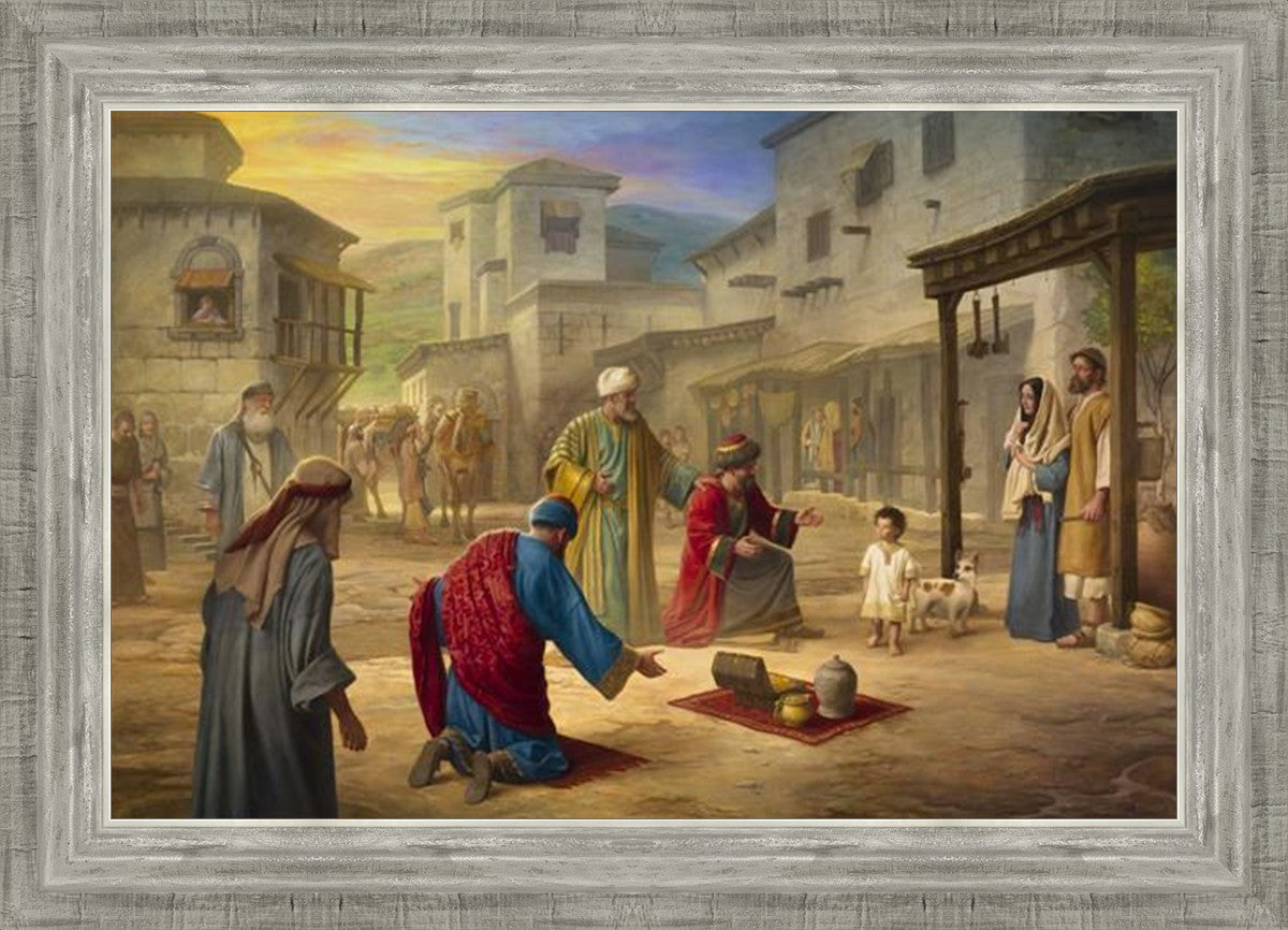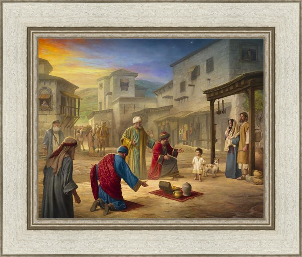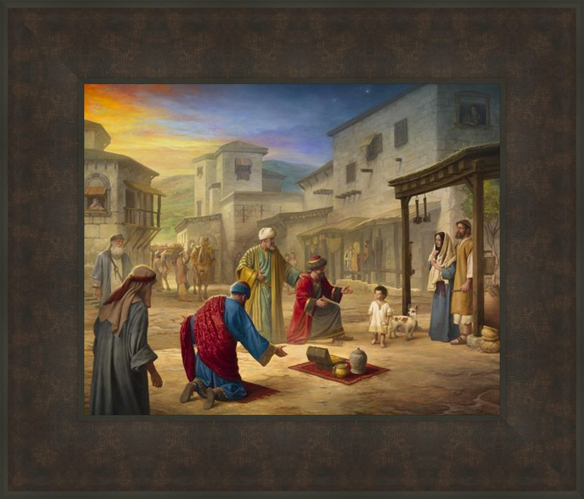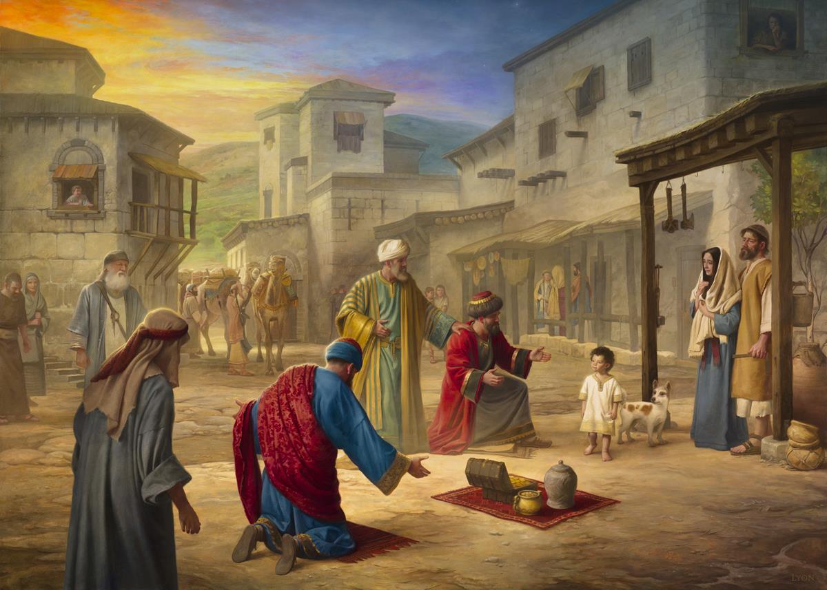 Matthew 2:11 And when they were come into the house, they saw the young child with Mary his mother, and fell down, and worshipped him: and when they had opened their treasures, they presented unto him gifts; gold, and frankincense, and myrrh. **** The account of the Magi visiting Christ as a child has long been the subject of paintings and stories. It is touching and inspiring to envision the wise and learned traveling to present gifts and honor to the young Christ. Though tradition places the Magi in the manger, the scriptures indicate that Christ may have been as old as two when they arrived. I can imagine traveling with the Magi with a growing anticipation of seeing the young Christ. After a long journey and arriving at His home, the Spirit bears witness that He is the King of Kings, my Redeemer, my Savior—and with gratitude I have the opportunity to lay my humble gifts at His feet.