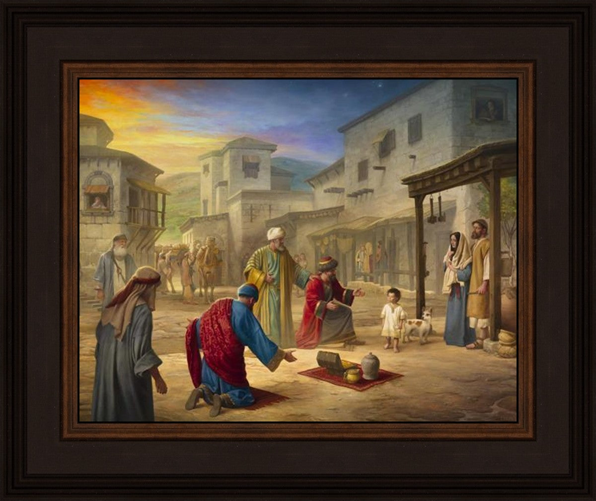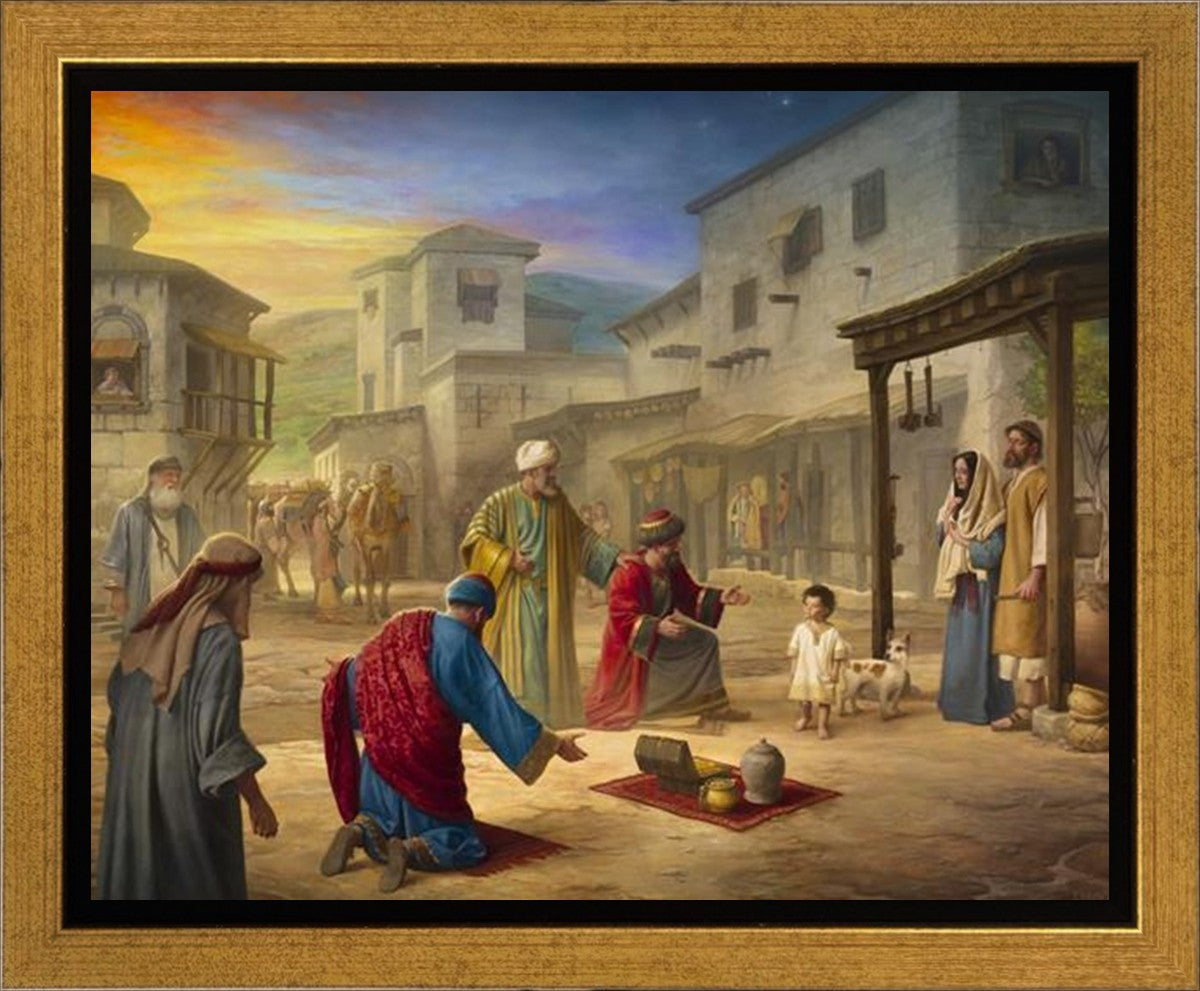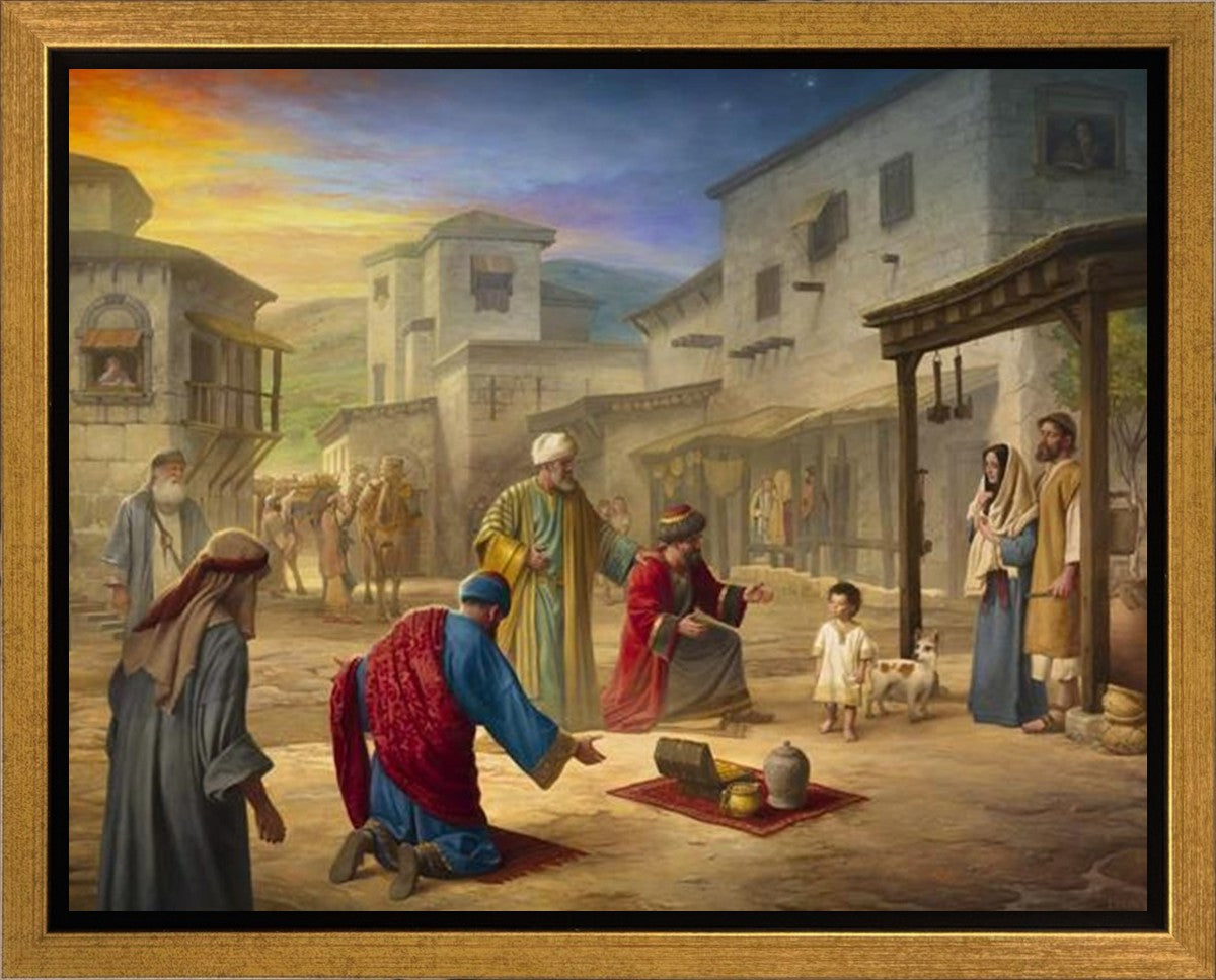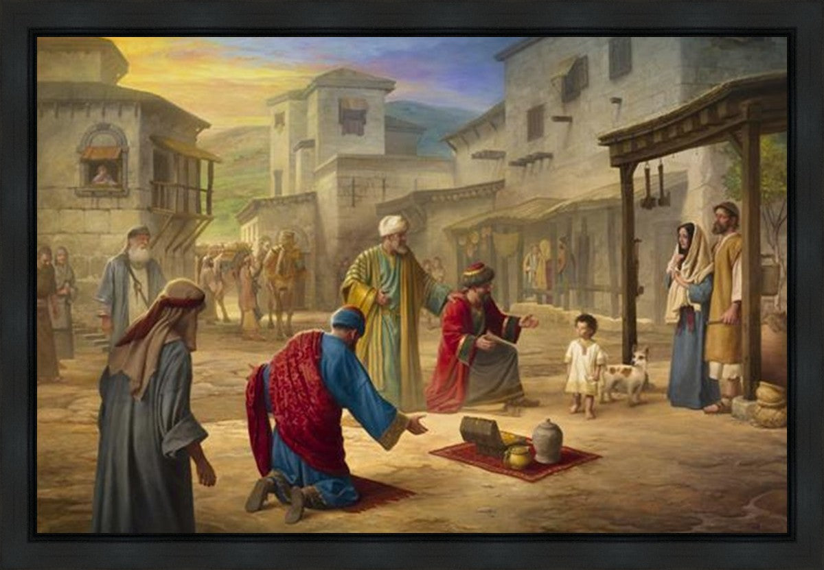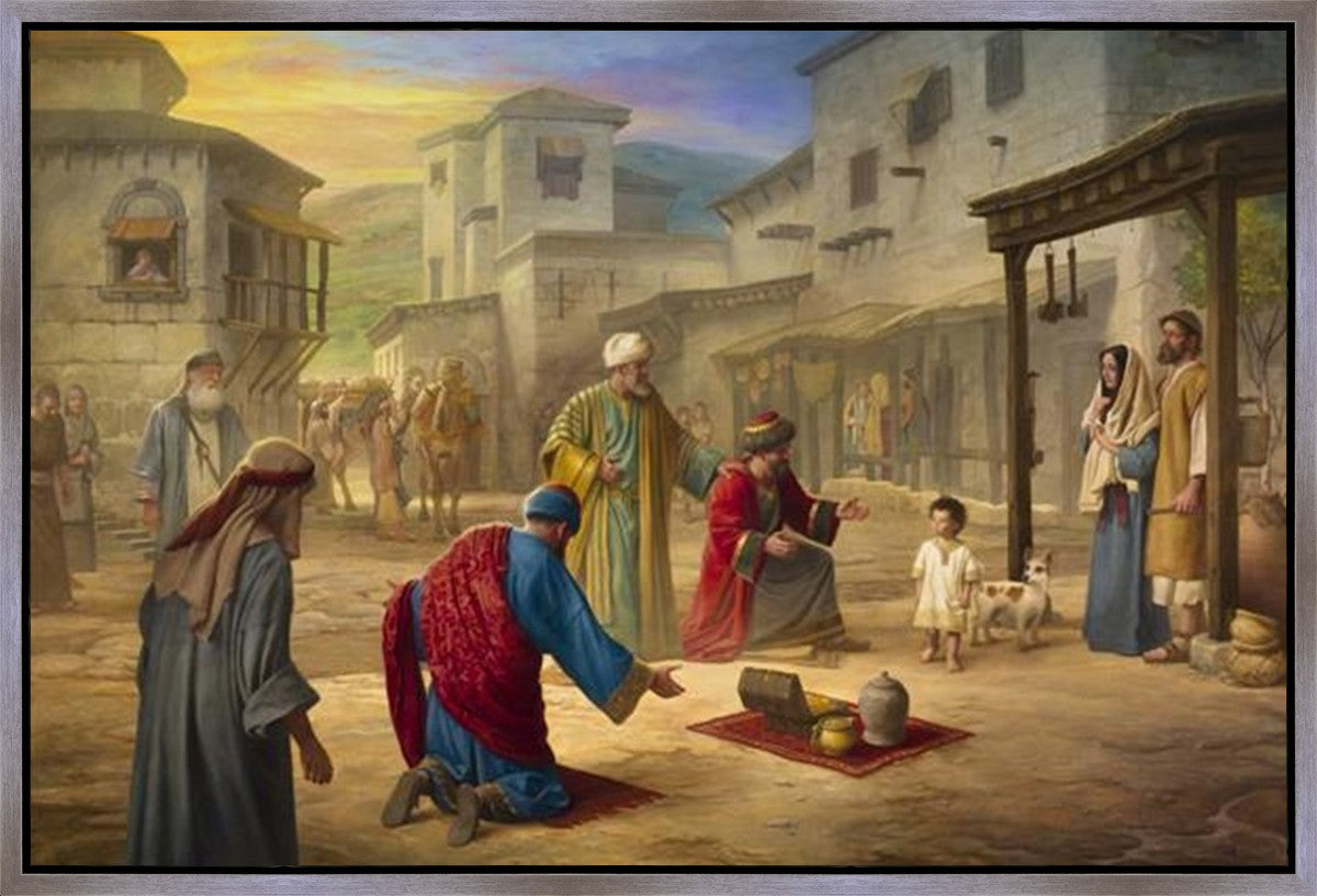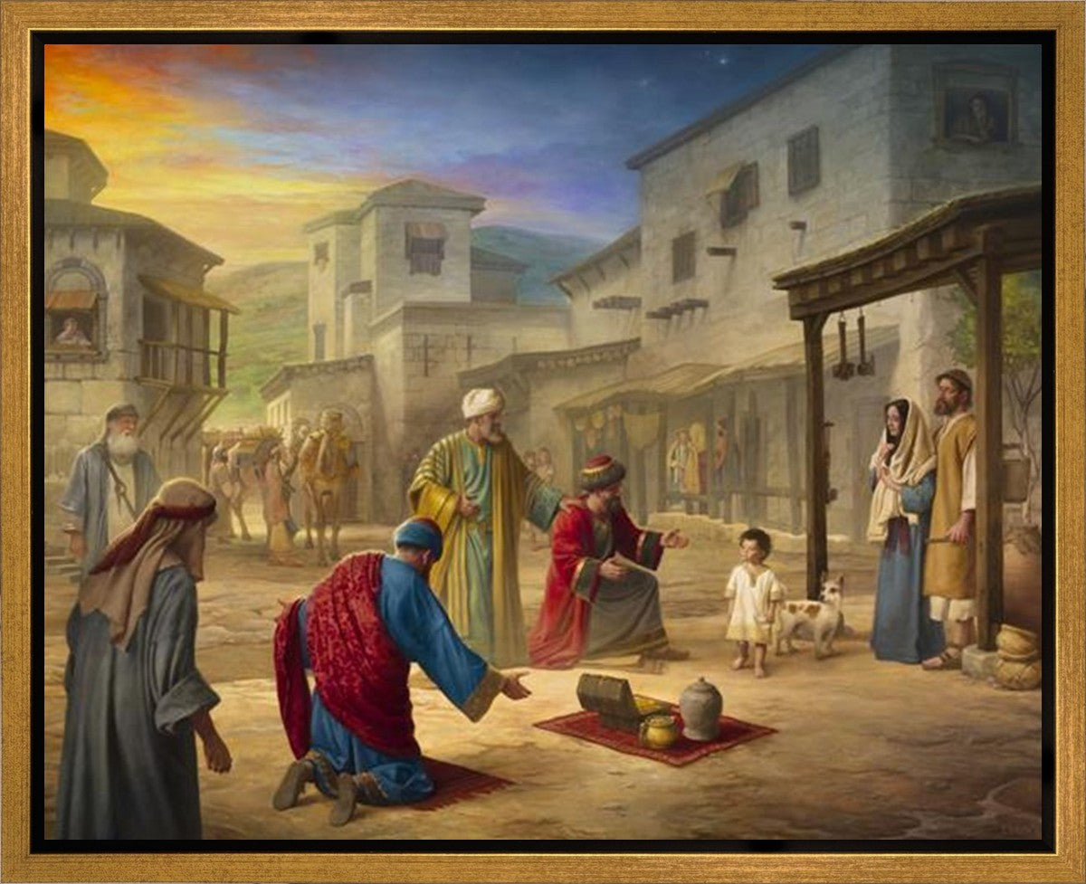 Matthew 2:11 And when they were come into the house, they saw the young child with Mary his mother, and fell down, and worshipped him: and when they had opened their treasures, they presented unto him gifts; gold, and frankincense, and myrrh. **** The account of the Magi visiting Christ as a child has long been the subject of paintings and stories. It is touching and inspiring to envision the wise and learned traveling to present gifts and honor to the young Christ. Though tradition places the Magi in the manger, the scriptures indicate that Christ may have been as old as two when they arrived. I can imagine traveling with the Magi with a growing anticipation of seeing the young Christ. After a long journey and arriving at His home, the Spirit bears witness that He is the King of Kings, my Redeemer, my Savior—and with gratitude I have the opportunity to lay my humble gifts at His feet.