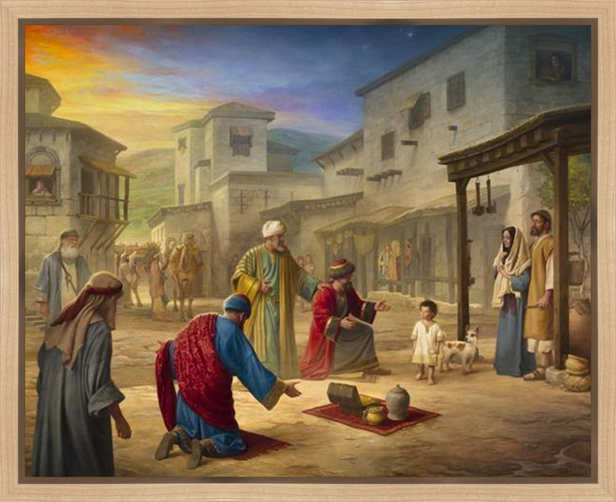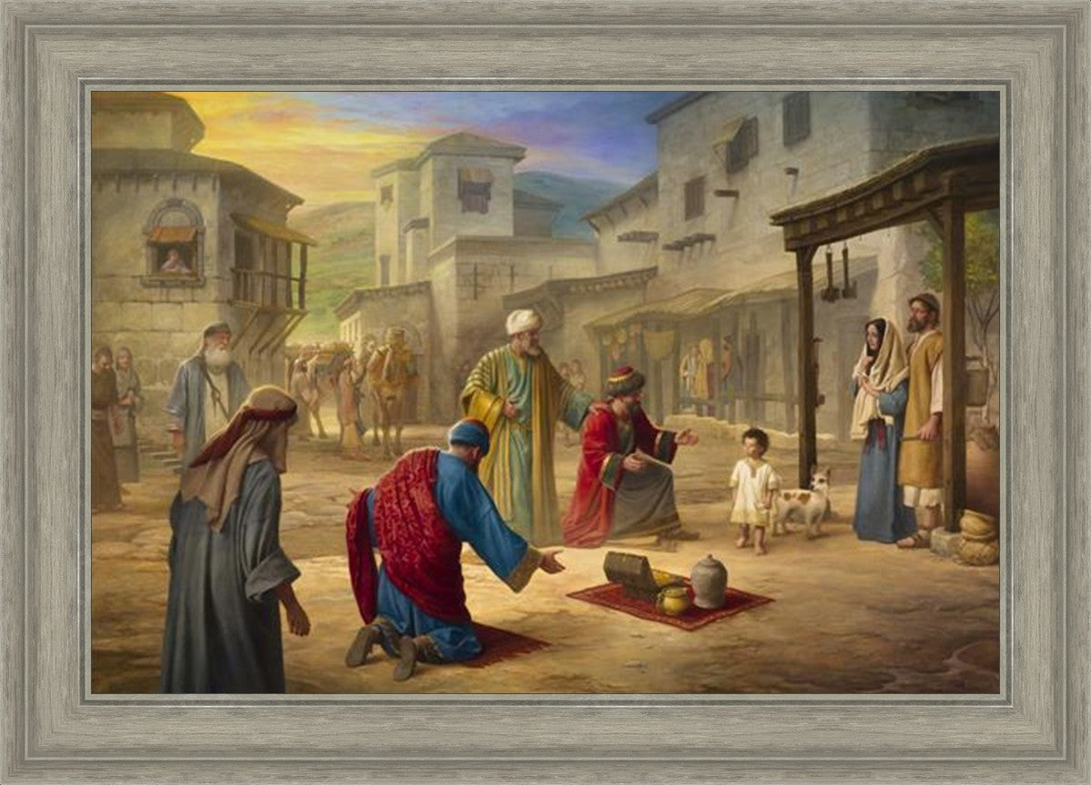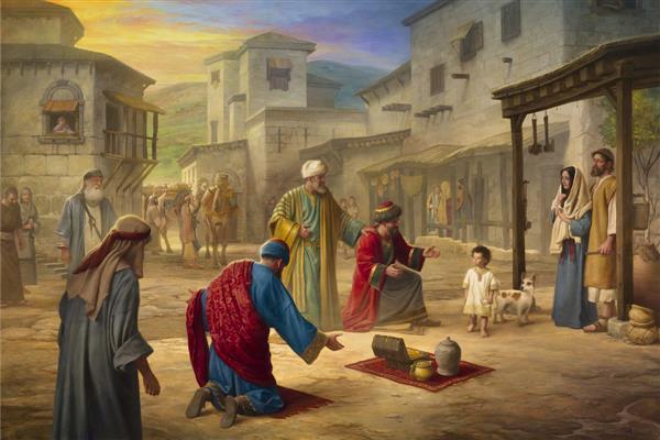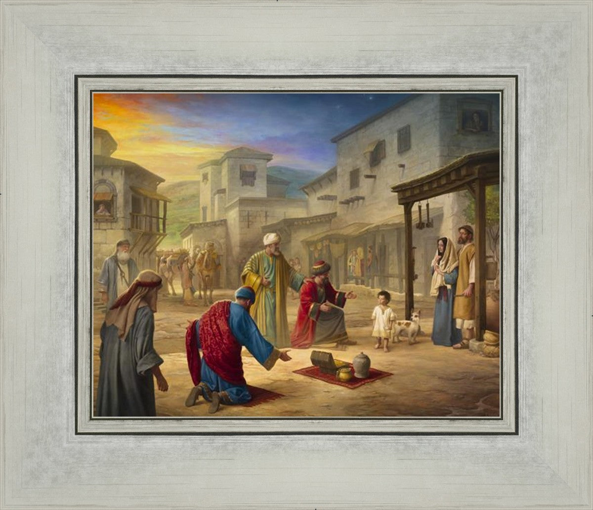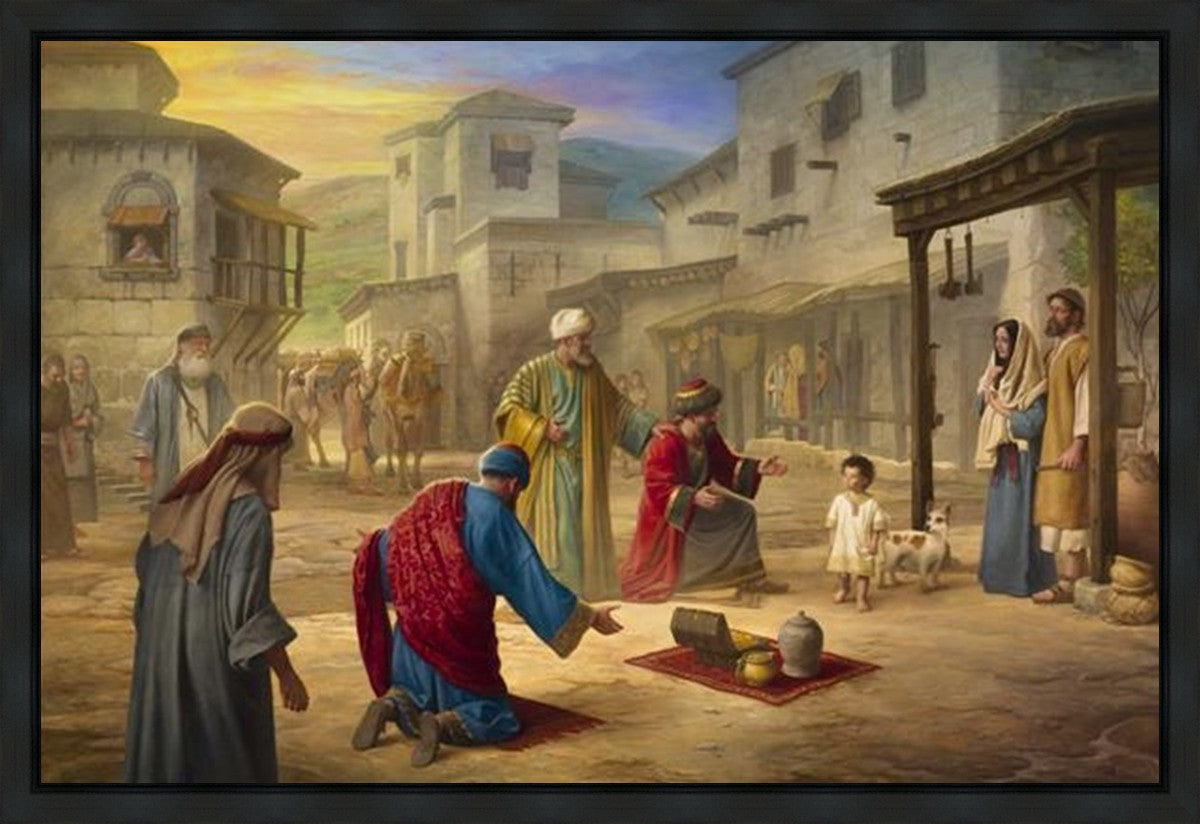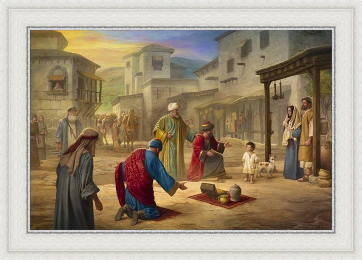 Matthew 2:11 And when they were come into the house, they saw the young child with Mary his mother, and fell down, and worshipped him: and when they had opened their treasures, they presented unto him gifts; gold, and frankincense, and myrrh. **** The account of the Magi visiting Christ as a child has long been the subject of paintings and stories. It is touching and inspiring to envision the wise and learned traveling to present gifts and honor to the young Christ. Though tradition places the Magi in the manger, the scriptures indicate that Christ may have been as old as two when they arrived. I can imagine traveling with the Magi with a growing anticipation of seeing the young Christ. After a long journey and arriving at His home, the Spirit bears witness that He is the King of Kings, my Redeemer, my Savior—and with gratitude I have the opportunity to lay my humble gifts at His feet.