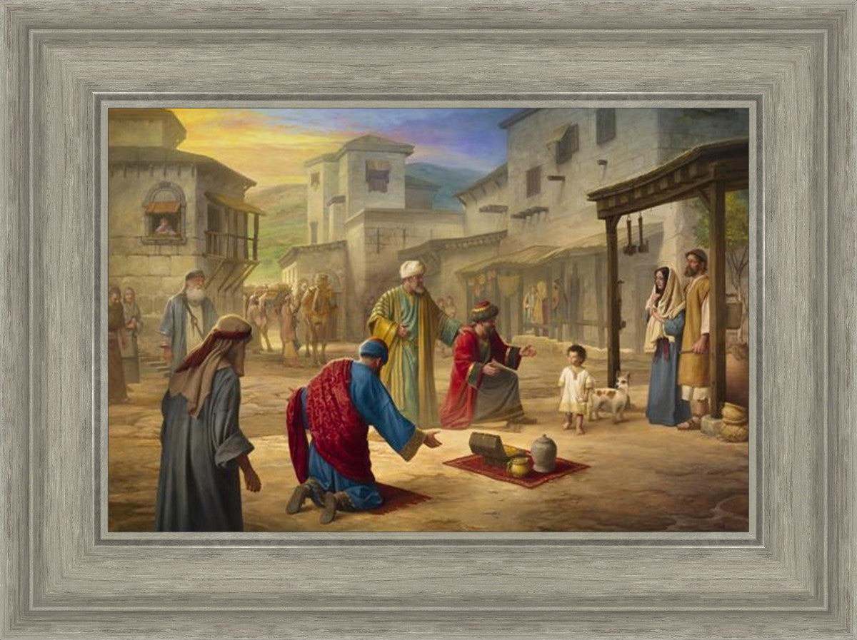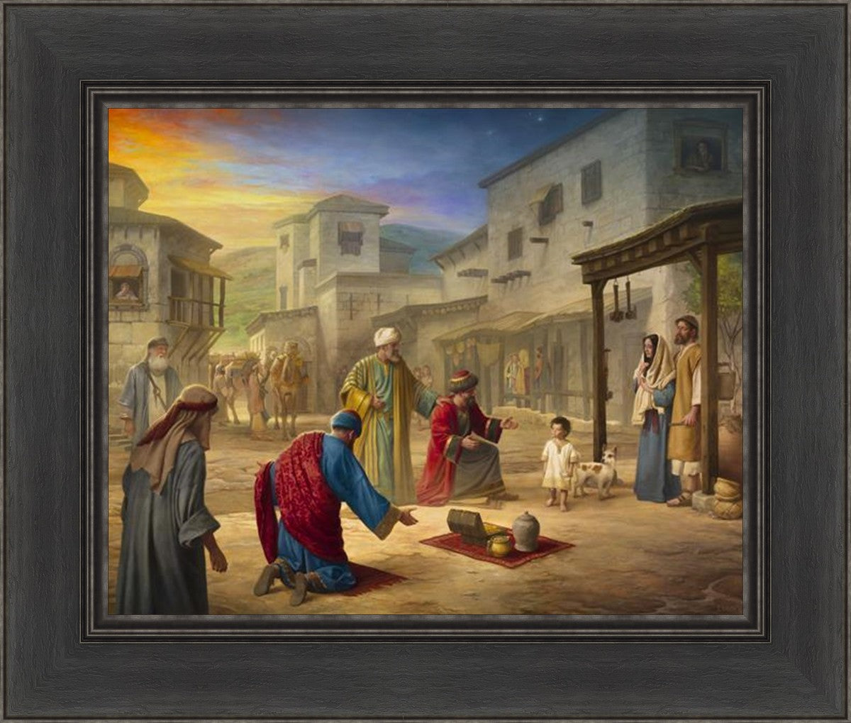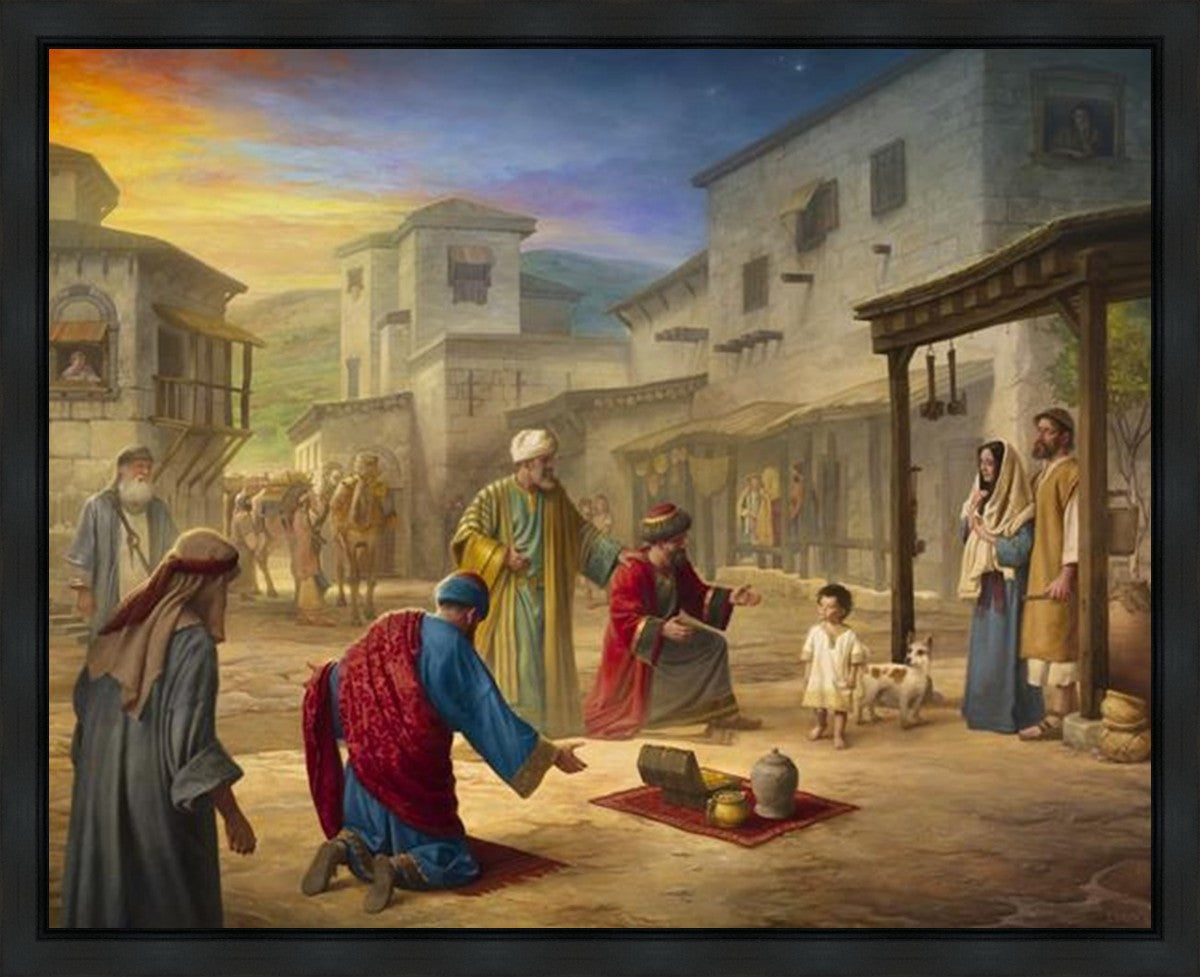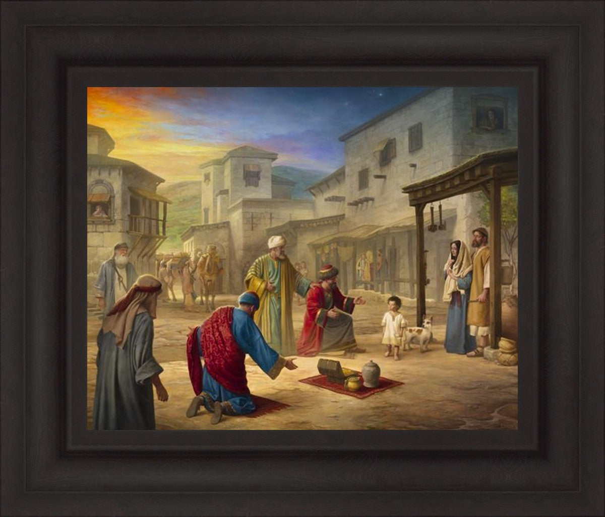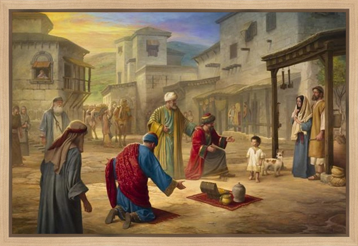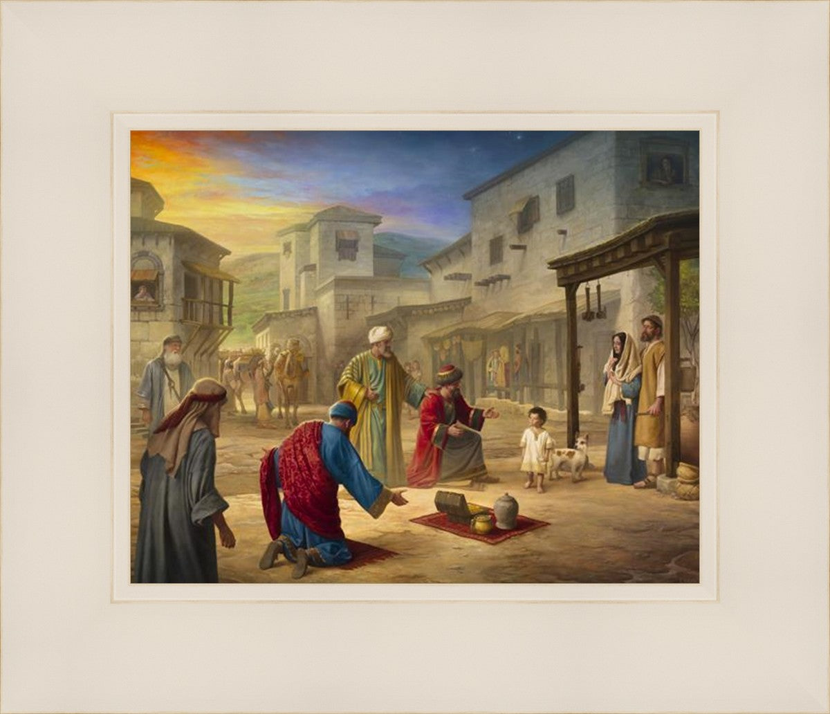 Matthew 2:11 And when they were come into the house, they saw the young child with Mary his mother, and fell down, and worshipped him: and when they had opened their treasures, they presented unto him gifts; gold, and frankincense, and myrrh. **** The account of the Magi visiting Christ as a child has long been the subject of paintings and stories. It is touching and inspiring to envision the wise and learned traveling to present gifts and honor to the young Christ. Though tradition places the Magi in the manger, the scriptures indicate that Christ may have been as old as two when they arrived. I can imagine traveling with the Magi with a growing anticipation of seeing the young Christ. After a long journey and arriving at His home, the Spirit bears witness that He is the King of Kings, my Redeemer, my Savior—and with gratitude I have the opportunity to lay my humble gifts at His feet.