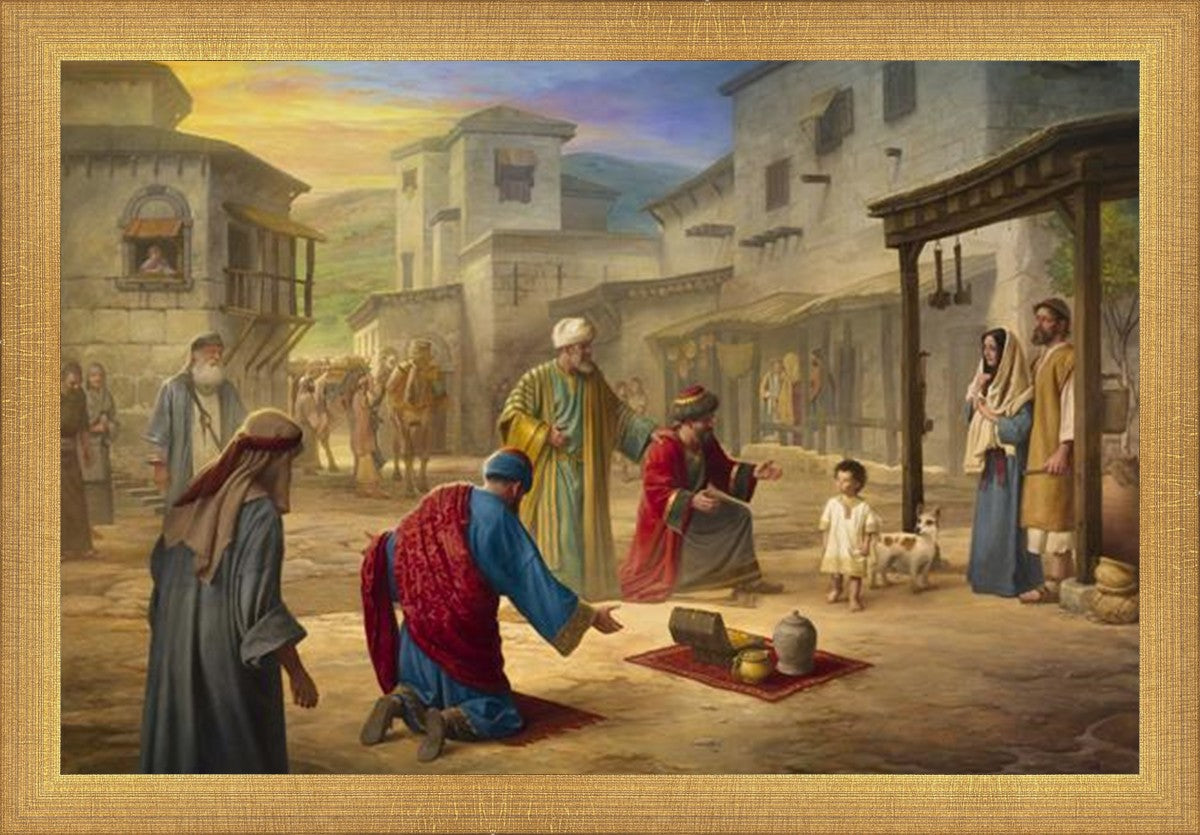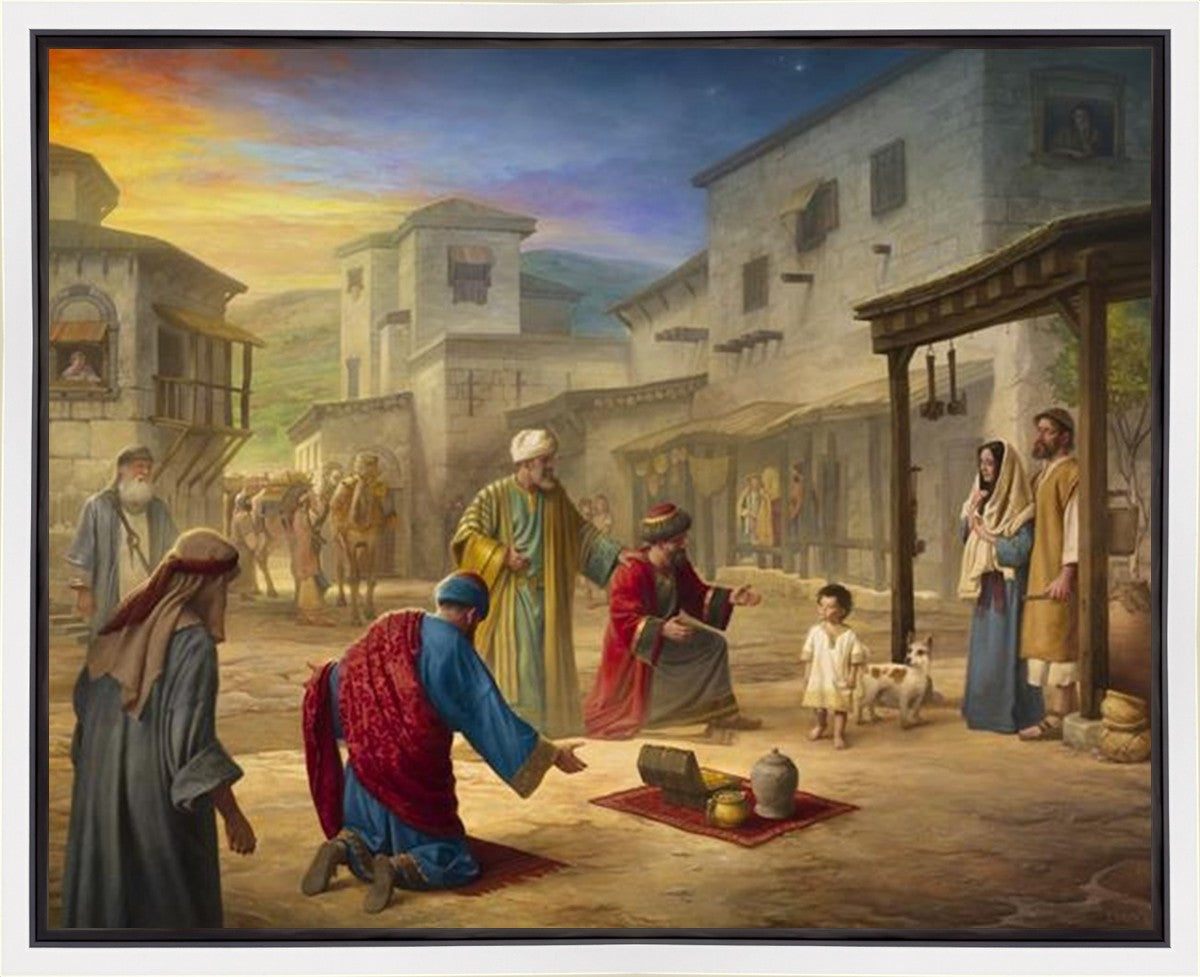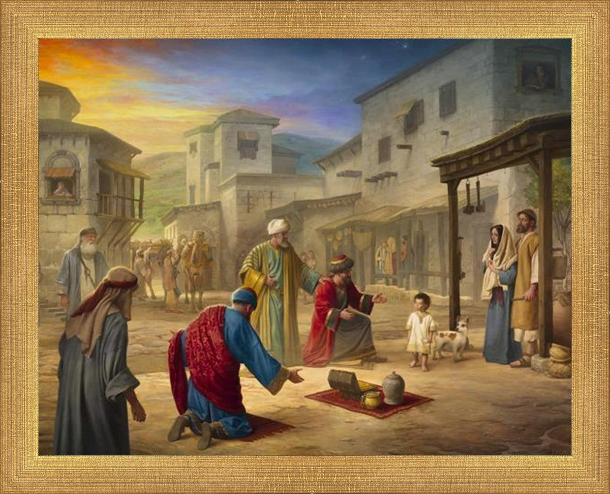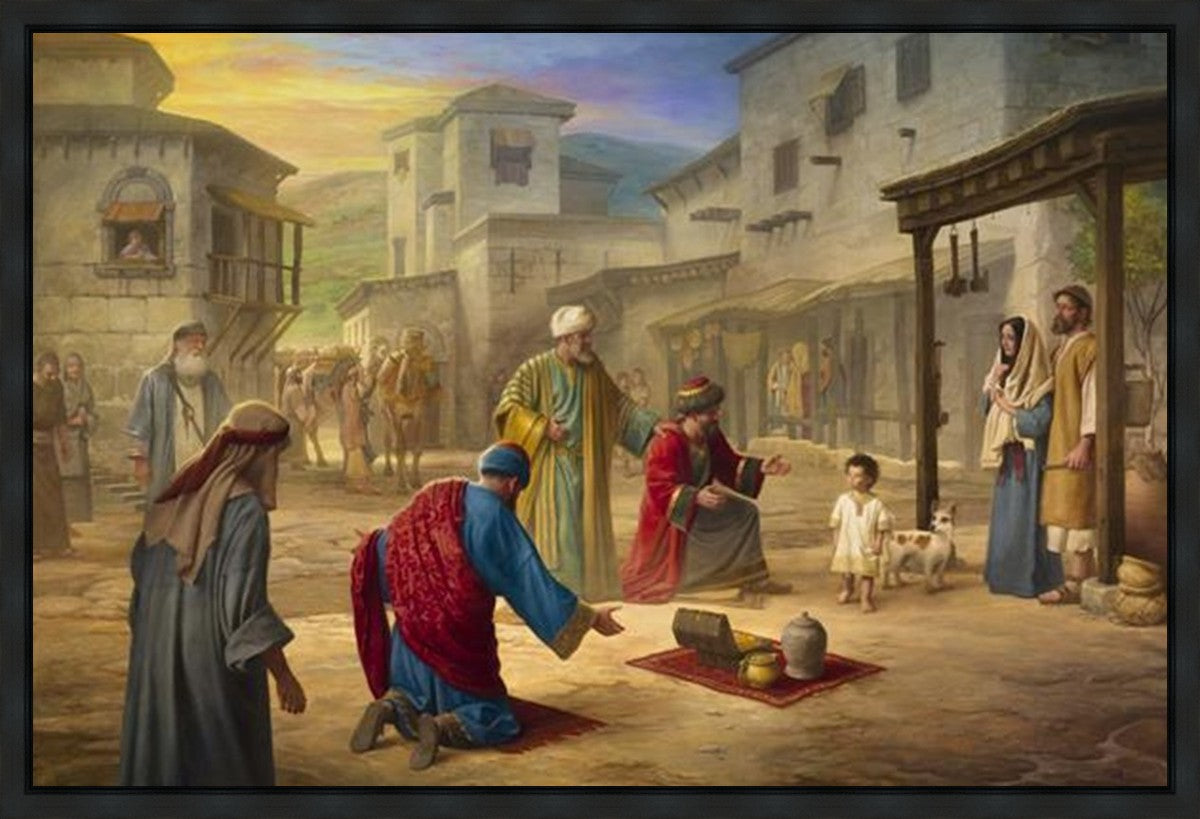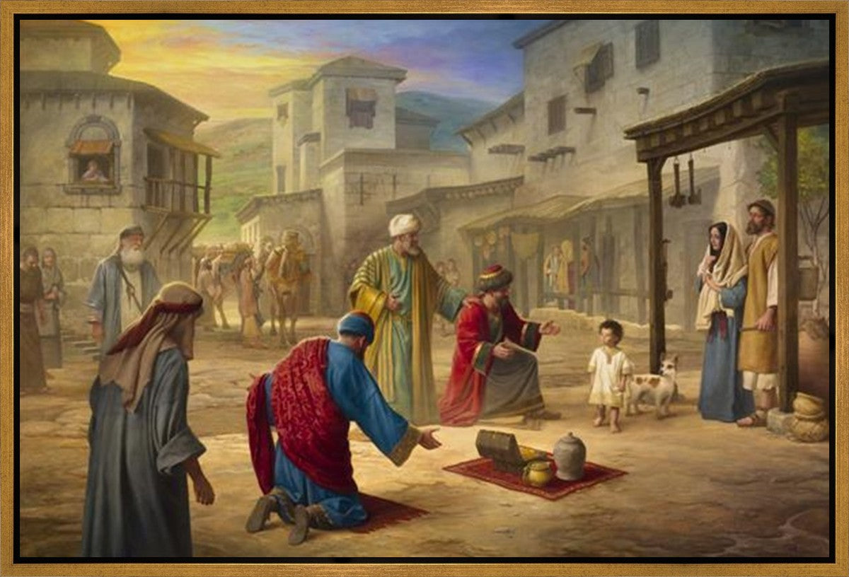 Matthew 2:11 And when they were come into the house, they saw the young child with Mary his mother, and fell down, and worshipped him: and when they had opened their treasures, they presented unto him gifts; gold, and frankincense, and myrrh. **** The account of the Magi visiting Christ as a child has long been the subject of paintings and stories. It is touching and inspiring to envision the wise and learned traveling to present gifts and honor to the young Christ. Though tradition places the Magi in the manger, the scriptures indicate that Christ may have been as old as two when they arrived. I can imagine traveling with the Magi with a growing anticipation of seeing the young Christ. After a long journey and arriving at His home, the Spirit bears witness that He is the King of Kings, my Redeemer, my Savior—and with gratitude I have the opportunity to lay my humble gifts at His feet.