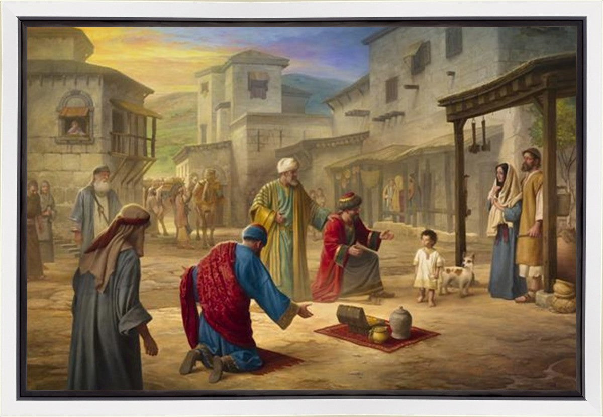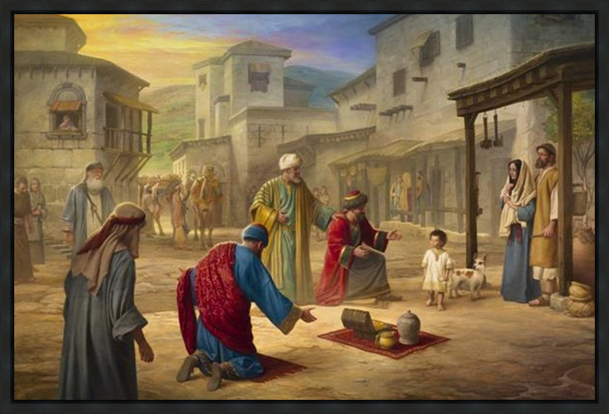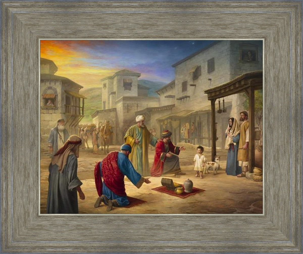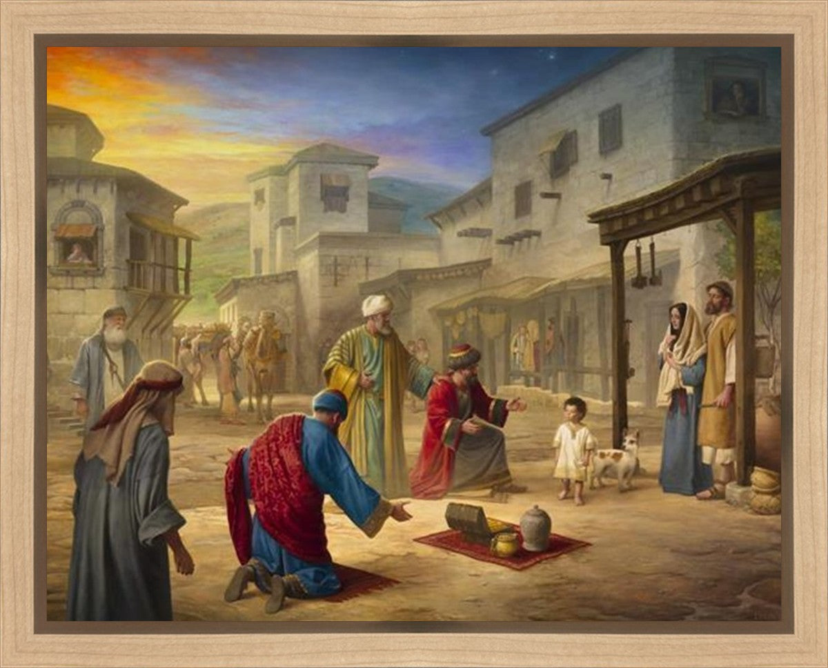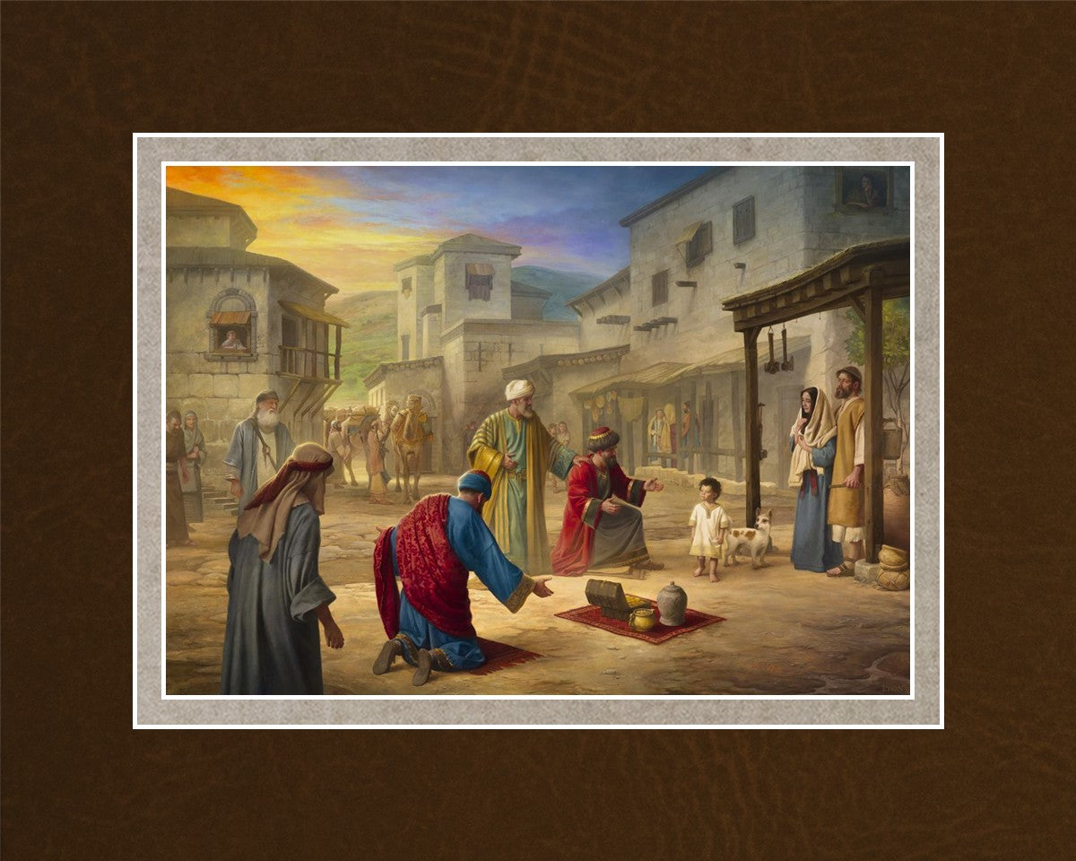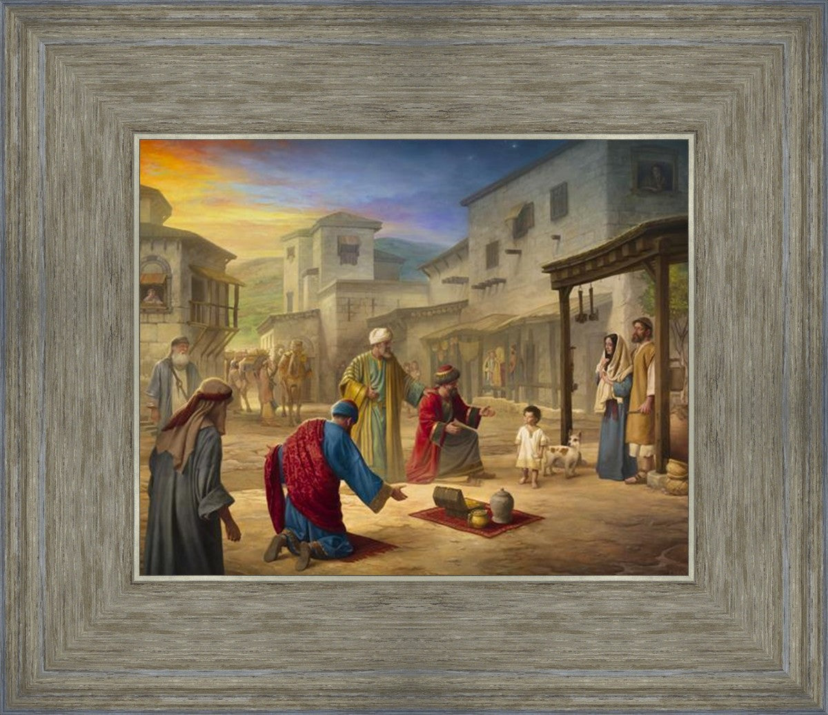 Matthew 2:11 And when they were come into the house, they saw the young child with Mary his mother, and fell down, and worshipped him: and when they had opened their treasures, they presented unto him gifts; gold, and frankincense, and myrrh. **** The account of the Magi visiting Christ as a child has long been the subject of paintings and stories. It is touching and inspiring to envision the wise and learned traveling to present gifts and honor to the young Christ. Though tradition places the Magi in the manger, the scriptures indicate that Christ may have been as old as two when they arrived. I can imagine traveling with the Magi with a growing anticipation of seeing the young Christ. After a long journey and arriving at His home, the Spirit bears witness that He is the King of Kings, my Redeemer, my Savior—and with gratitude I have the opportunity to lay my humble gifts at His feet.