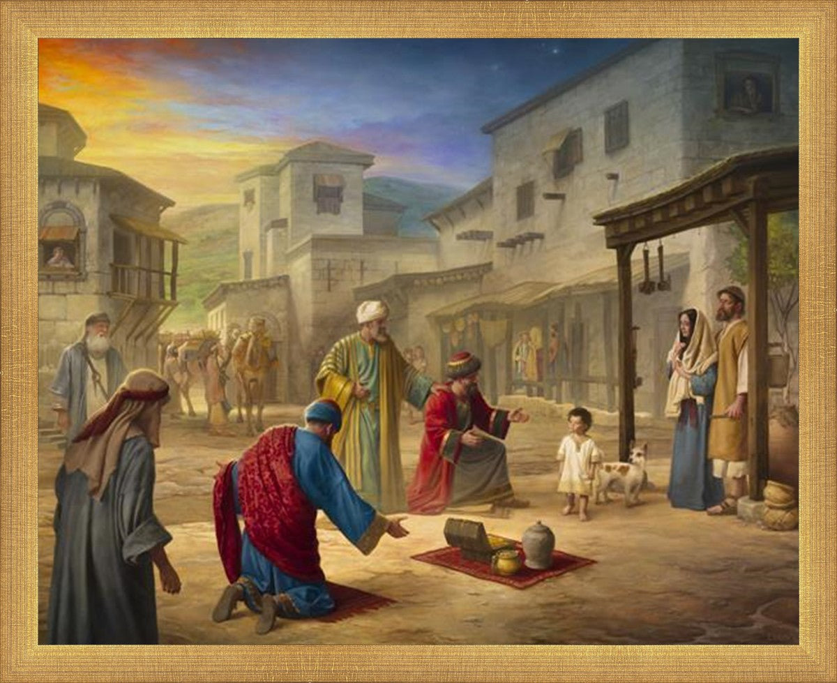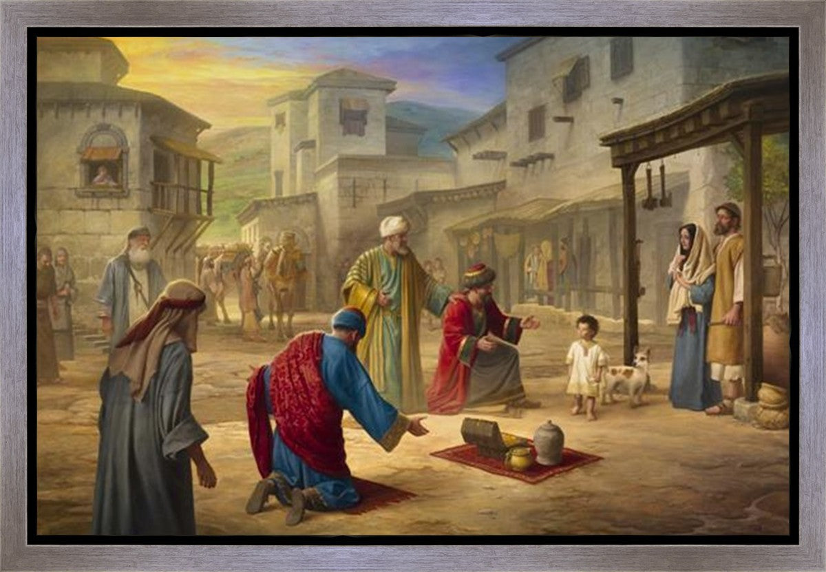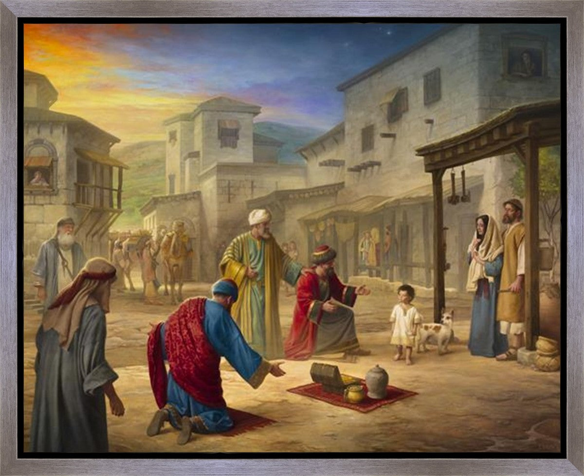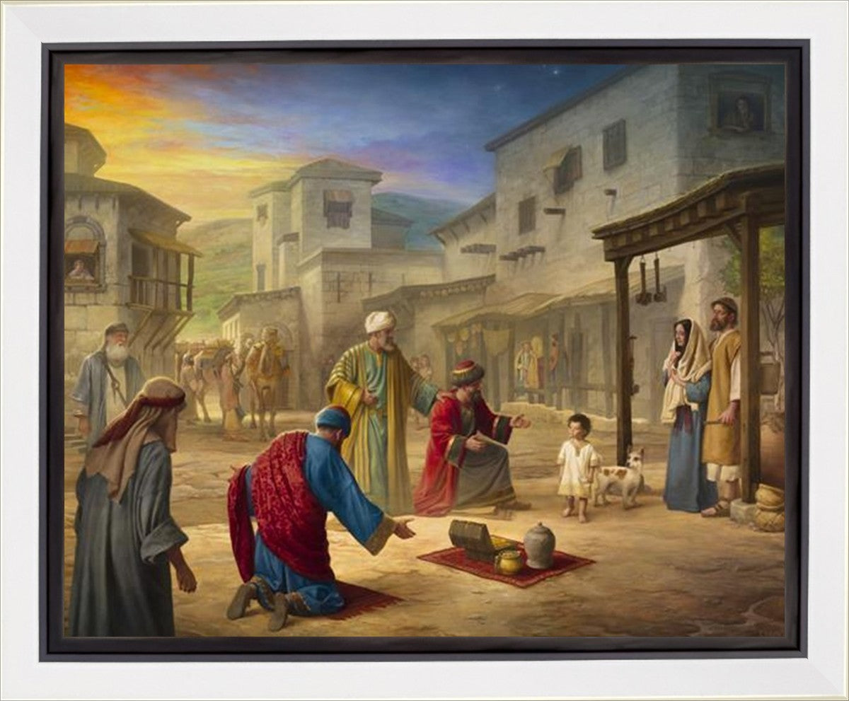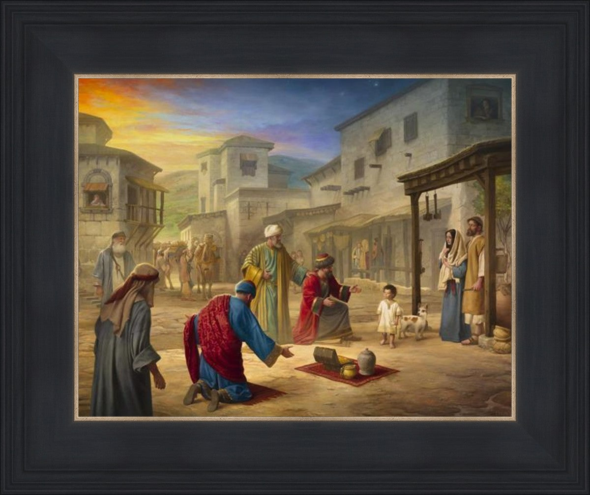 Matthew 2:11 And when they were come into the house, they saw the young child with Mary his mother, and fell down, and worshipped him: and when they had opened their treasures, they presented unto him gifts; gold, and frankincense, and myrrh. **** The account of the Magi visiting Christ as a child has long been the subject of paintings and stories. It is touching and inspiring to envision the wise and learned traveling to present gifts and honor to the young Christ. Though tradition places the Magi in the manger, the scriptures indicate that Christ may have been as old as two when they arrived. I can imagine traveling with the Magi with a growing anticipation of seeing the young Christ. After a long journey and arriving at His home, the Spirit bears witness that He is the King of Kings, my Redeemer, my Savior—and with gratitude I have the opportunity to lay my humble gifts at His feet.