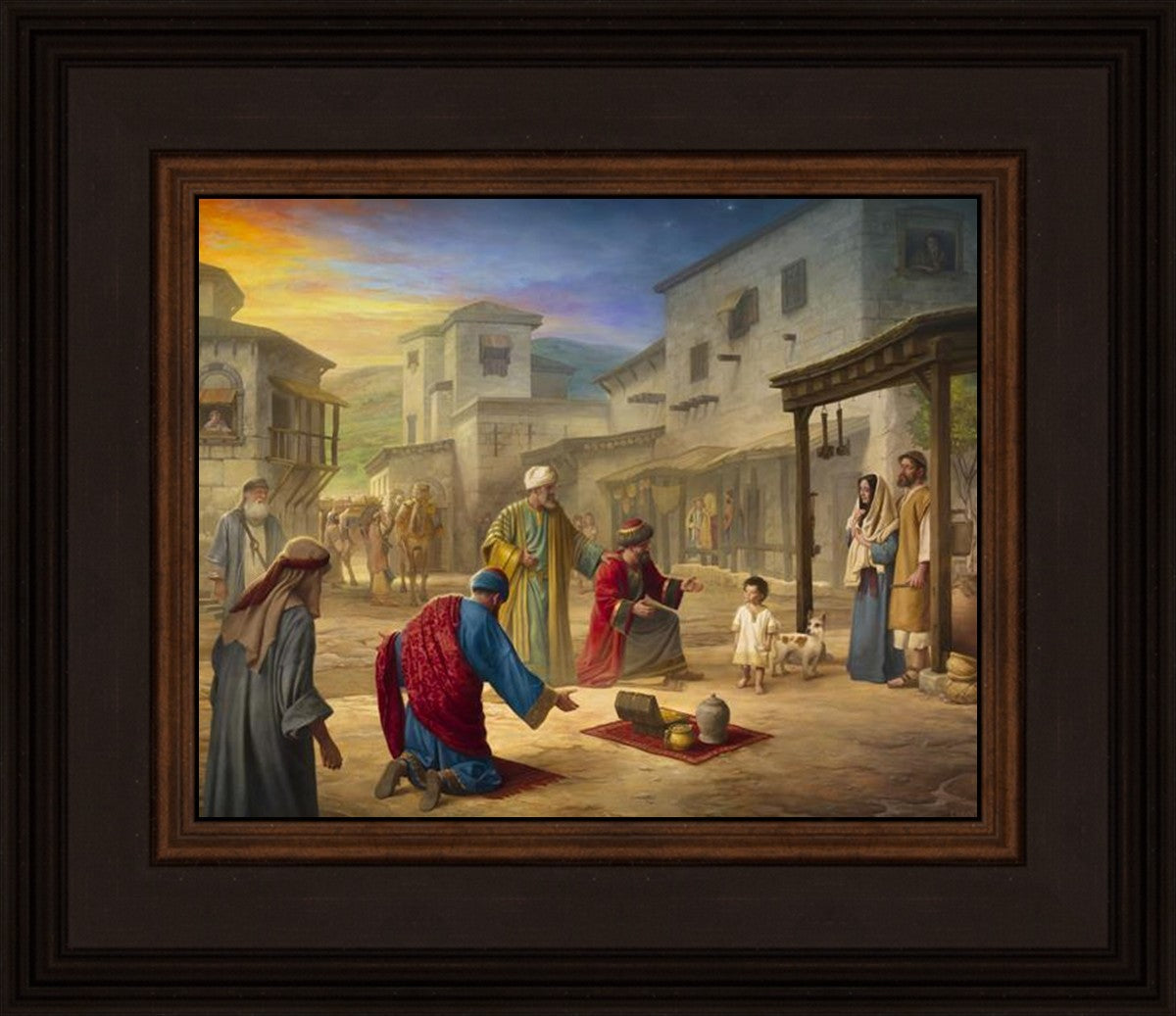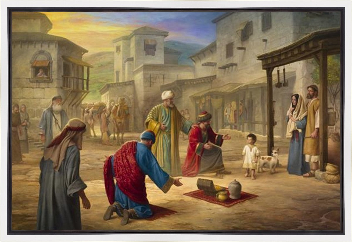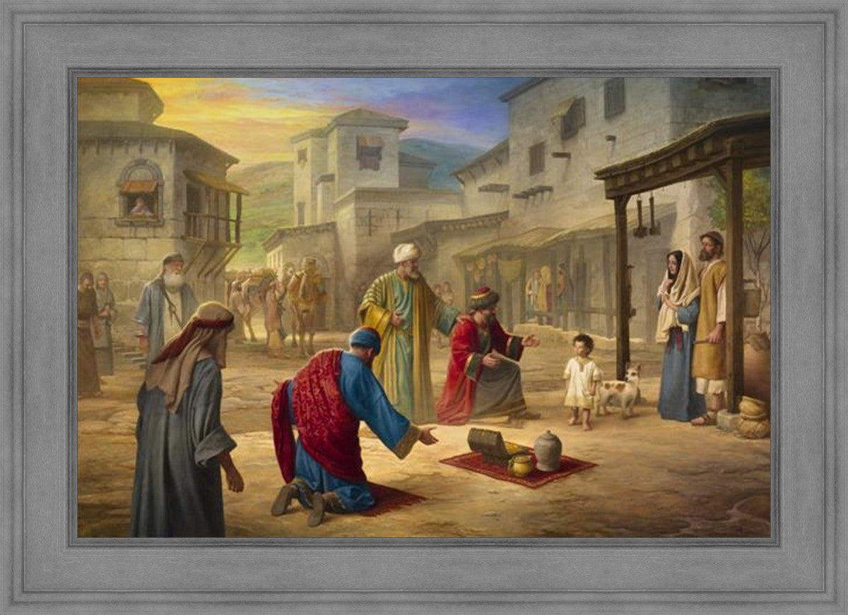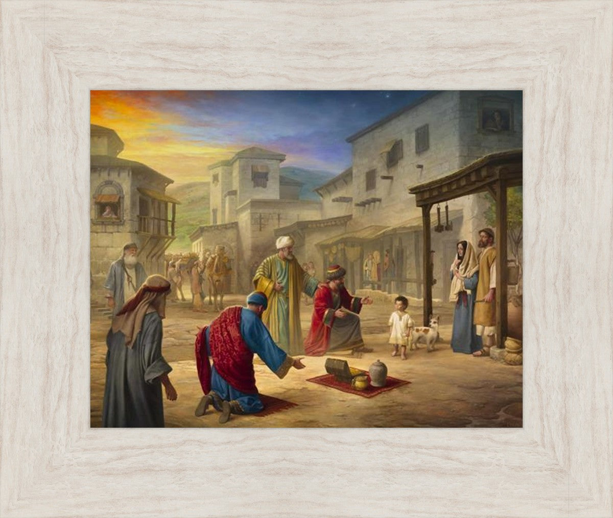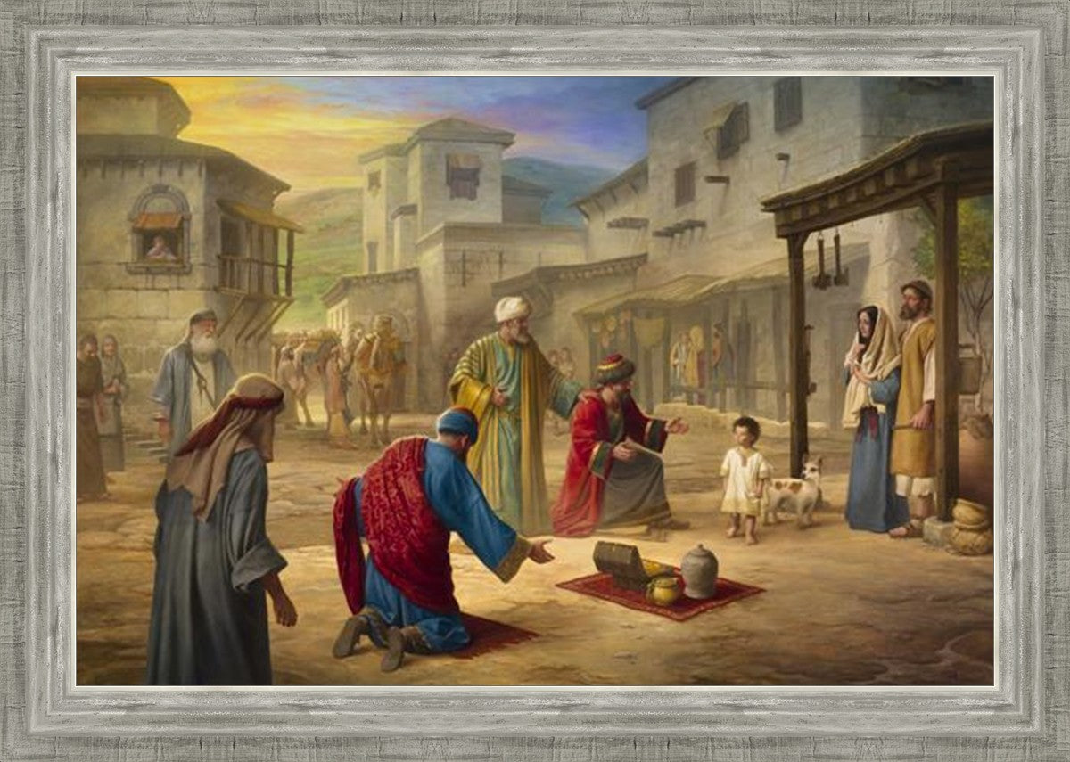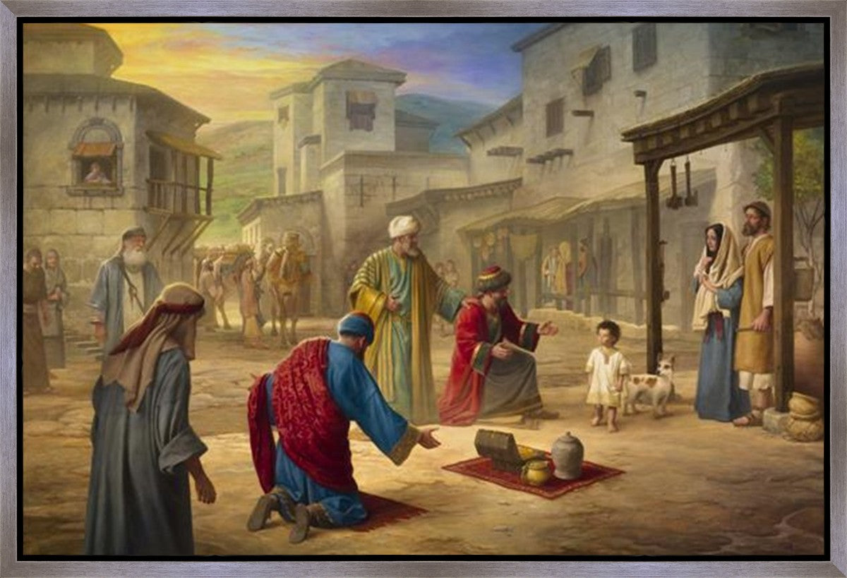 Matthew 2:11 And when they were come into the house, they saw the young child with Mary his mother, and fell down, and worshipped him: and when they had opened their treasures, they presented unto him gifts; gold, and frankincense, and myrrh. **** The account of the Magi visiting Christ as a child has long been the subject of paintings and stories. It is touching and inspiring to envision the wise and learned traveling to present gifts and honor to the young Christ. Though tradition places the Magi in the manger, the scriptures indicate that Christ may have been as old as two when they arrived. I can imagine traveling with the Magi with a growing anticipation of seeing the young Christ. After a long journey and arriving at His home, the Spirit bears witness that He is the King of Kings, my Redeemer, my Savior—and with gratitude I have the opportunity to lay my humble gifts at His feet.