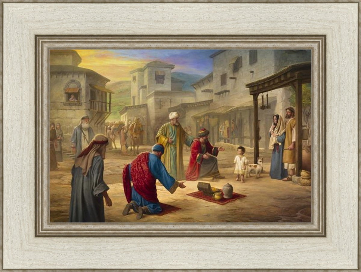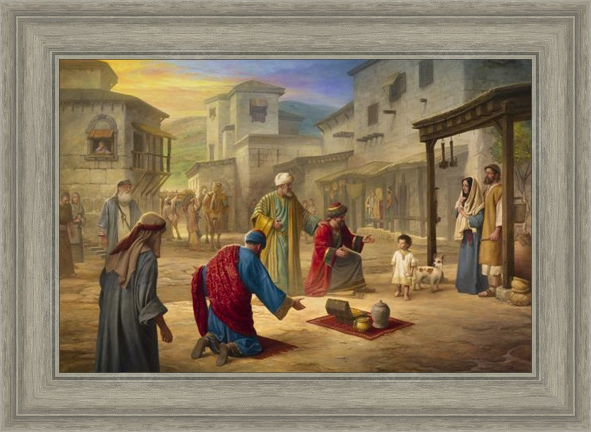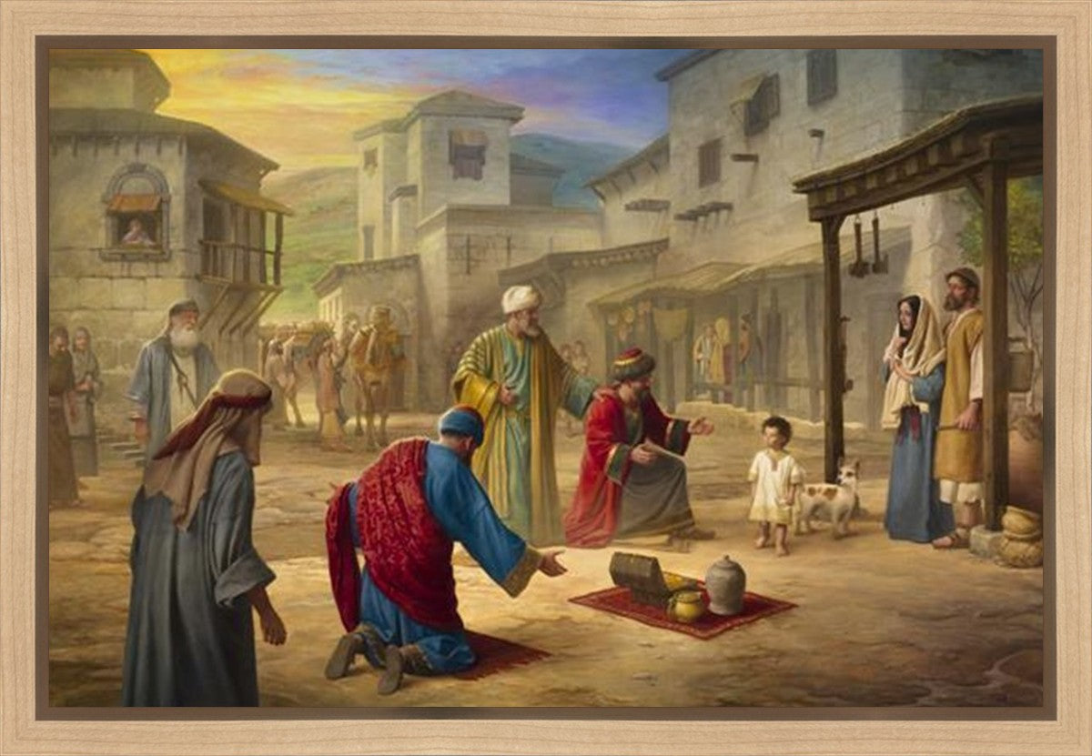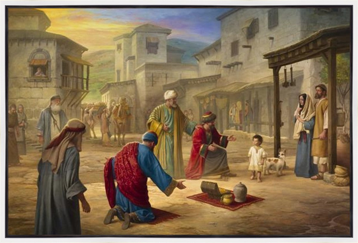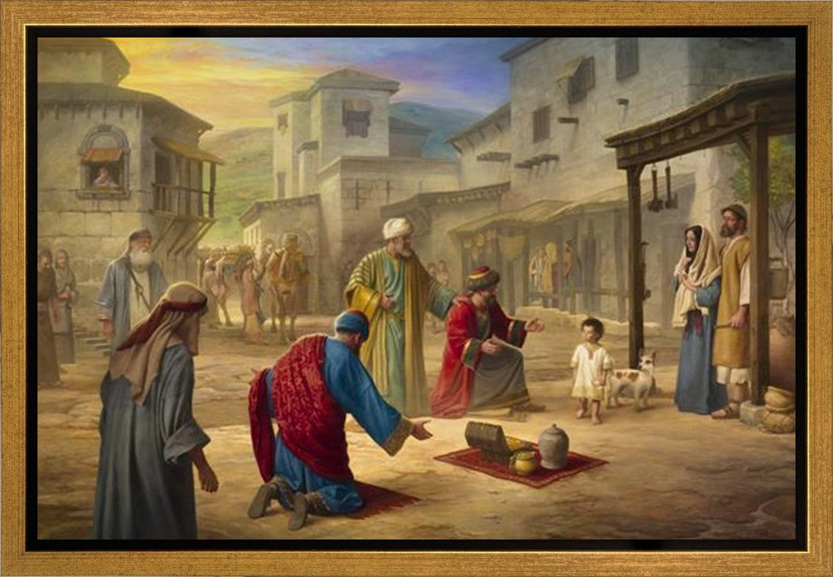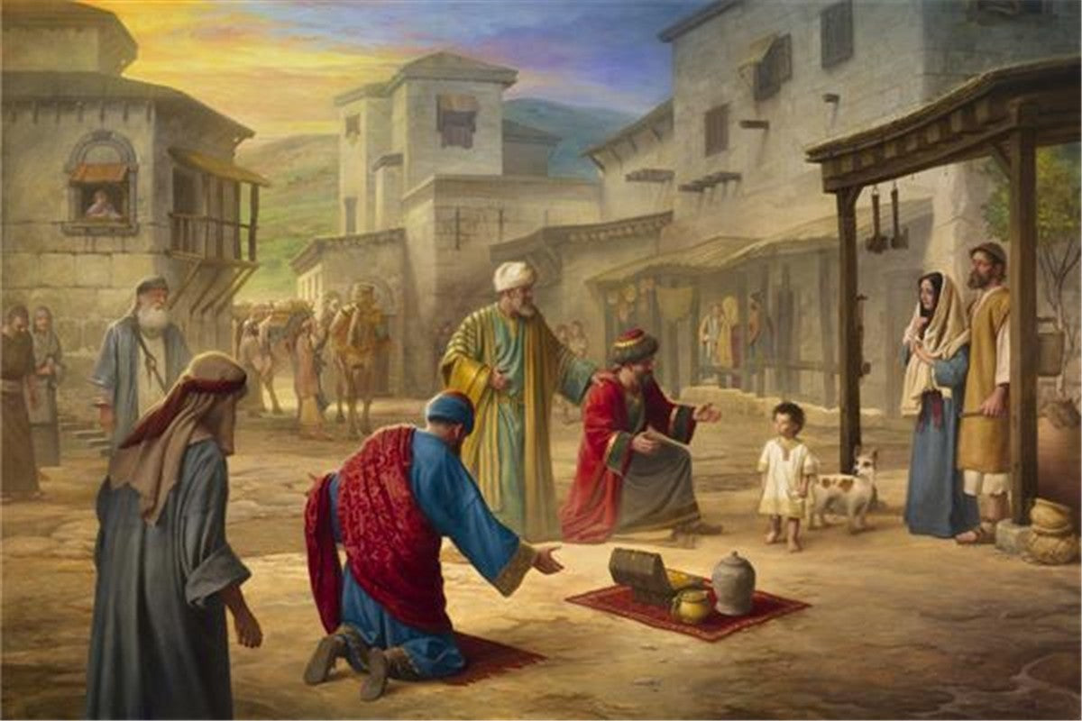 Matthew 2:11 And when they were come into the house, they saw the young child with Mary his mother, and fell down, and worshipped him: and when they had opened their treasures, they presented unto him gifts; gold, and frankincense, and myrrh. **** The account of the Magi visiting Christ as a child has long been the subject of paintings and stories. It is touching and inspiring to envision the wise and learned traveling to present gifts and honor to the young Christ. Though tradition places the Magi in the manger, the scriptures indicate that Christ may have been as old as two when they arrived. I can imagine traveling with the Magi with a growing anticipation of seeing the young Christ. After a long journey and arriving at His home, the Spirit bears witness that He is the King of Kings, my Redeemer, my Savior—and with gratitude I have the opportunity to lay my humble gifts at His feet.
