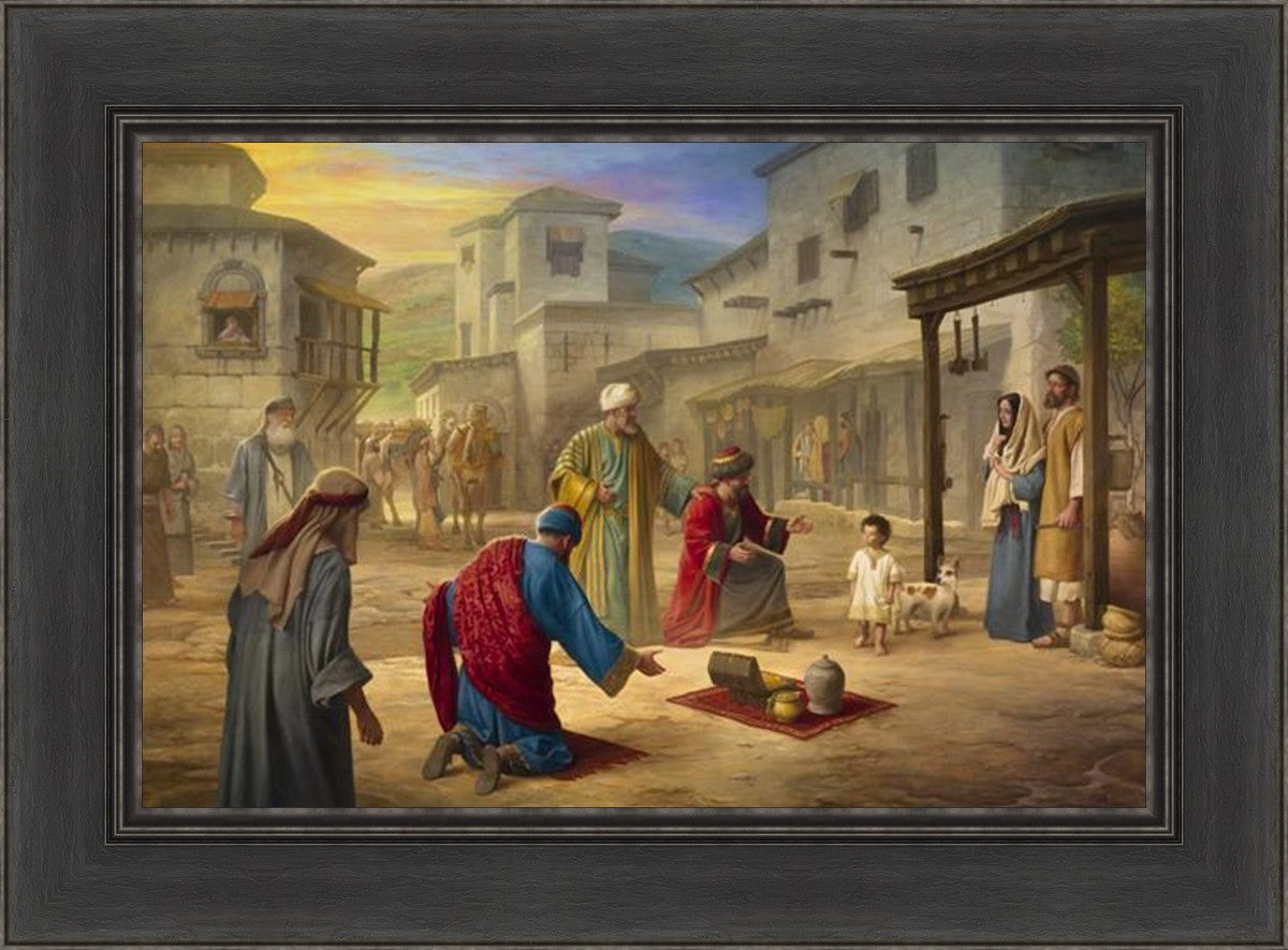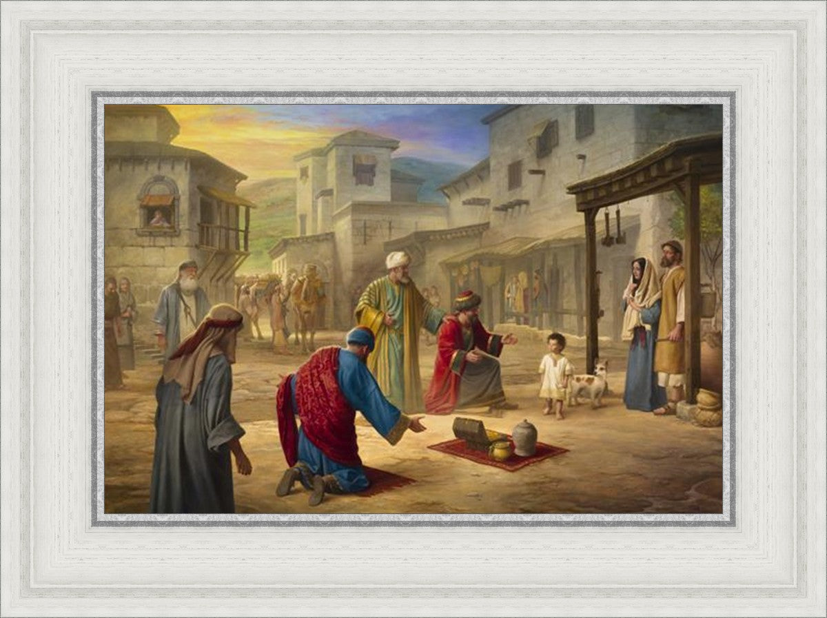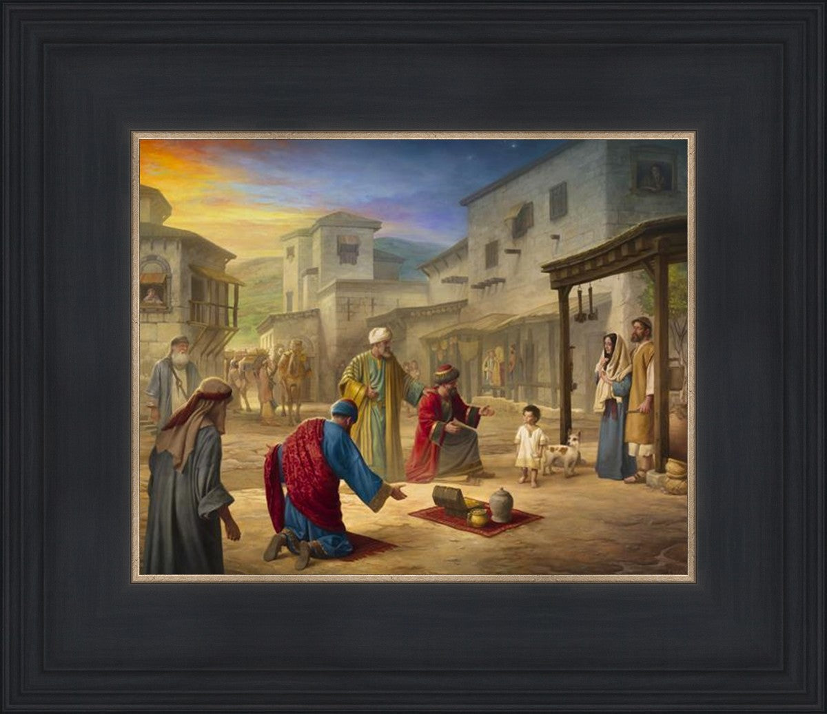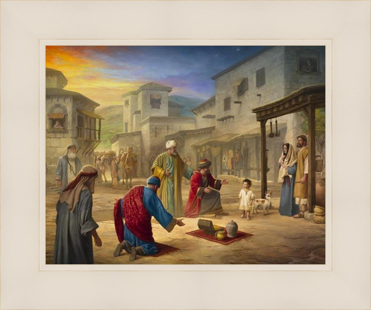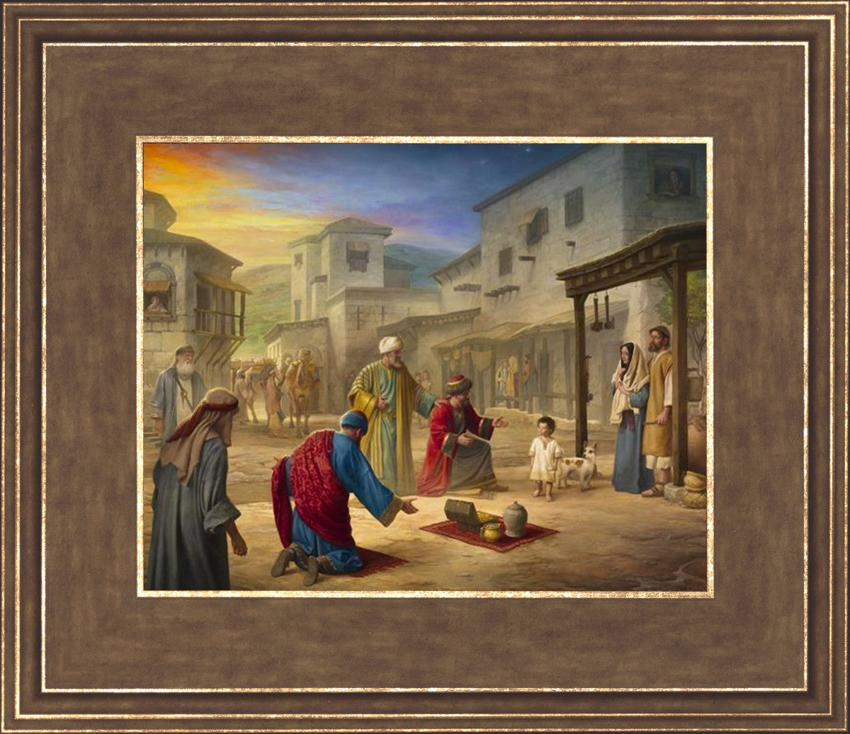 Matthew 2:11 And when they were come into the house, they saw the young child with Mary his mother, and fell down, and worshipped him: and when they had opened their treasures, they presented unto him gifts; gold, and frankincense, and myrrh. **** The account of the Magi visiting Christ as a child has long been the subject of paintings and stories. It is touching and inspiring to envision the wise and learned traveling to present gifts and honor to the young Christ. Though tradition places the Magi in the manger, the scriptures indicate that Christ may have been as old as two when they arrived. I can imagine traveling with the Magi with a growing anticipation of seeing the young Christ. After a long journey and arriving at His home, the Spirit bears witness that He is the King of Kings, my Redeemer, my Savior—and with gratitude I have the opportunity to lay my humble gifts at His feet.