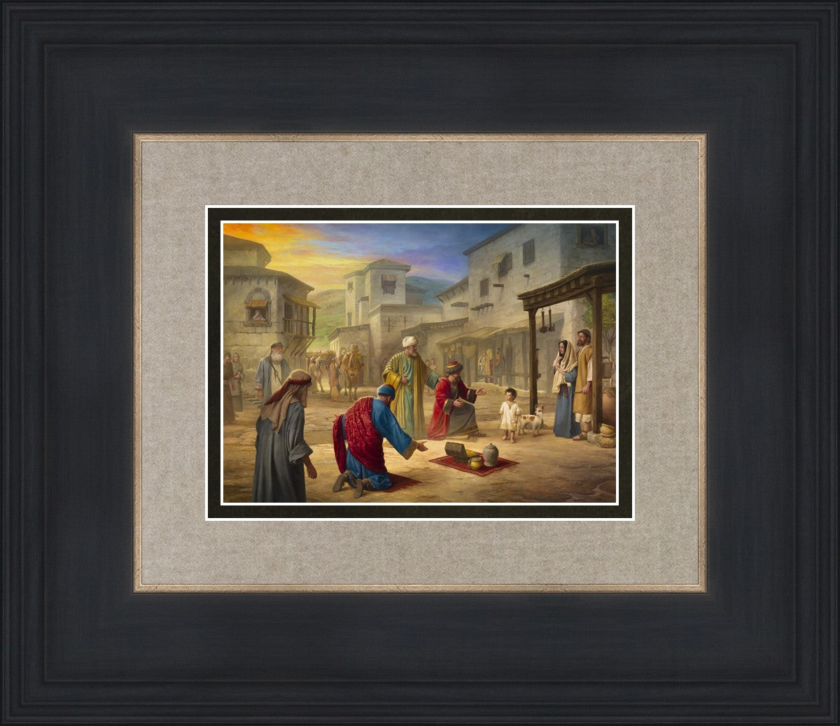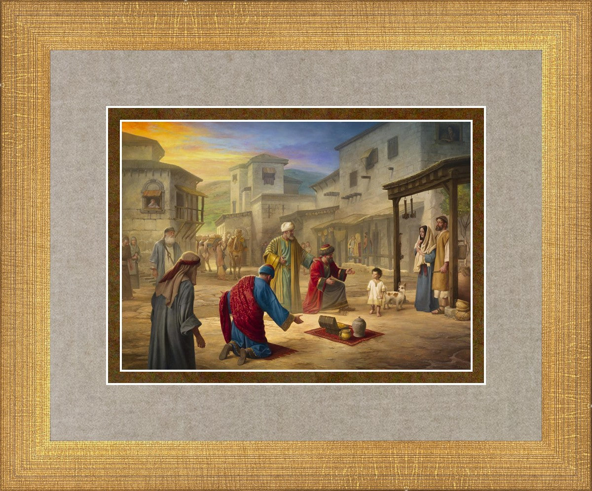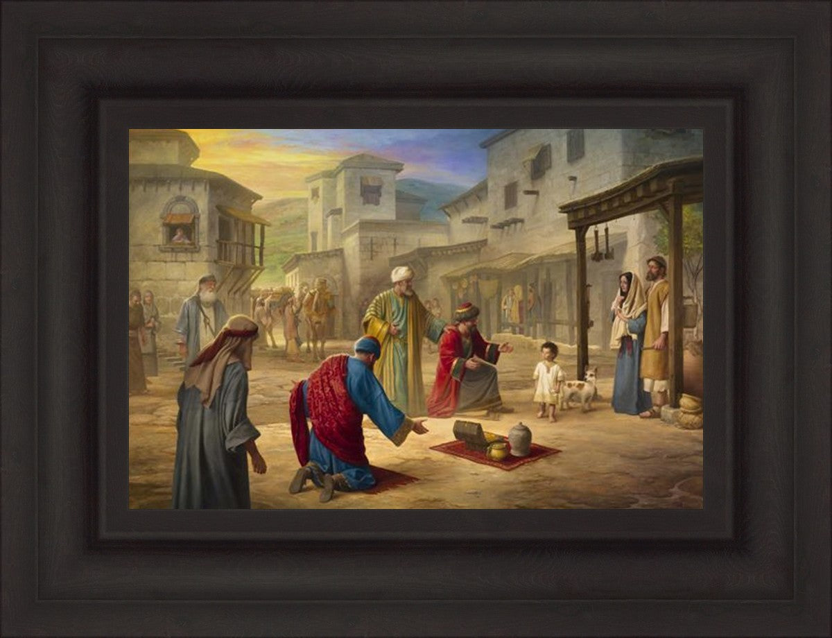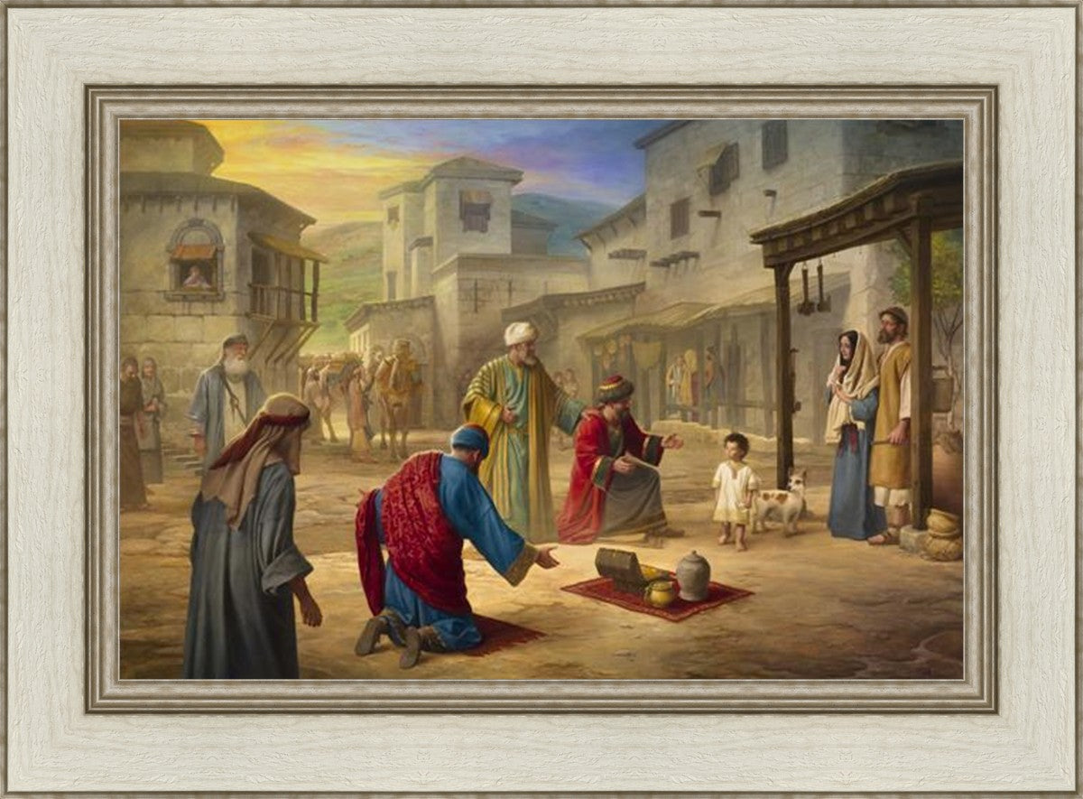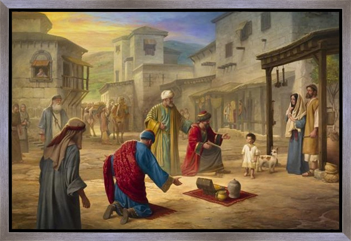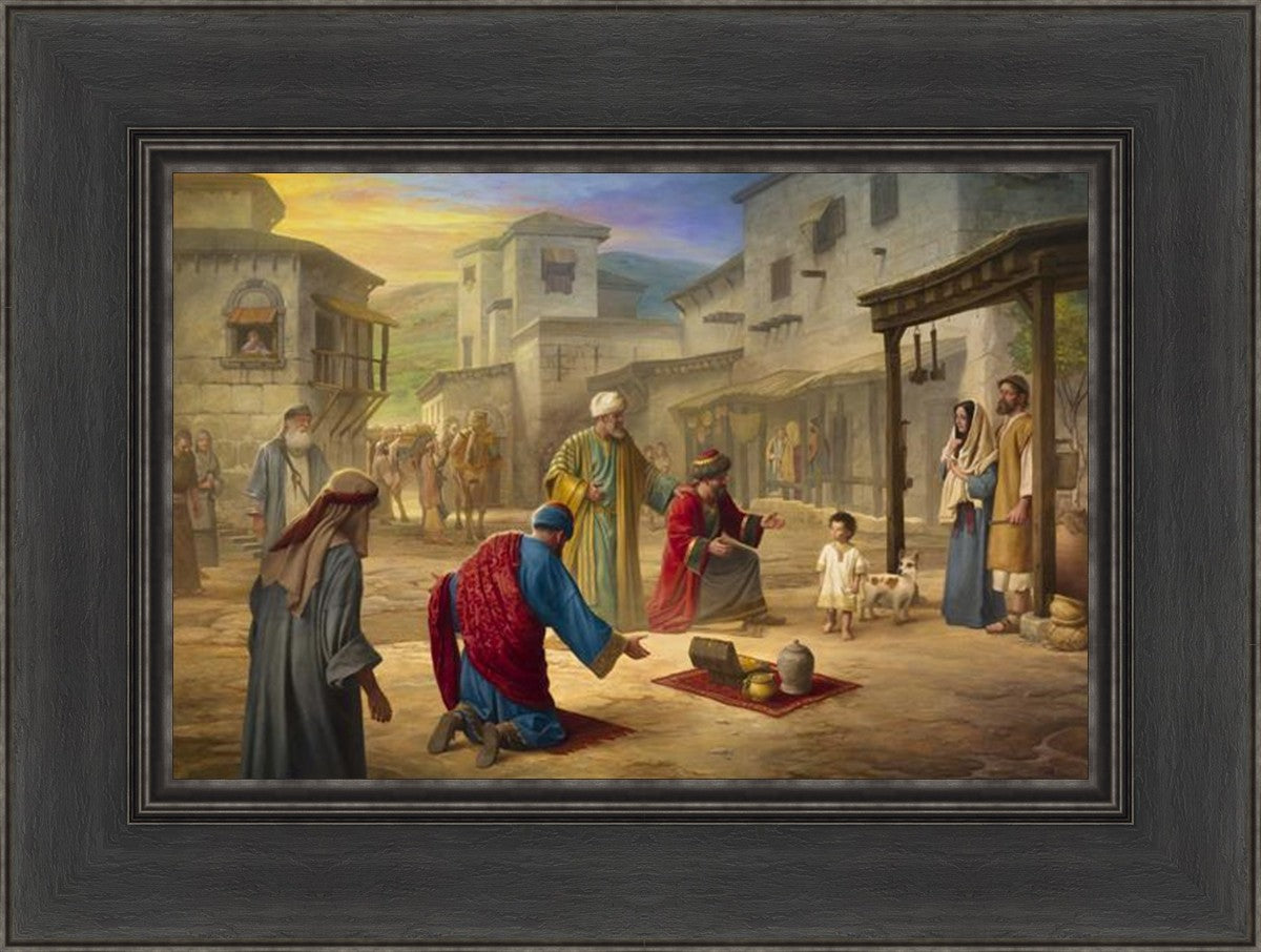 Matthew 2:11 And when they were come into the house, they saw the young child with Mary his mother, and fell down, and worshipped him: and when they had opened their treasures, they presented unto him gifts; gold, and frankincense, and myrrh. **** The account of the Magi visiting Christ as a child has long been the subject of paintings and stories. It is touching and inspiring to envision the wise and learned traveling to present gifts and honor to the young Christ. Though tradition places the Magi in the manger, the scriptures indicate that Christ may have been as old as two when they arrived. I can imagine traveling with the Magi with a growing anticipation of seeing the young Christ. After a long journey and arriving at His home, the Spirit bears witness that He is the King of Kings, my Redeemer, my Savior—and with gratitude I have the opportunity to lay my humble gifts at His feet.