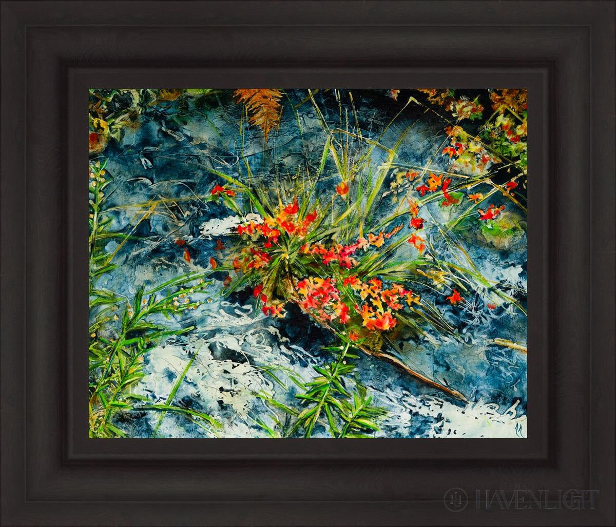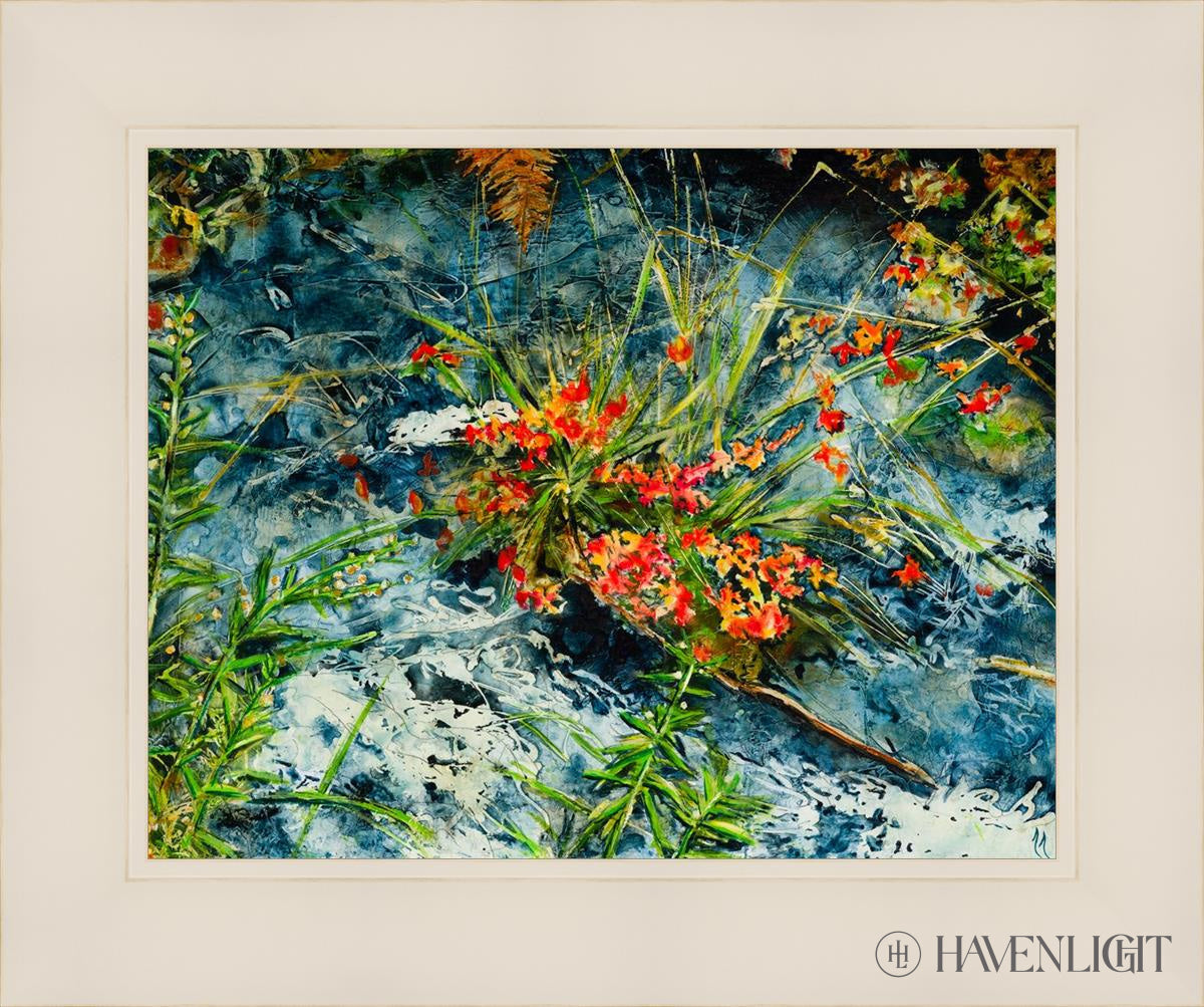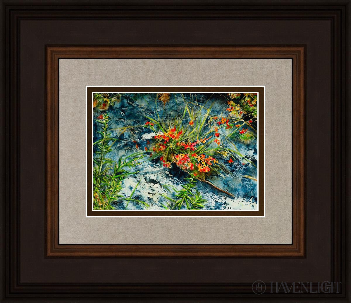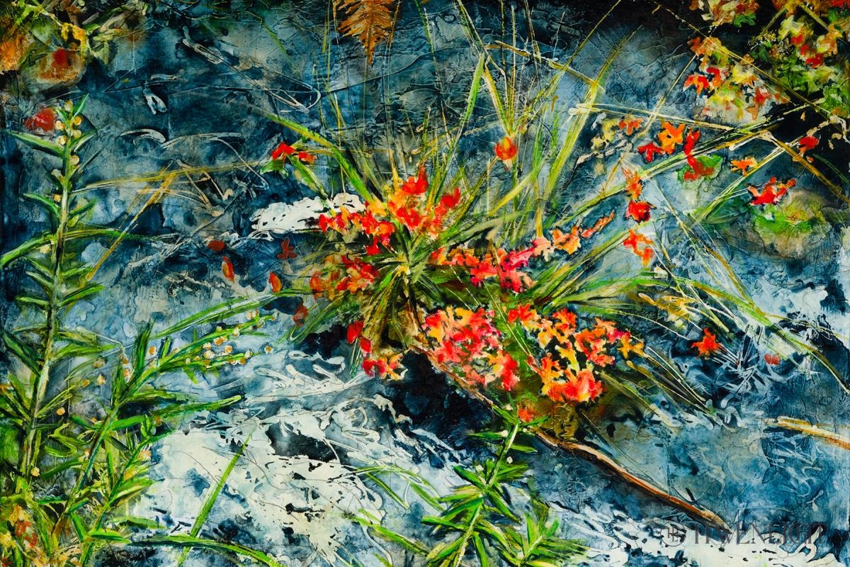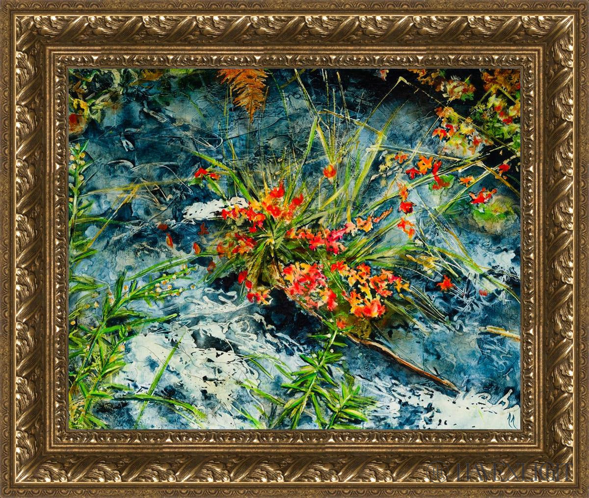 This image depicts a small part of the Cascade Springs trail in the Uinta National Forest. It is a large naturally occurring spring with terraced cascades and pools where many species of plants grow in and around the water. This painting captures a bit of the essence of those falls and the memories made by its visitors there.