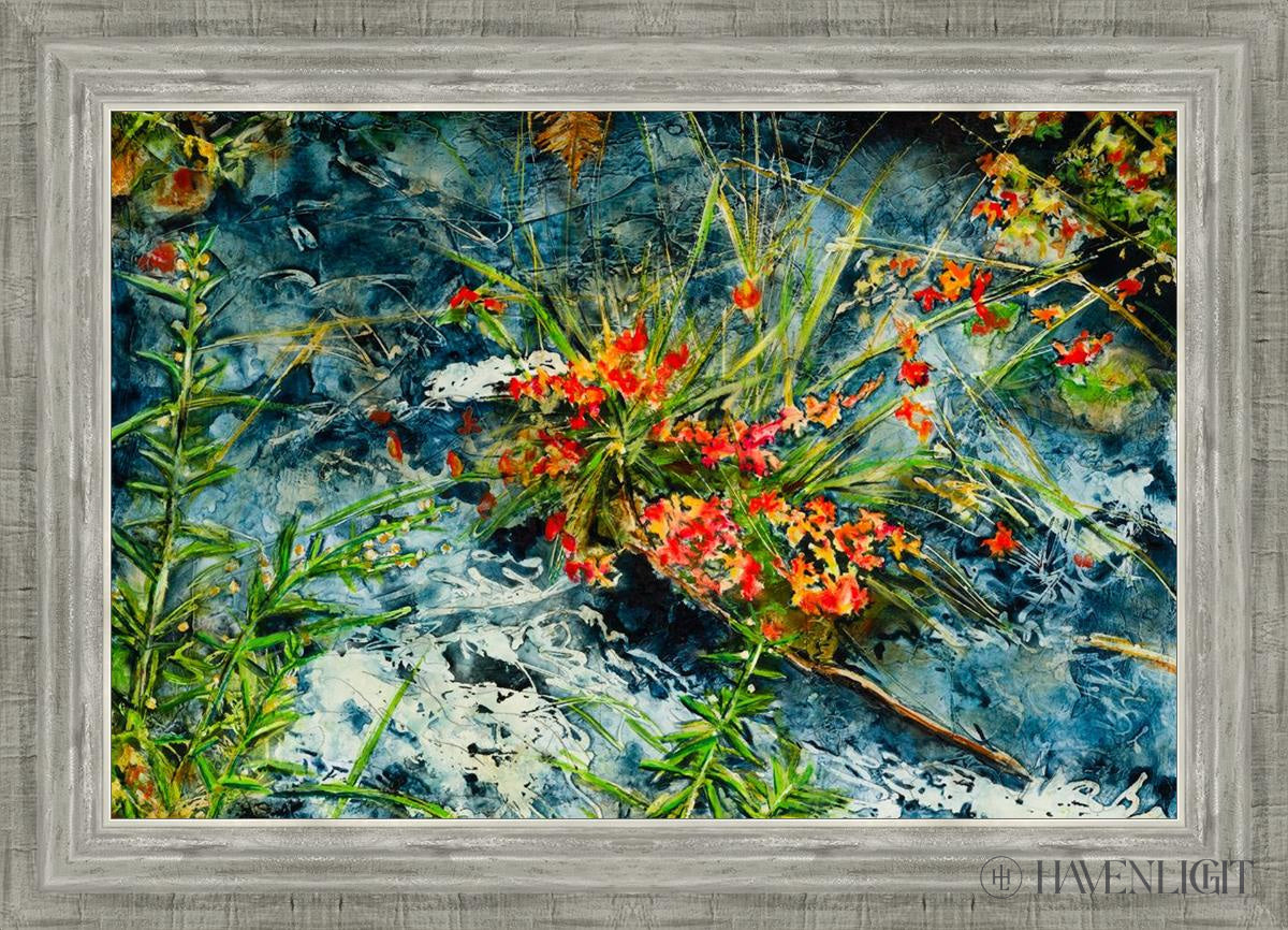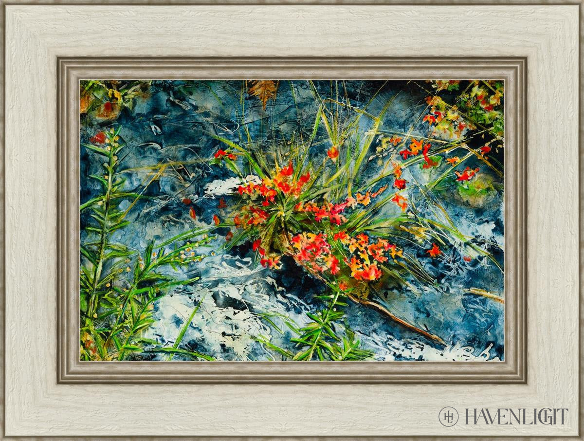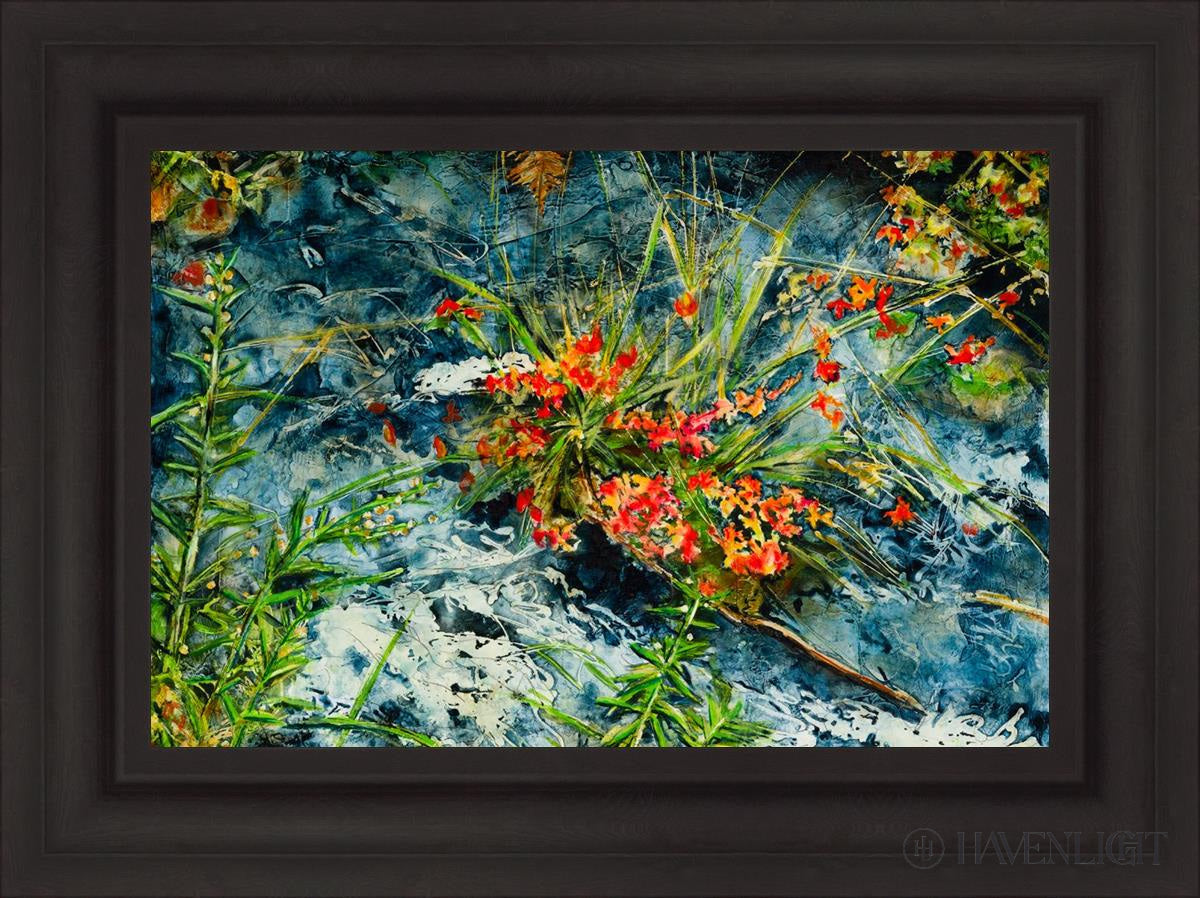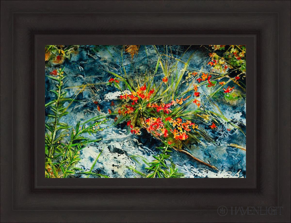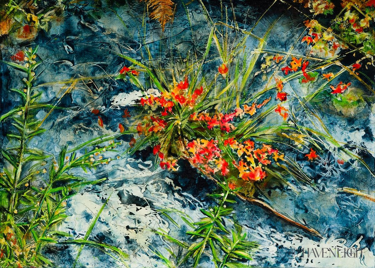 This image depicts a small part of the Cascade Springs trail in the Uinta National Forest. It is a large naturally occurring spring with terraced cascades and pools where many species of plants grow in and around the water. This painting captures a bit of the essence of those falls and the memories made by its visitors there.