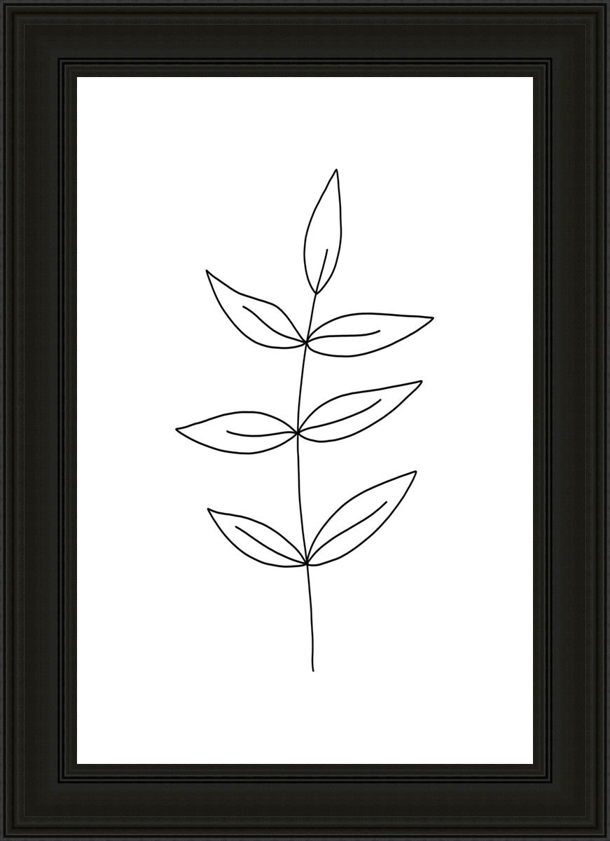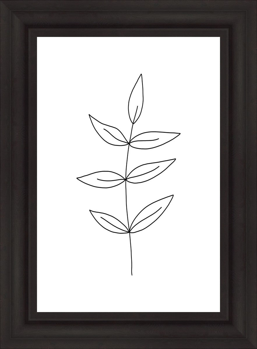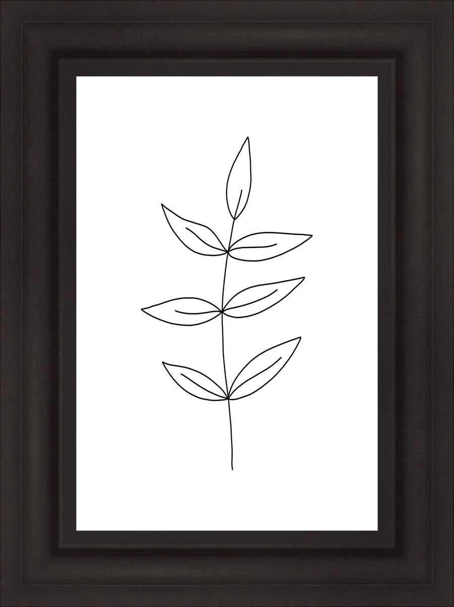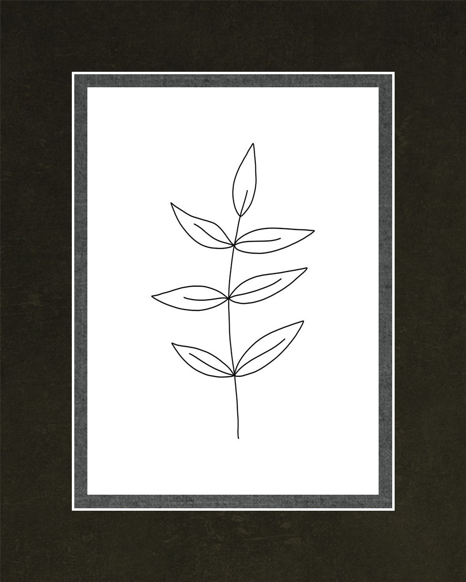 Minimalist poster of leaves in black against a white background.