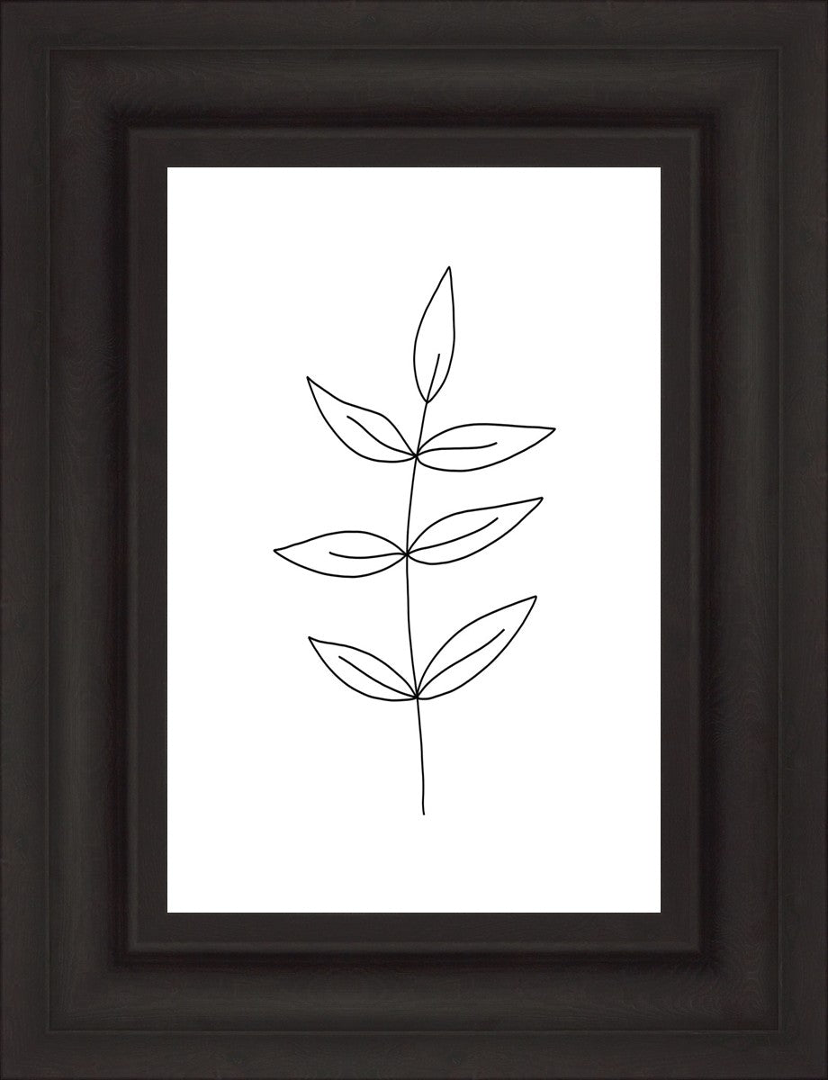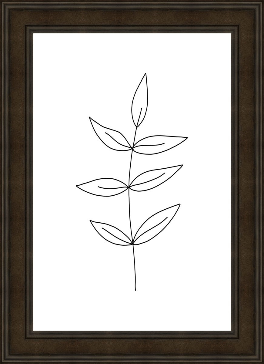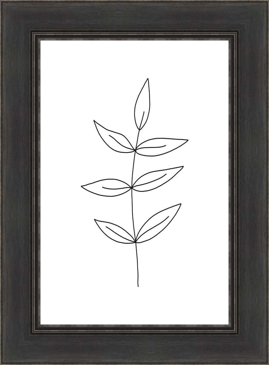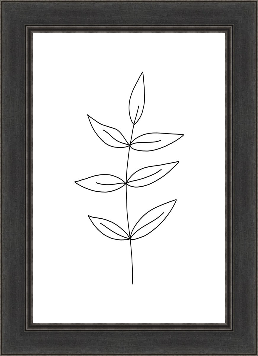 Minimalist poster of leaves in black against a white background.