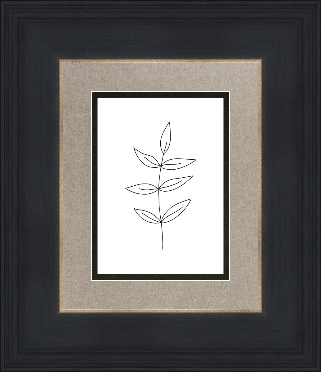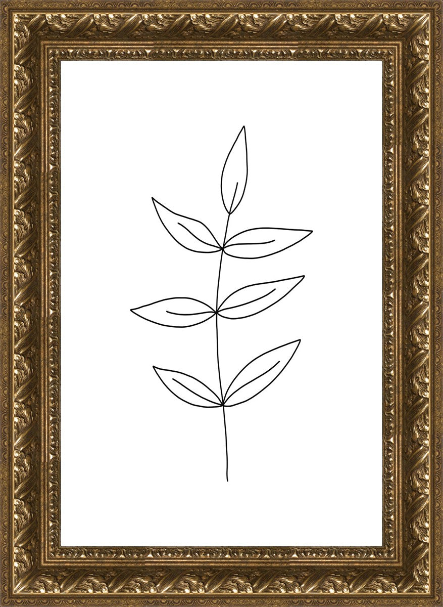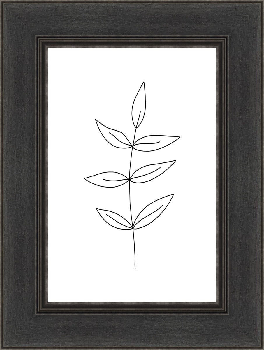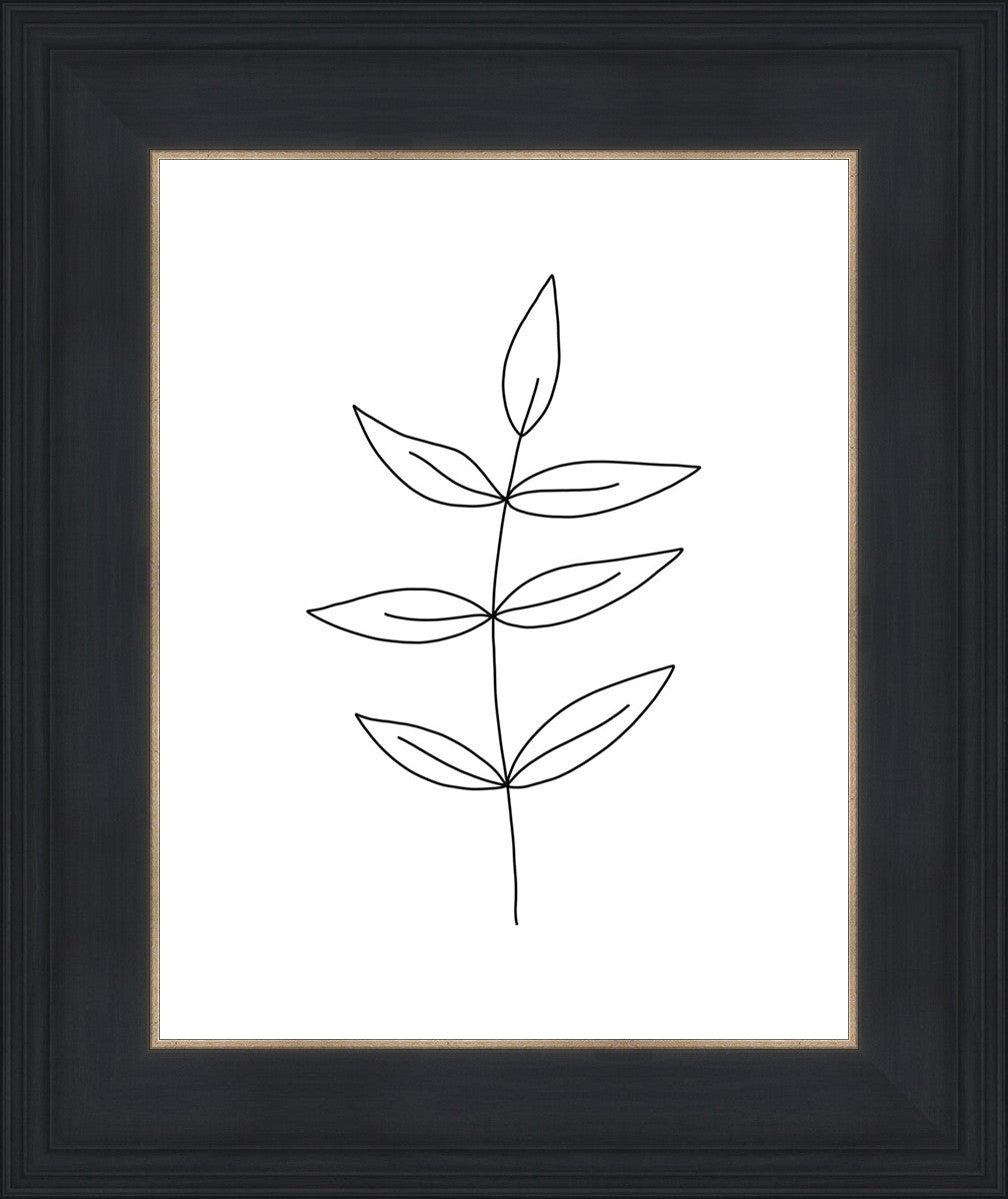 Minimalist poster of leaves in black against a white background.