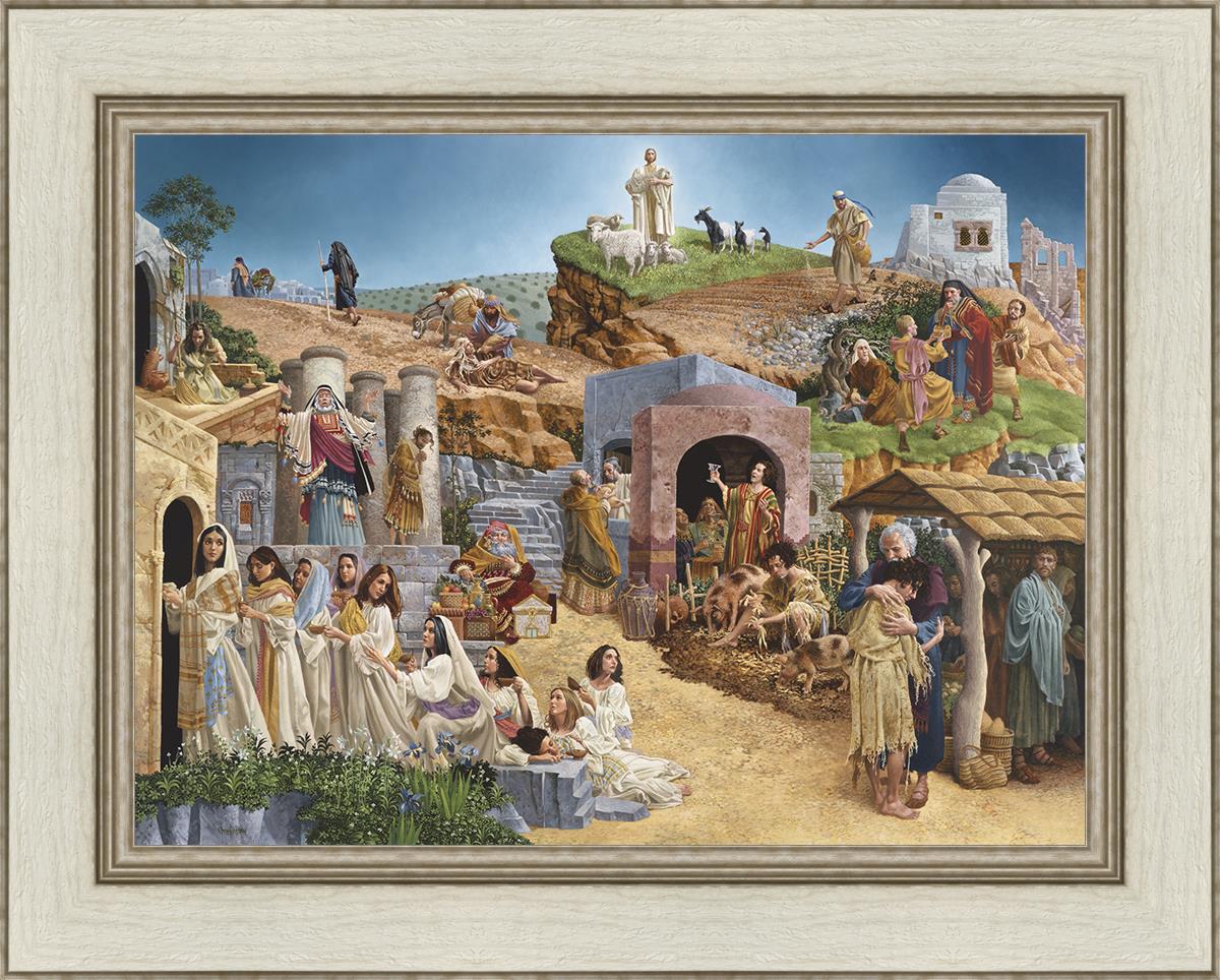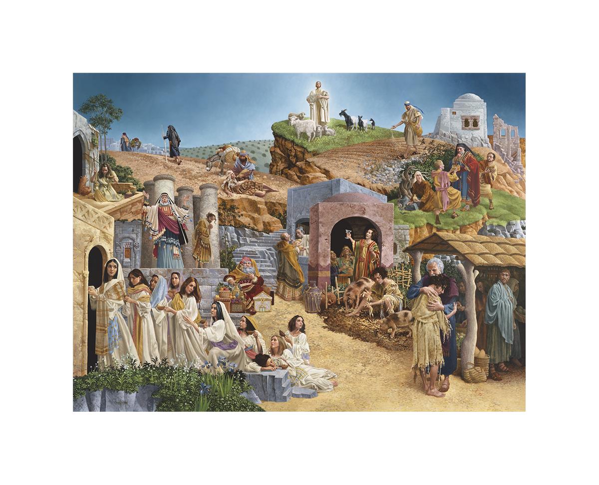 Few of us remember all of Jesus' parables; it seems each time I read the New Testament, it's a matter of rediscovery. I'll come upon a certain parable and find it has new meaning and relevance to my life. That's why I thought I would gather several parables together in one image and create an opportunity for viewers to recall and share them. I'd be delighted if this print inspired you to talk about these stories with your children or grandchildren." - James Christensen