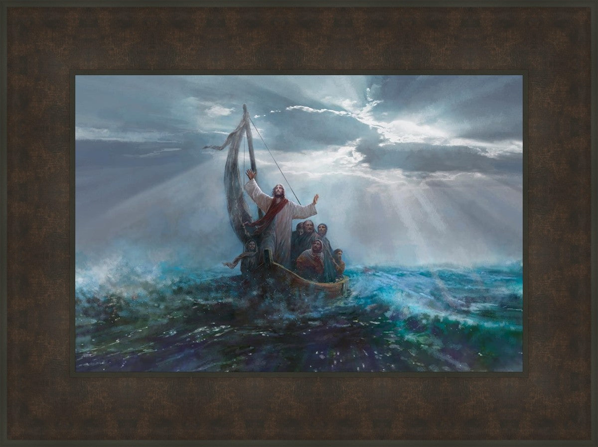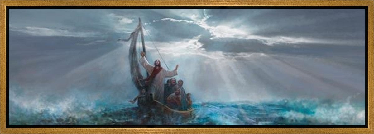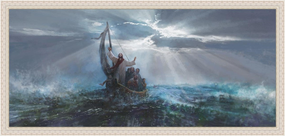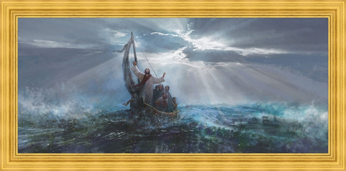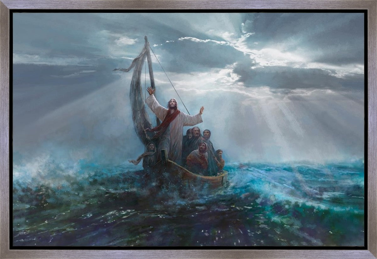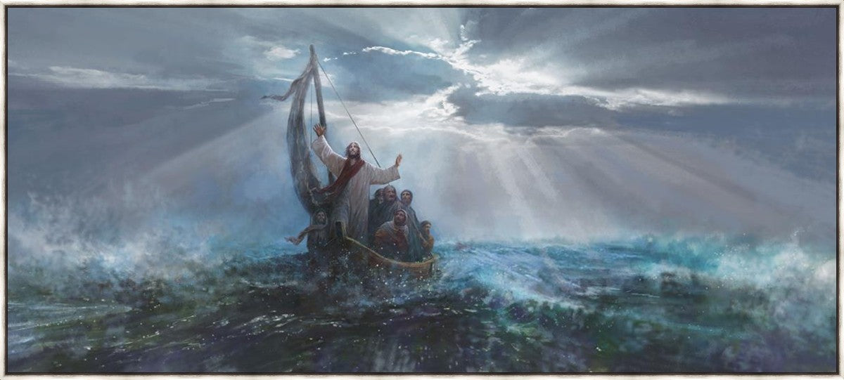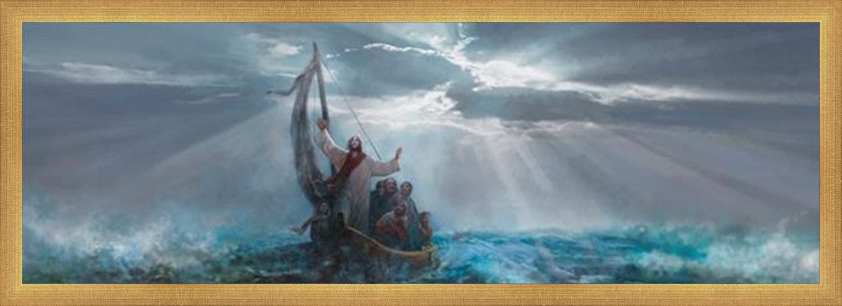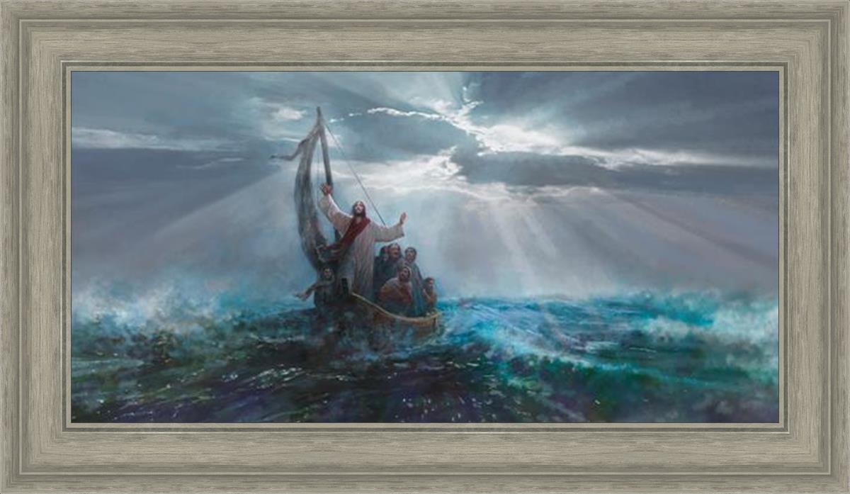 Peace Be Still is a painting by Yongsung Kim. This painting depicts Jesus Christ calming the raging sea amidst a storm.