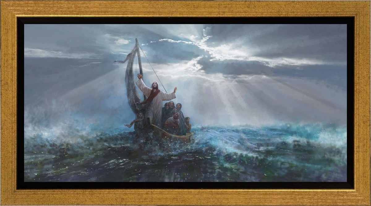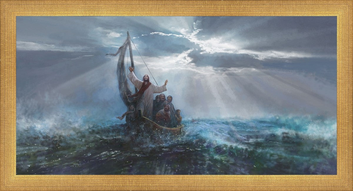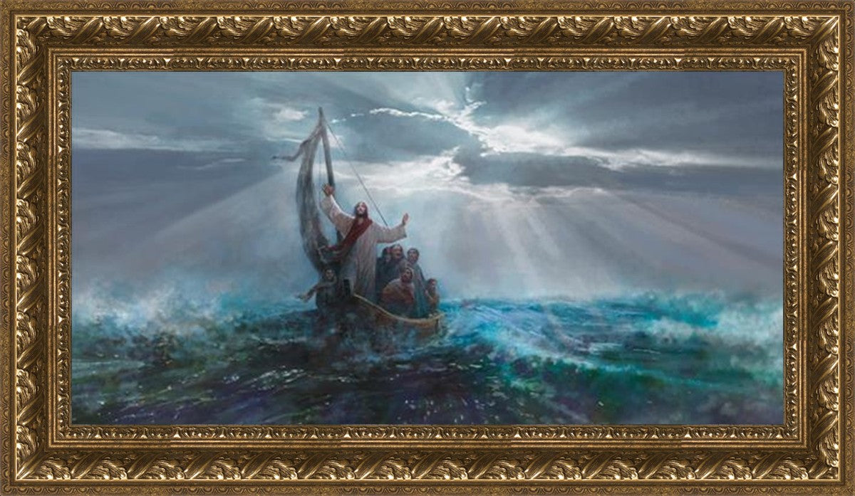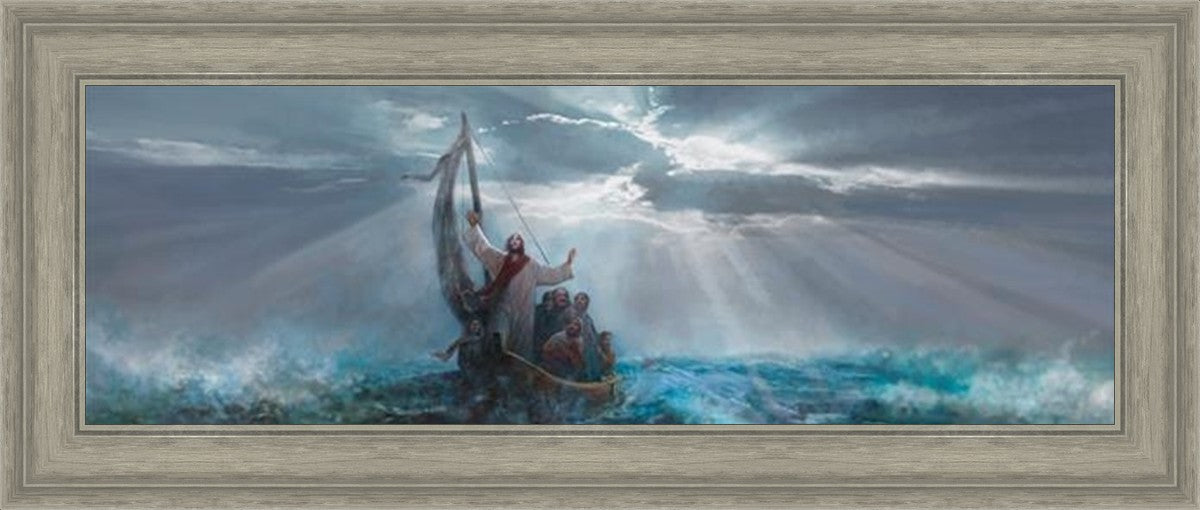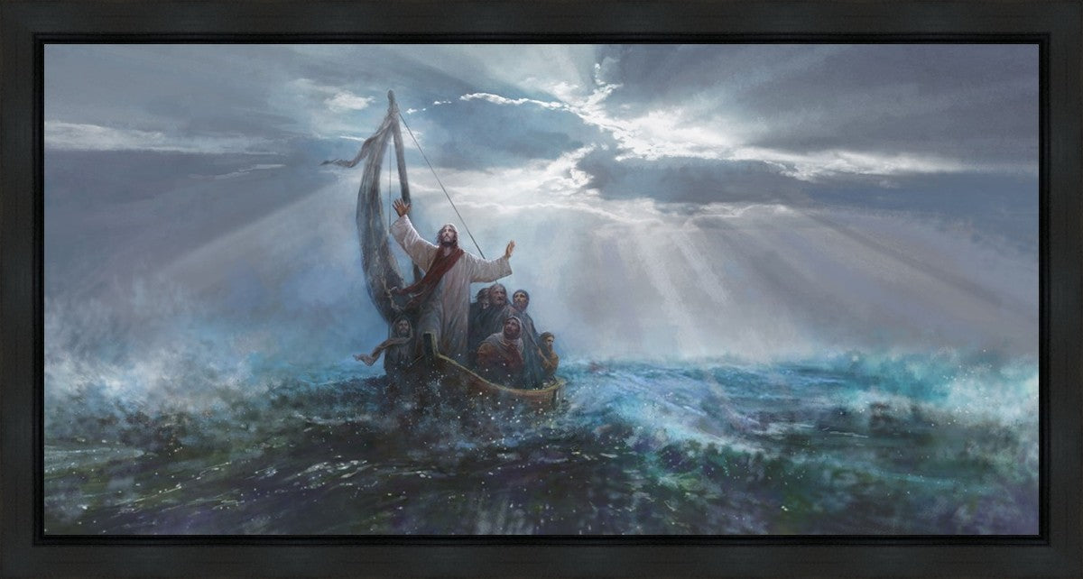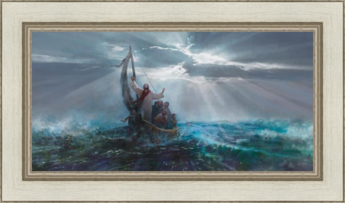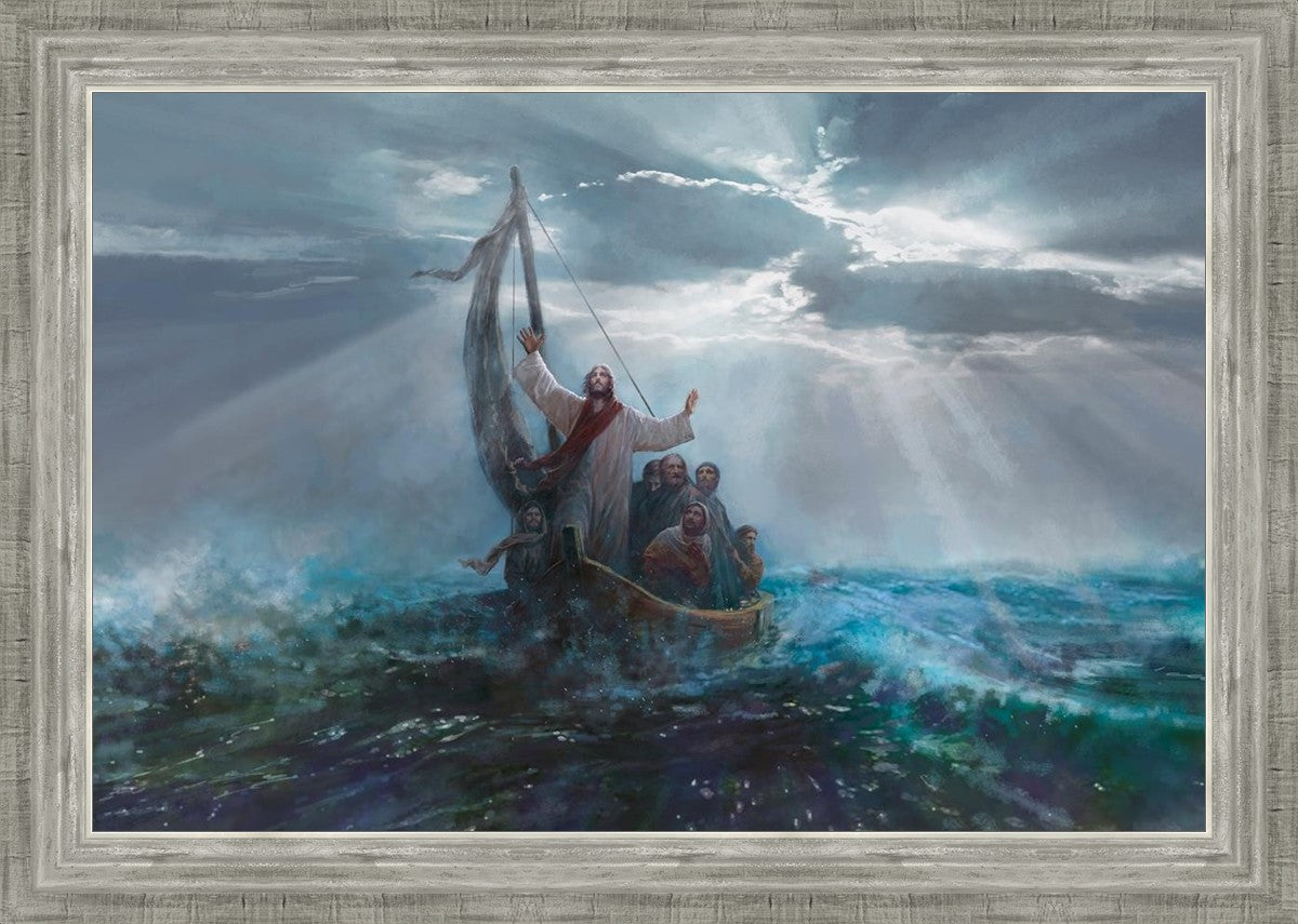Peace Be Still is a painting by Yongsung Kim. This painting depicts Jesus Christ calming the raging sea amidst a storm.