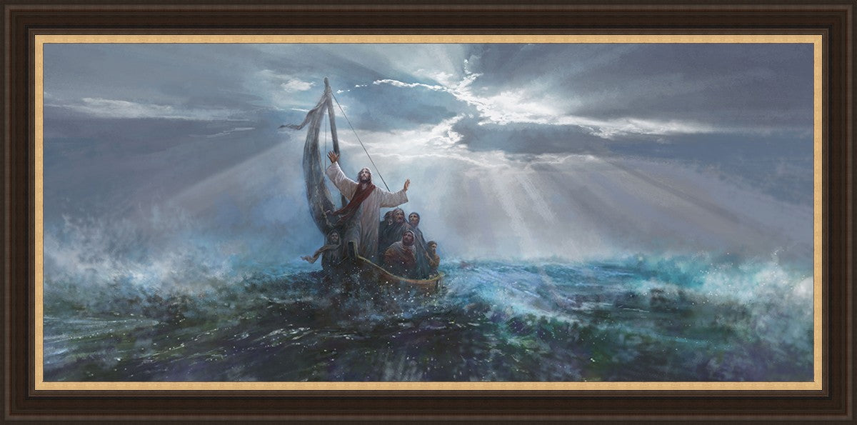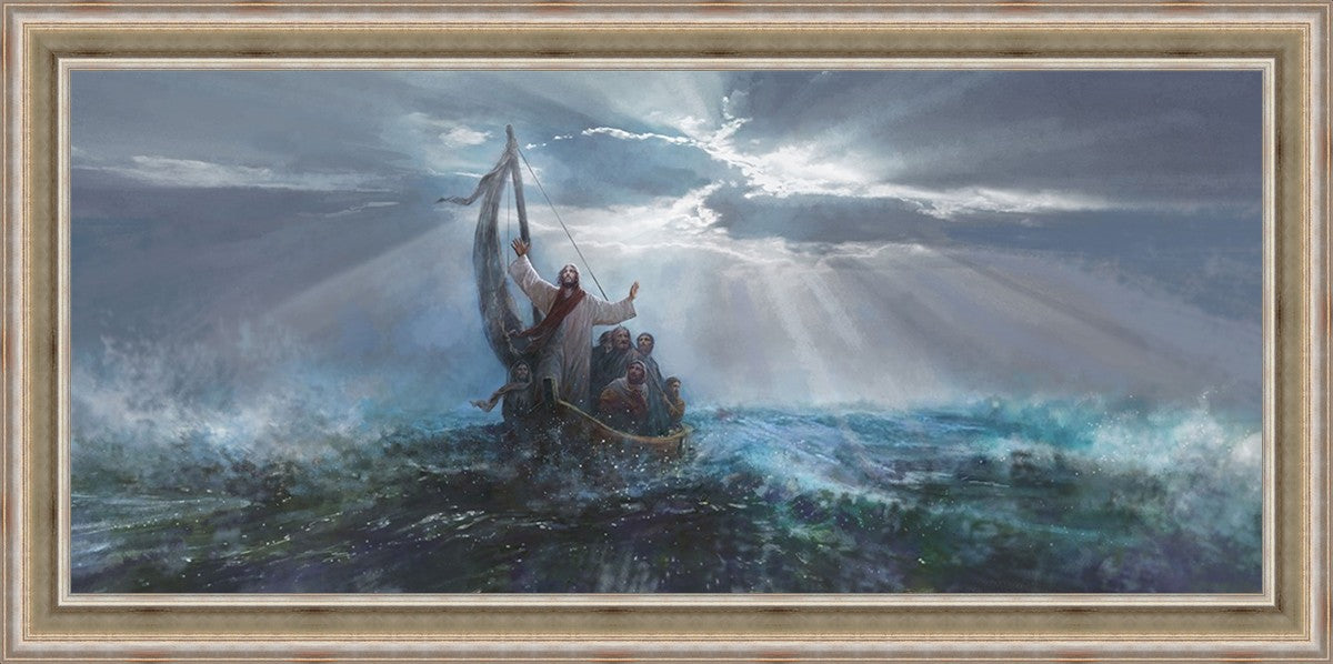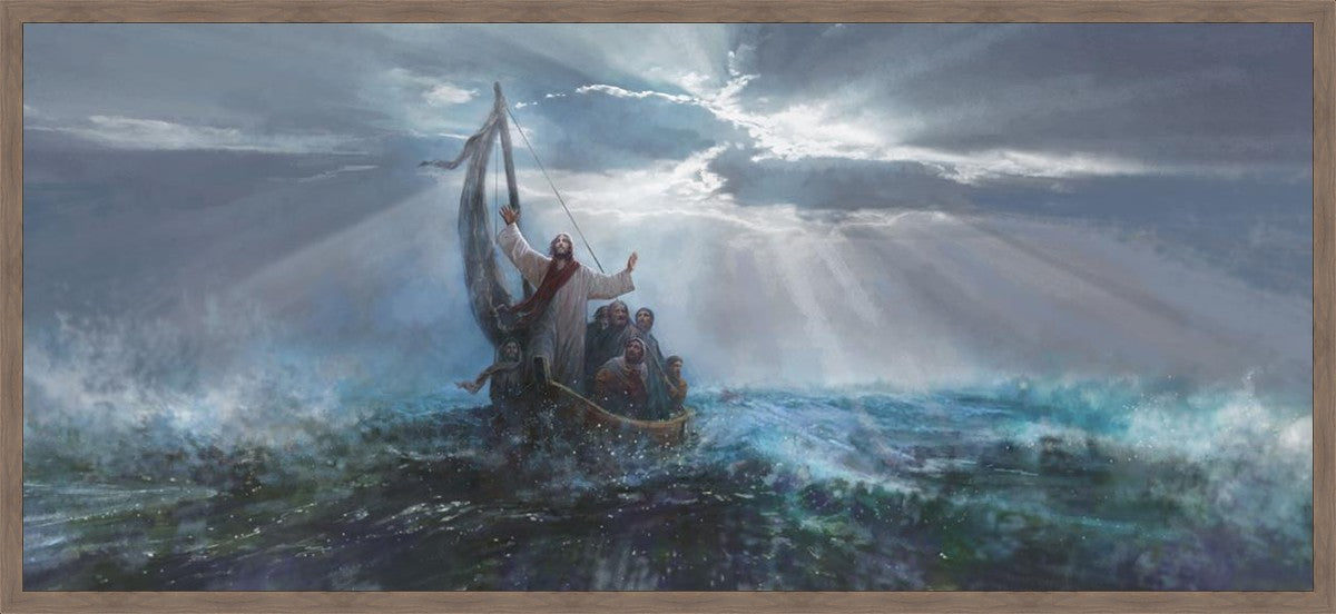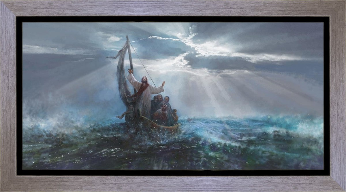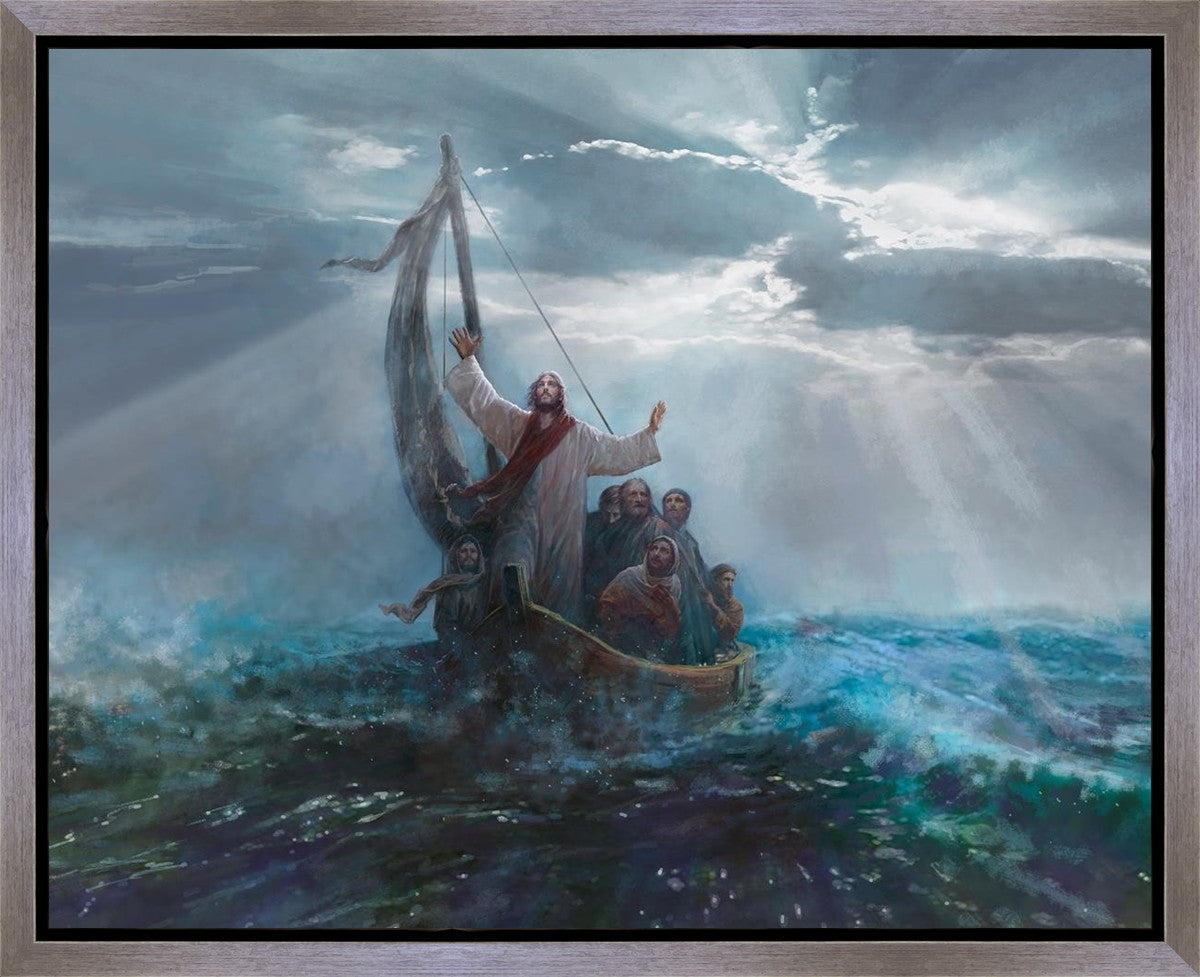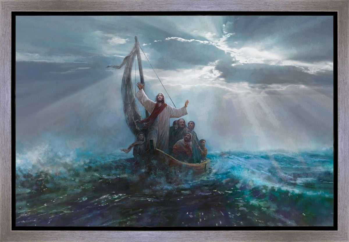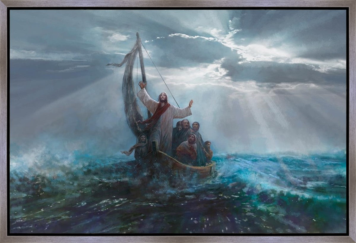 Peace Be Still is a painting by Yongsung Kim. This painting depicts Jesus Christ calming the raging sea amidst a storm.