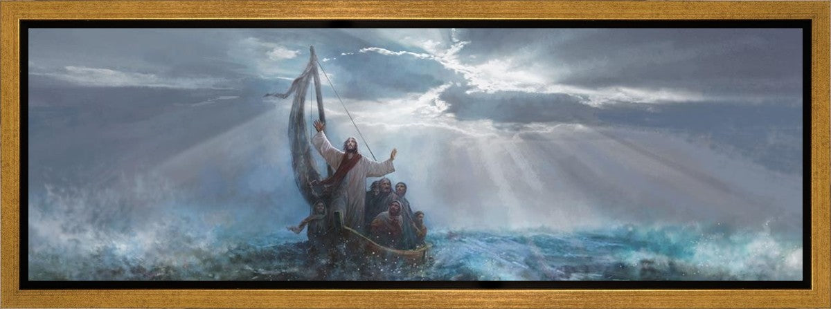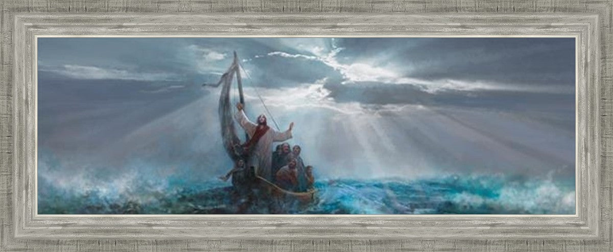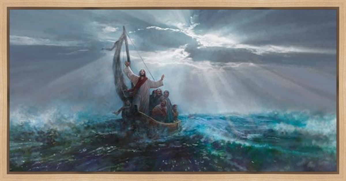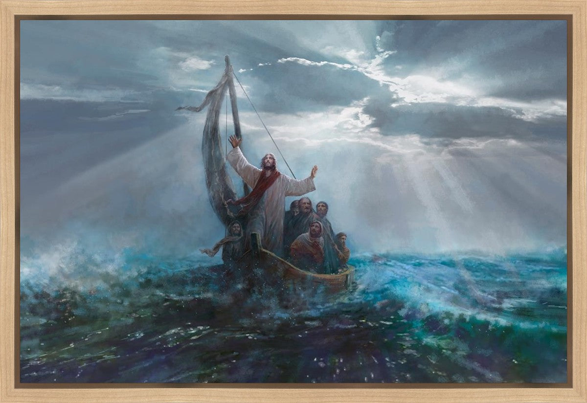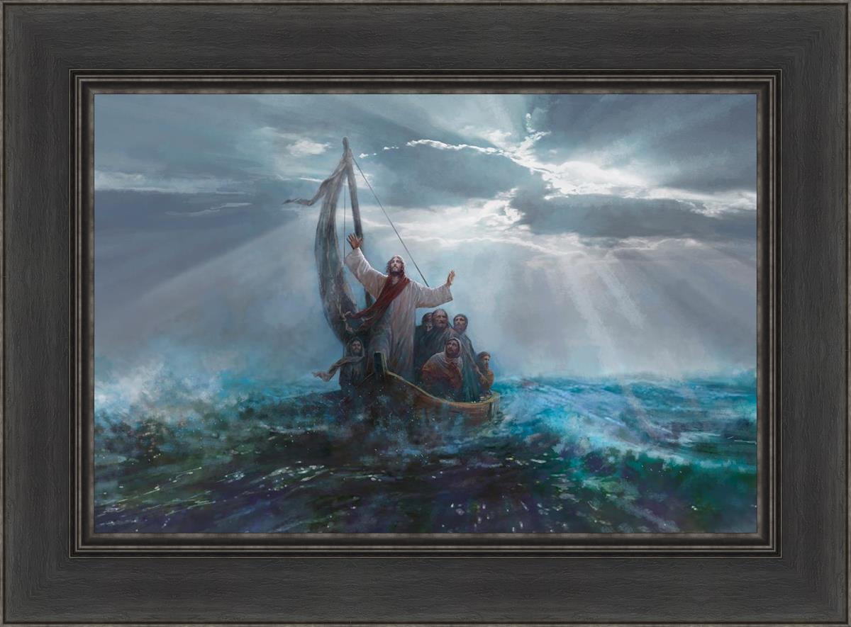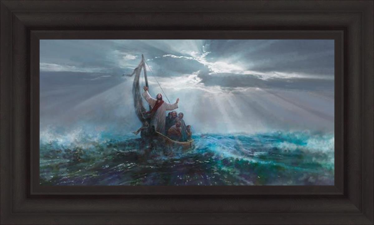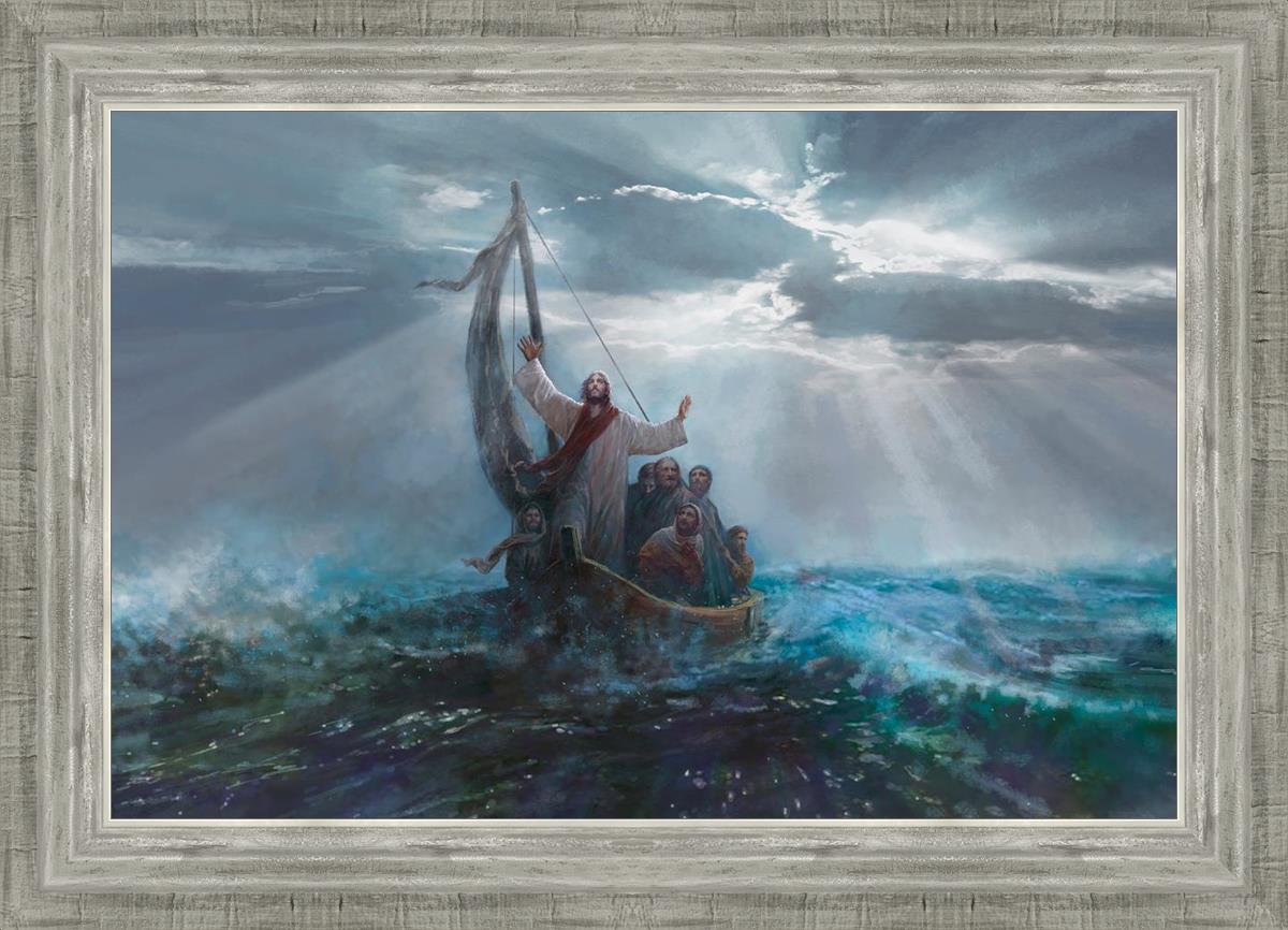 Peace Be Still is a painting by Yongsung Kim. This painting depicts Jesus Christ calming the raging sea amidst a storm.