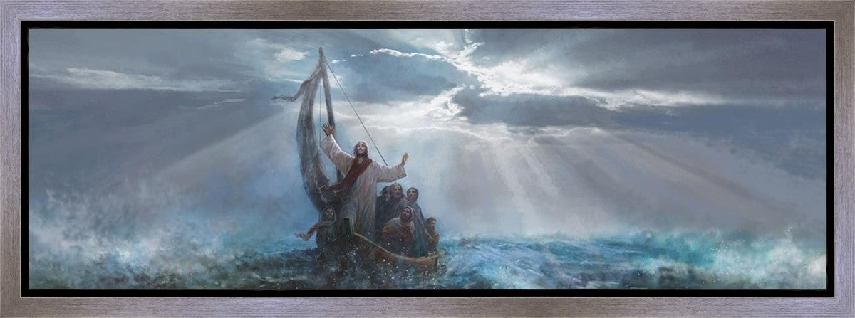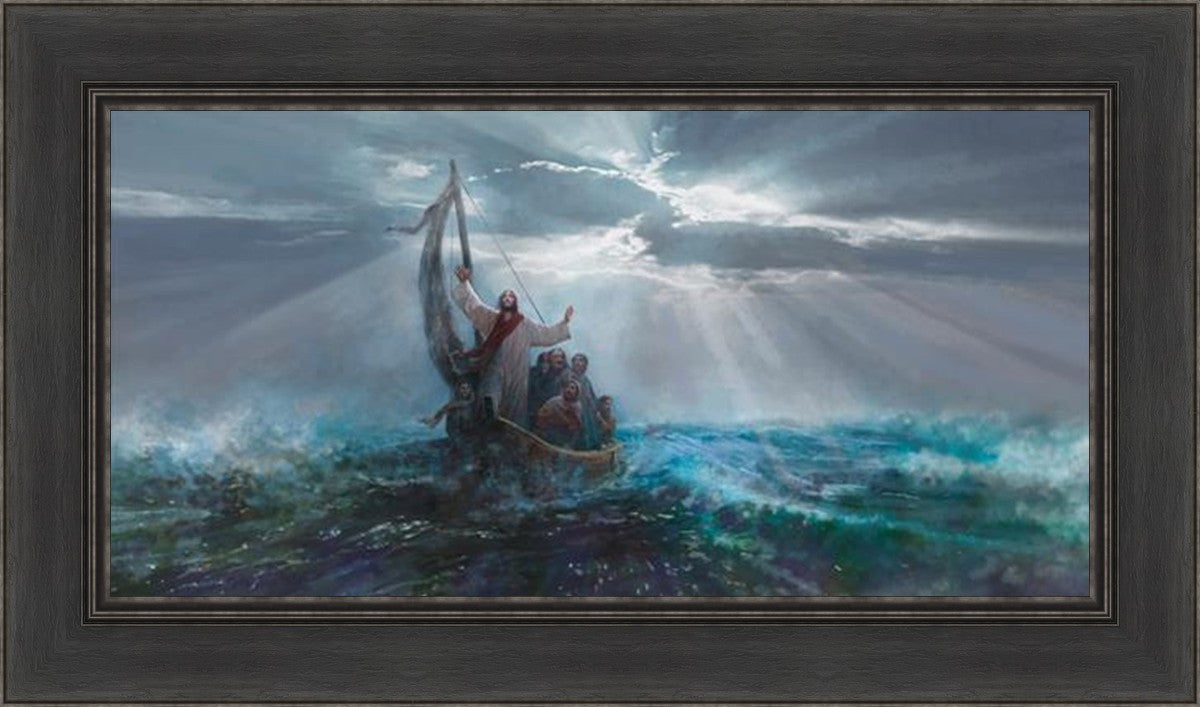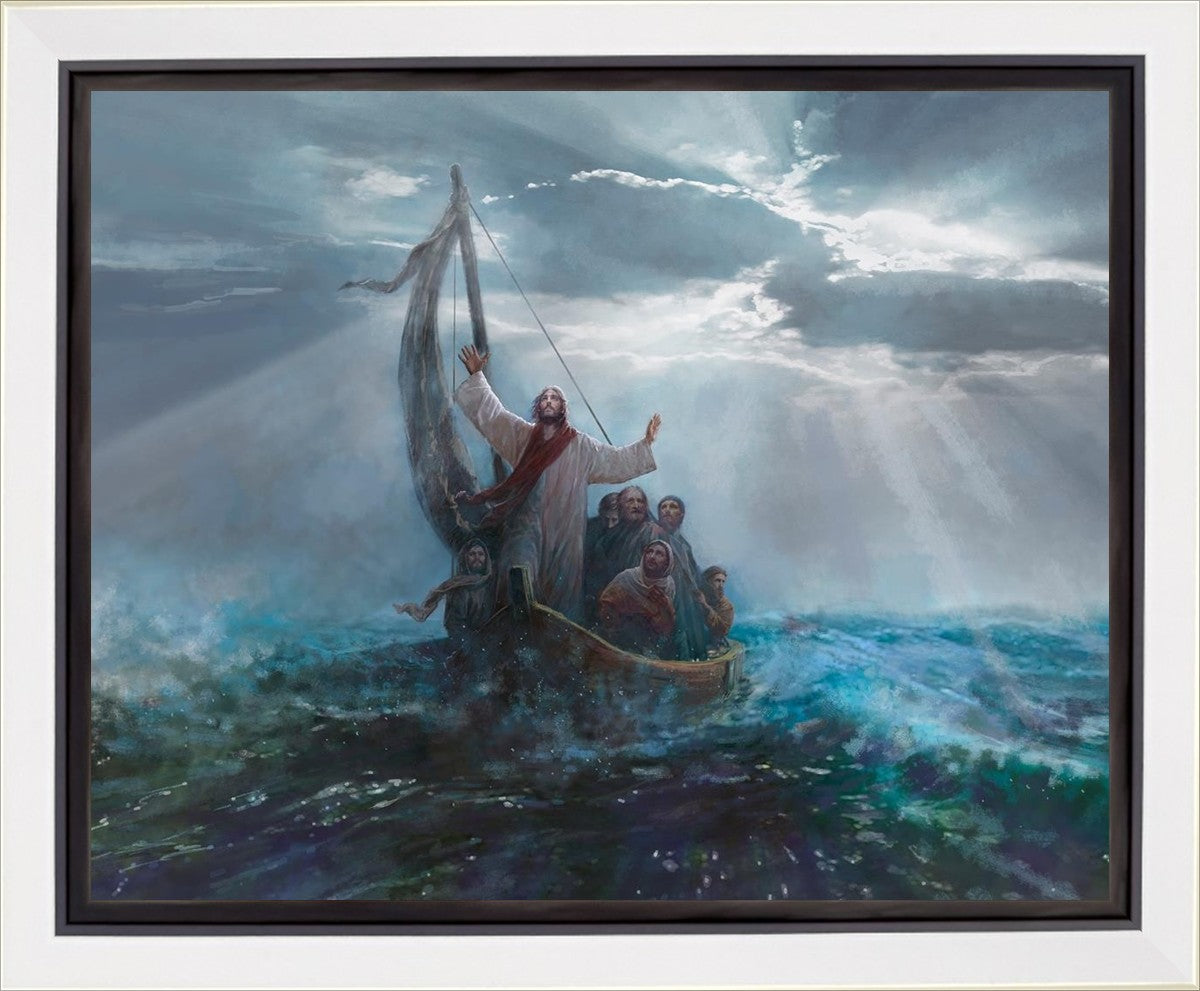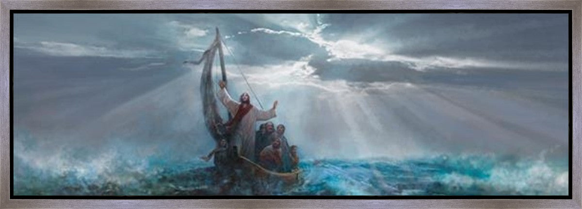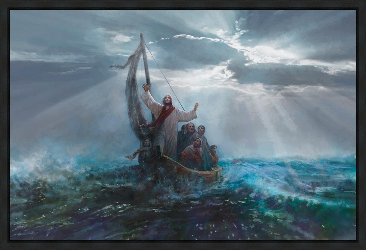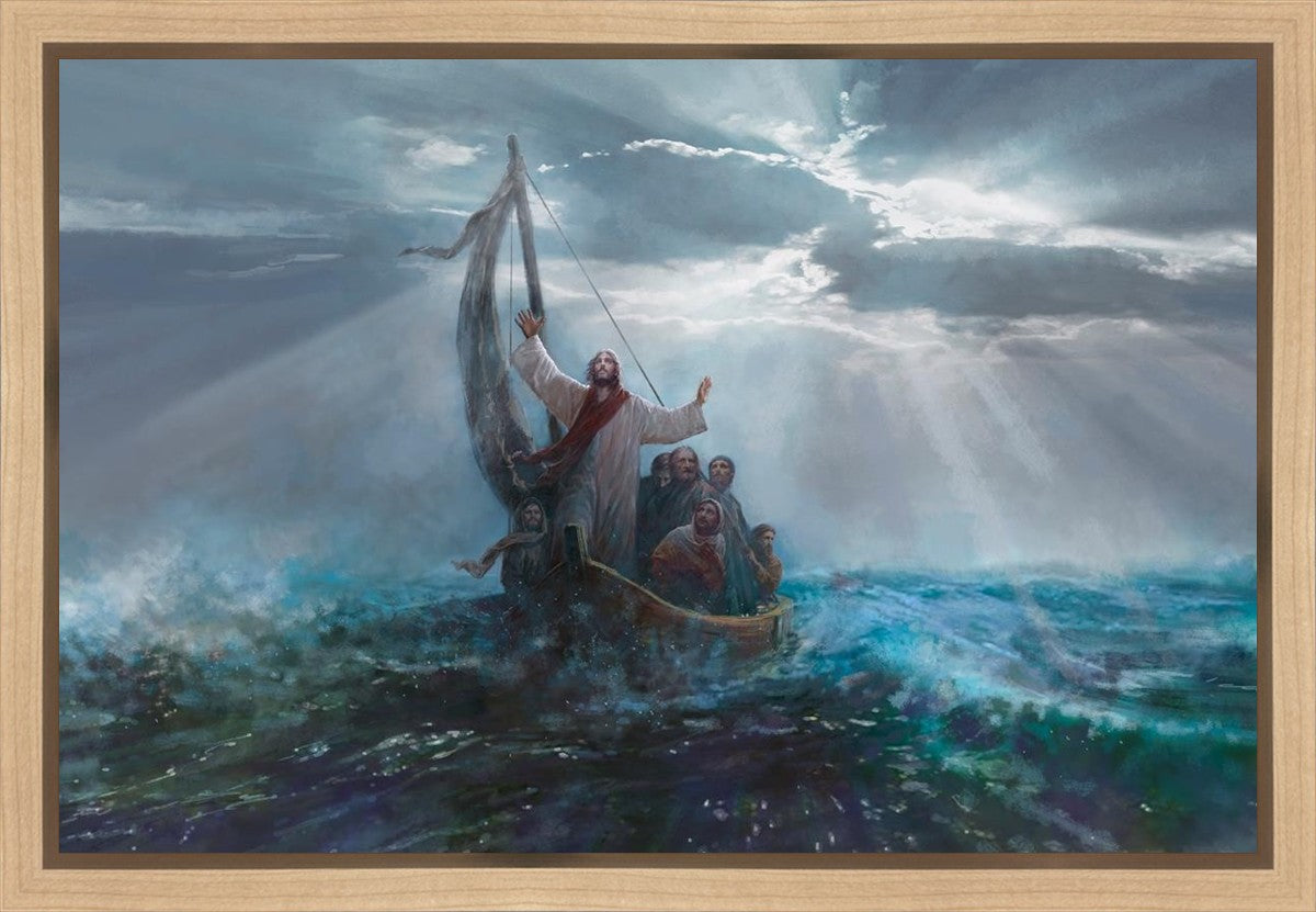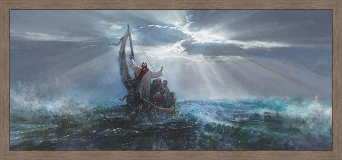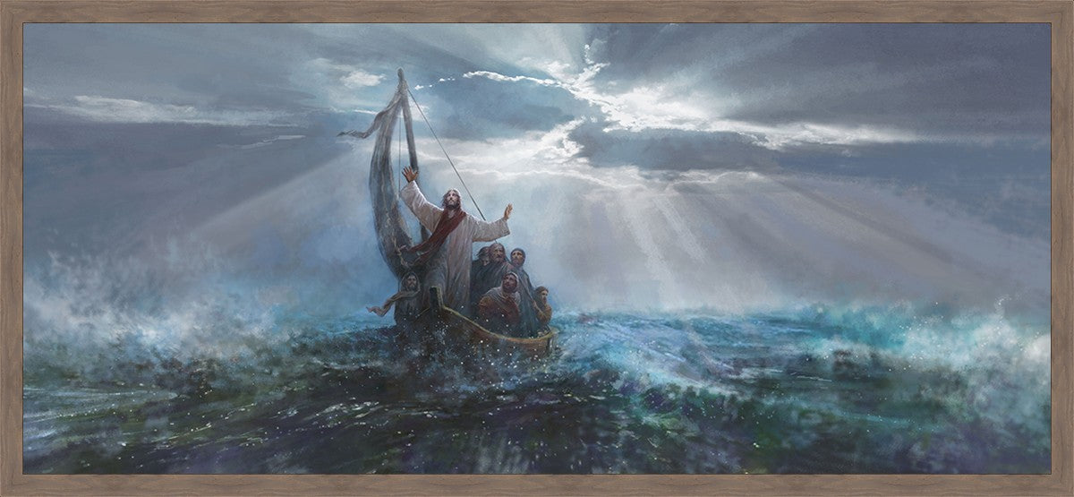 Peace Be Still is a painting by Yongsung Kim. This painting depicts Jesus Christ calming the raging sea amidst a storm.