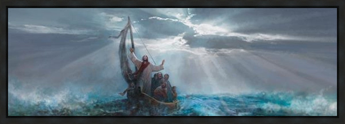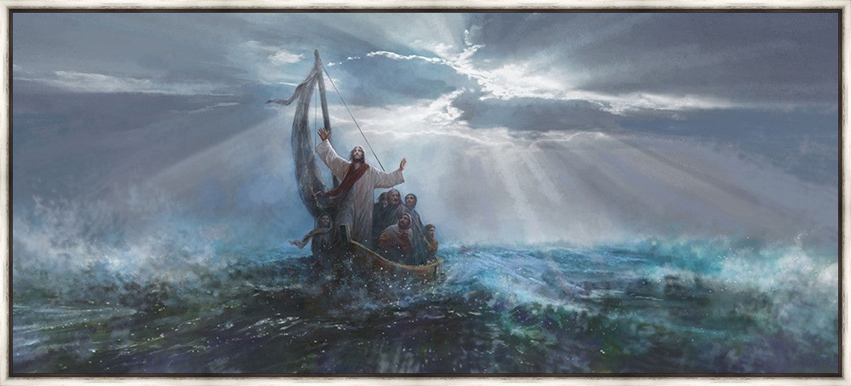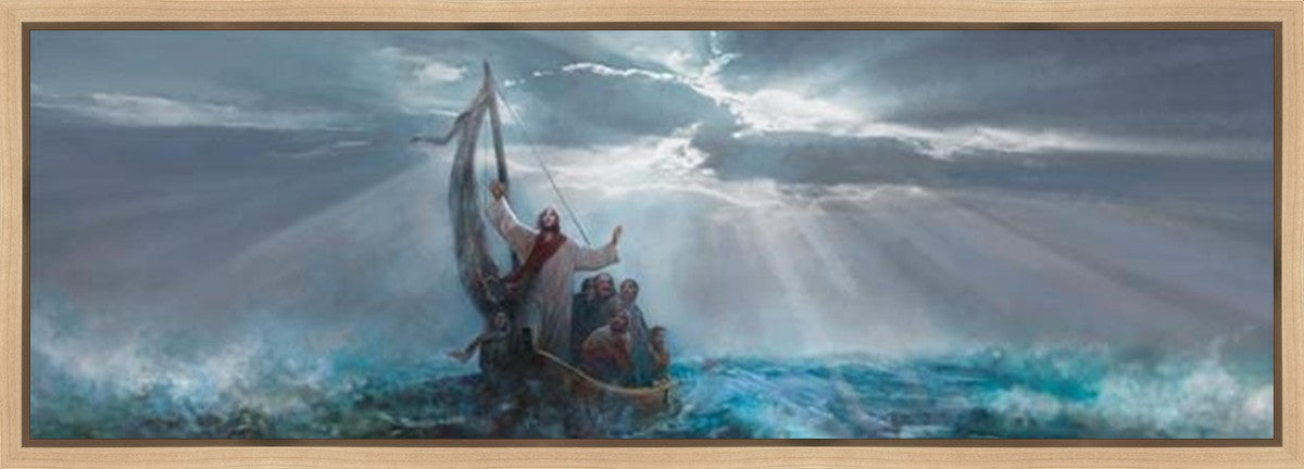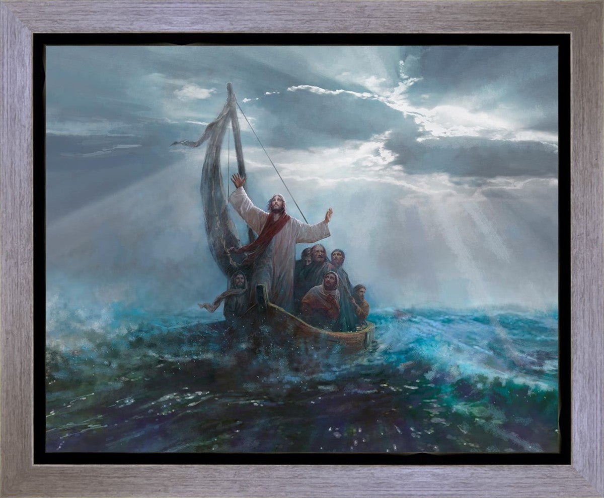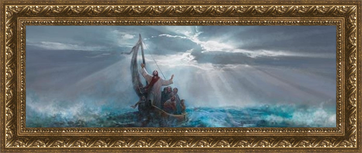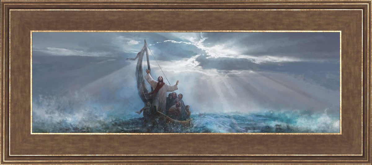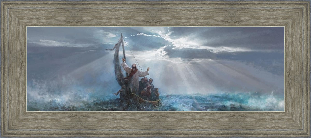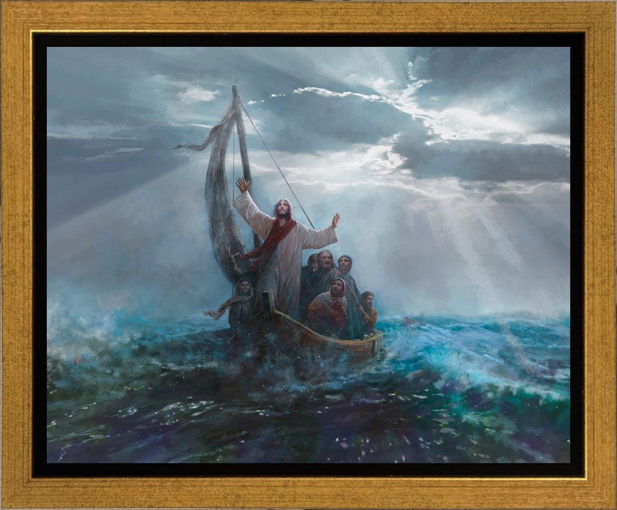Peace Be Still is a painting by Yongsung Kim. This painting depicts Jesus Christ calming the raging sea amidst a storm.