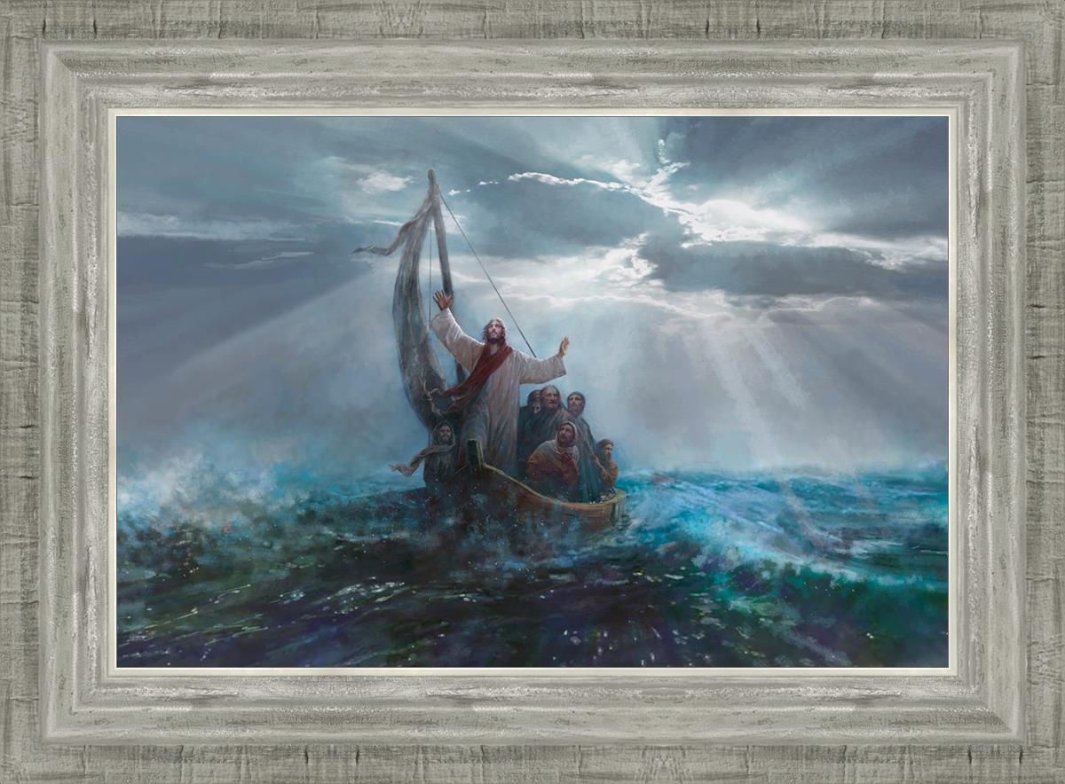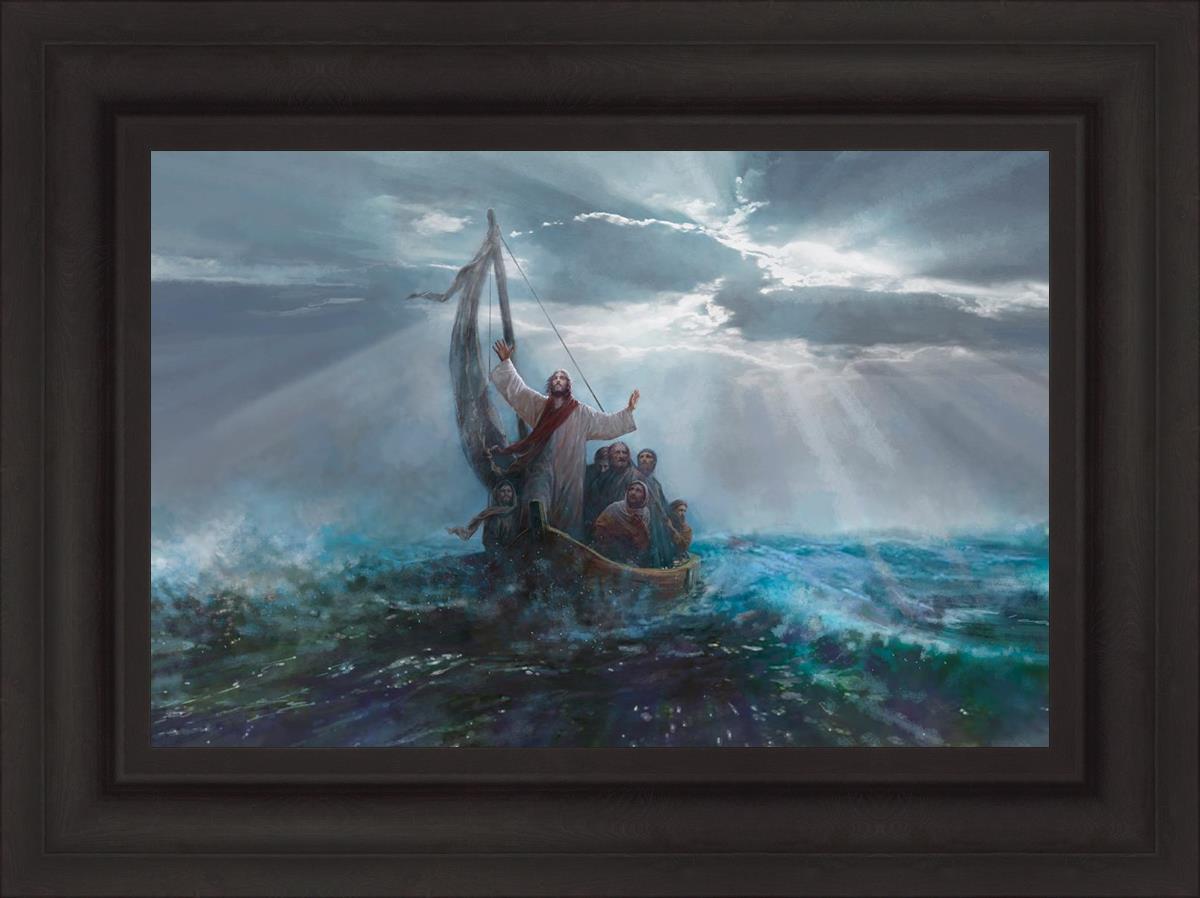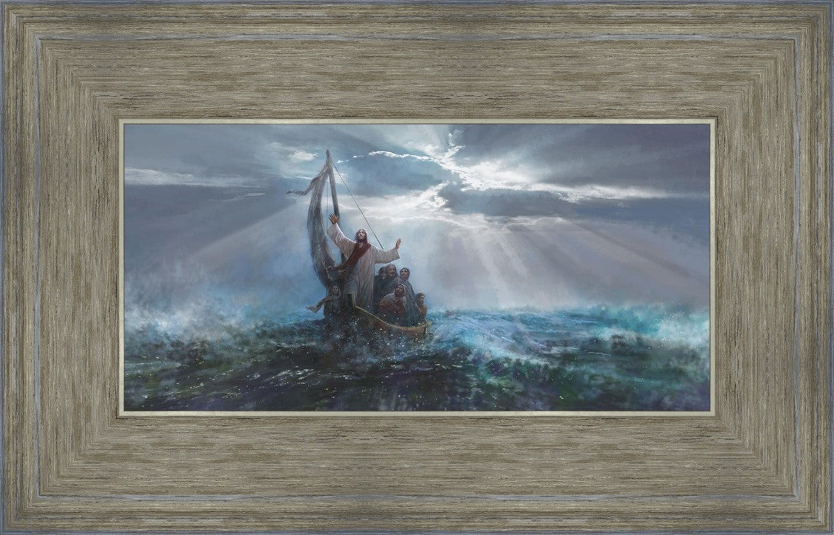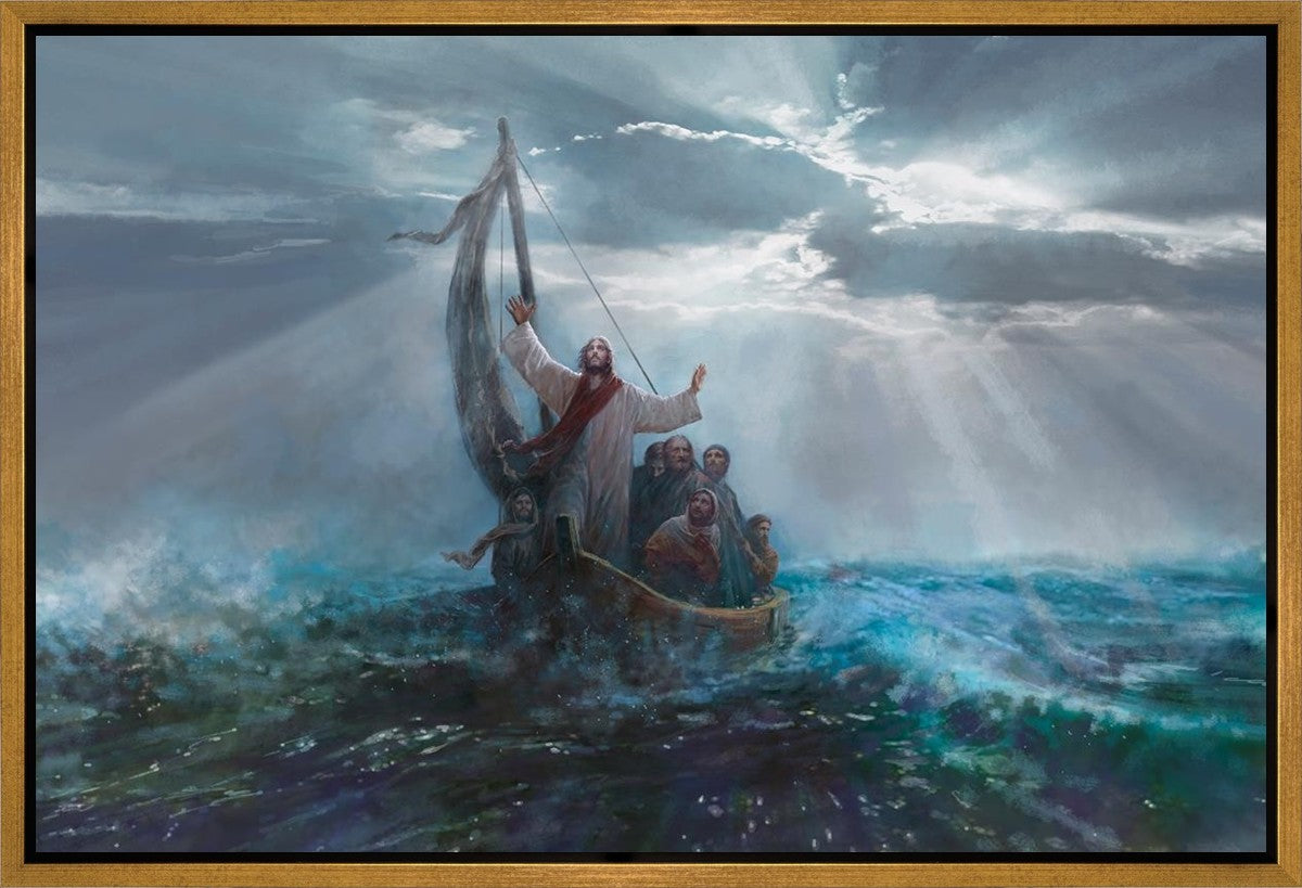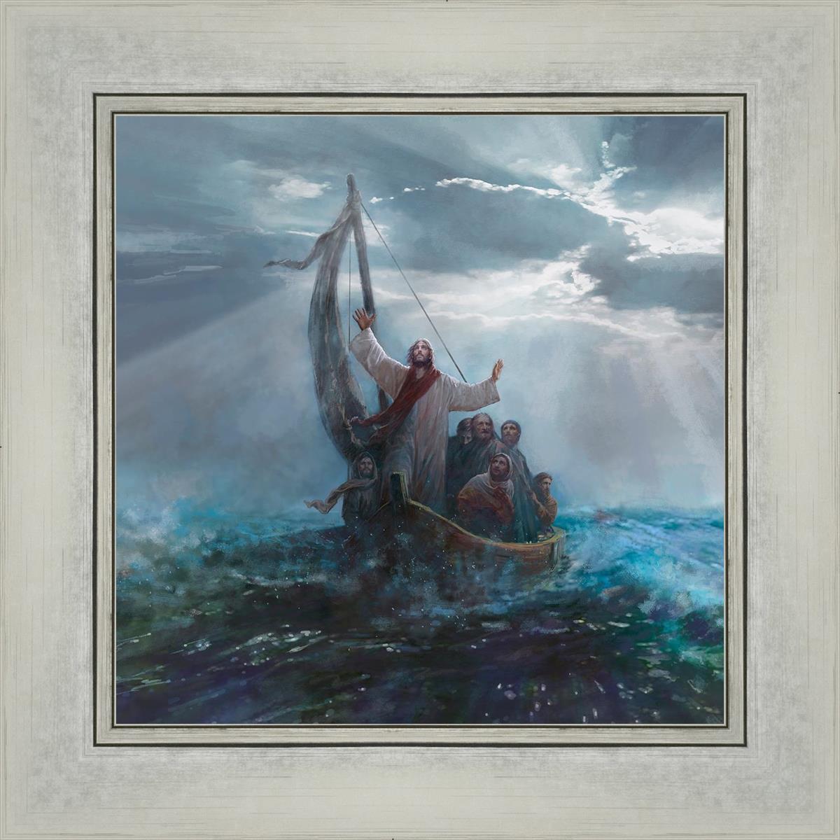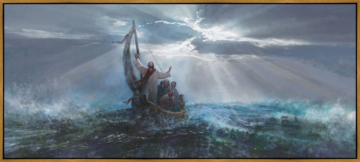 Peace Be Still is a painting by Yongsung Kim. This painting depicts Jesus Christ calming the raging sea amidst a storm.