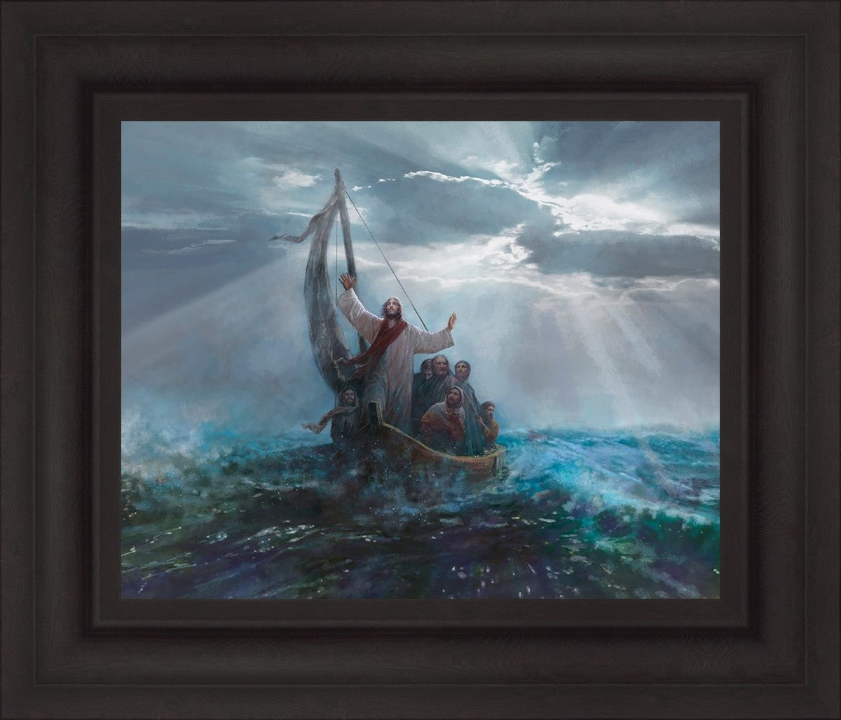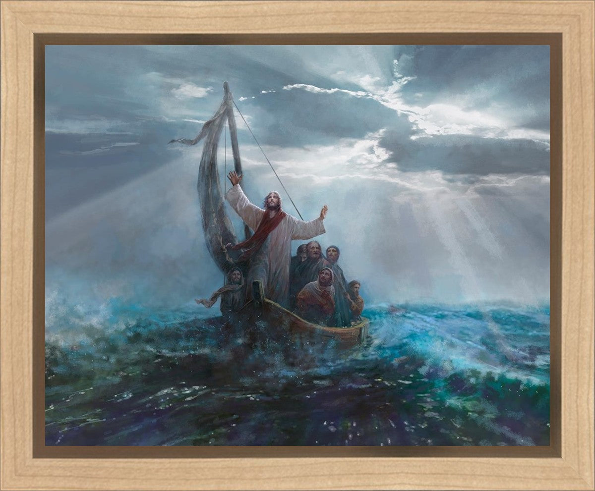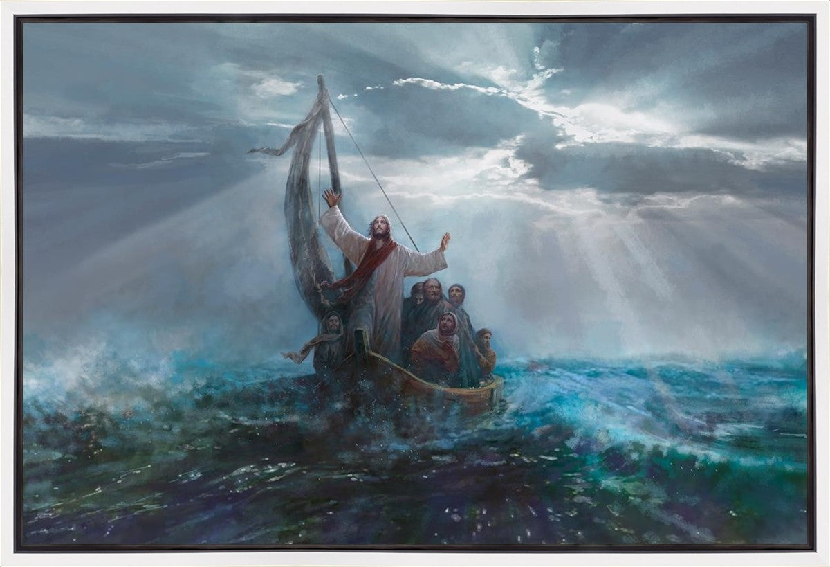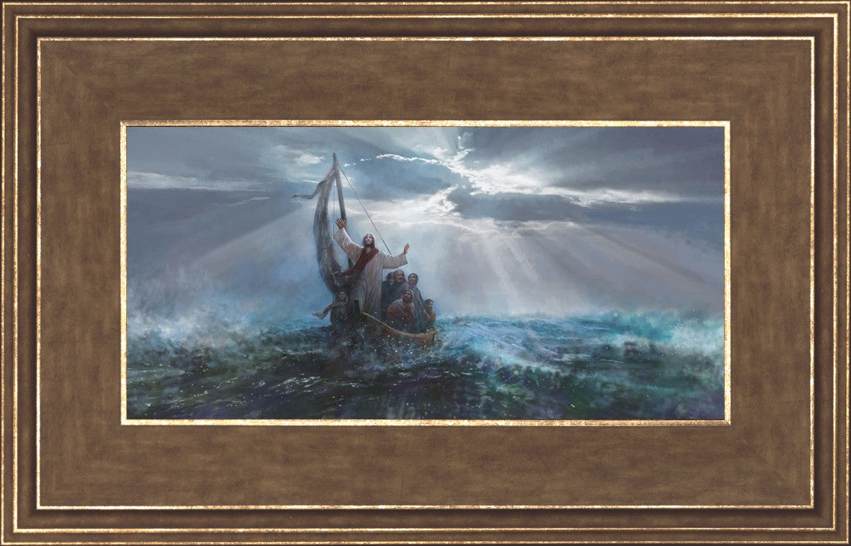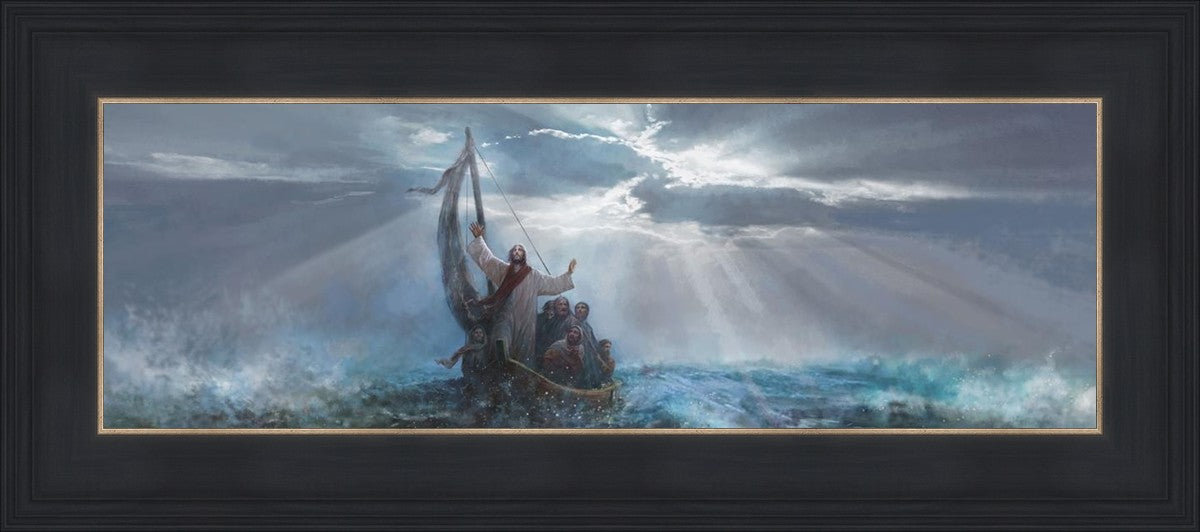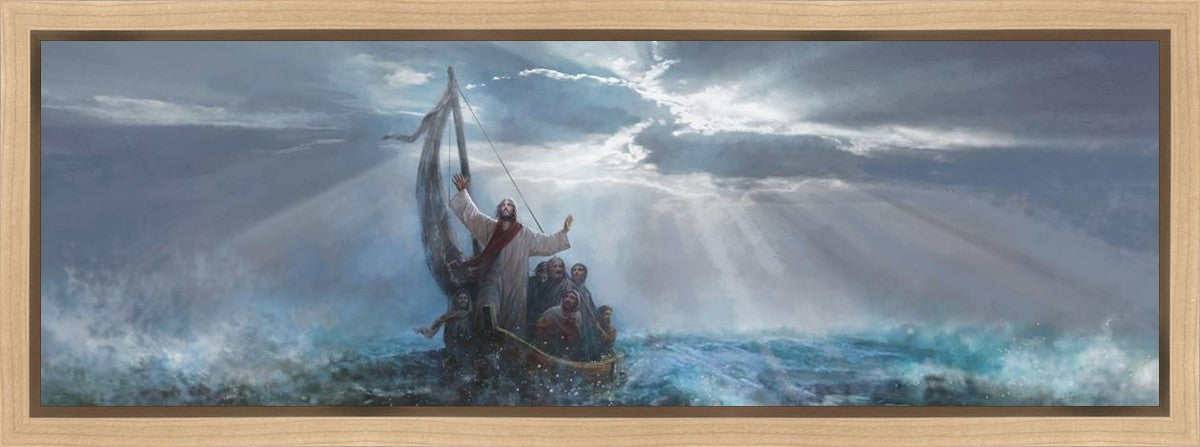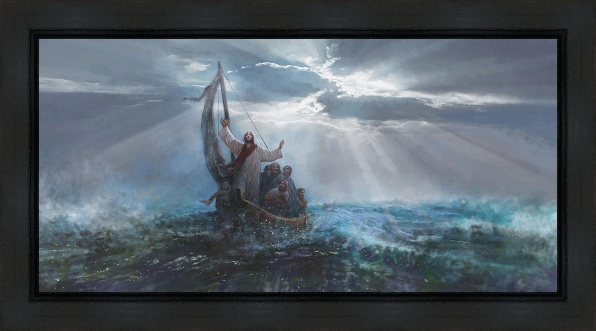 Peace Be Still is a painting by Yongsung Kim. This painting depicts Jesus Christ calming the raging sea amidst a storm.