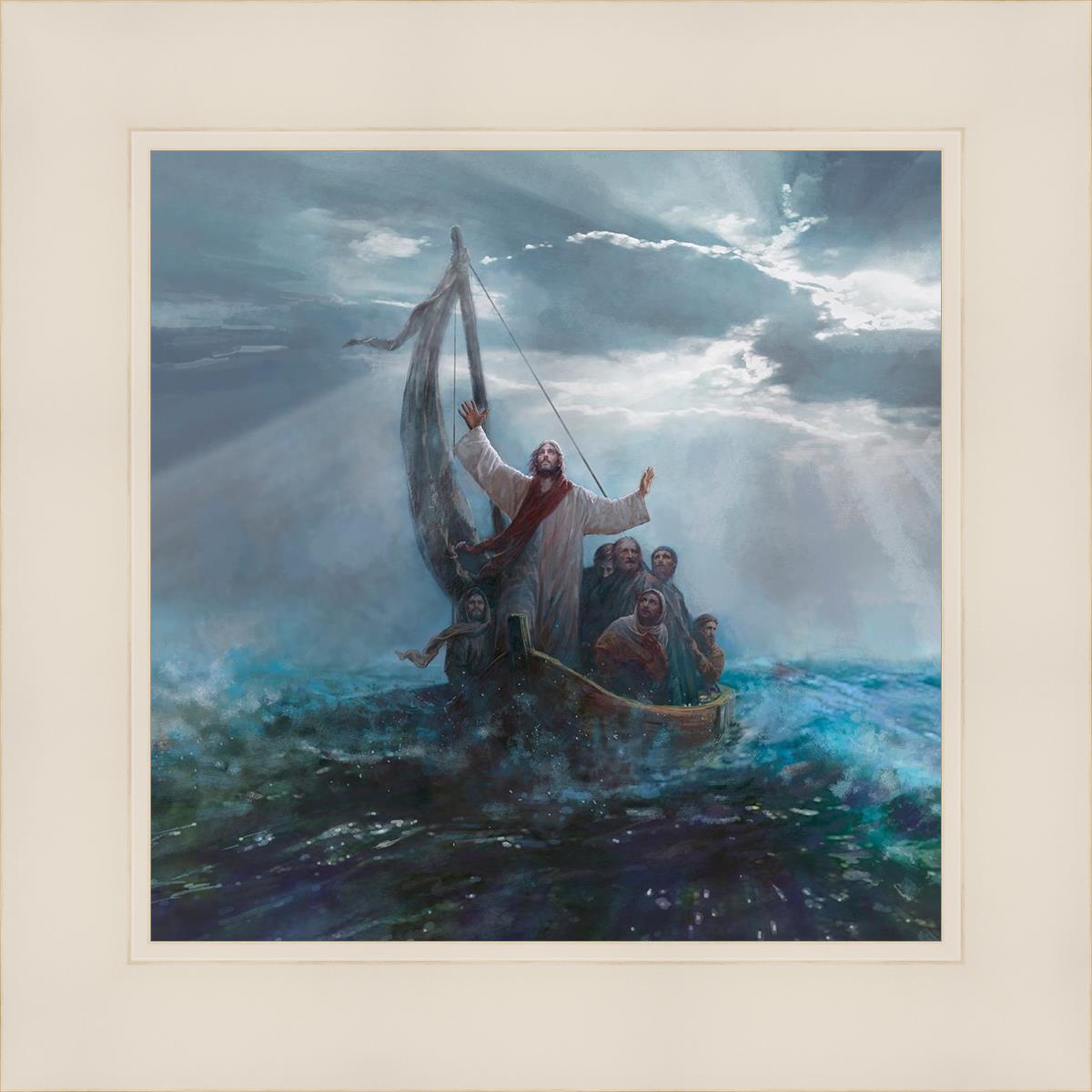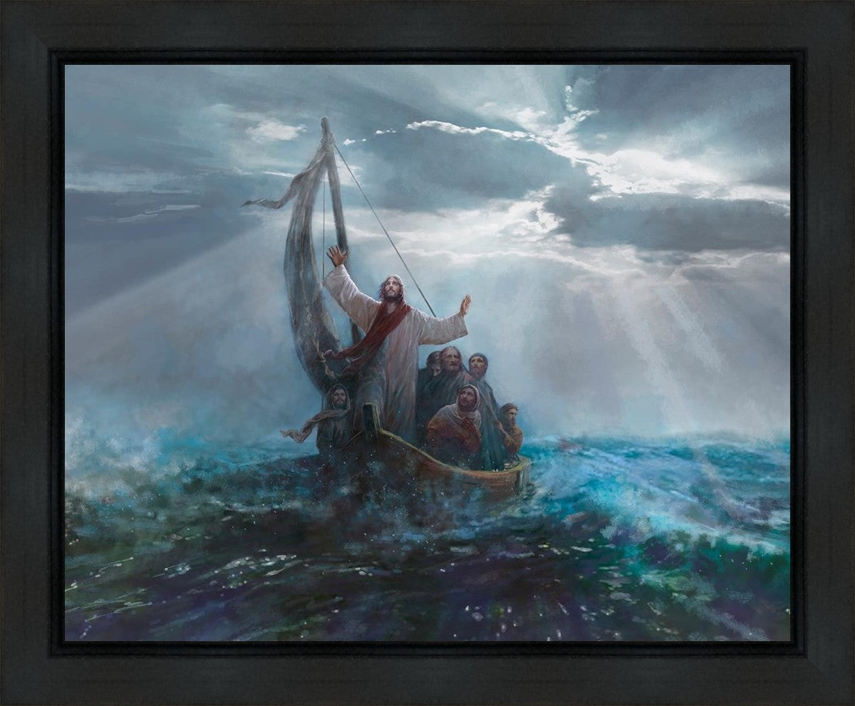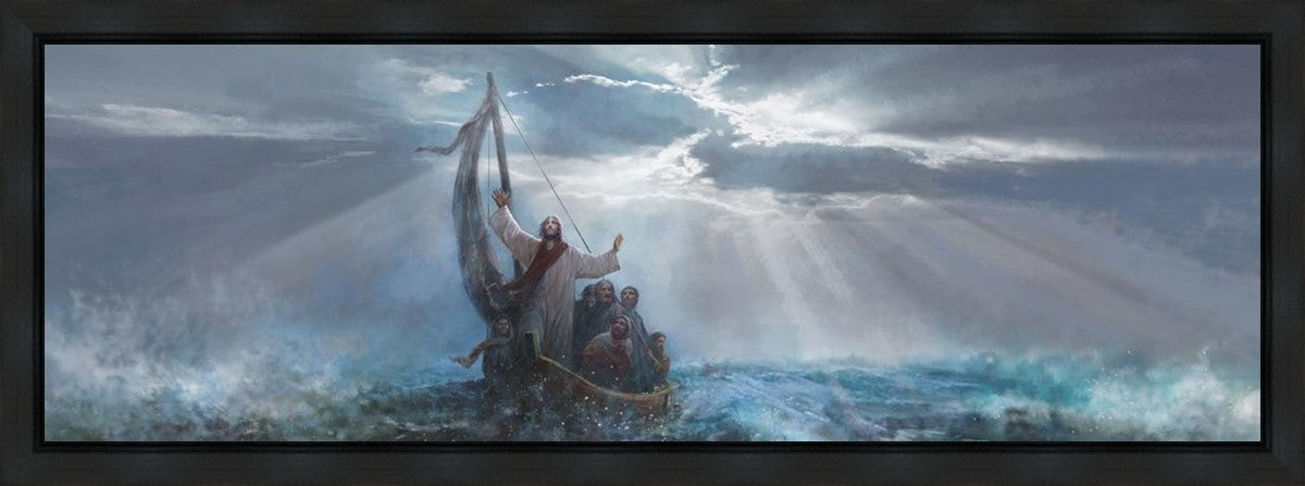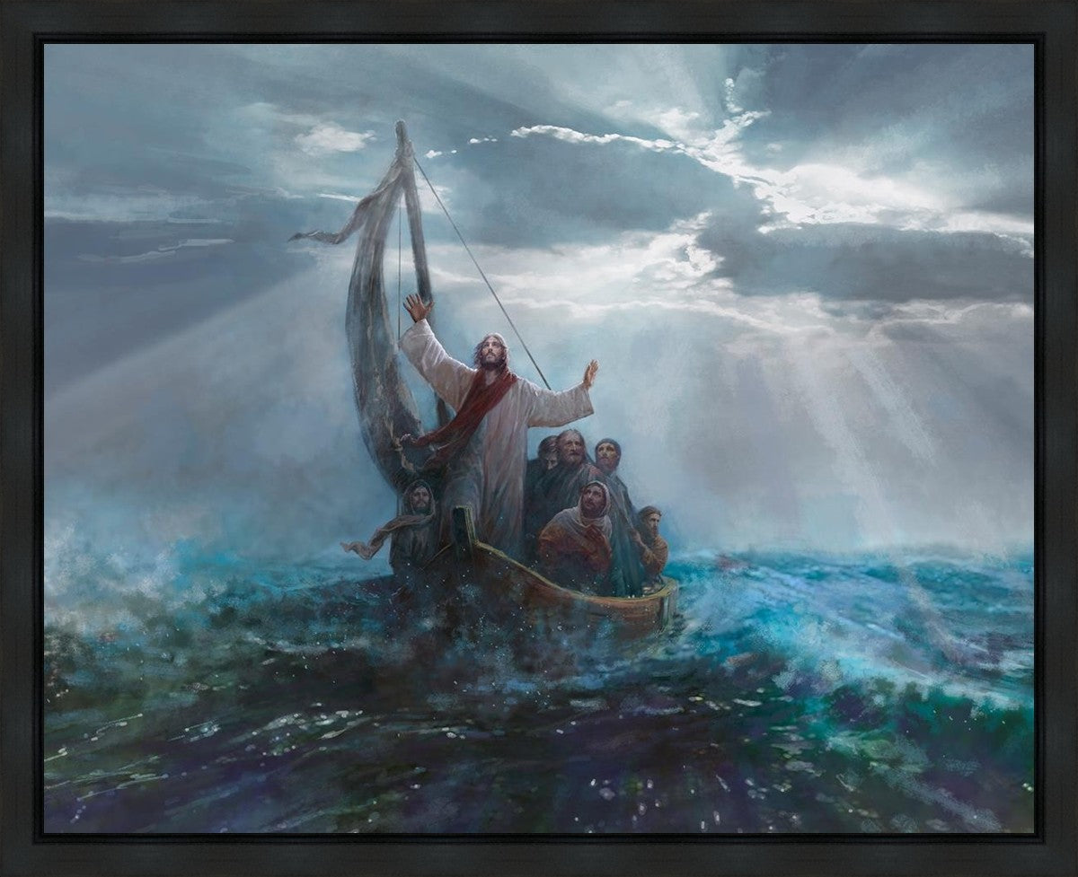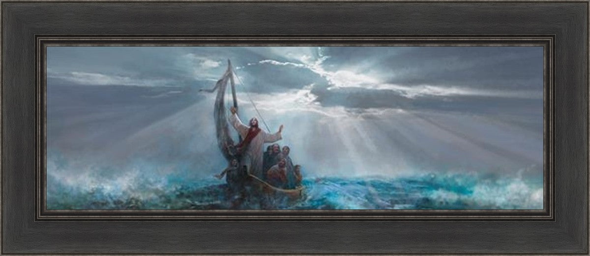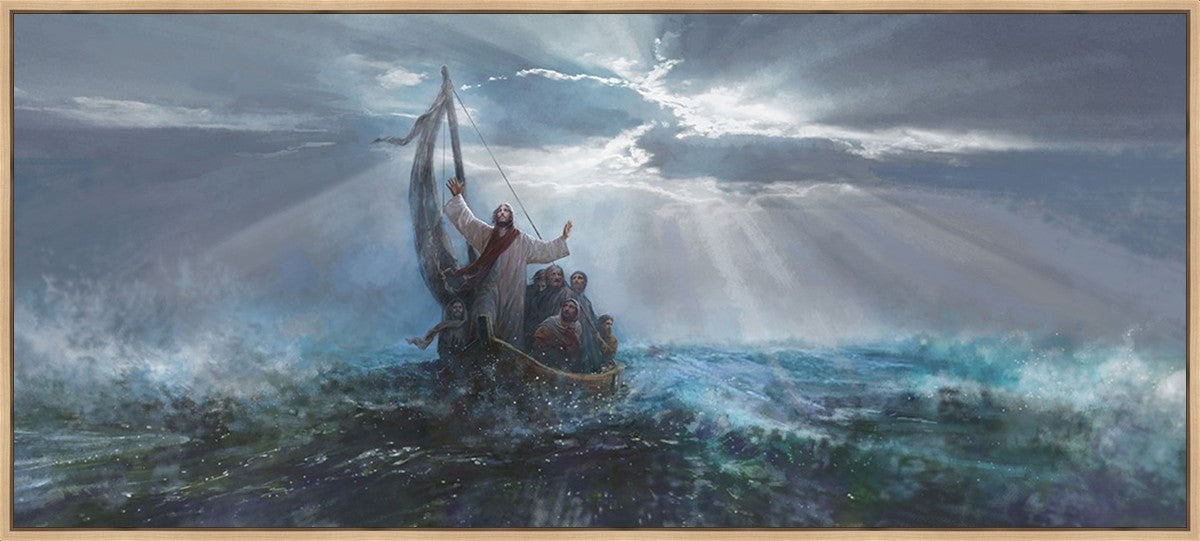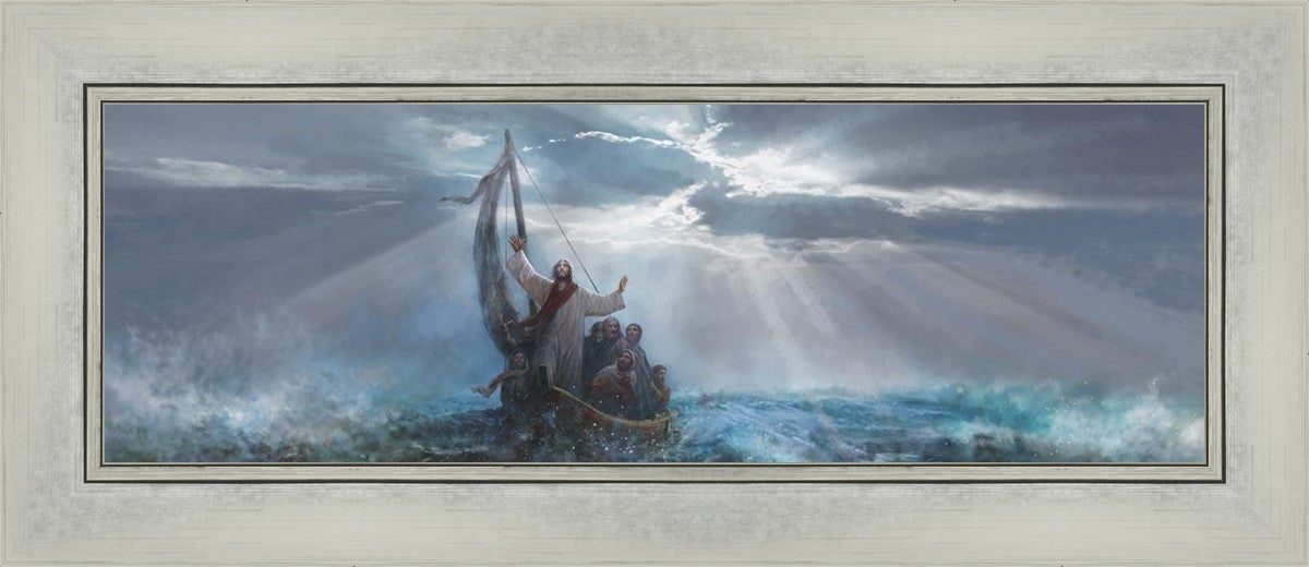 Peace Be Still is a painting by Yongsung Kim. This painting depicts Jesus Christ calming the raging sea amidst a storm.