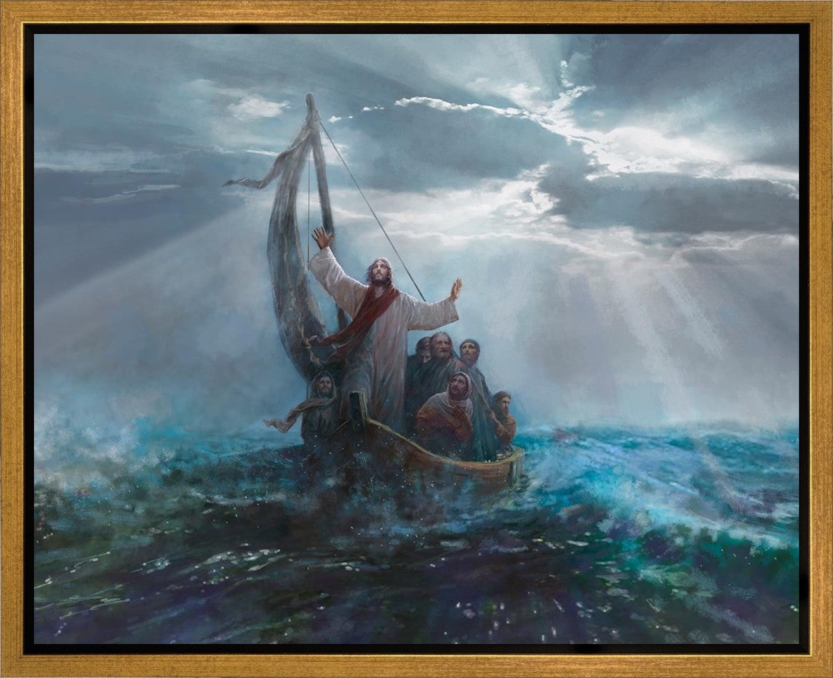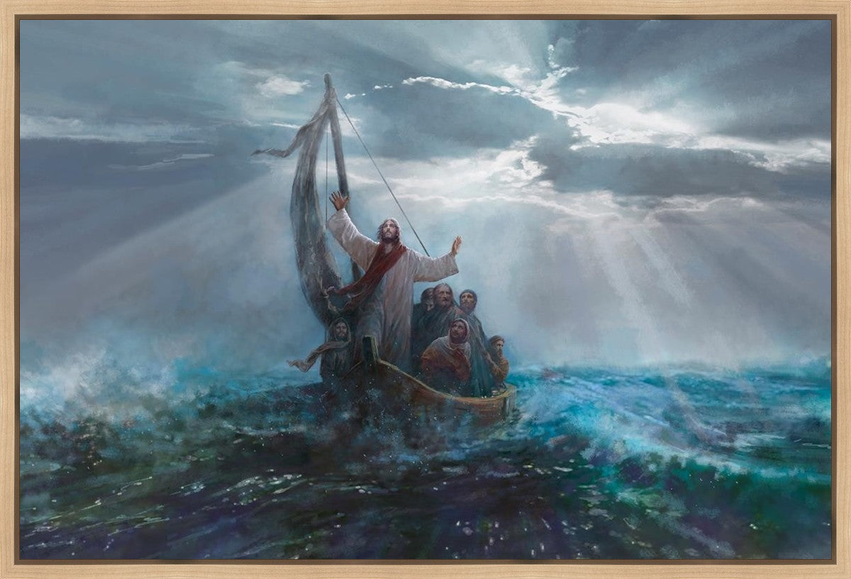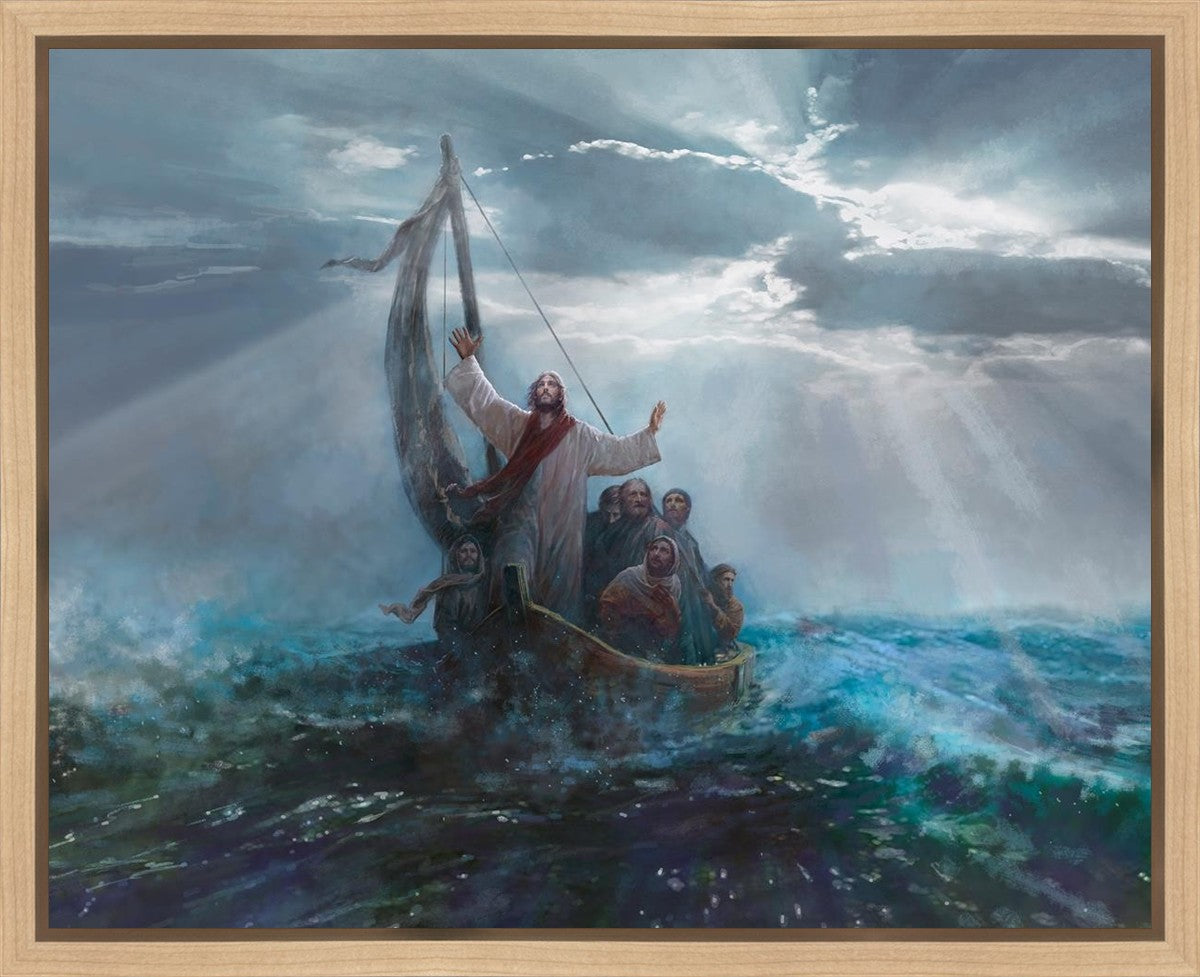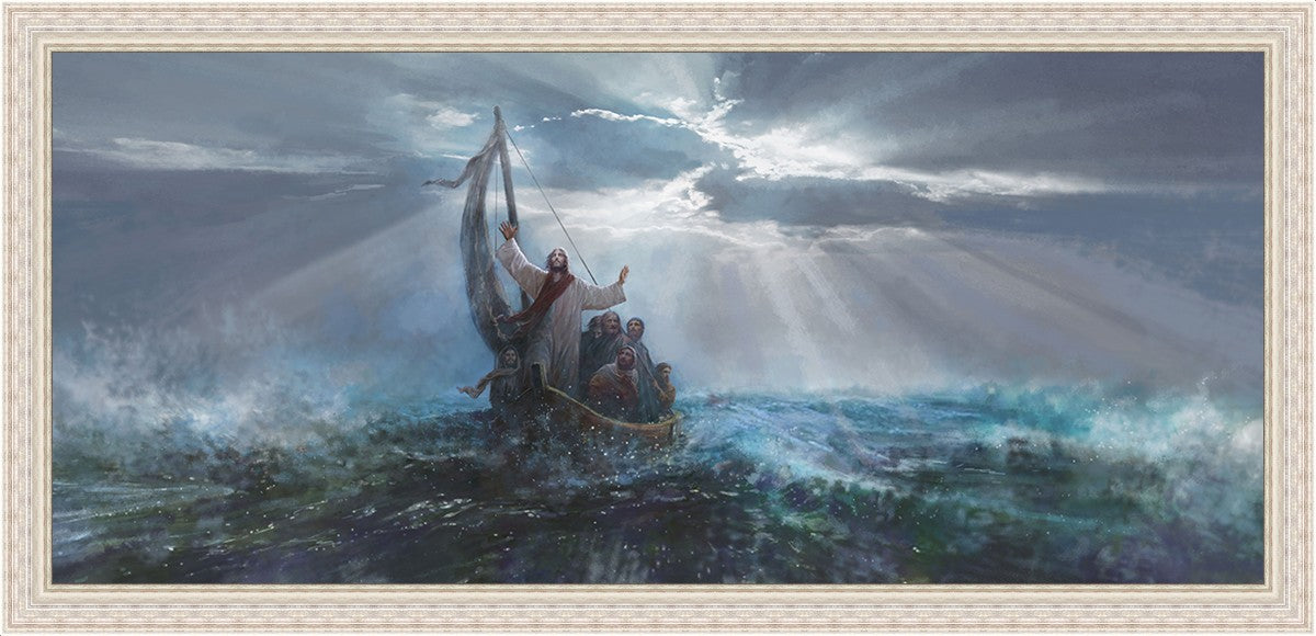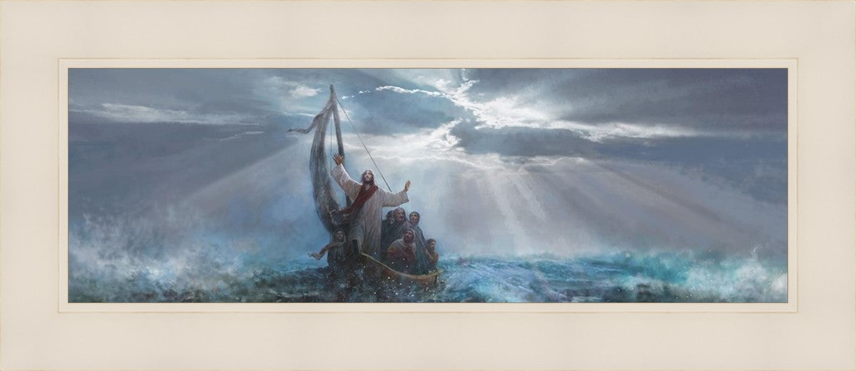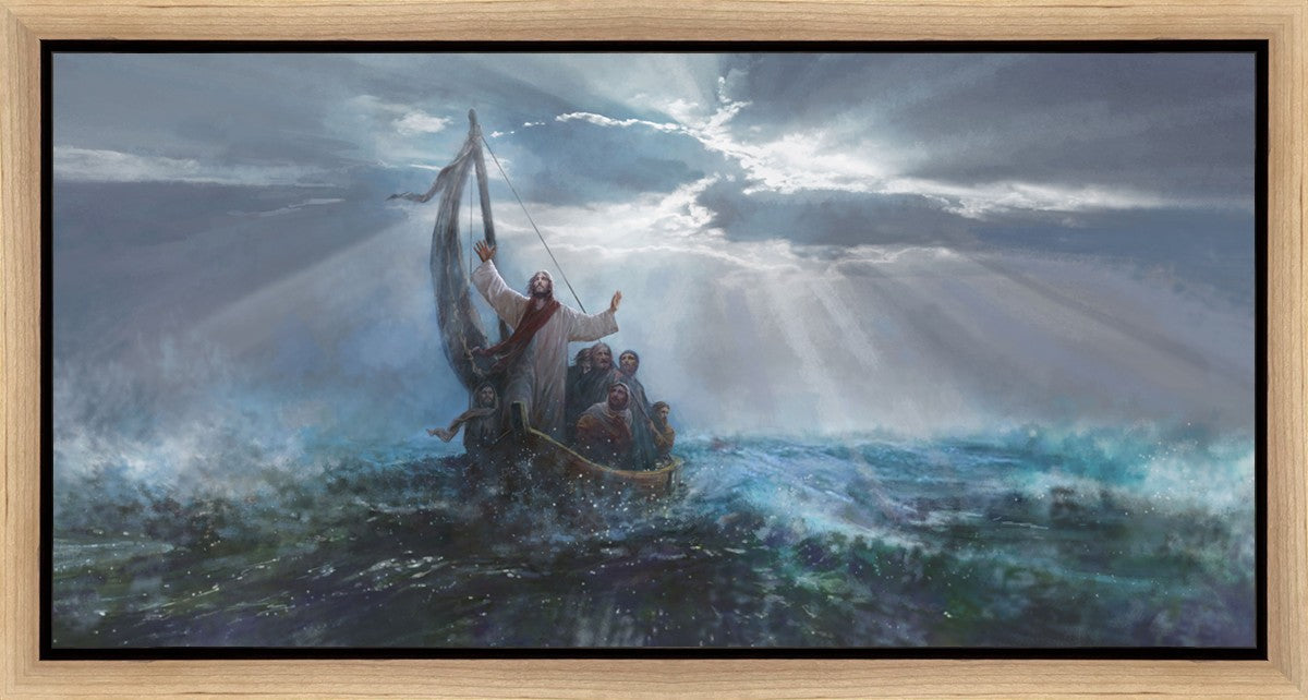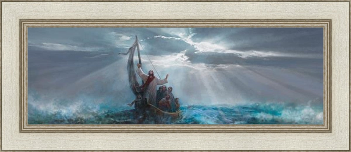 Peace Be Still is a painting by Yongsung Kim. This painting depicts Jesus Christ calming the raging sea amidst a storm.