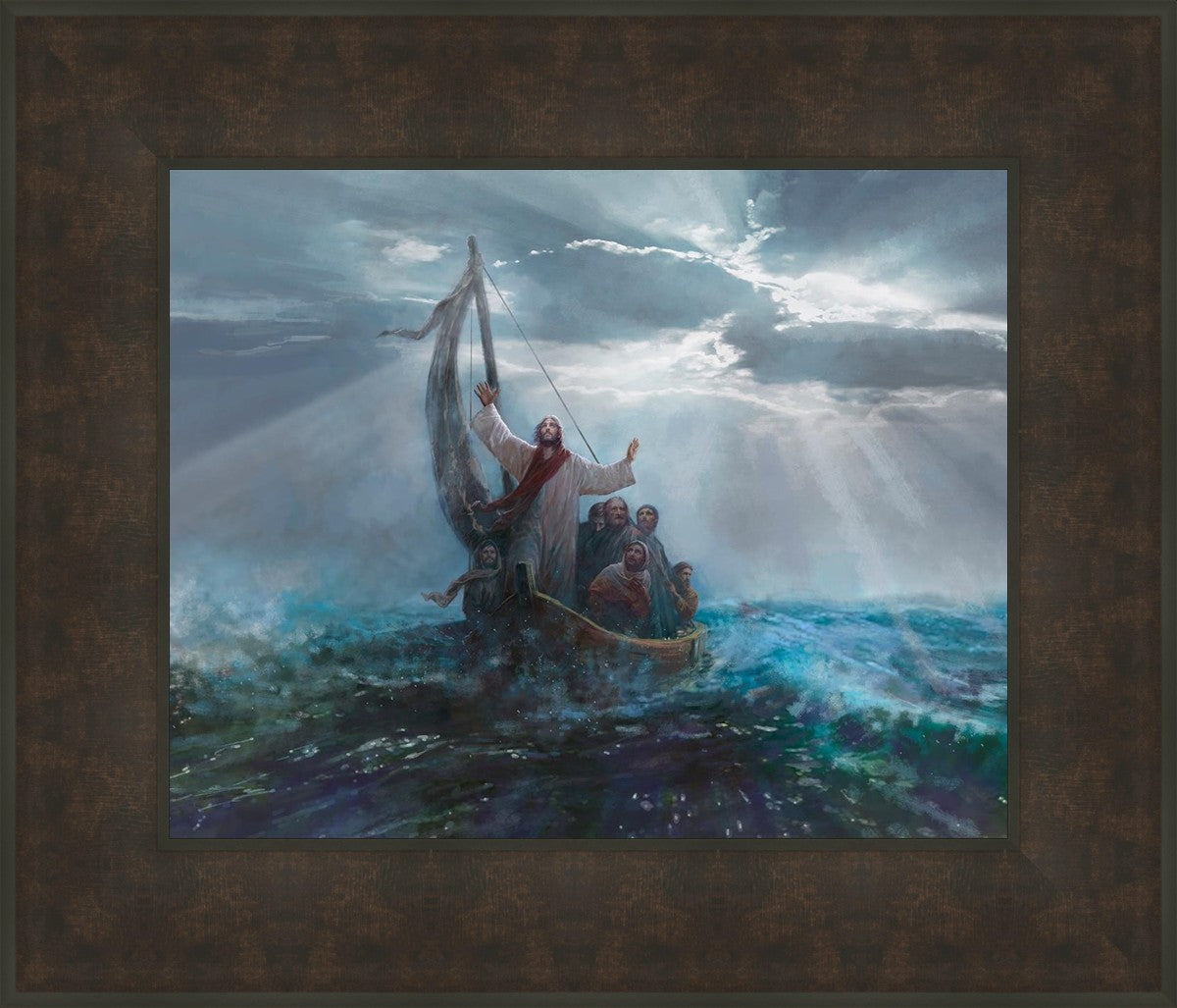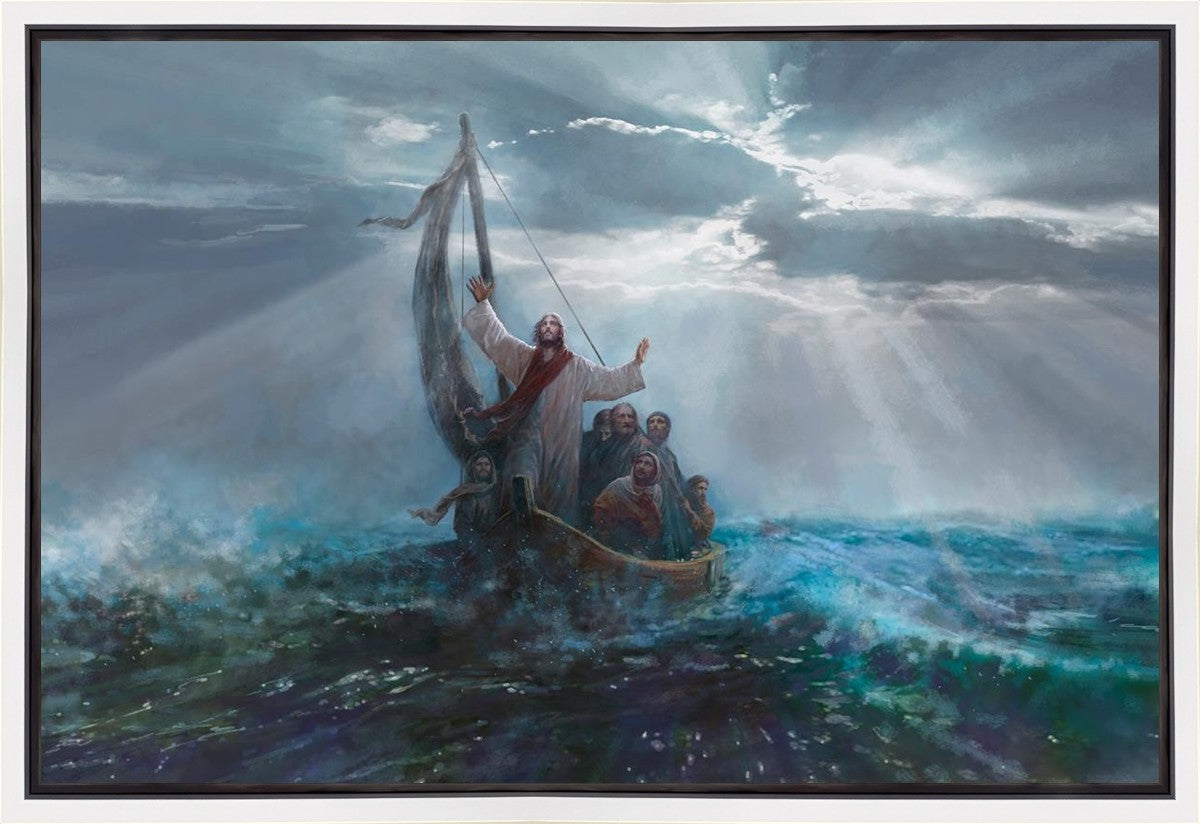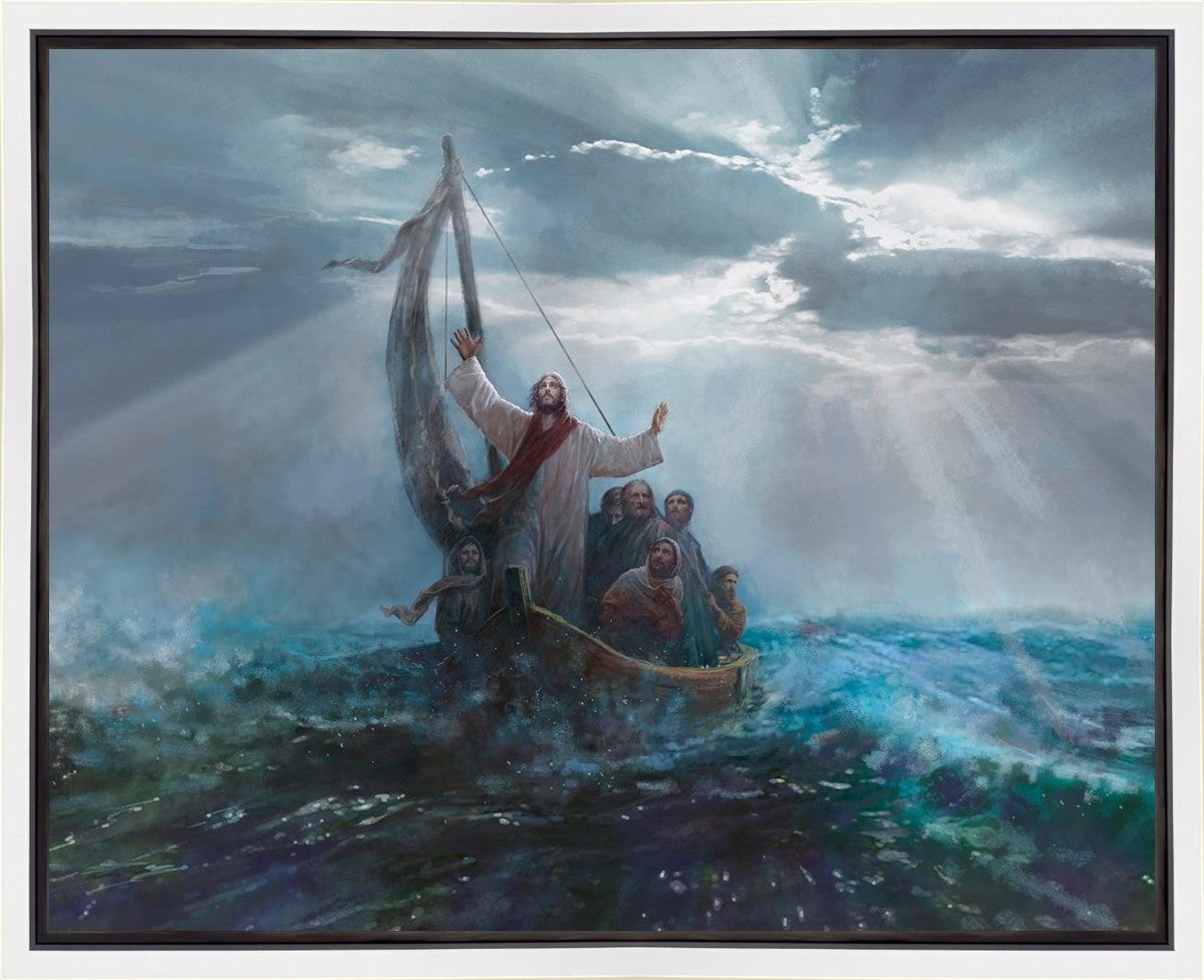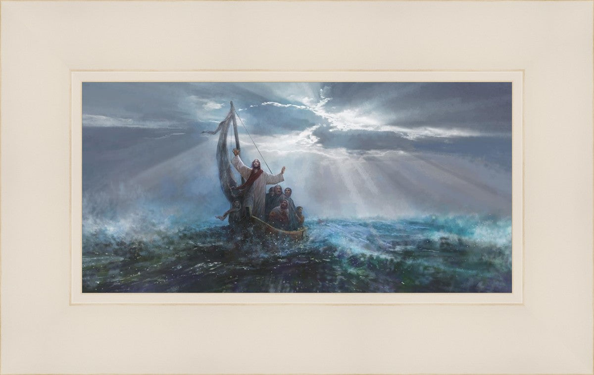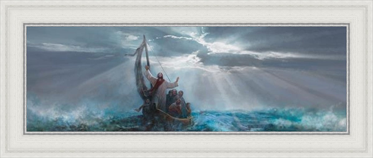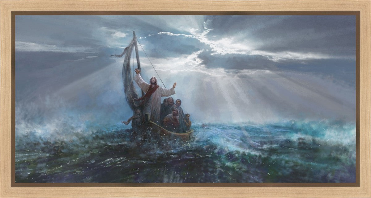Peace Be Still is a painting by Yongsung Kim. This painting depicts Jesus Christ calming the raging sea amidst a storm.