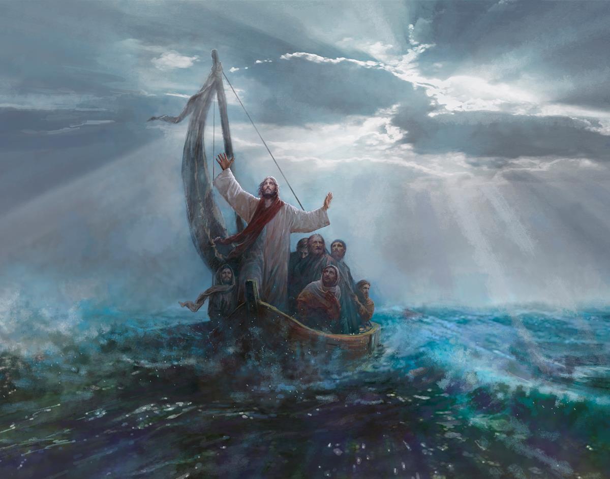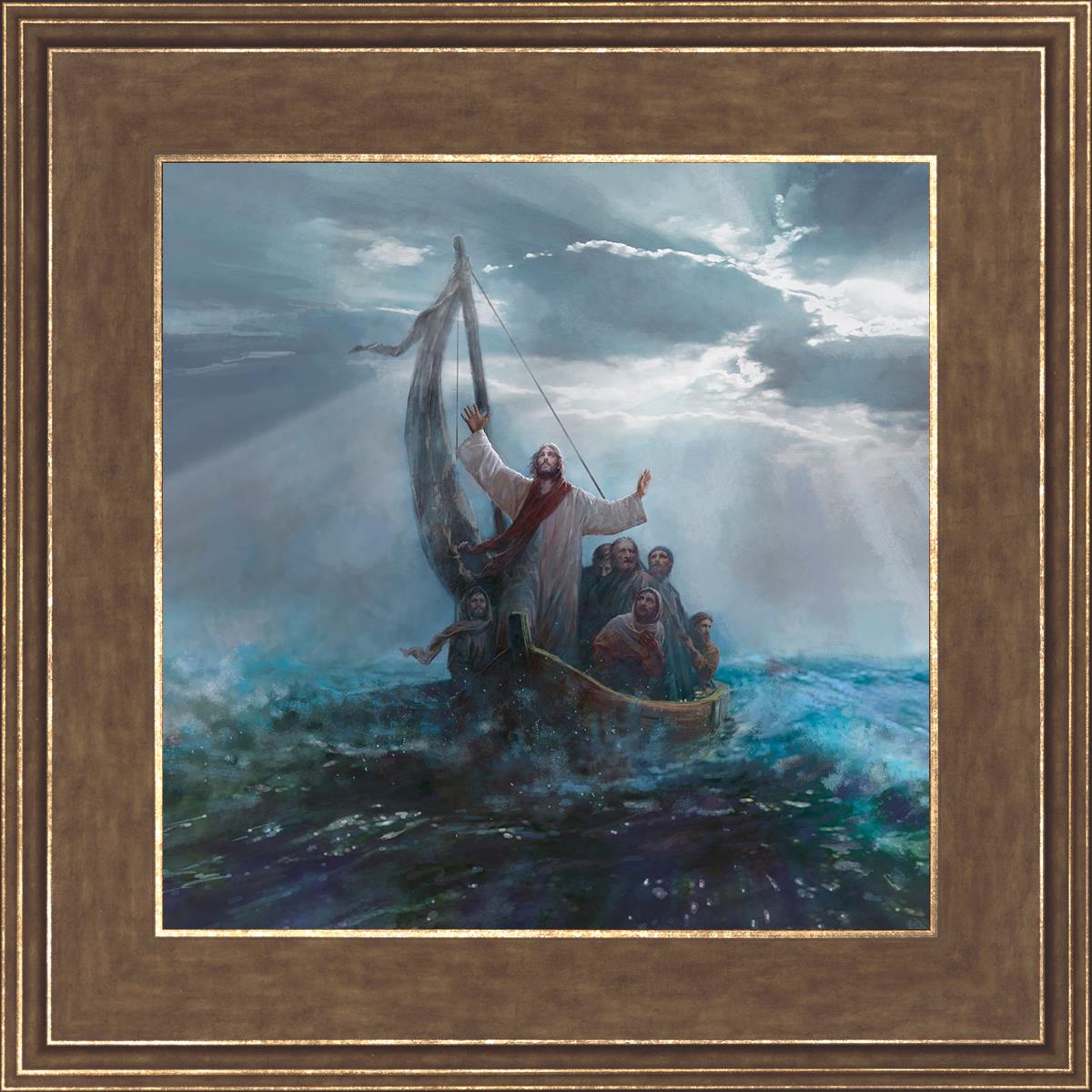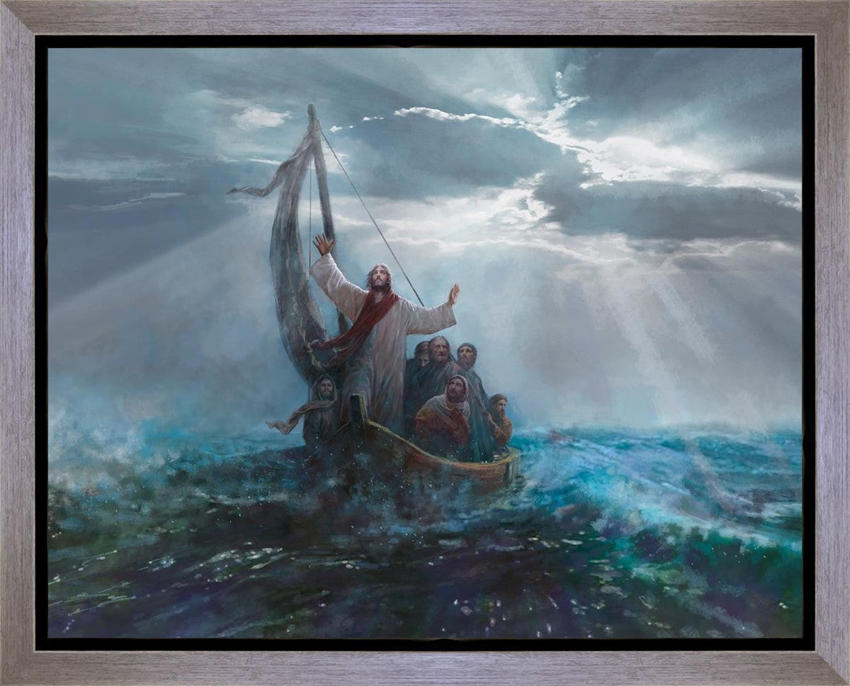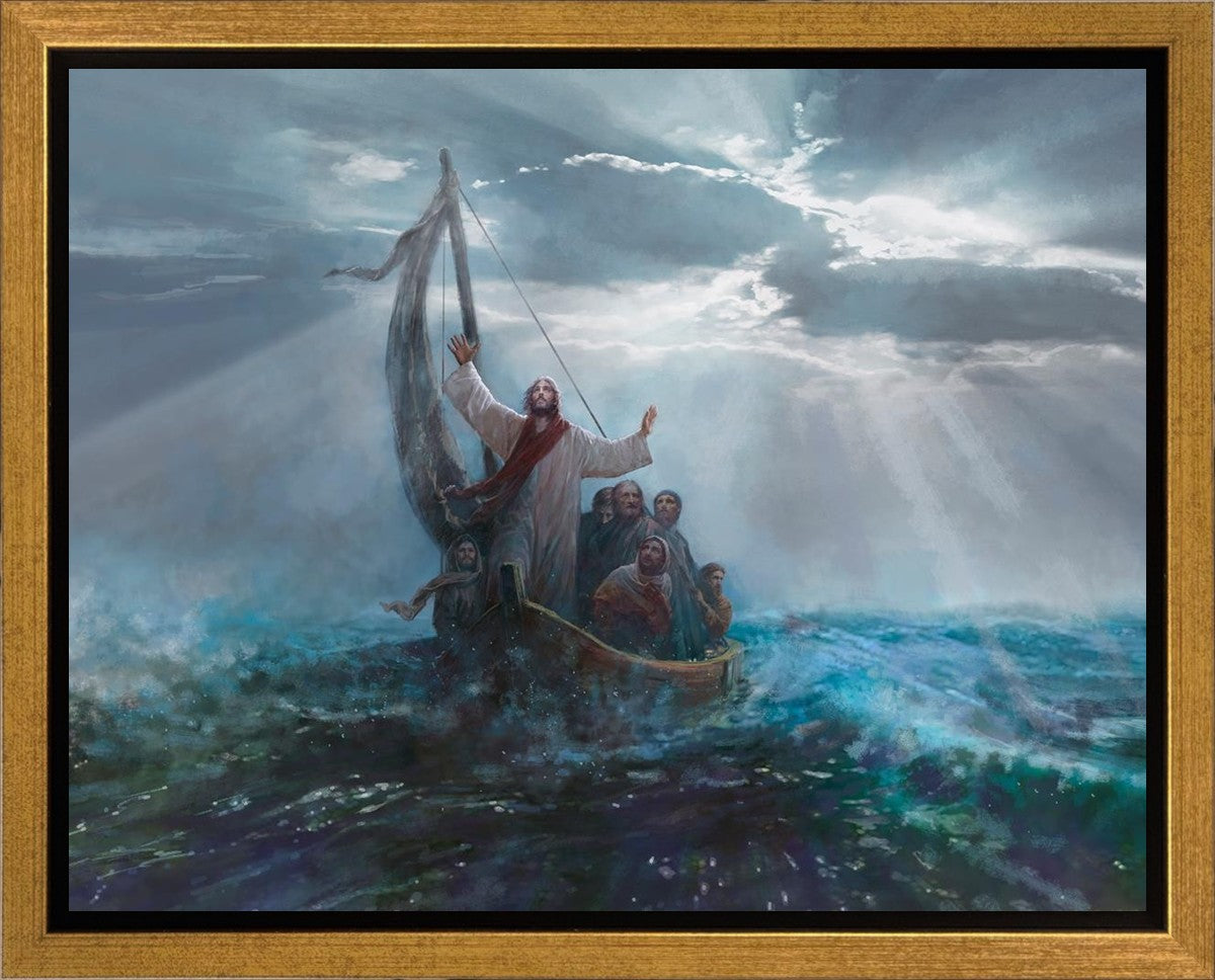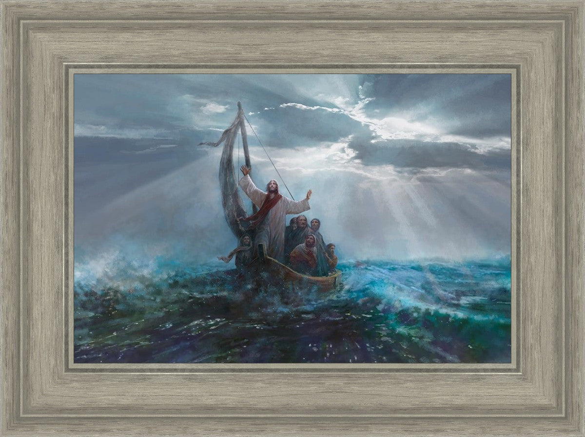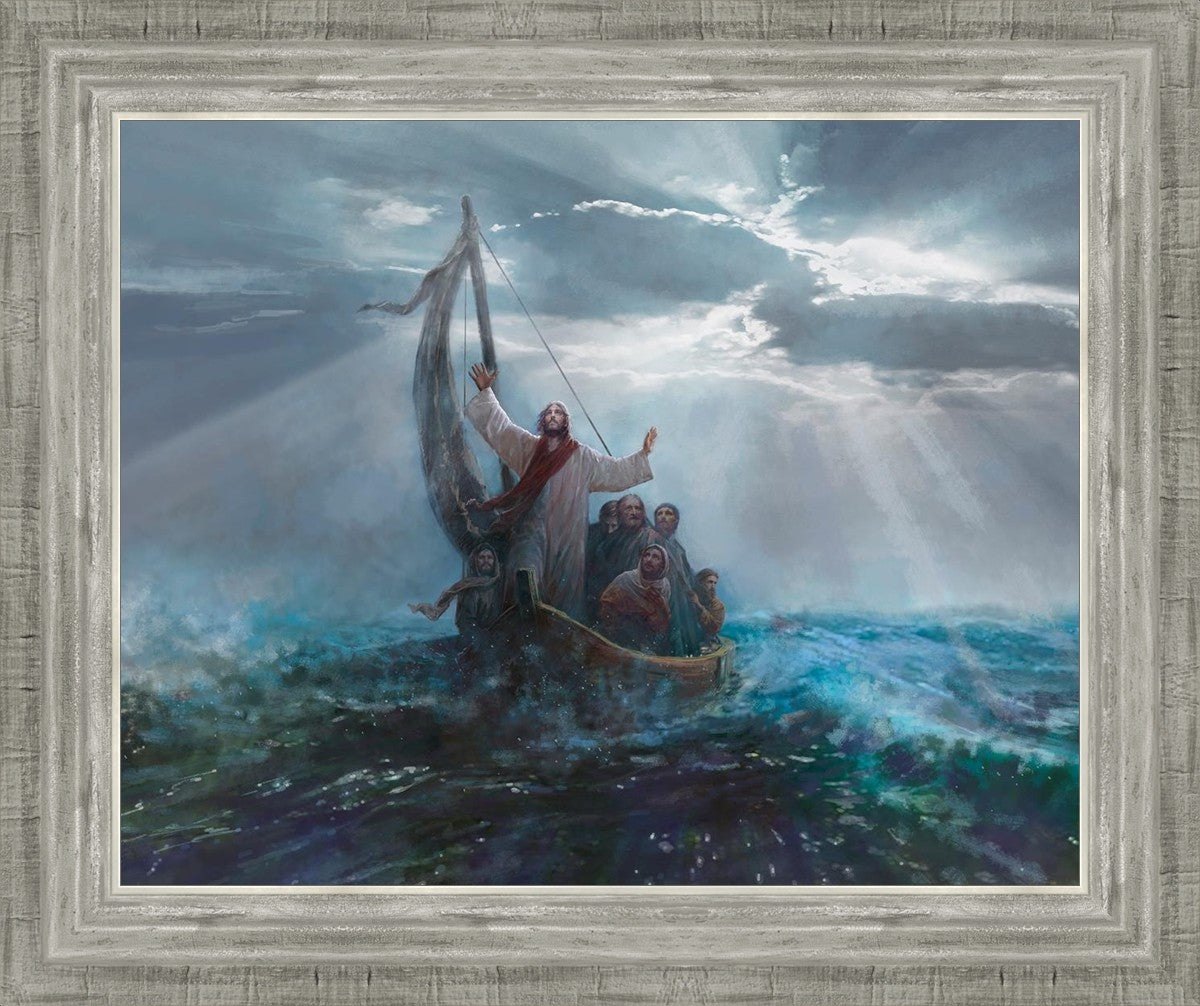 Peace Be Still is a painting by Yongsung Kim. This painting depicts Jesus Christ calming the raging sea amidst a storm.